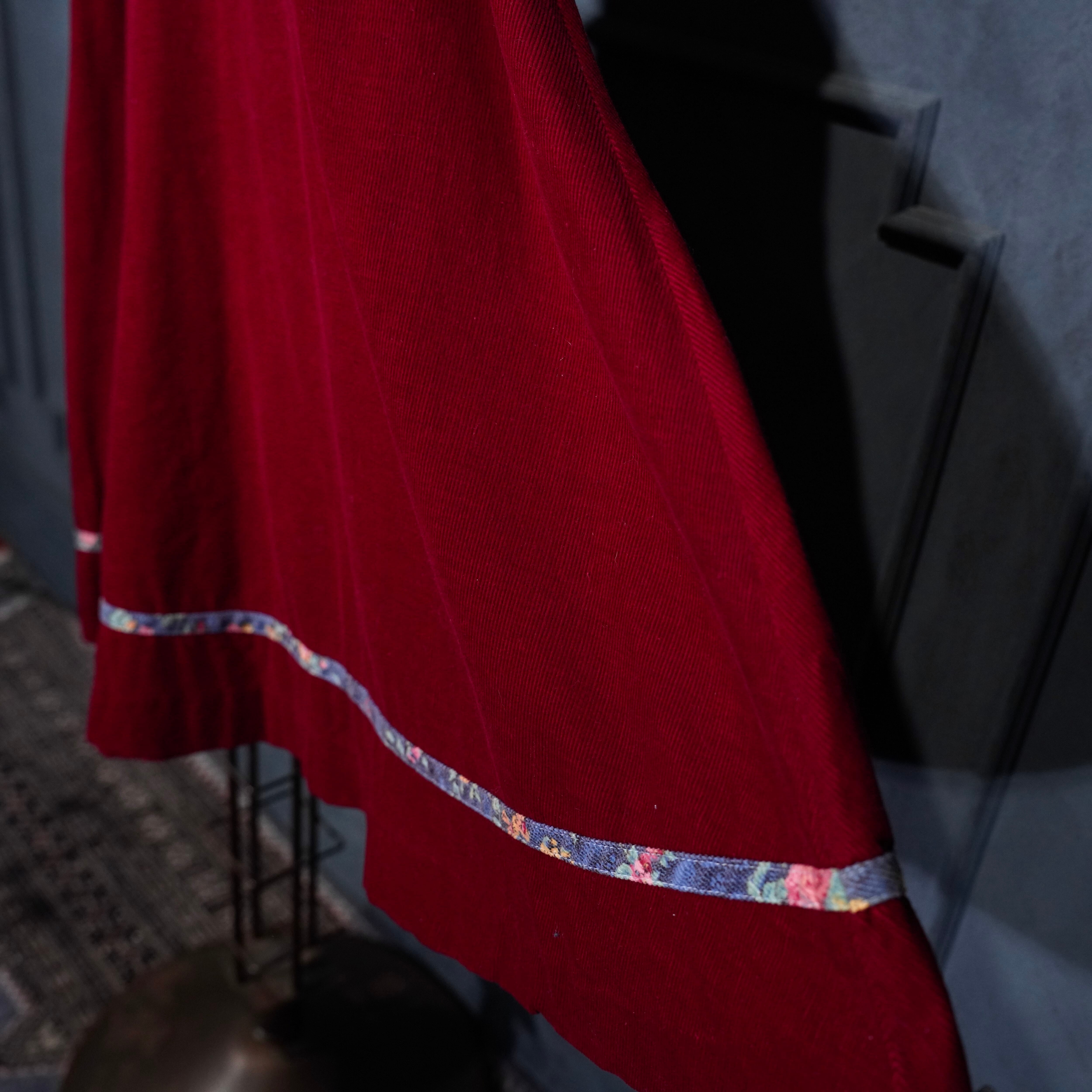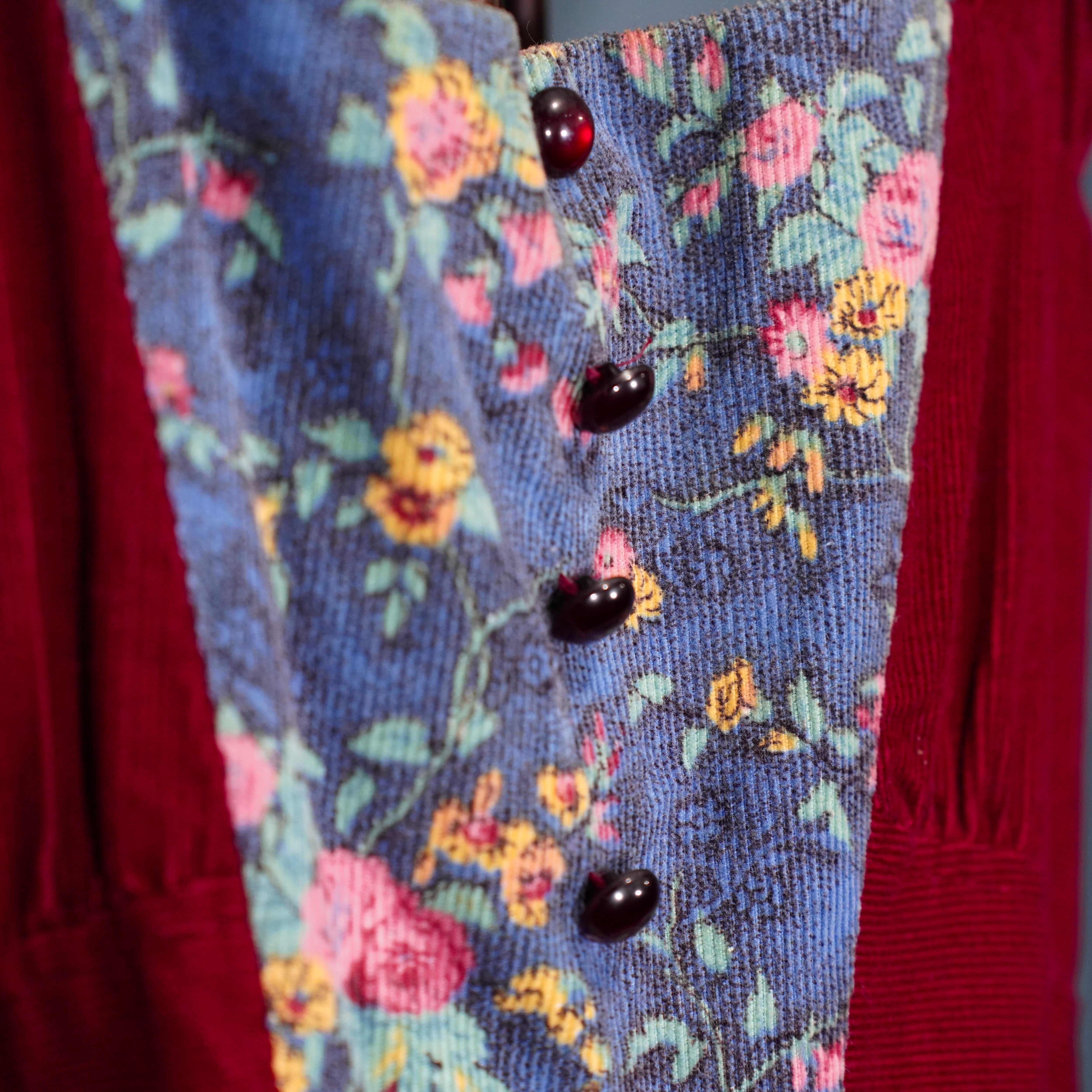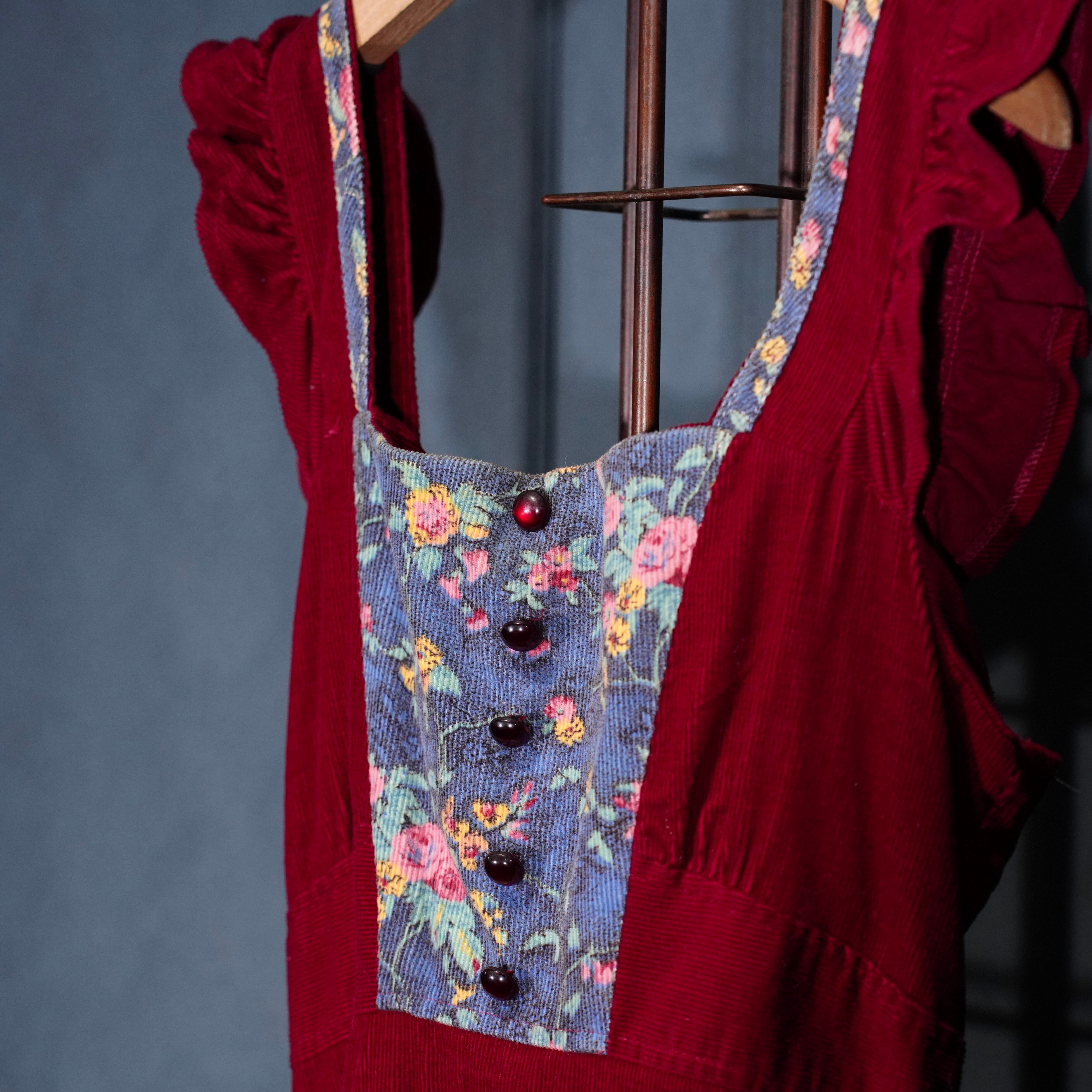 お客様専用ページ 70’s USA VINTAGE Sears FLOWER PATTERNED SWITCHED BACK RIBBON FRILL DESIGN CORDULOY NO SLEEVE ONE PIECE/70年代アメリカ古着シアーズお花柄切り替えバックリボンフリルデザインコーデュロイワンピース