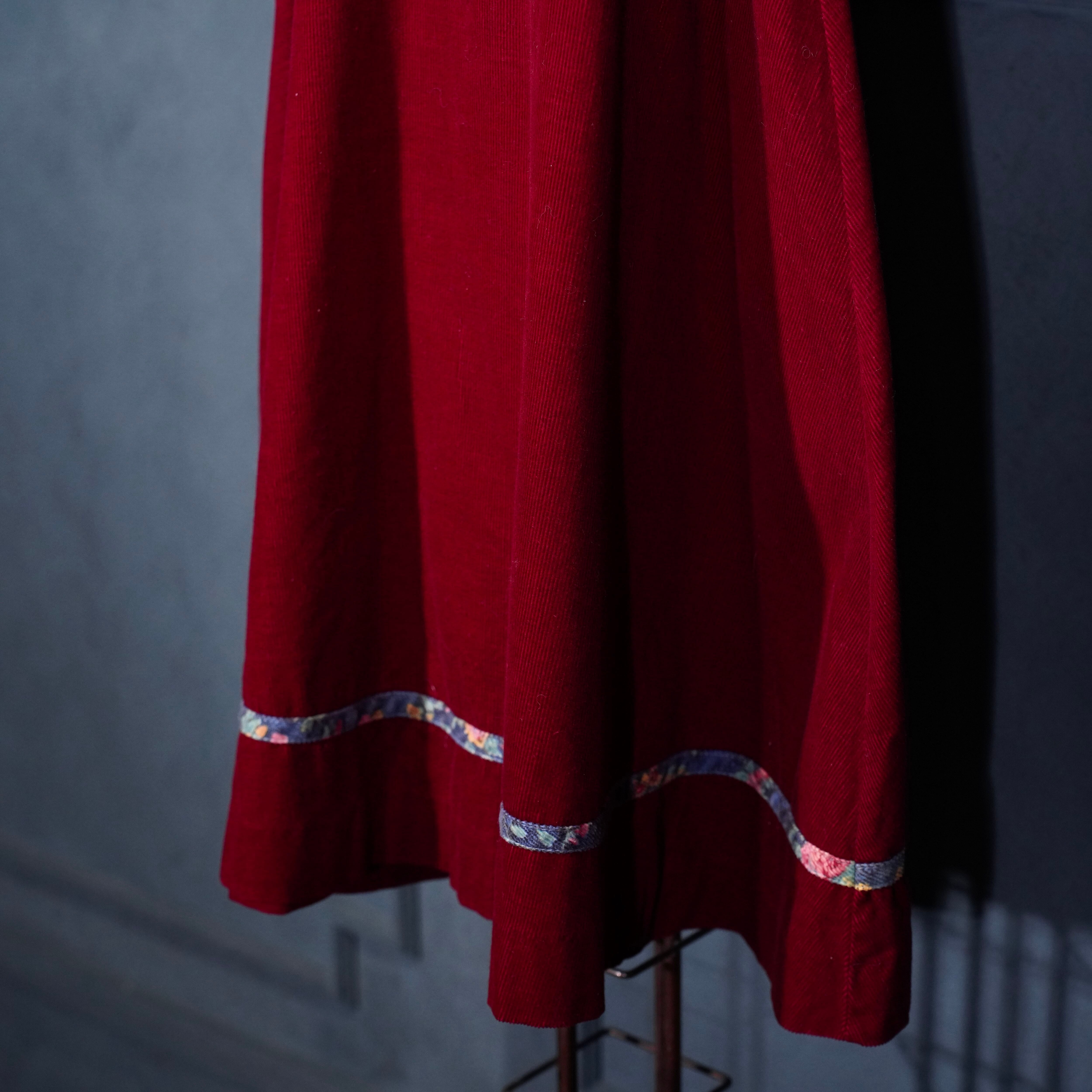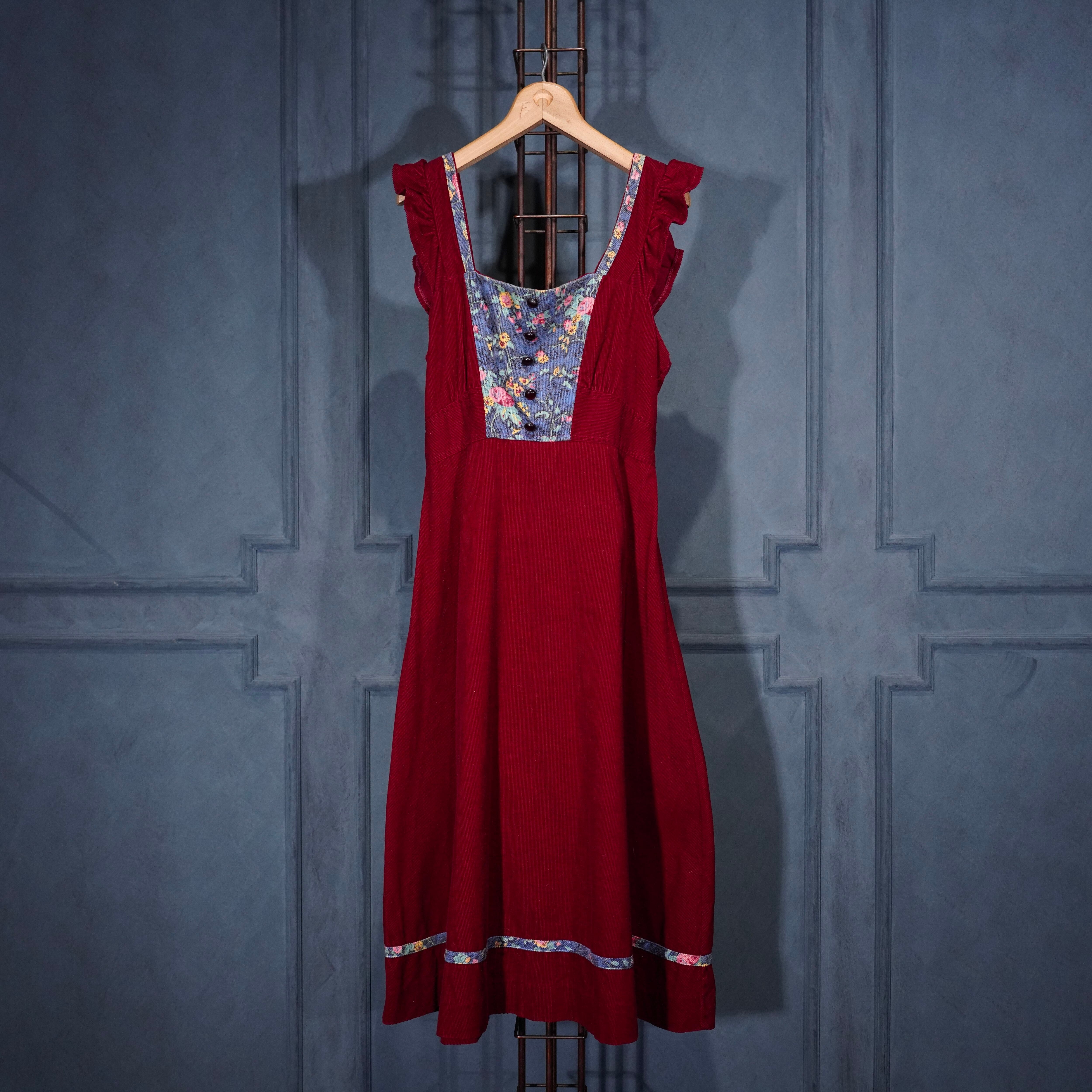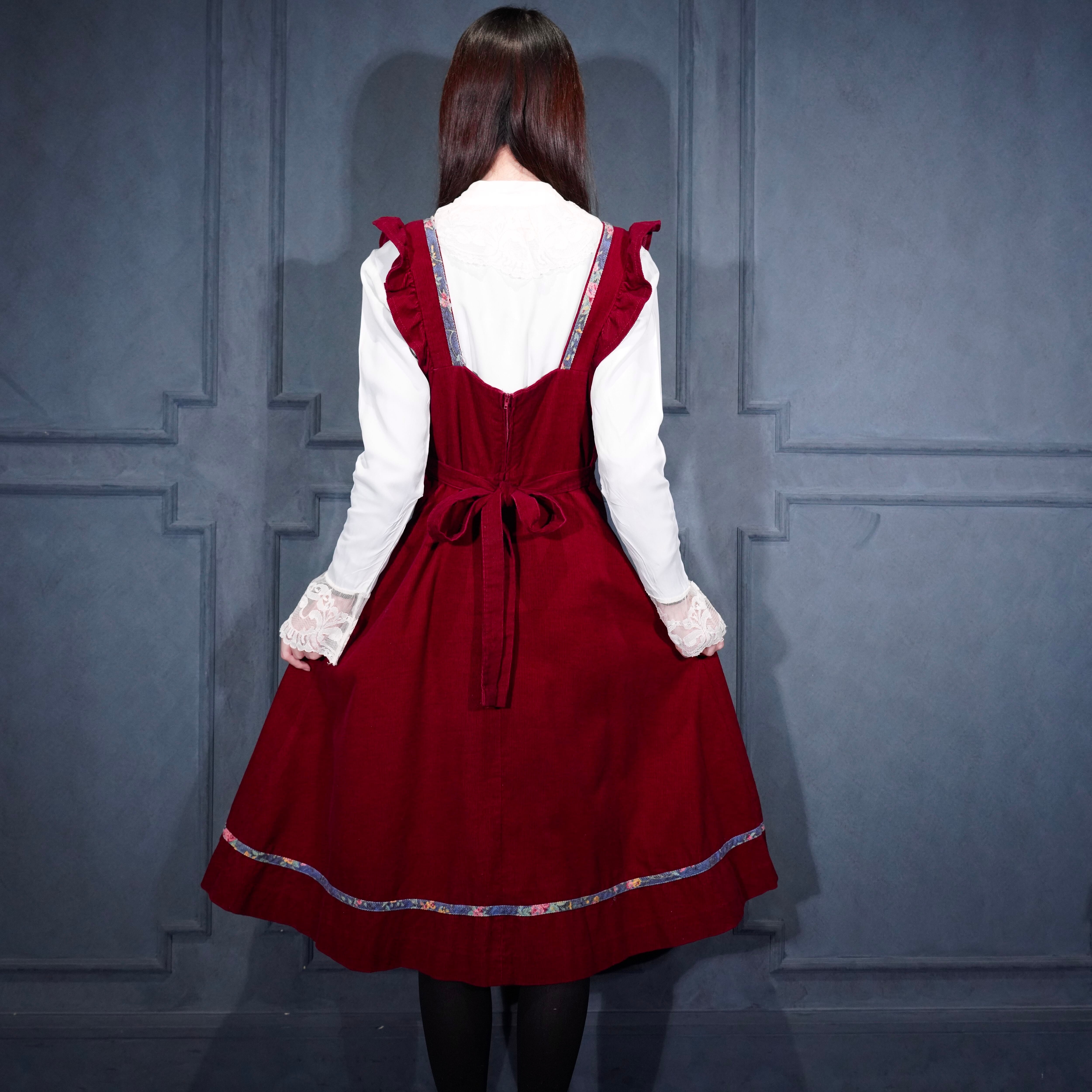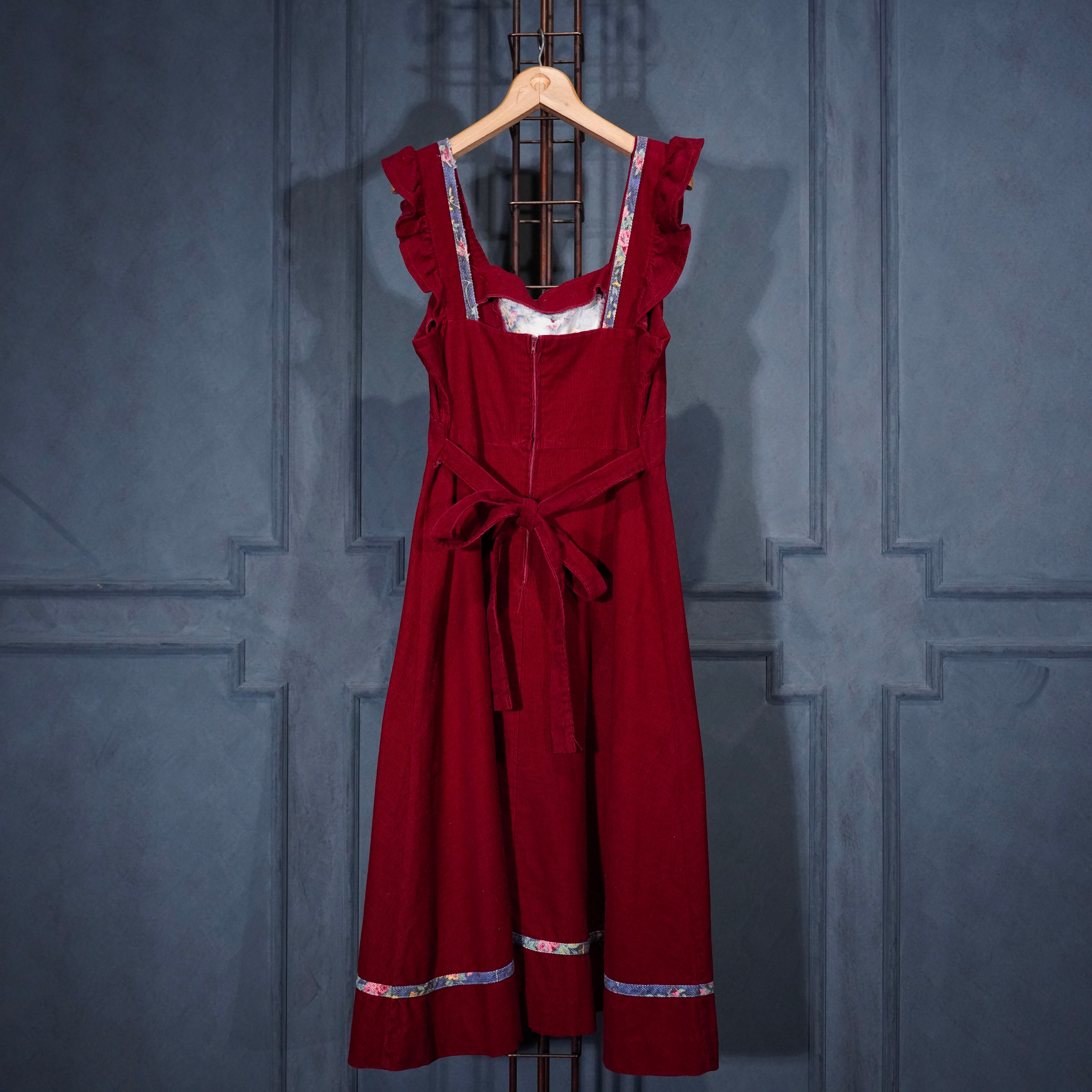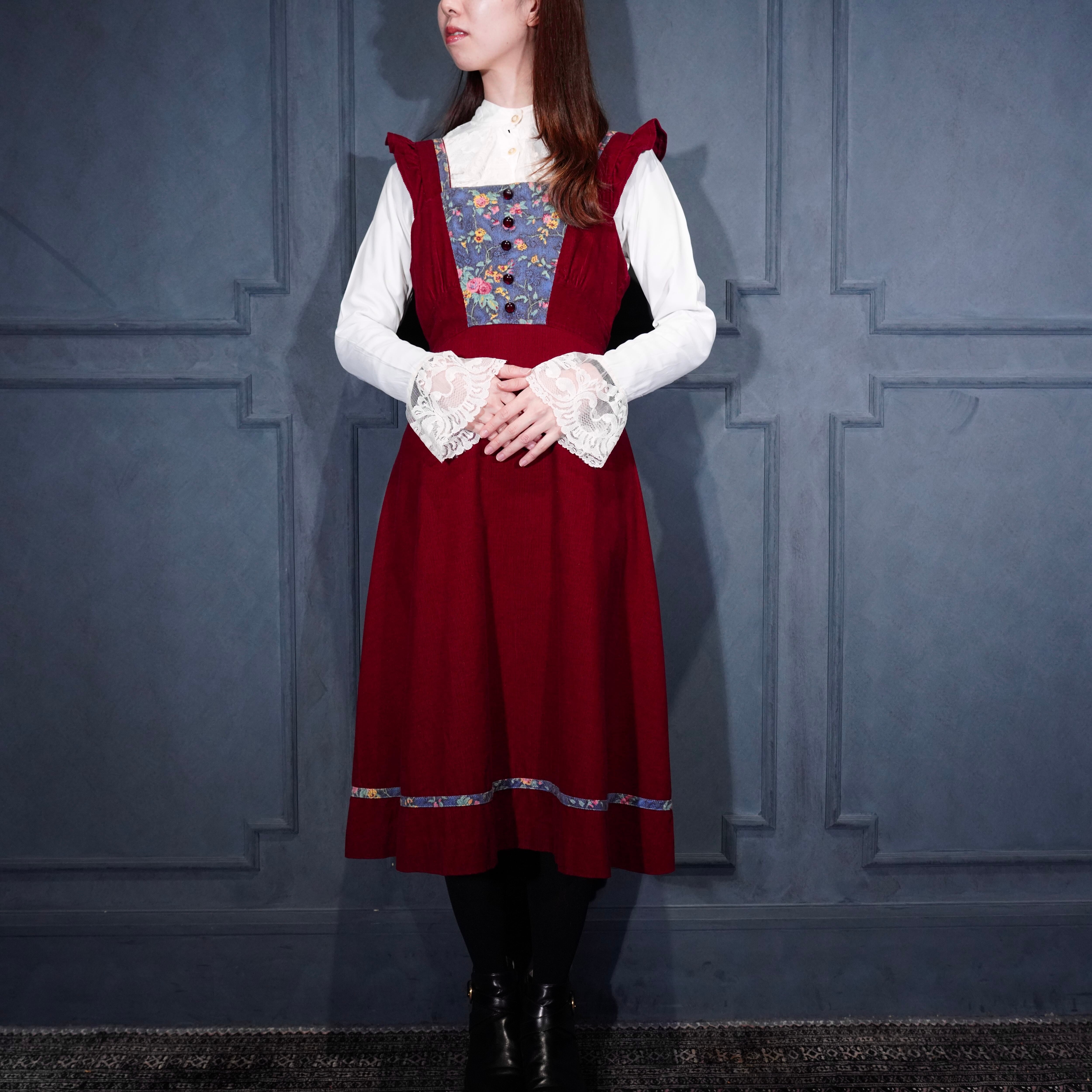 70’s USA VINTAGE Sears FLOWER PATTERNED SWITCHED BACK RIBBON FRILL DESIGN CORDULOY NO SLEEVE ONE PIECE/70年代アメリカ古着シアーズお花柄切り替えバックリボンフリルデザインコーデュロイワンピース