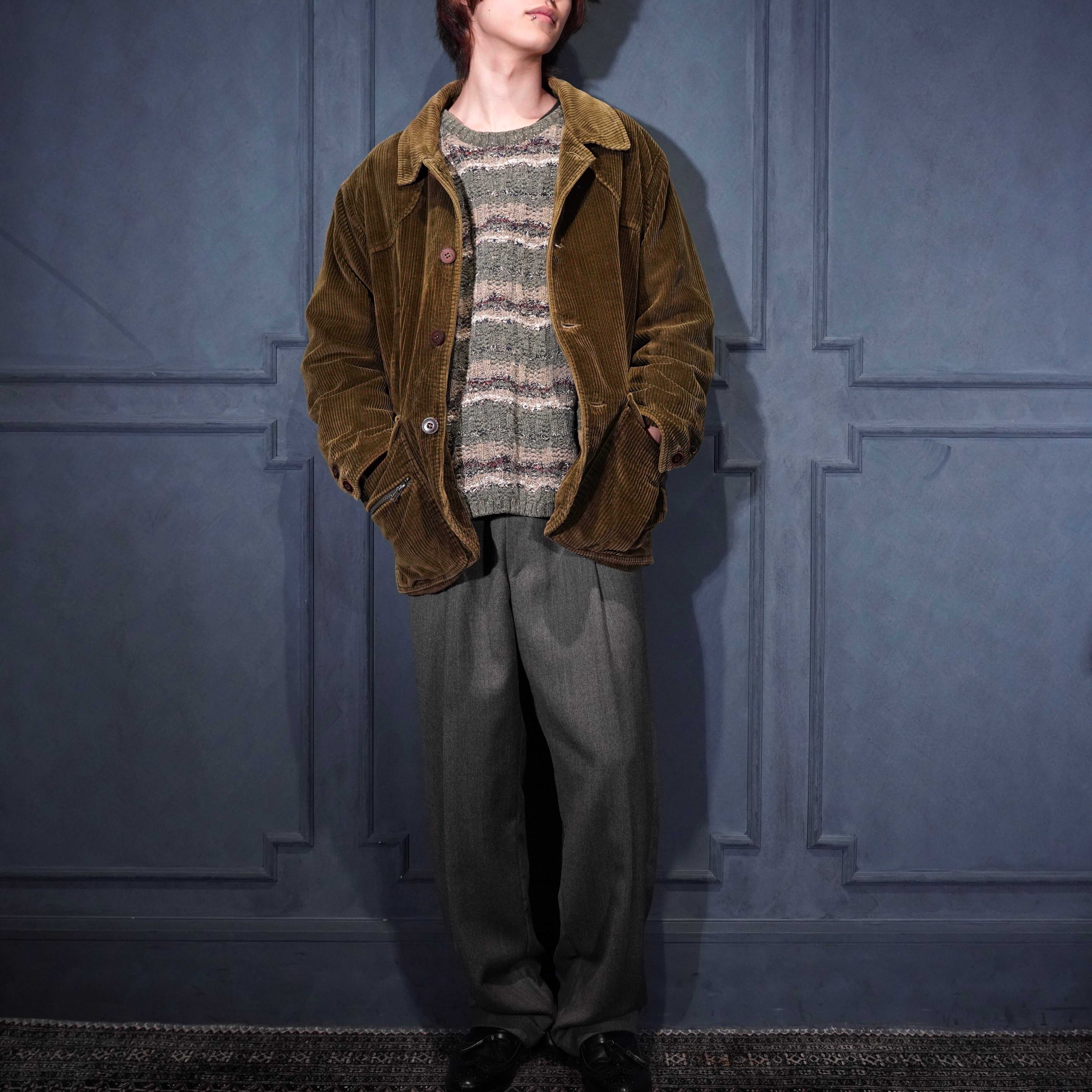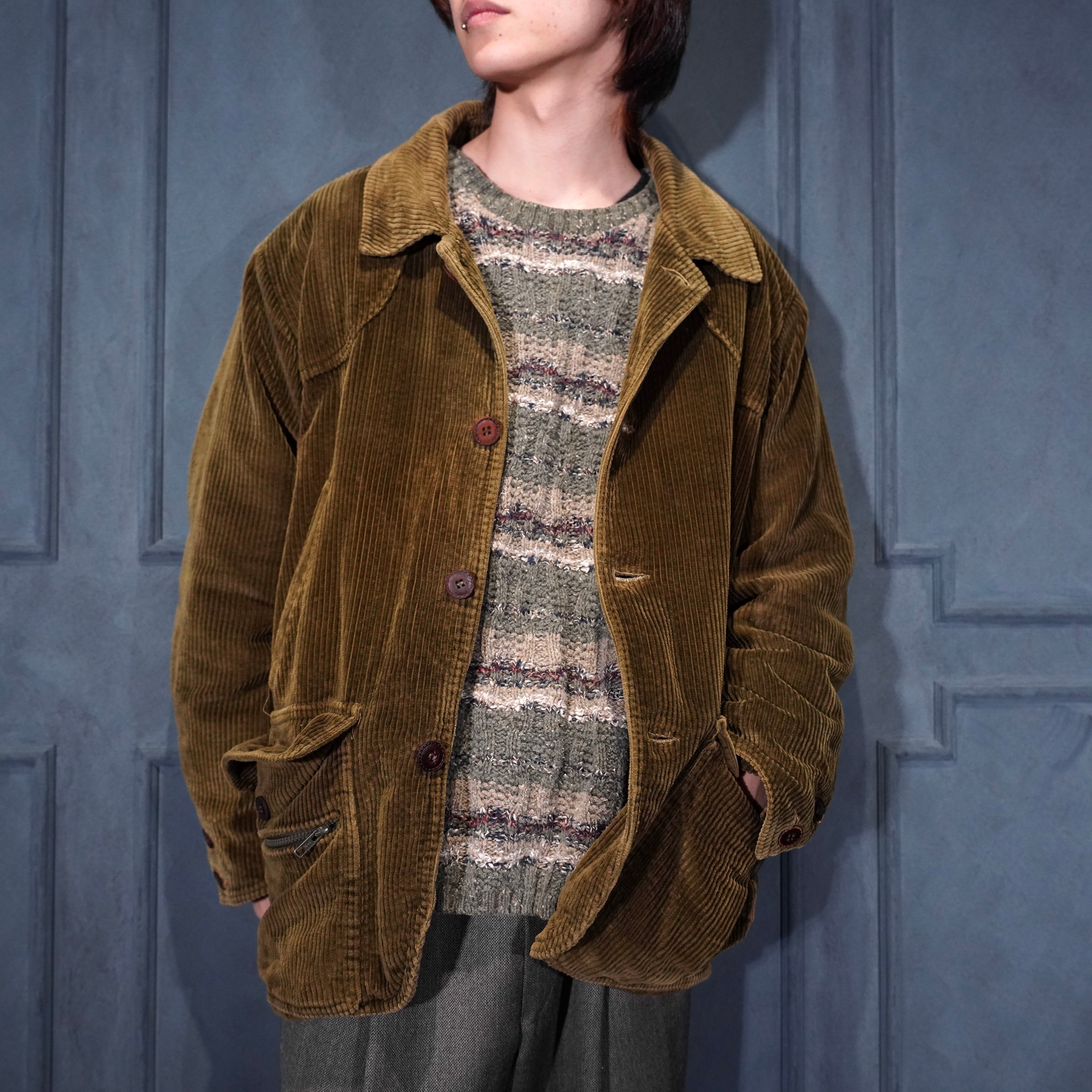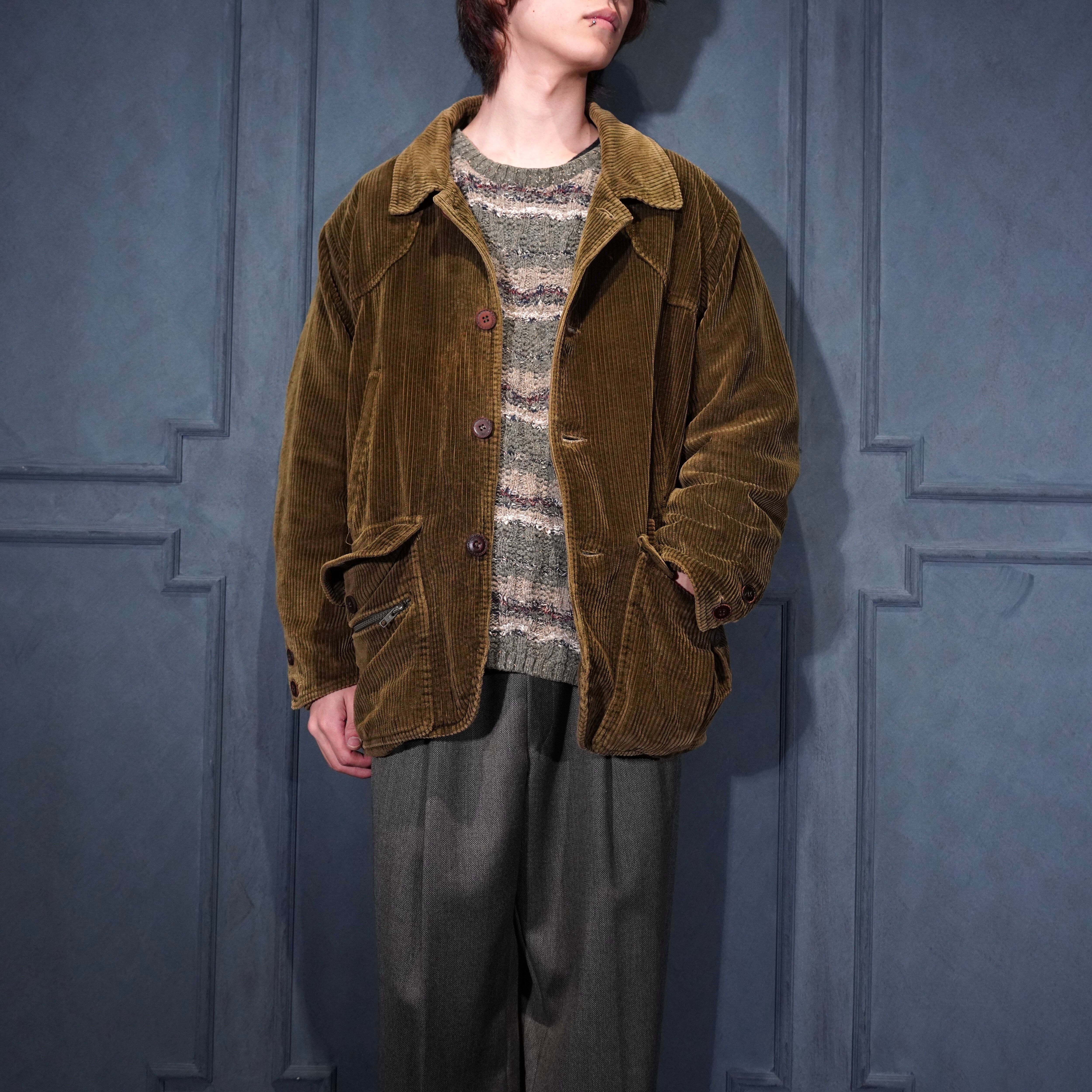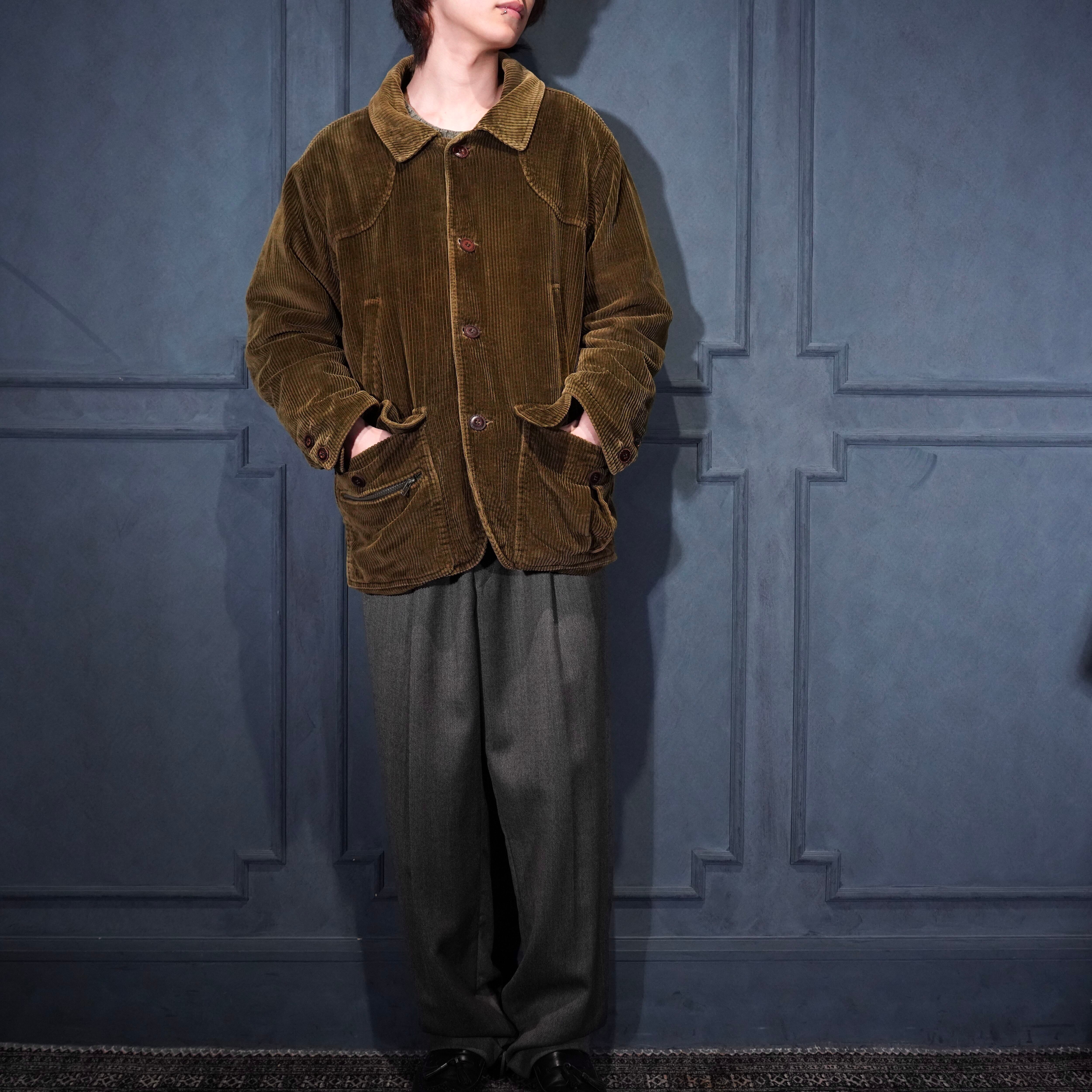 EU VINTAGE VELLUTO DUCA VISCONTI DI MODRONE VELVIS SPA UNIVERSE WIDE PITCH CORDULOY HUNTING JACKET MADE IN ITALY/ヨーロッパ古着ワイドピッチコーデュロイハンティングジャケット