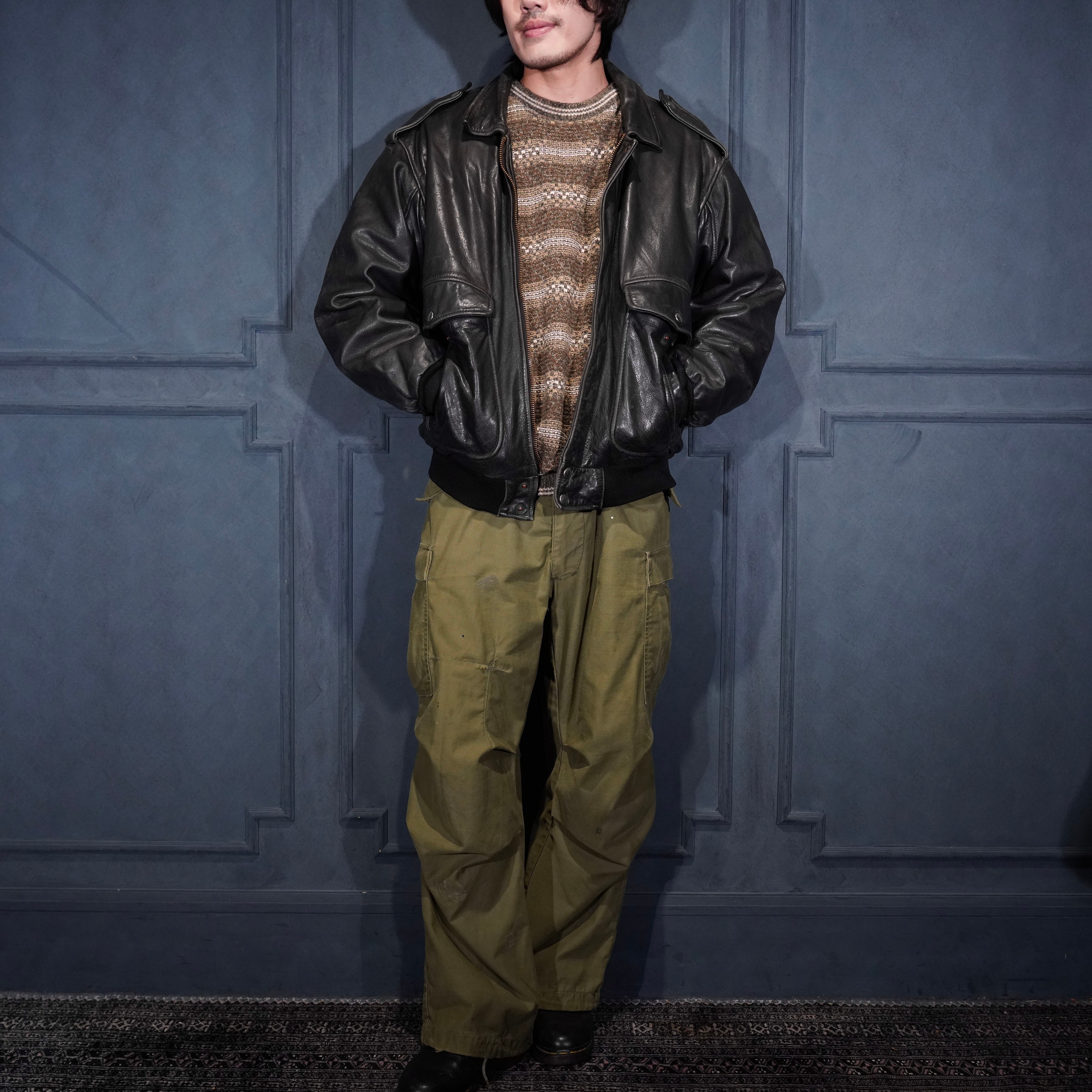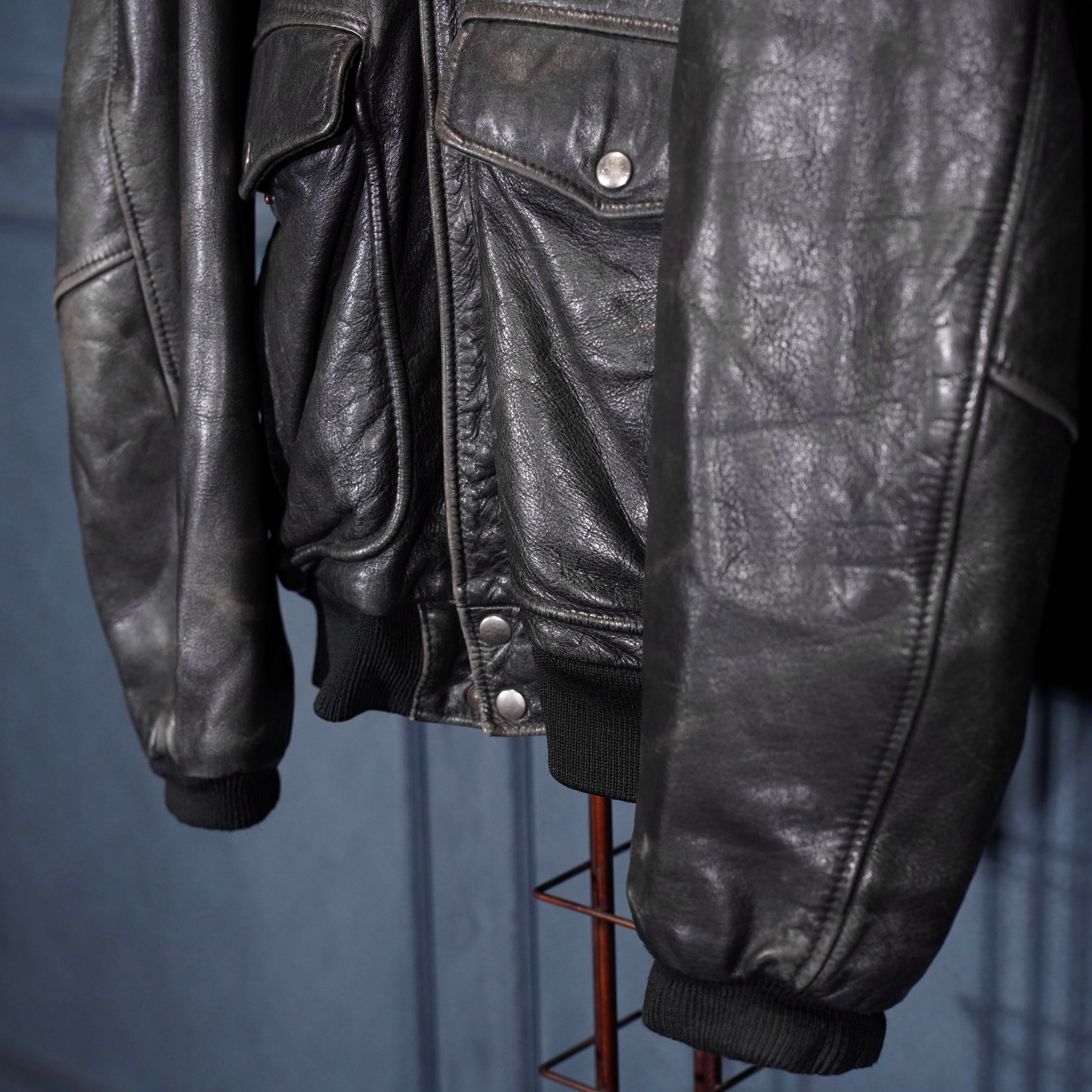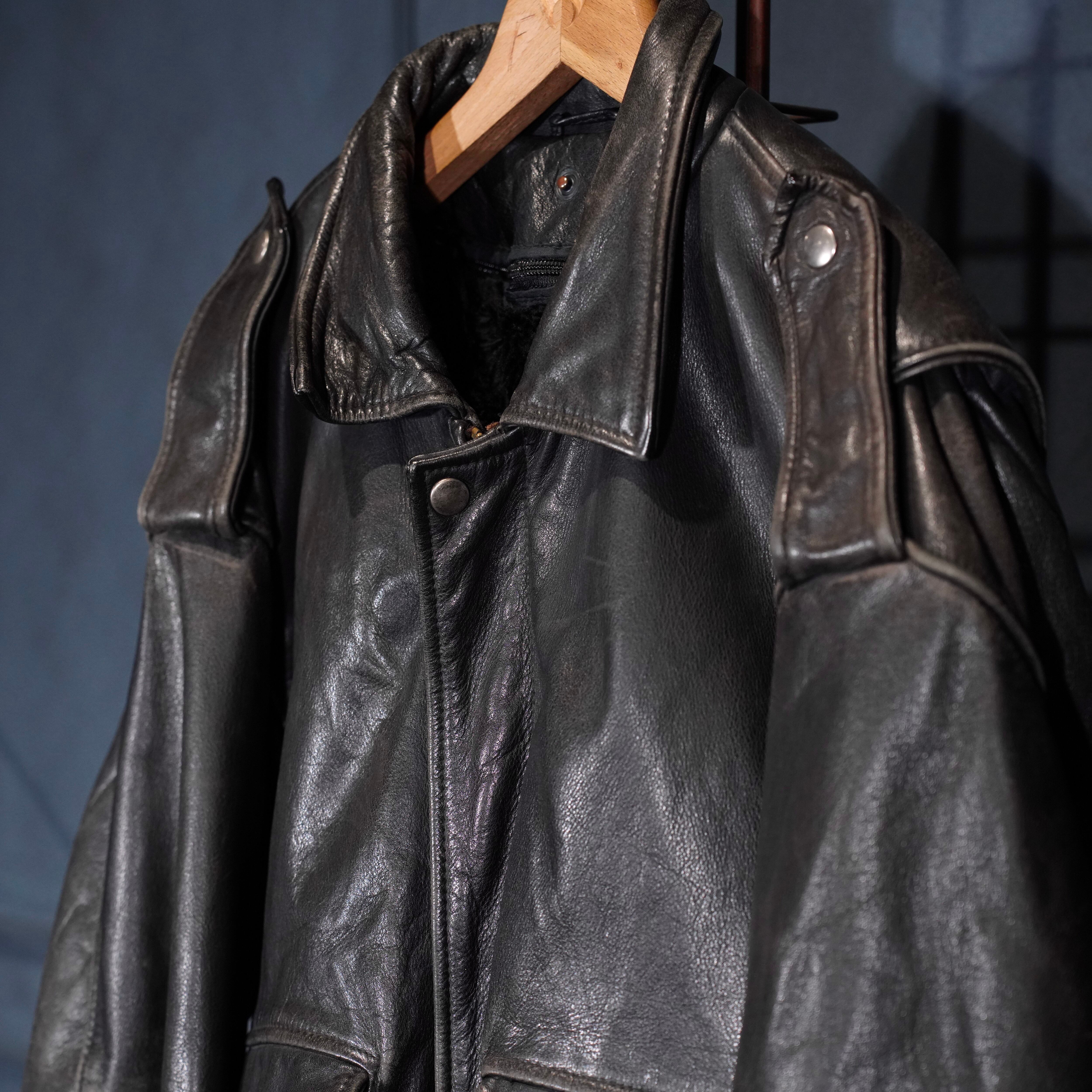 EU VINTAGE PILOT FUR LINER DESIGN LEATHER ZIP UP BLOUSON/ヨーロッパ古着ファーライナーデザインレザージップアップブルゾン