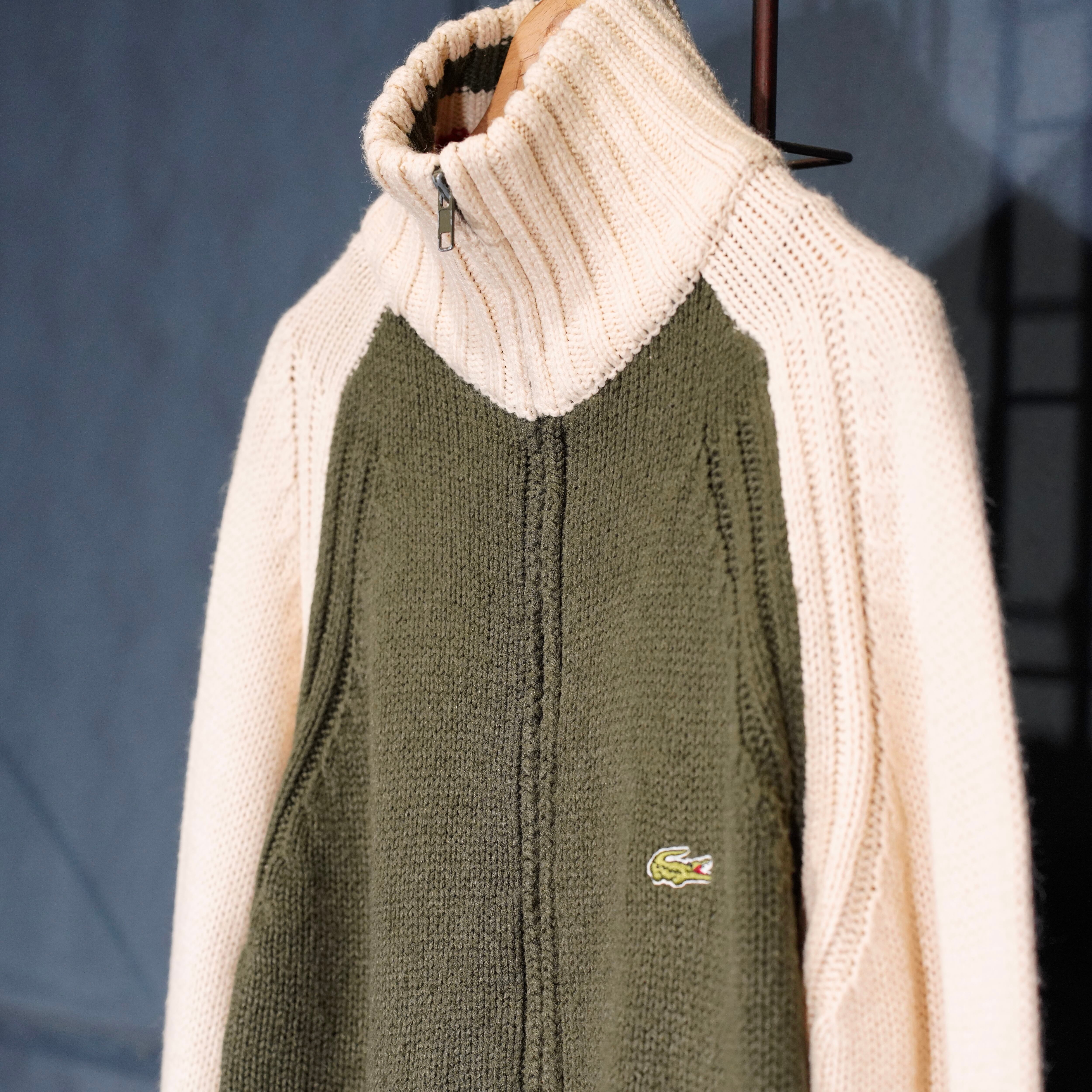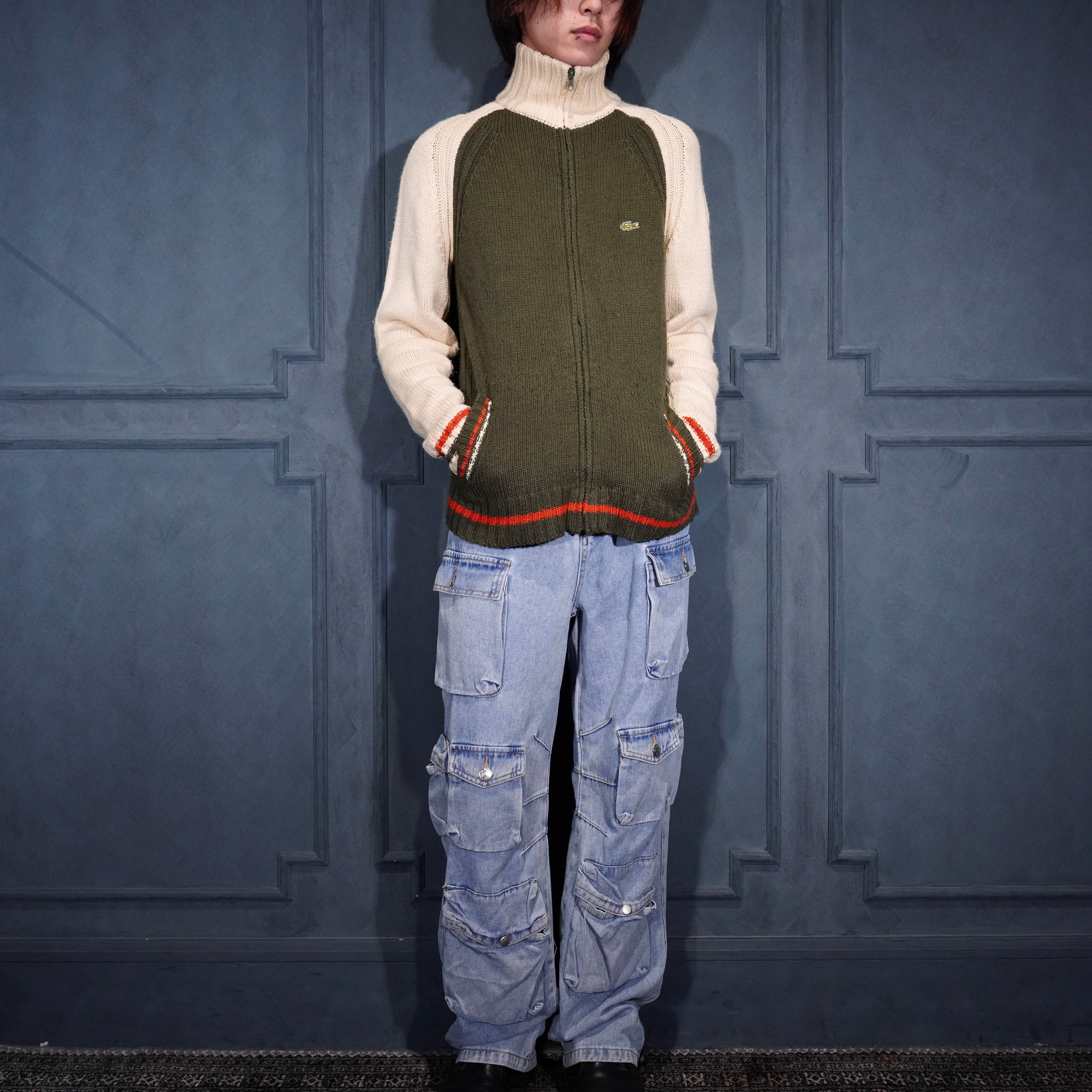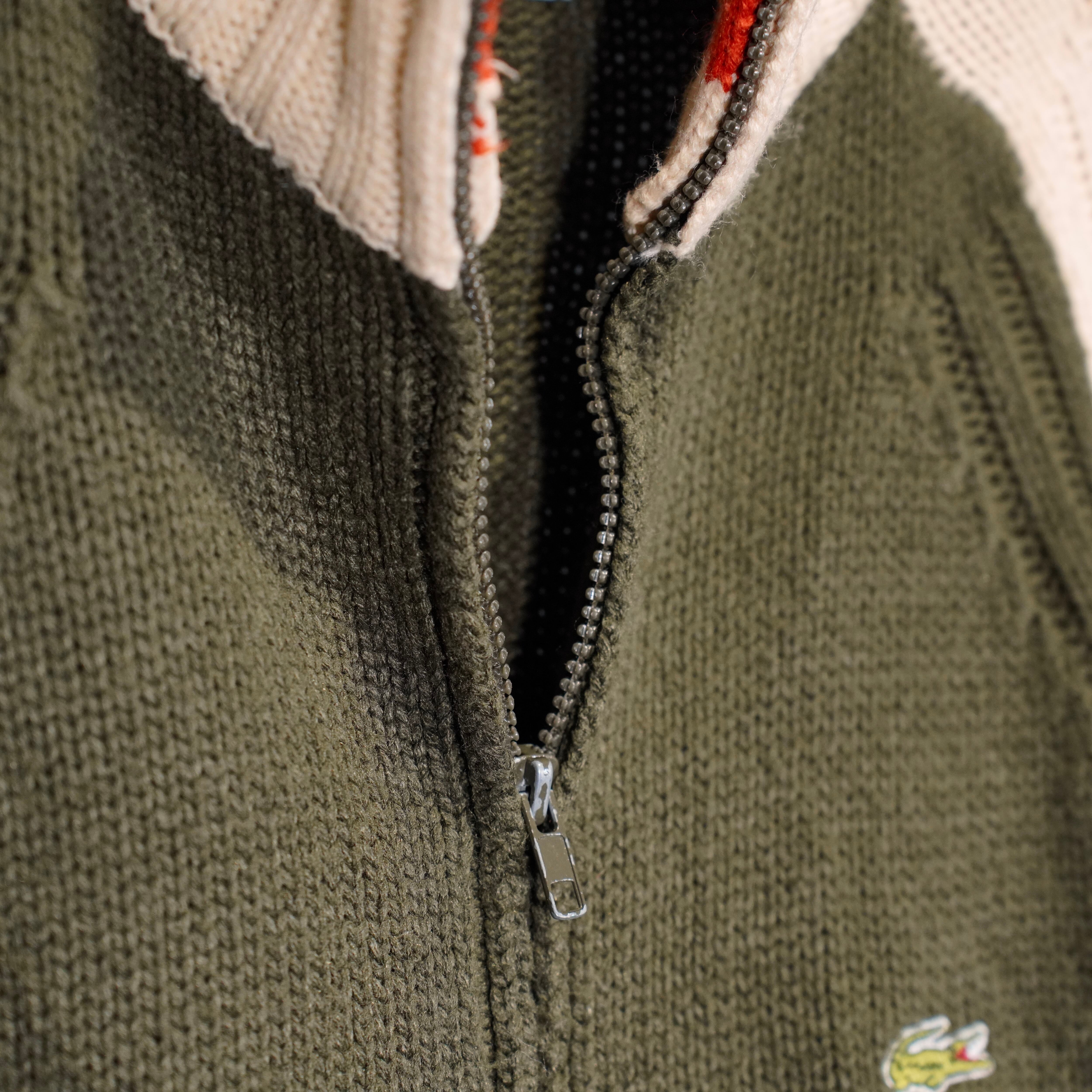 EU VINTAGE LACOSTE LOGO EMBROIDERY DESIGN ZIP UP DRIVERS KNIT BLOUSON/ヨーロッパ古着ラコステロゴ刺繍デザインジップアップドライバーズニットブルゾン