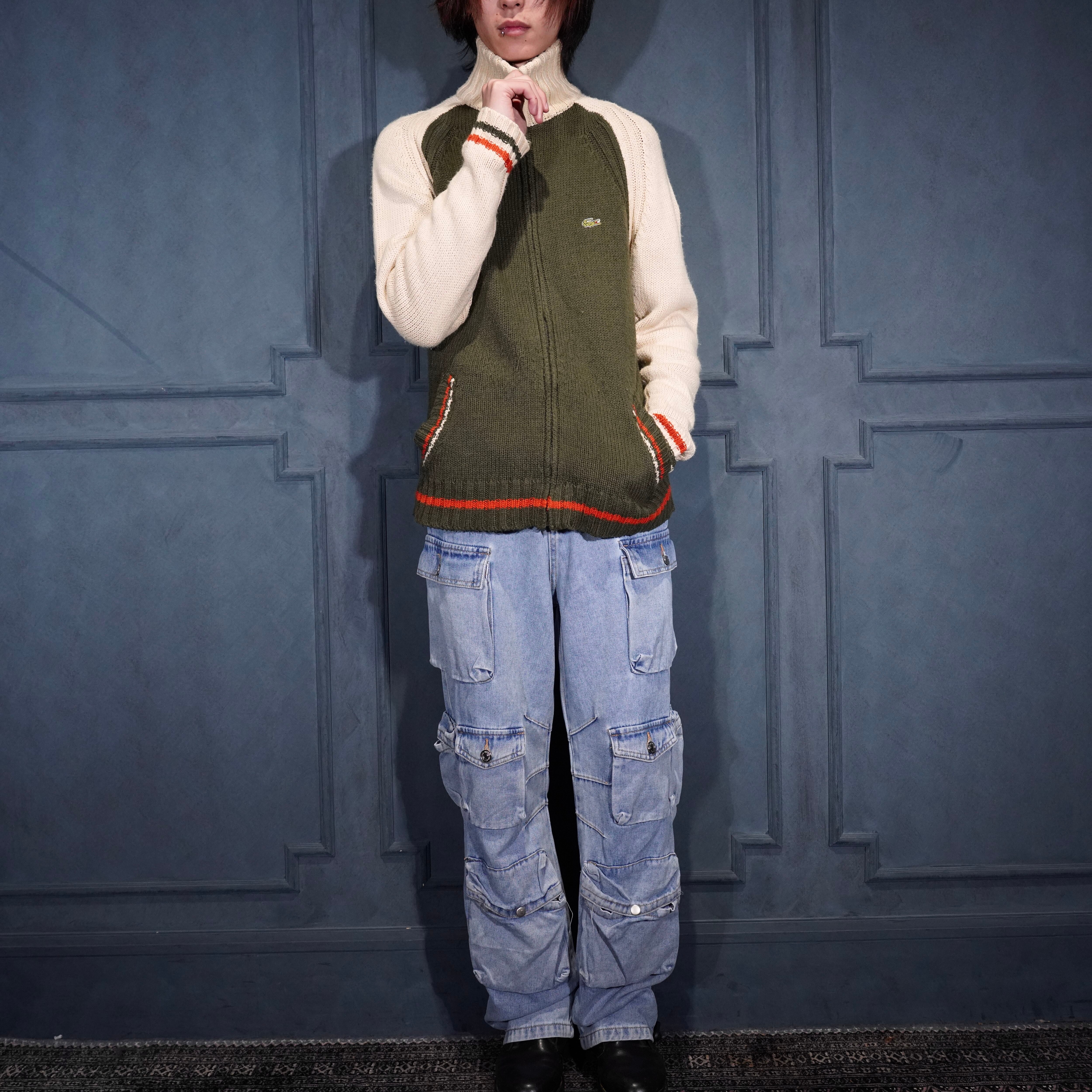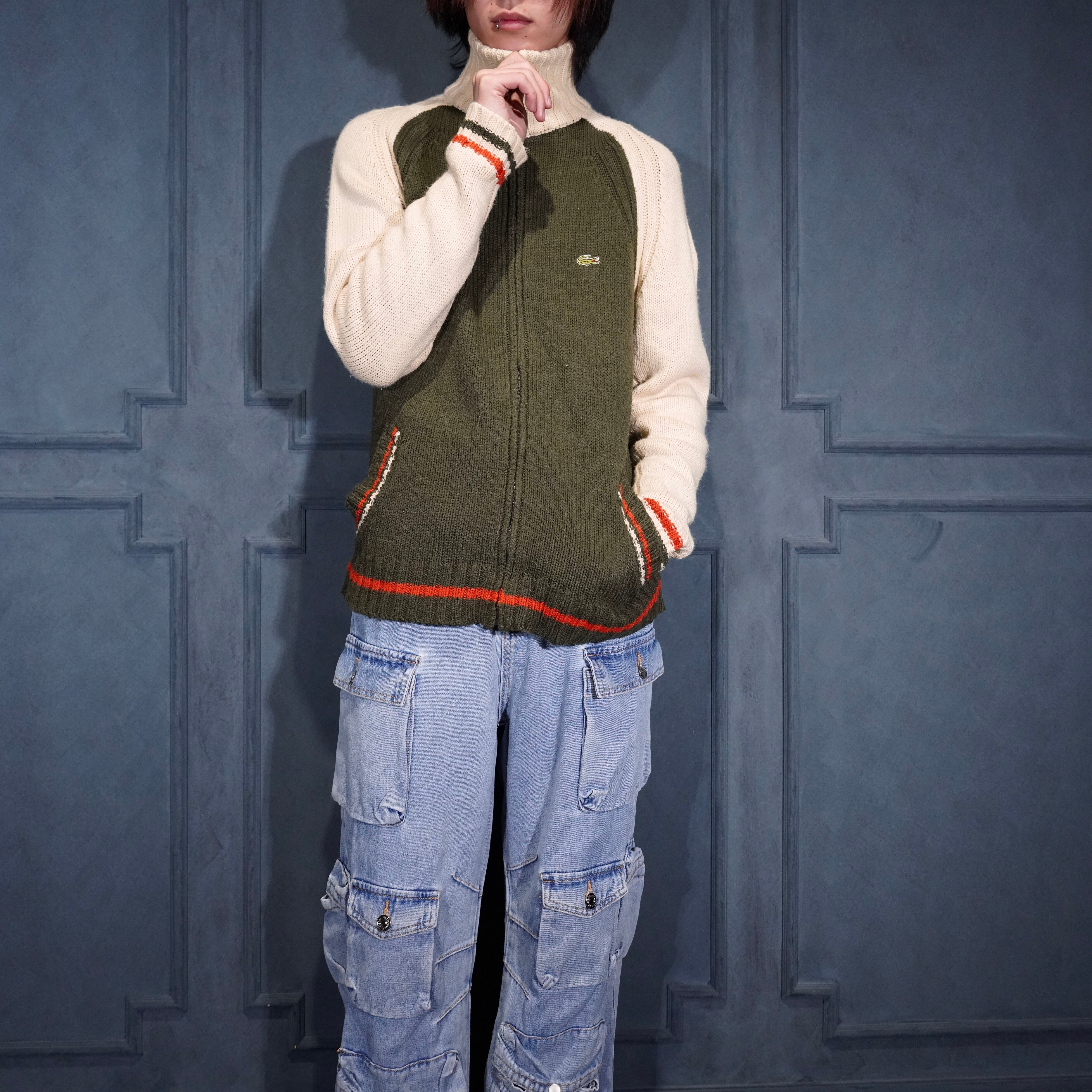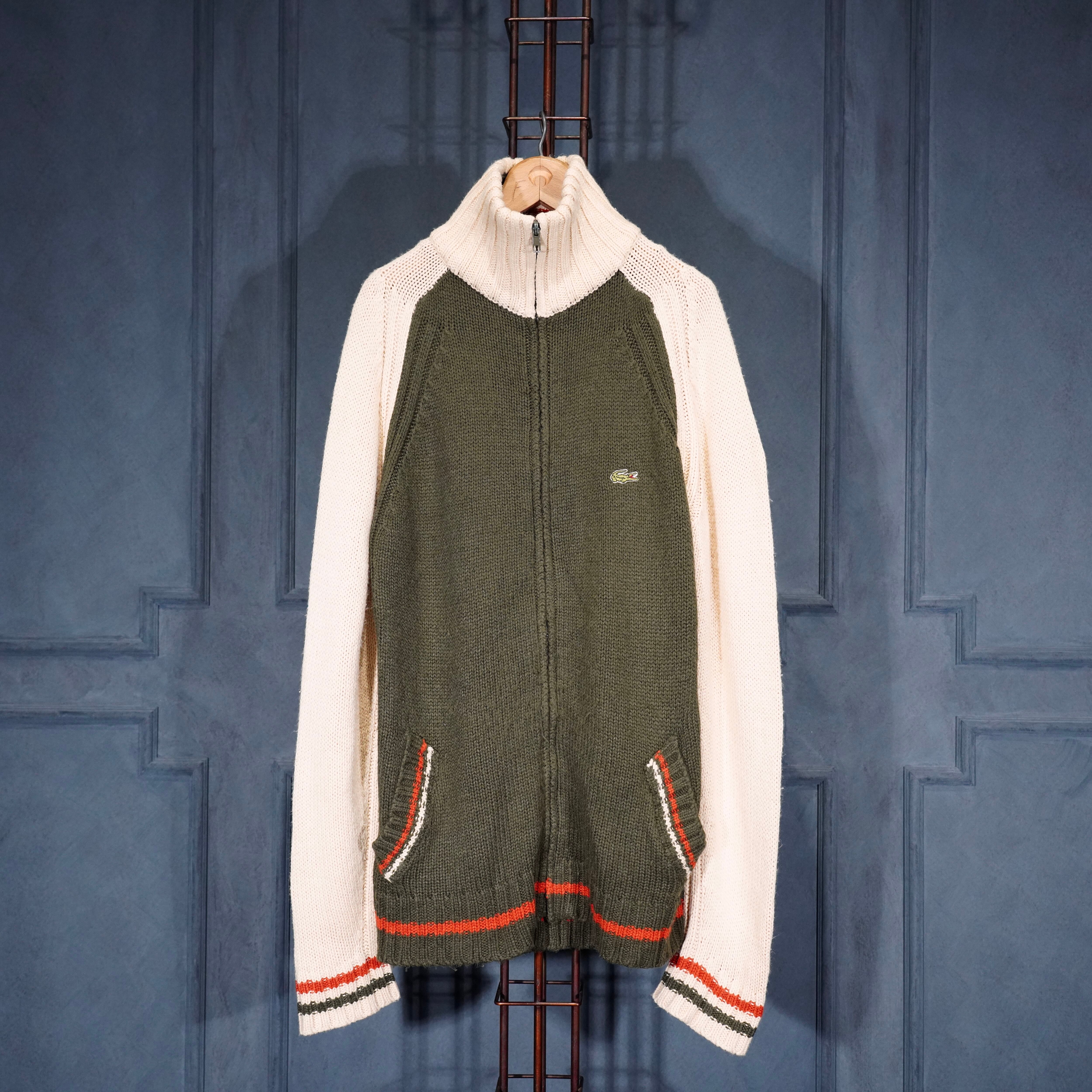 EU VINTAGE LACOSTE LOGO EMBROIDERY DESIGN ZIP UP DRIVERS KNIT BLOUSON/ヨーロッパ古着ラコステロゴ刺繍デザインジップアップドライバーズニットブルゾン