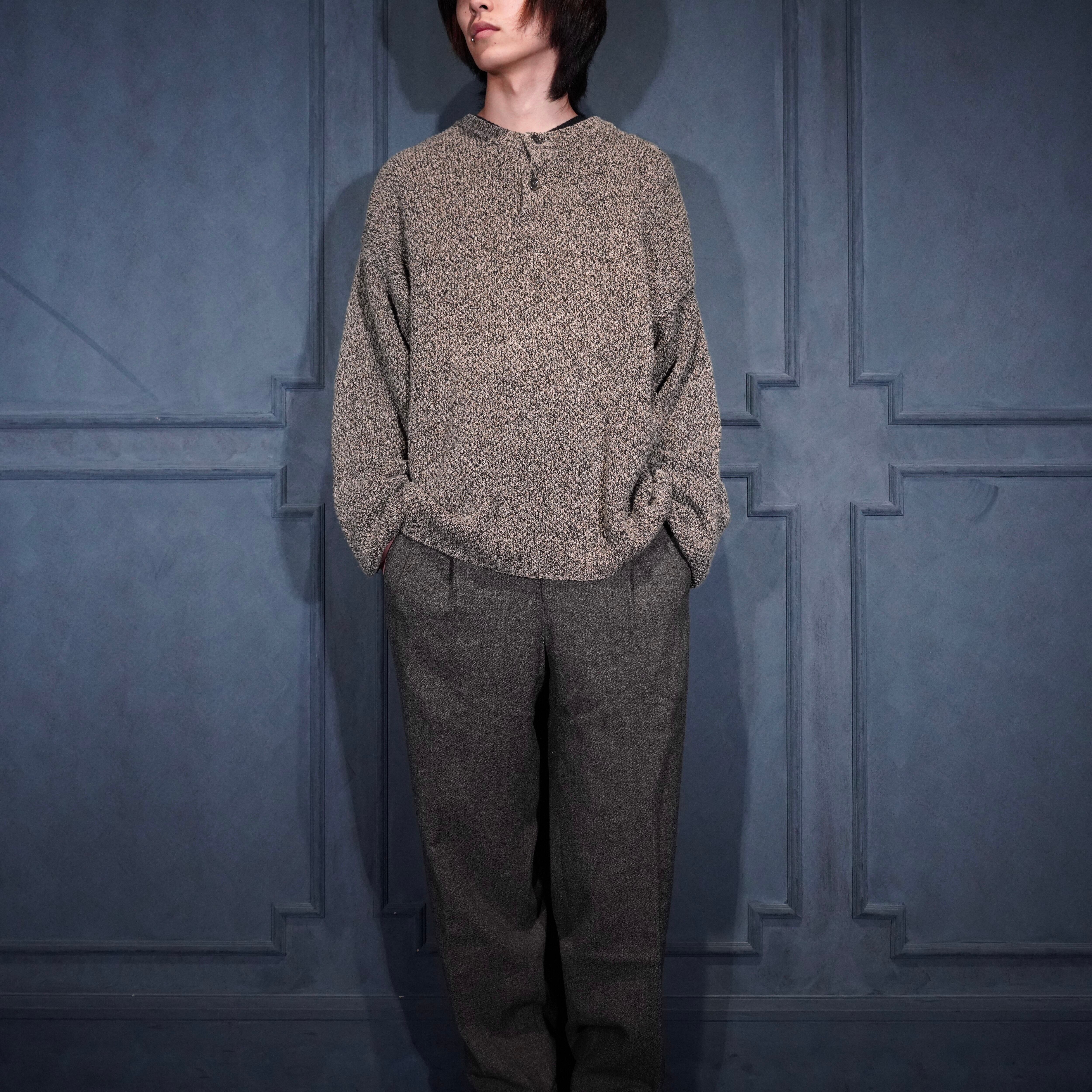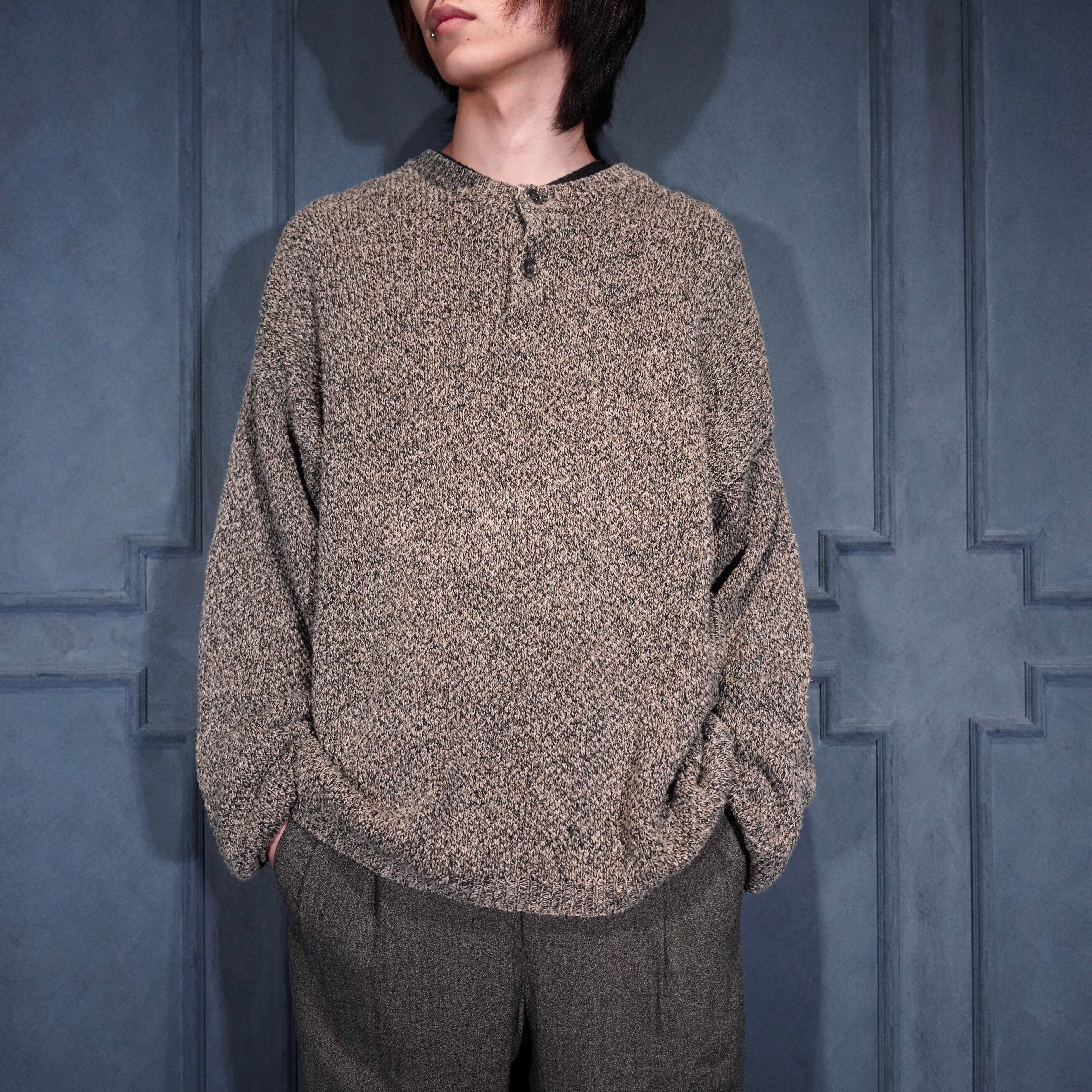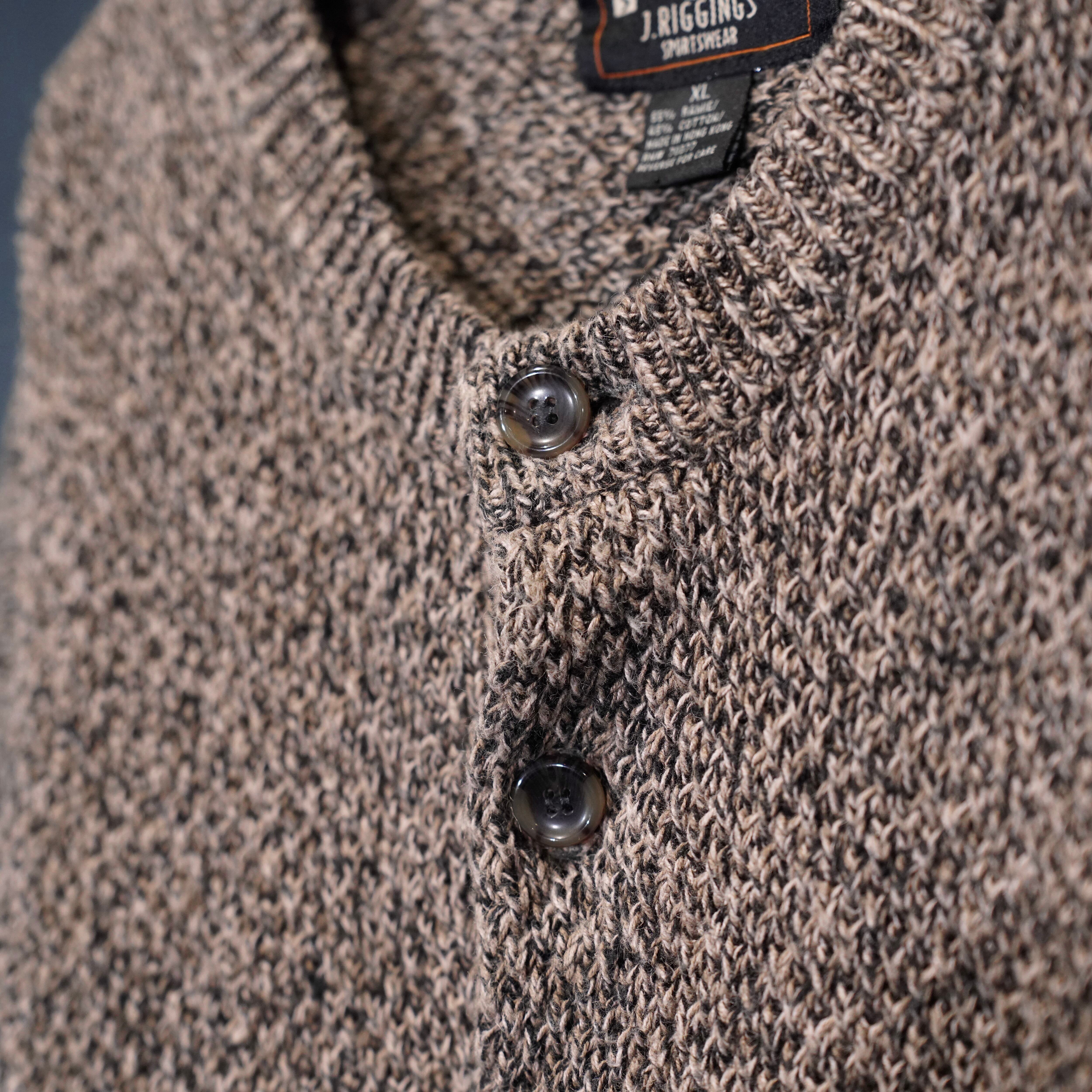 USA VINTAGE J.RIGGINGS WOVEN DESIGN HENRY NECK COTTON KNIT/アメリカ古着織デザインヘンリーネックコットンニット