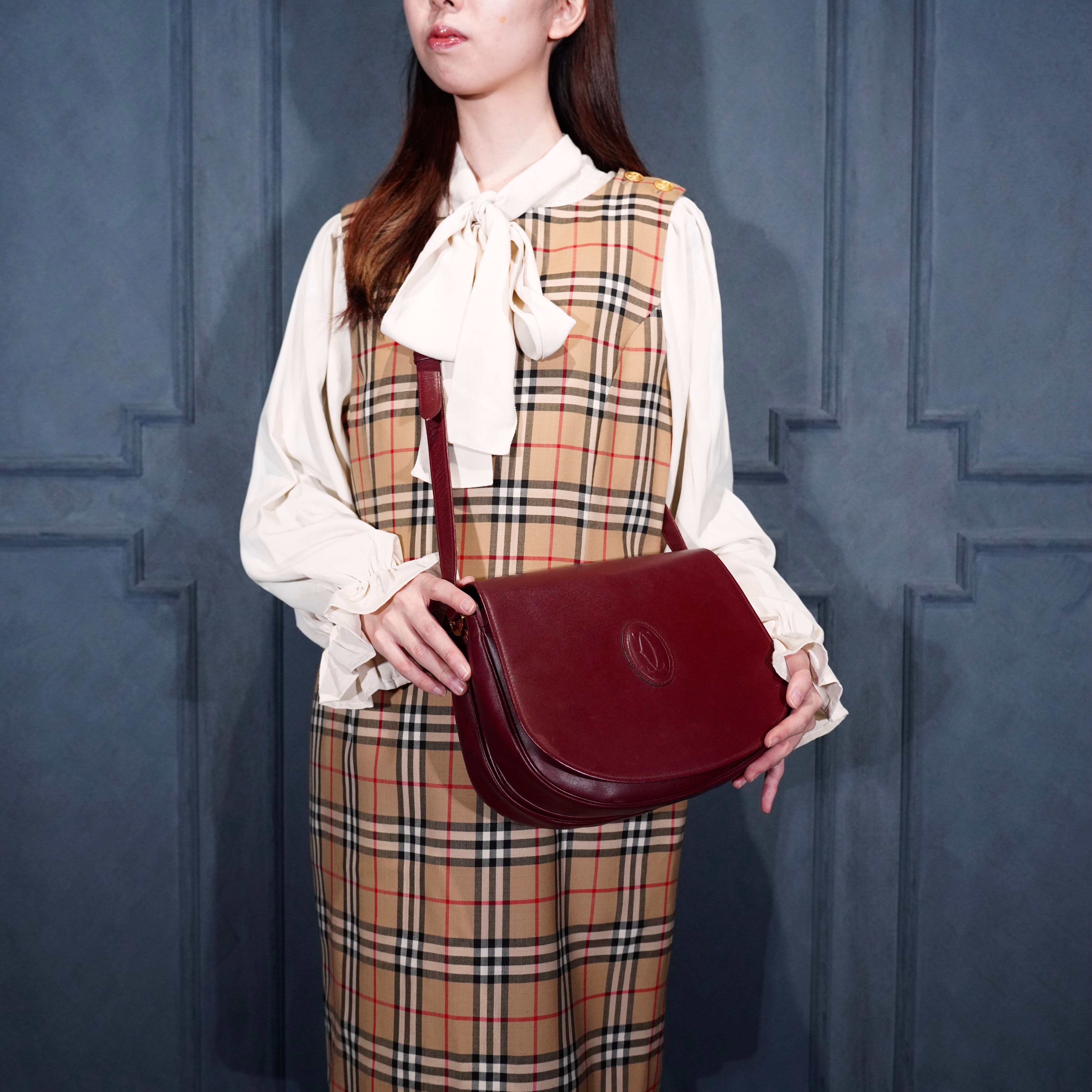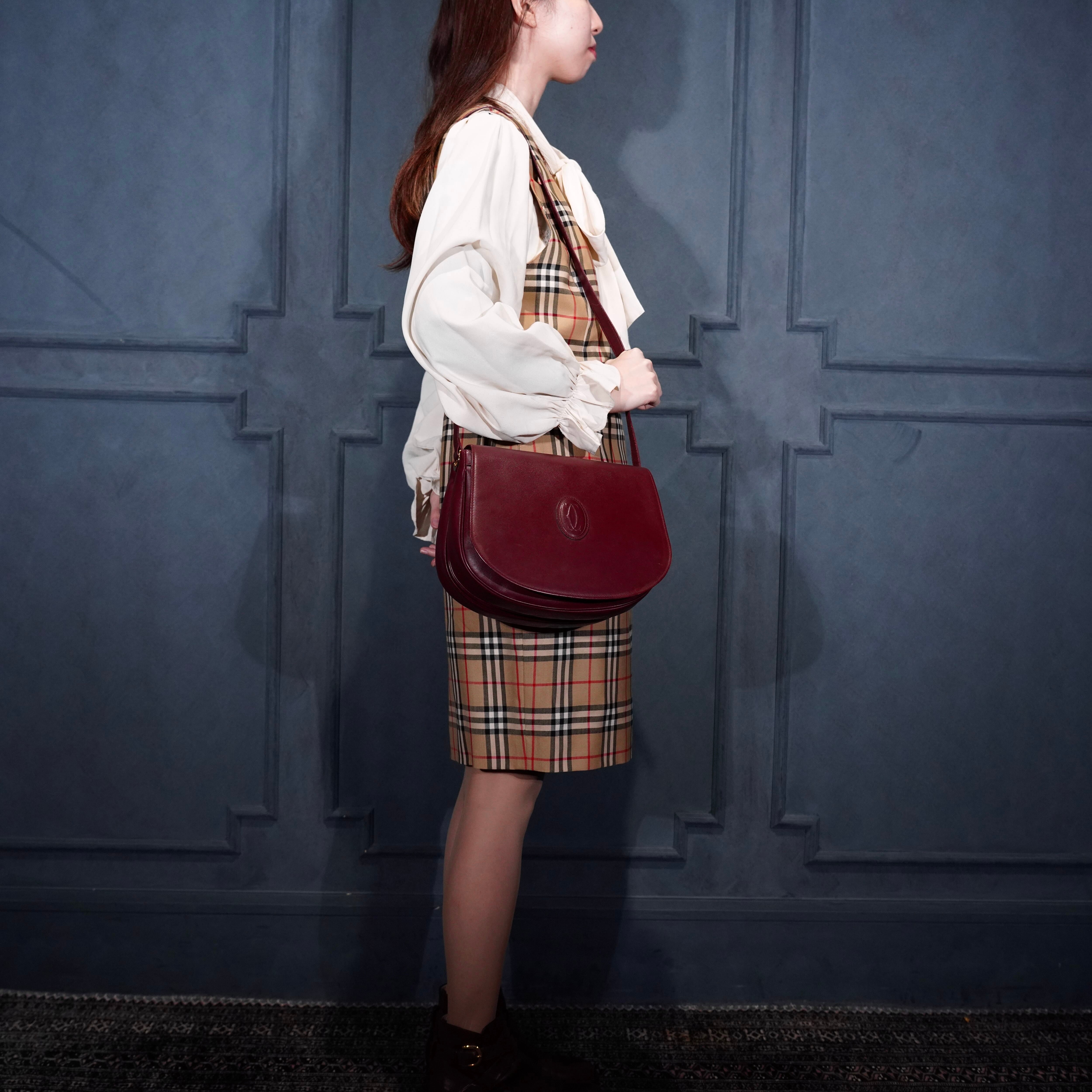 Cartier MUST LINE LOGO EMBOSSED DESIGN LEATHER SHOULDER BAG/オールドマストラインロゴ型押しデザインレザーショルダーバッグ