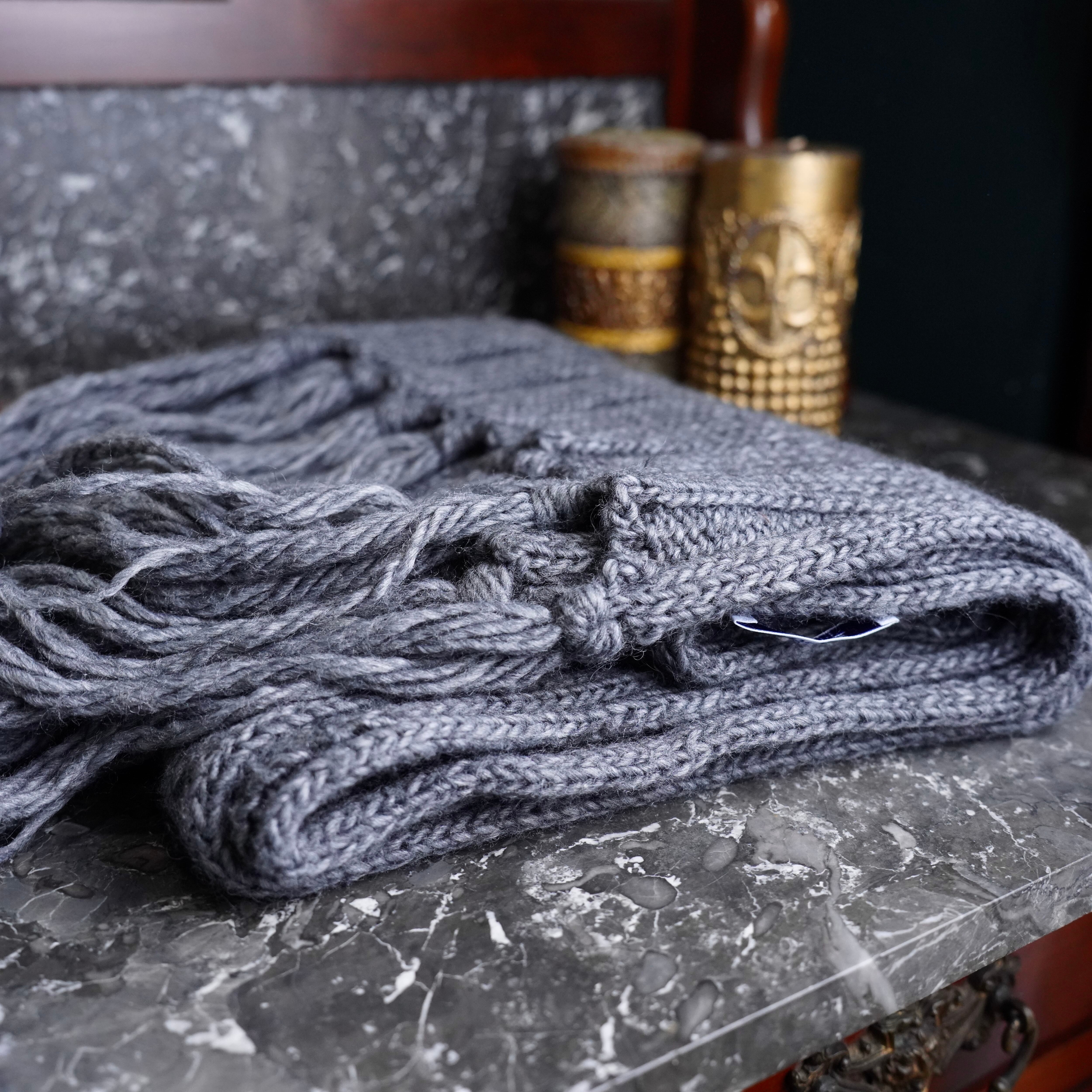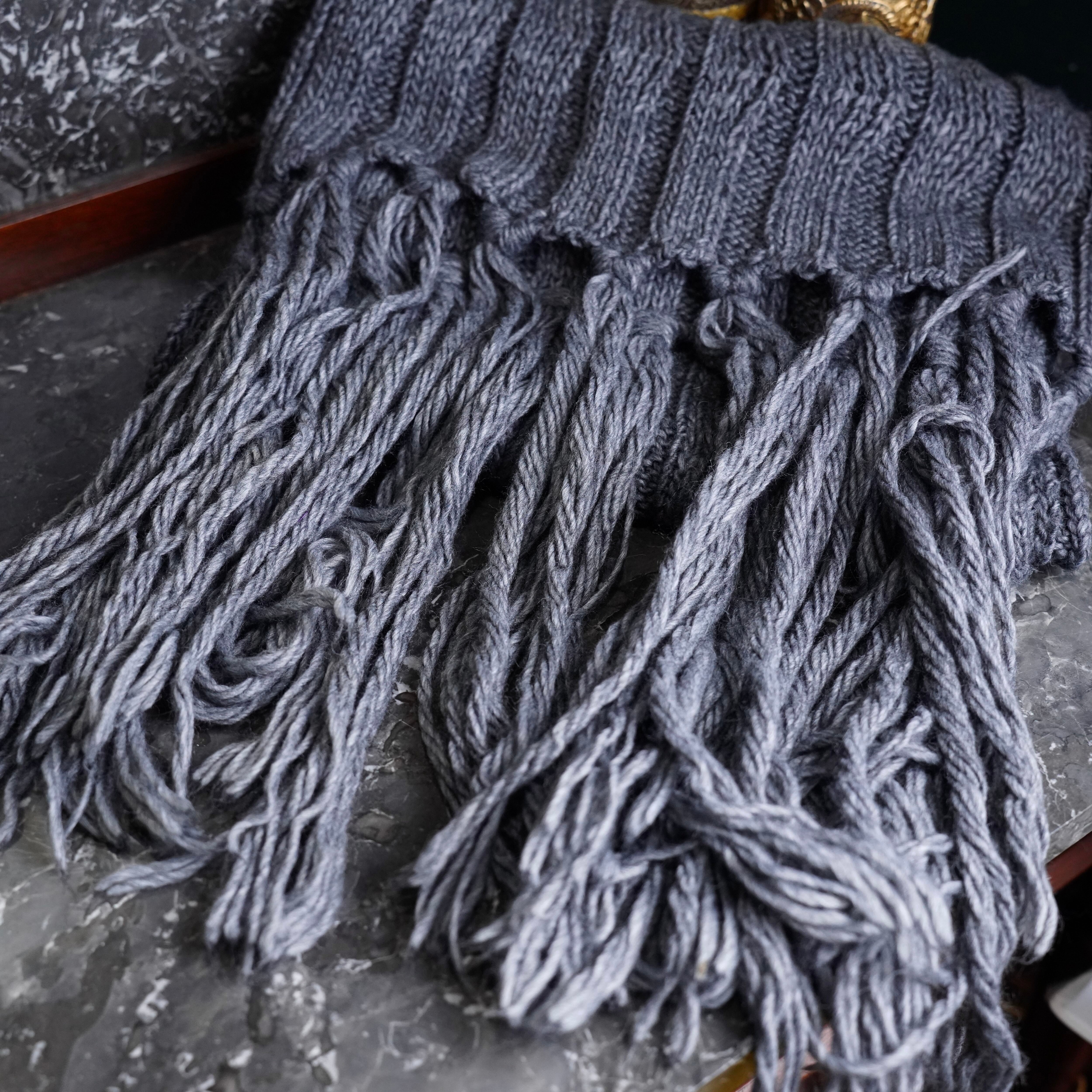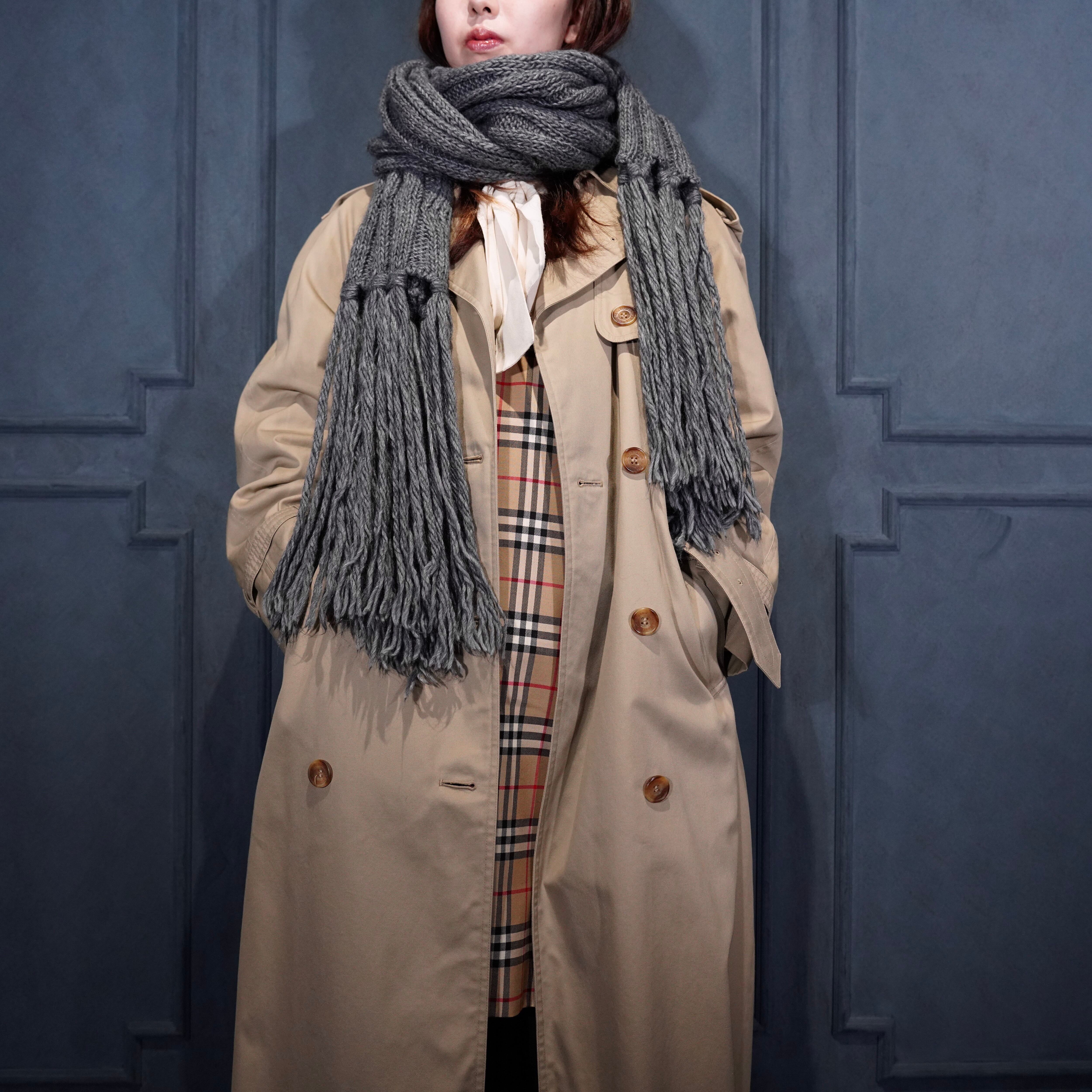 malo CABLE DESIGN FRINGE LONG WOOL MUFULLER/マーロケーブルデザインフリンジロングウールマフラー