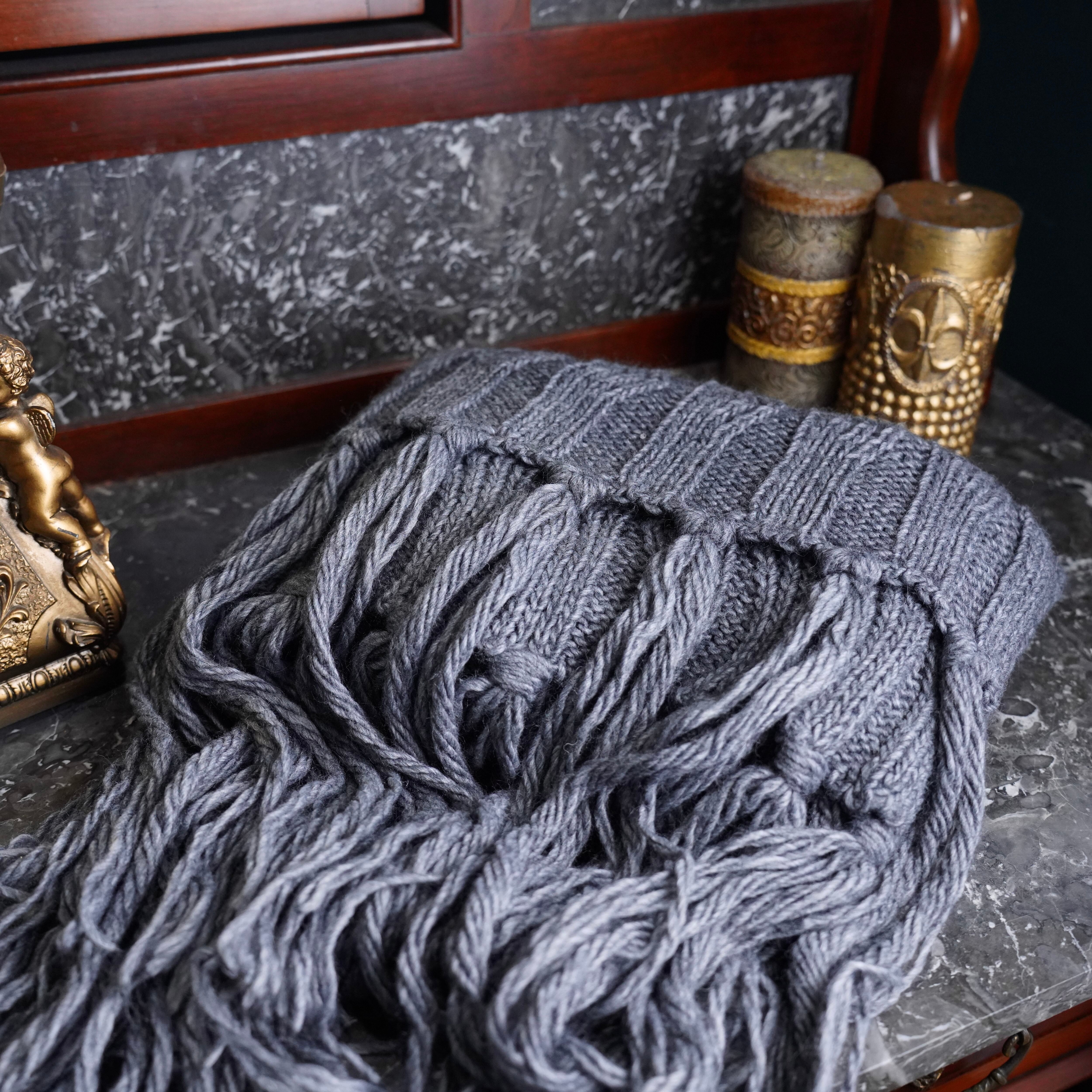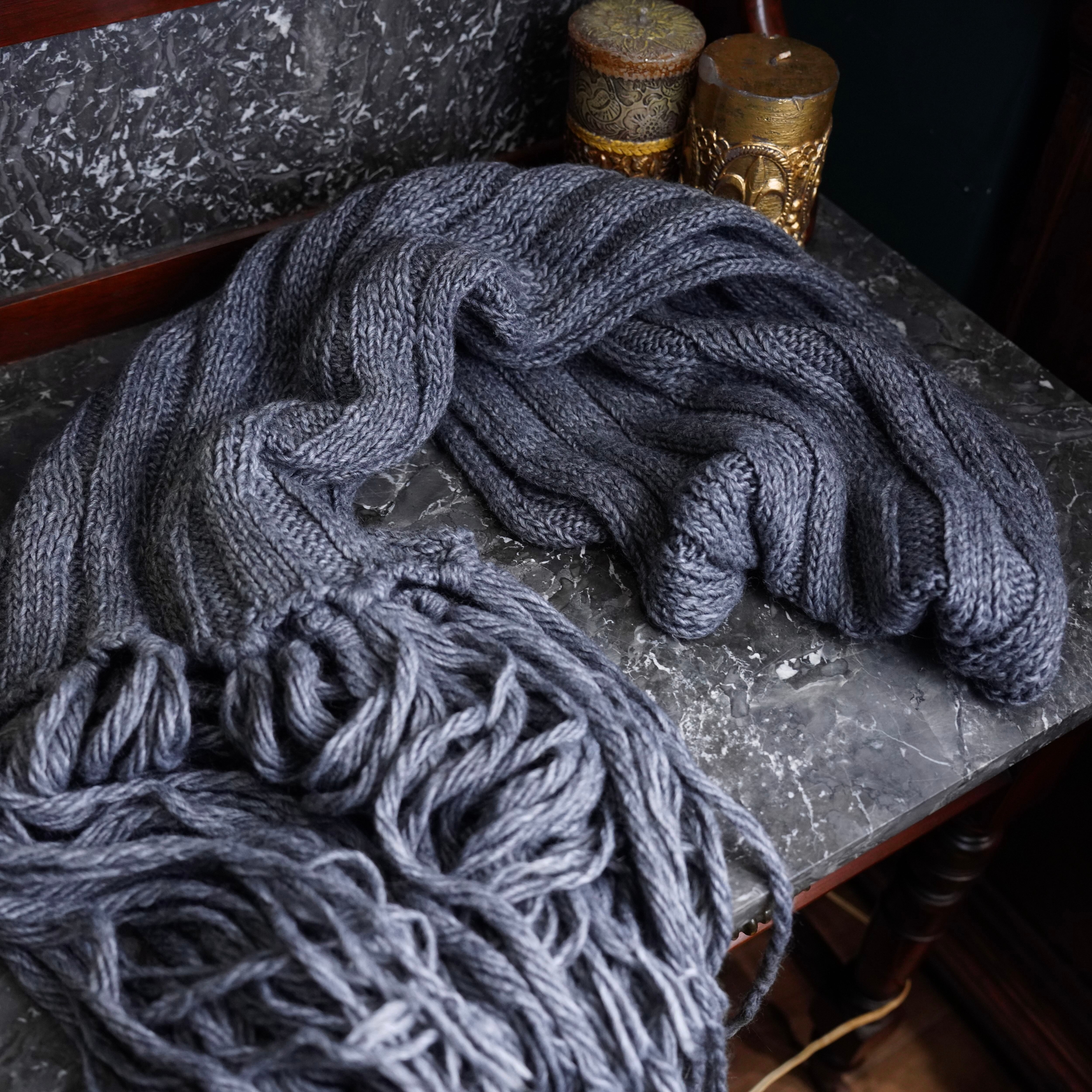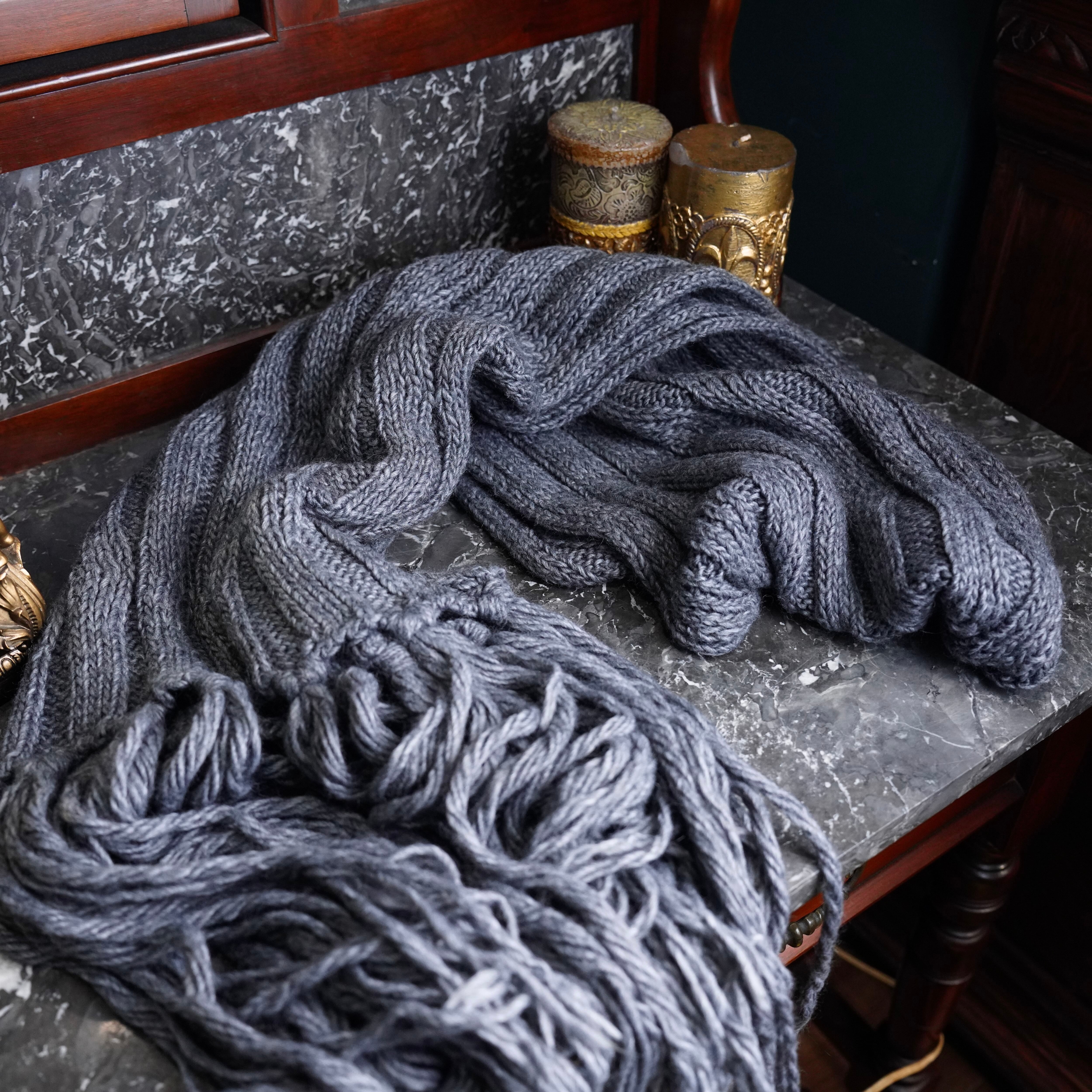 malo CABLE DESIGN FRINGE LONG WOOL MUFULLER/マーロケーブルデザインフリンジロングウールマフラー