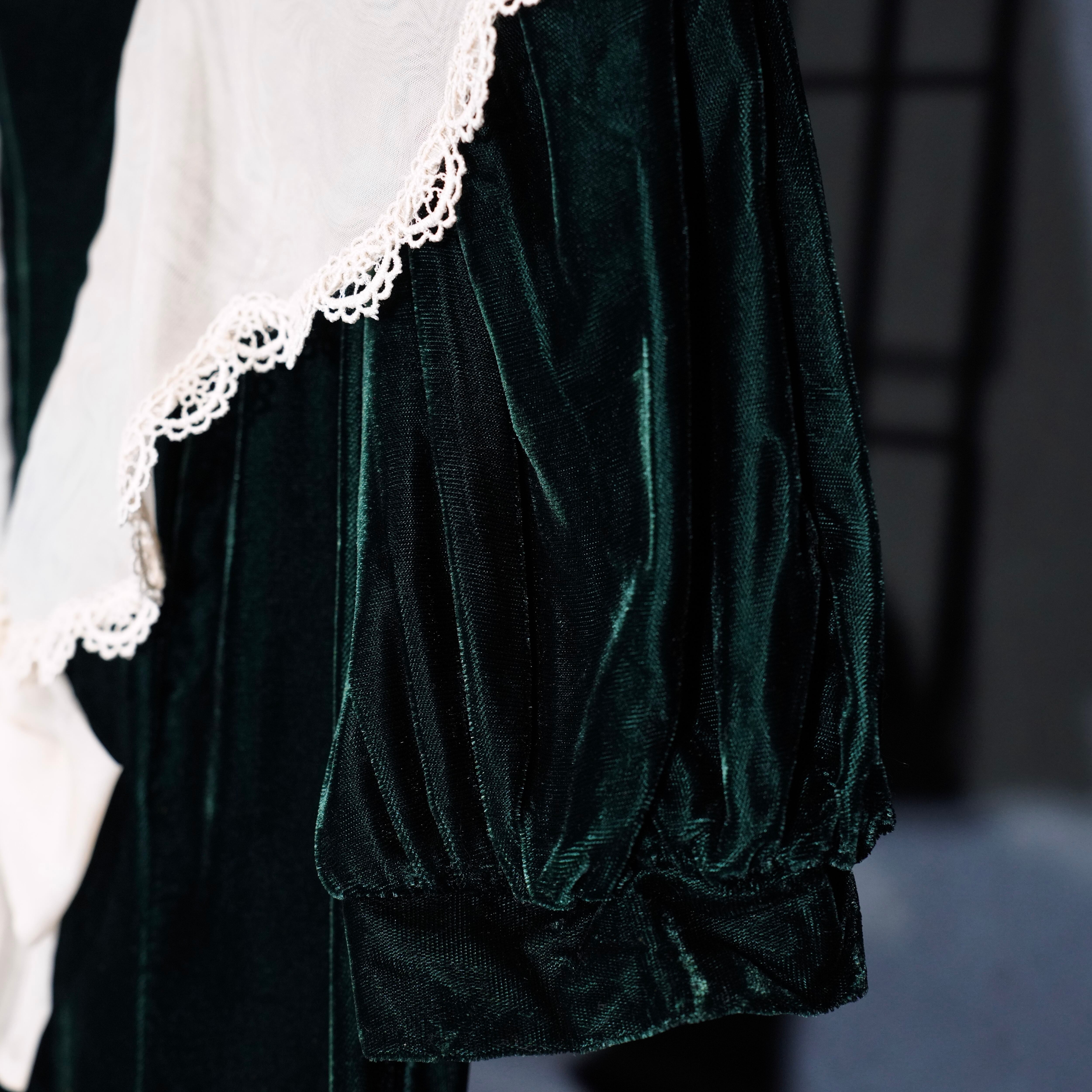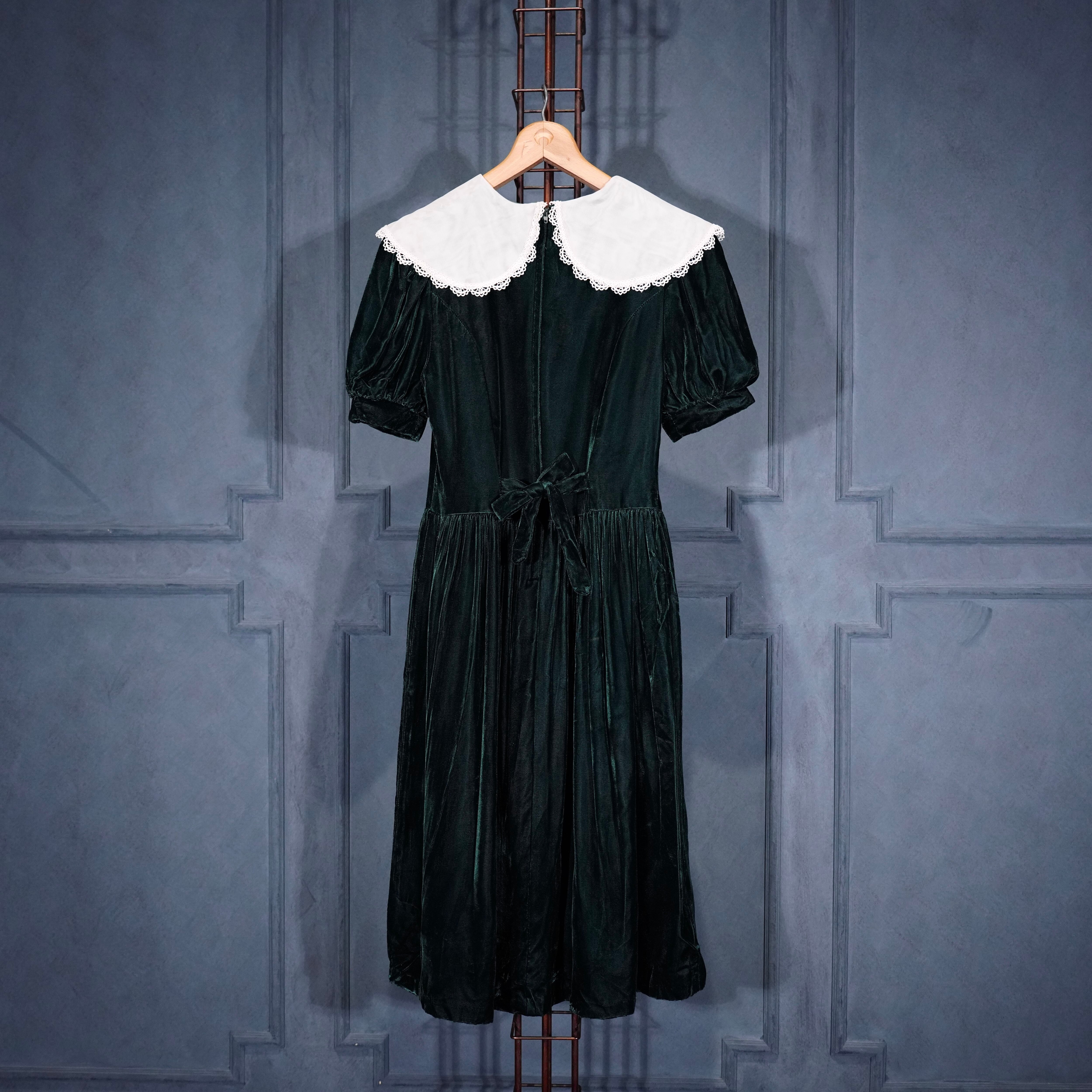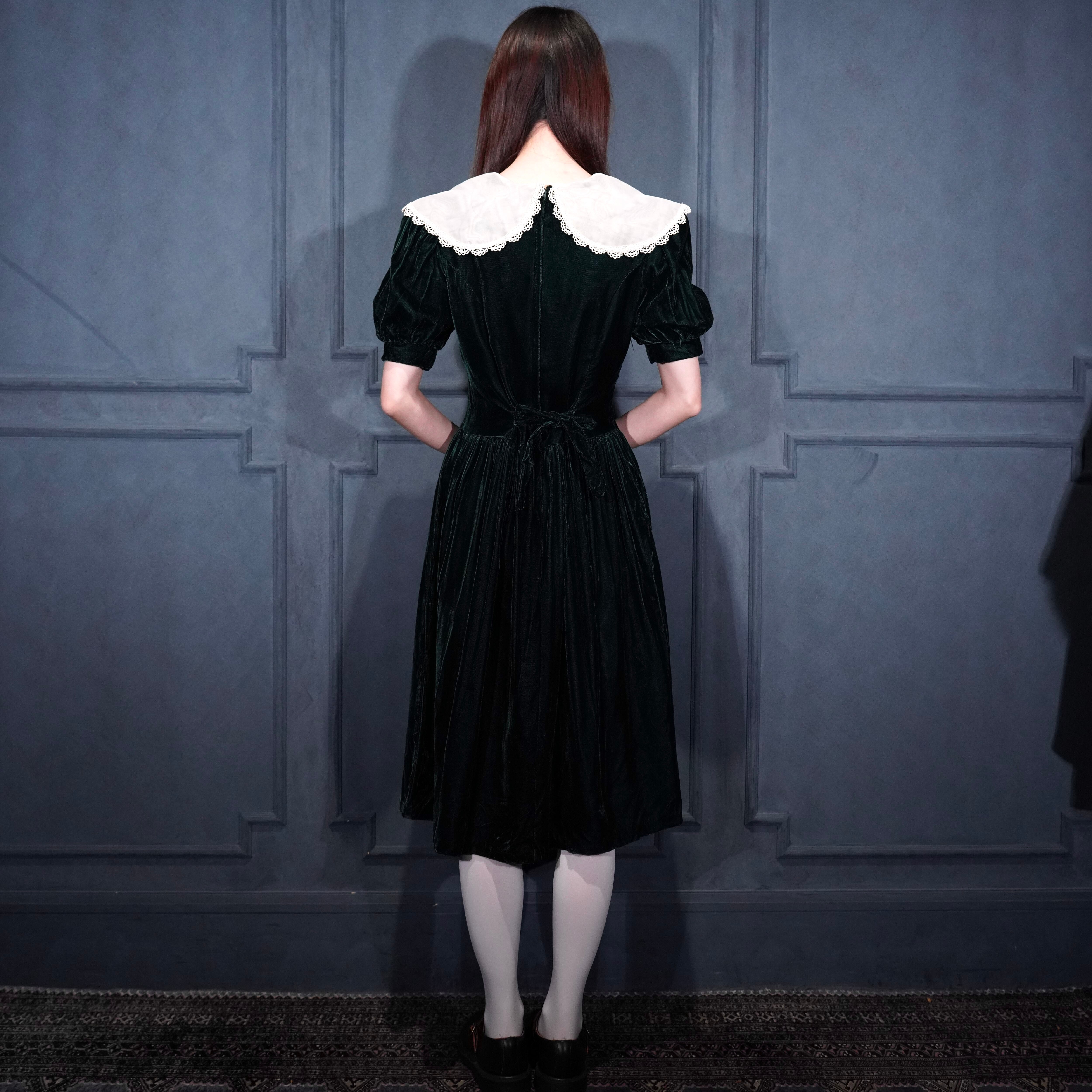 *SPECIAL ITEM* GUNNE SAX By JESSICA McCLINTOCK LACE BIG COLLAR RIBBON DESIGN VELOUR ONE PIECE/アメリカ古着ガニーサックスレースビッグカラーリボンデザインベロアワンピース