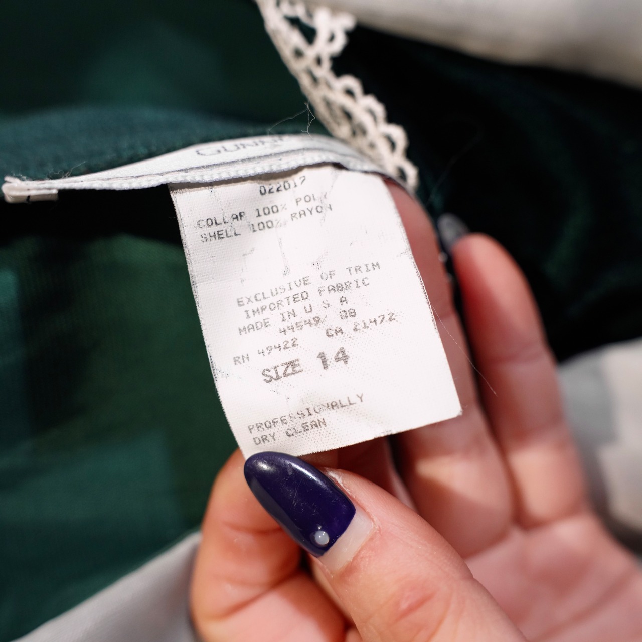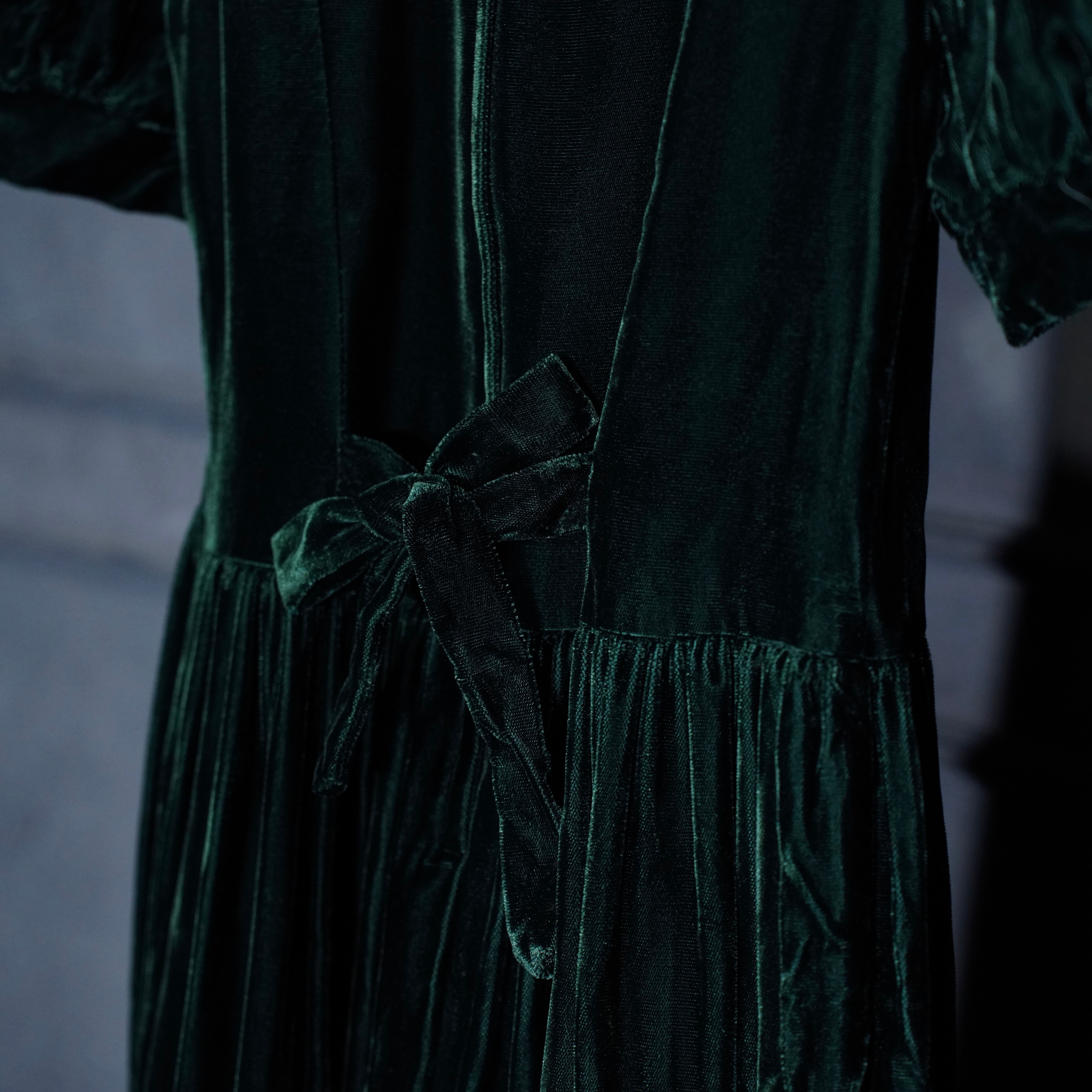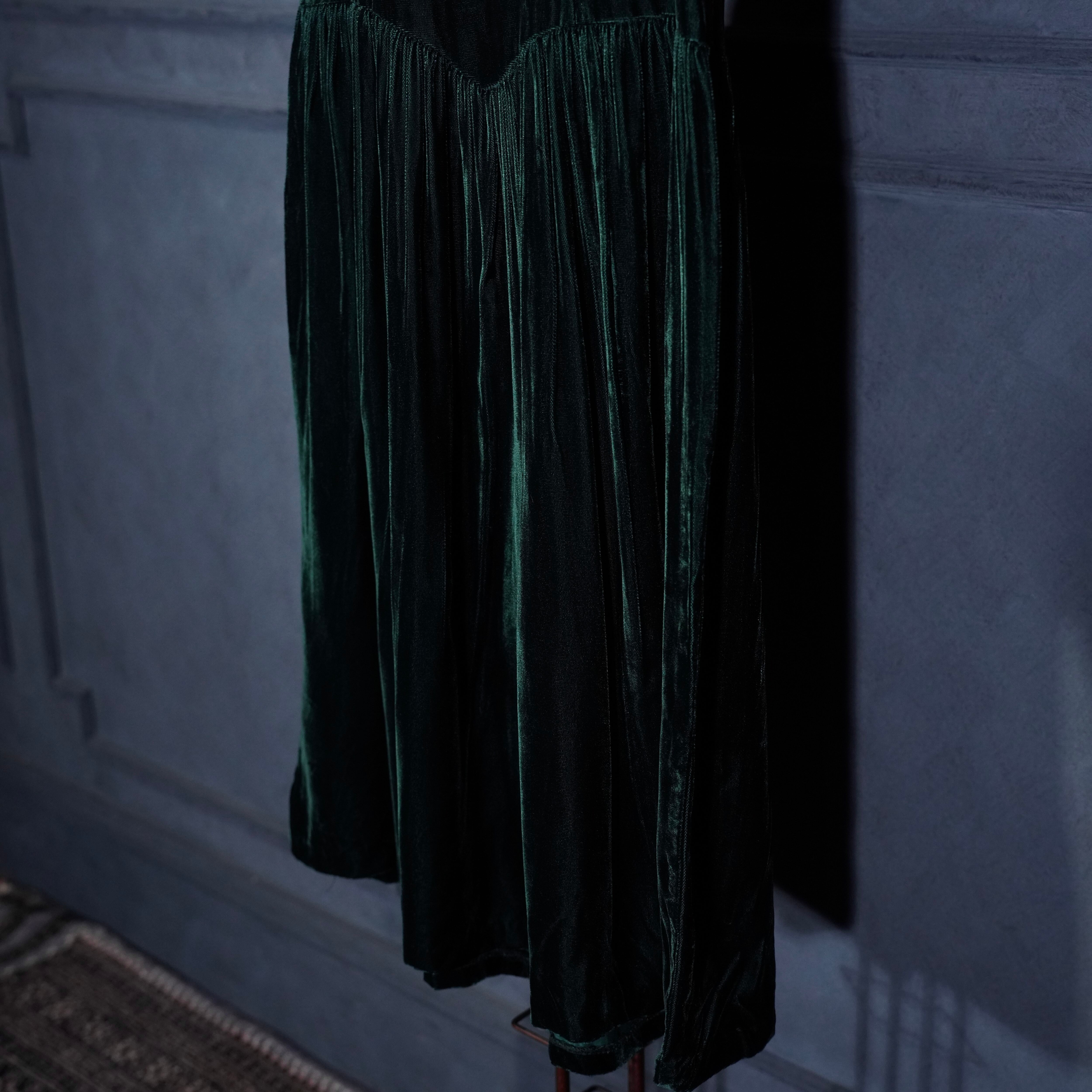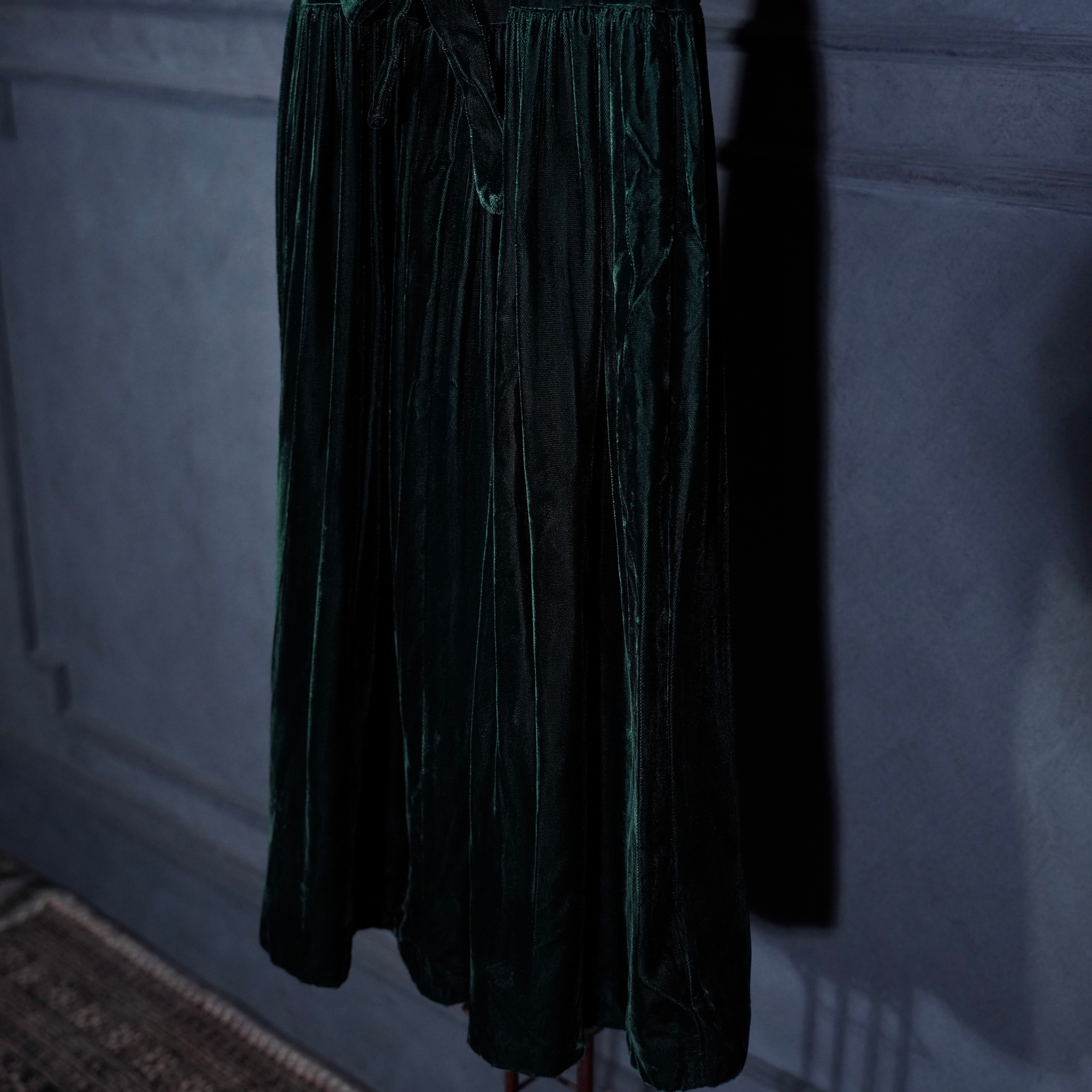 *SPECIAL ITEM* GUNNE SAX By JESSICA McCLINTOCK LACE BIG COLLAR RIBBON DESIGN VELOUR ONE PIECE/アメリカ古着ガニーサックスレースビッグカラーリボンデザインベロアワンピース