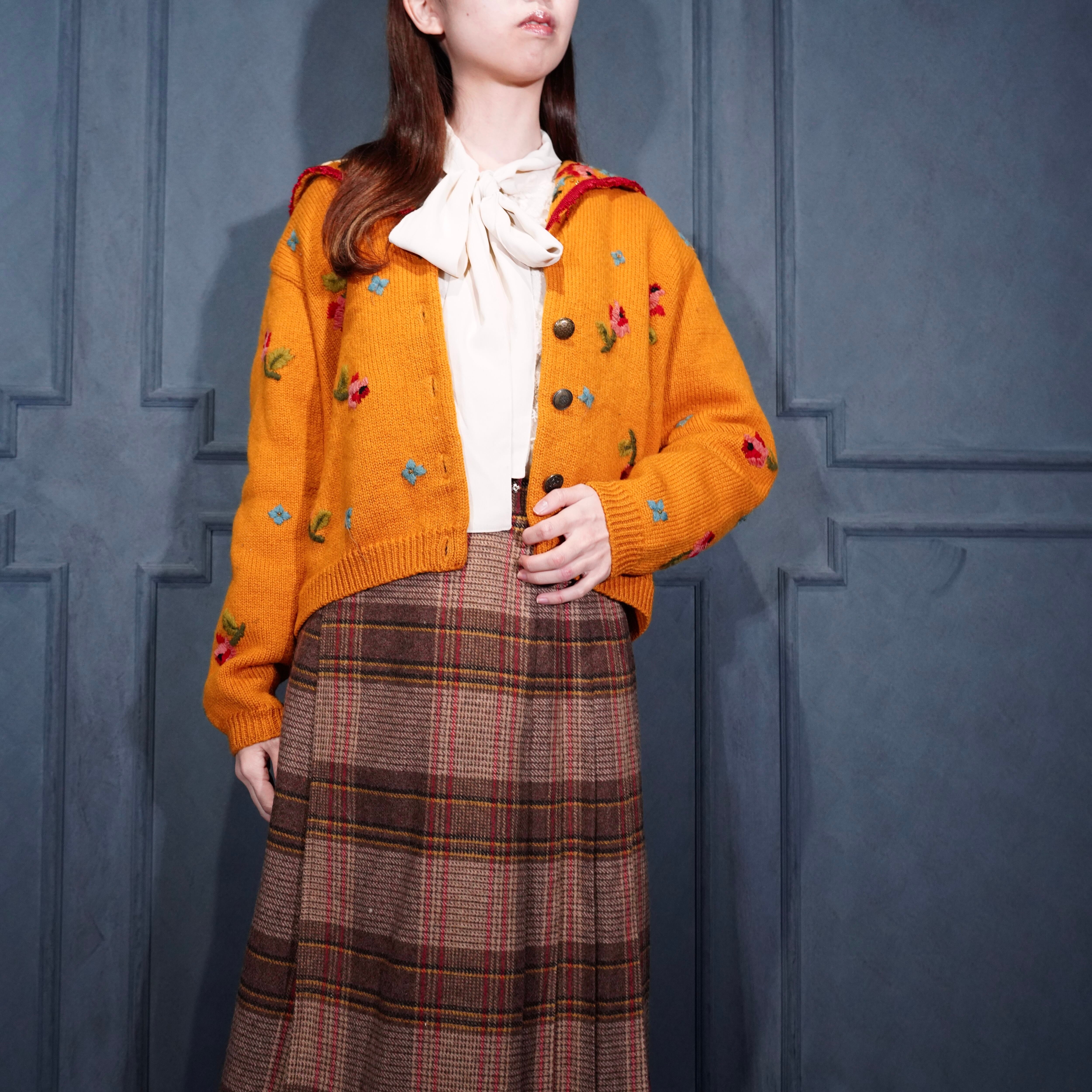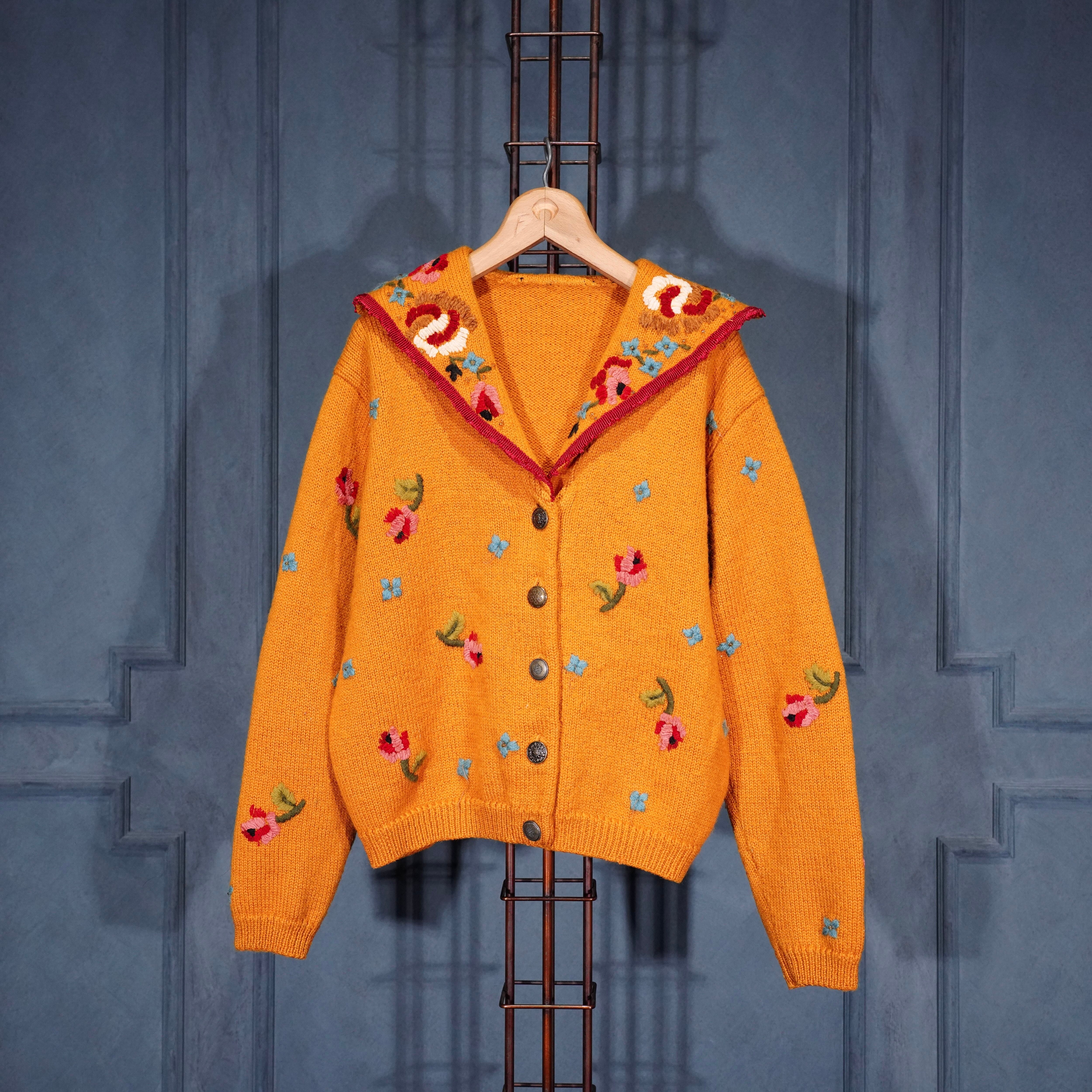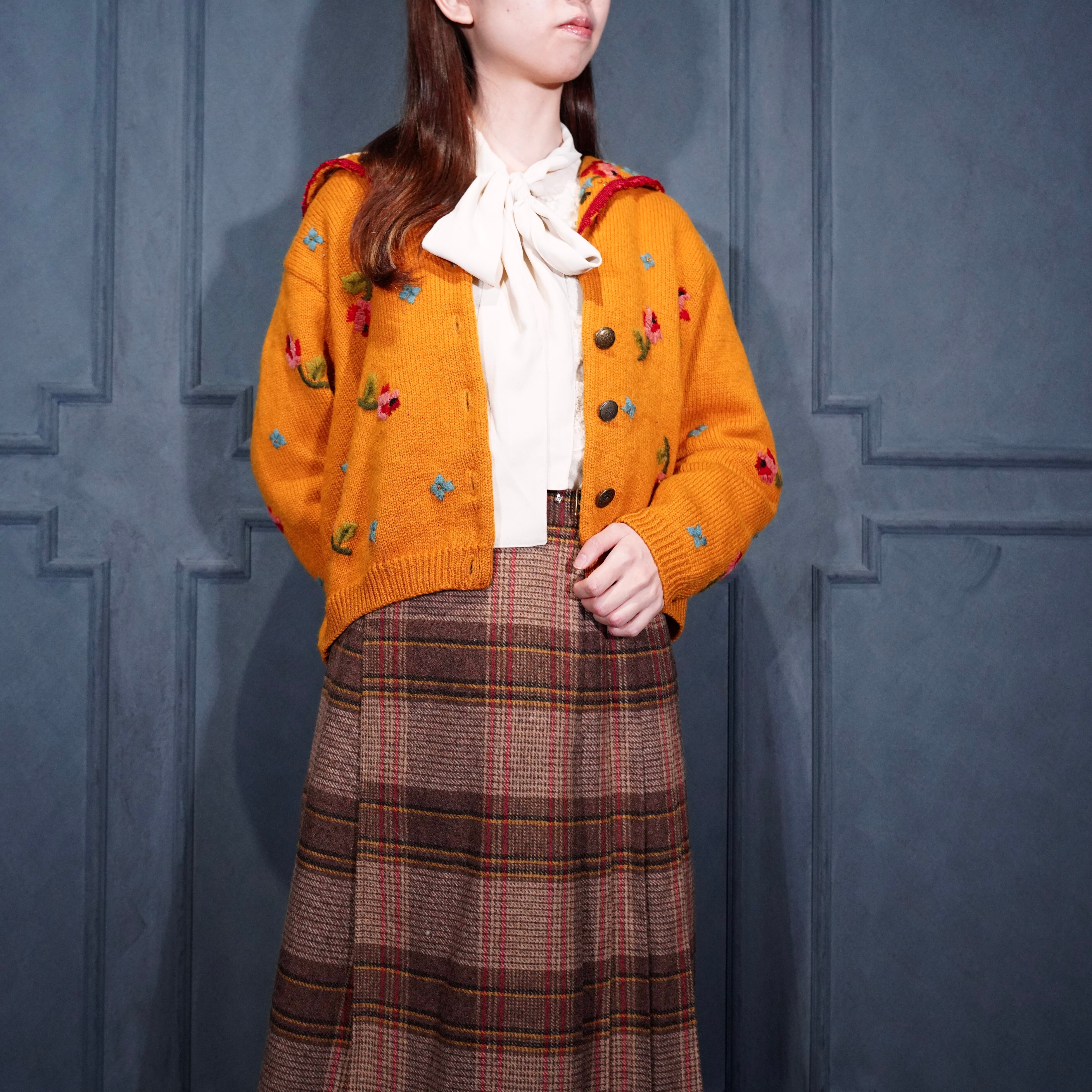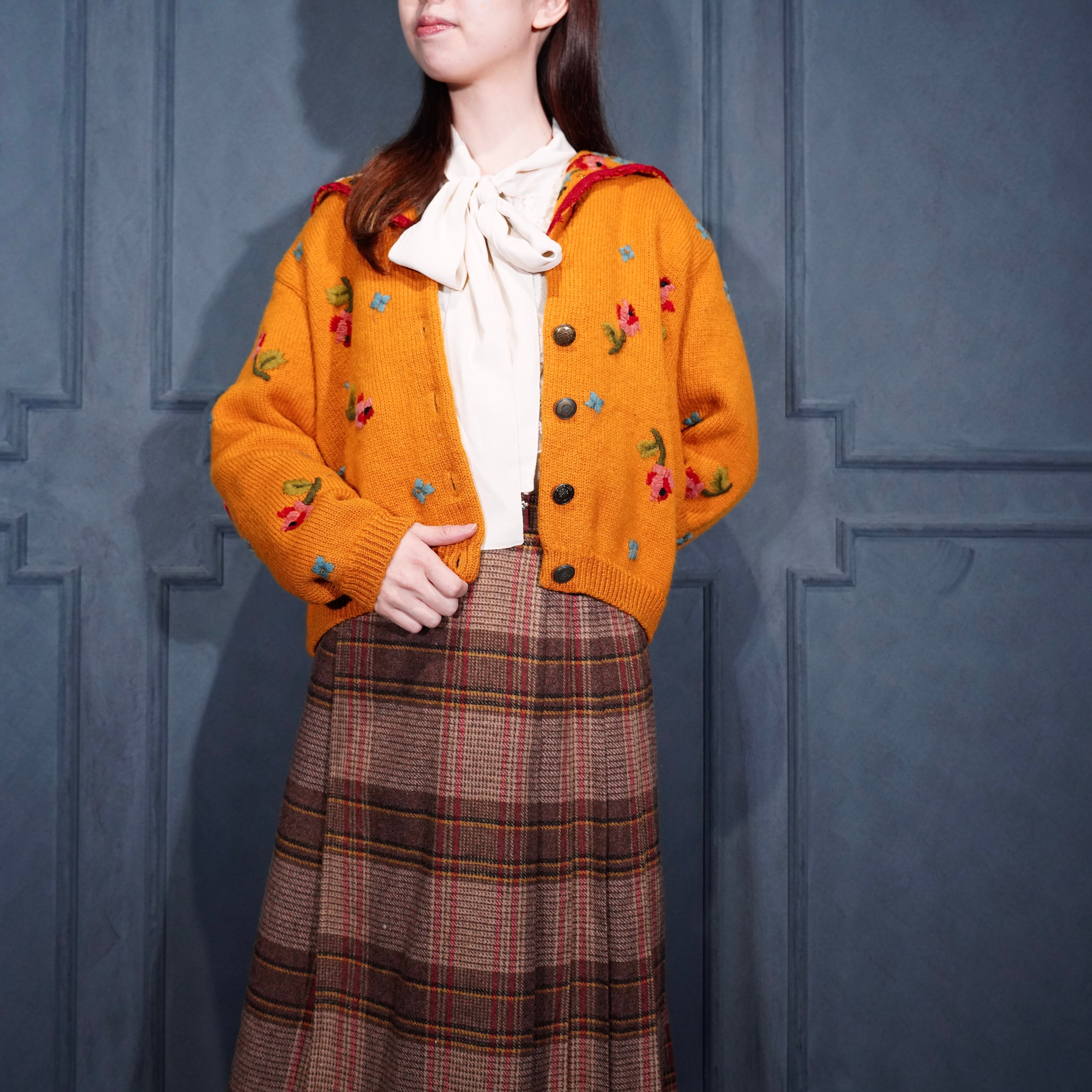60's USA VINTAGE FLOWER EMBROIDERY DESIGN SAILER COLLAR DESIGN KNIT CARDIGAN/60年代アメリカ古着お花刺繍セーラーカラーデザインニットカーディガン