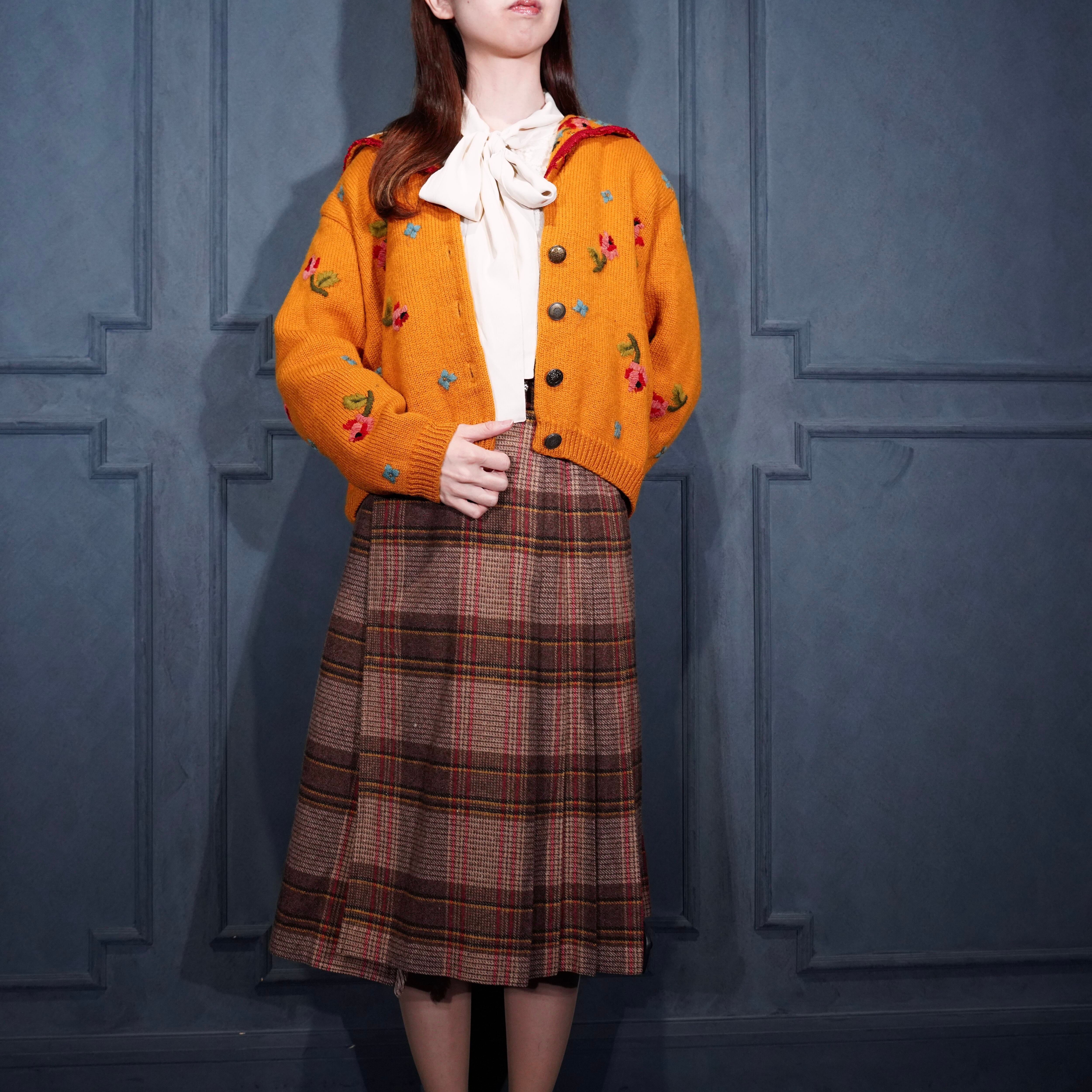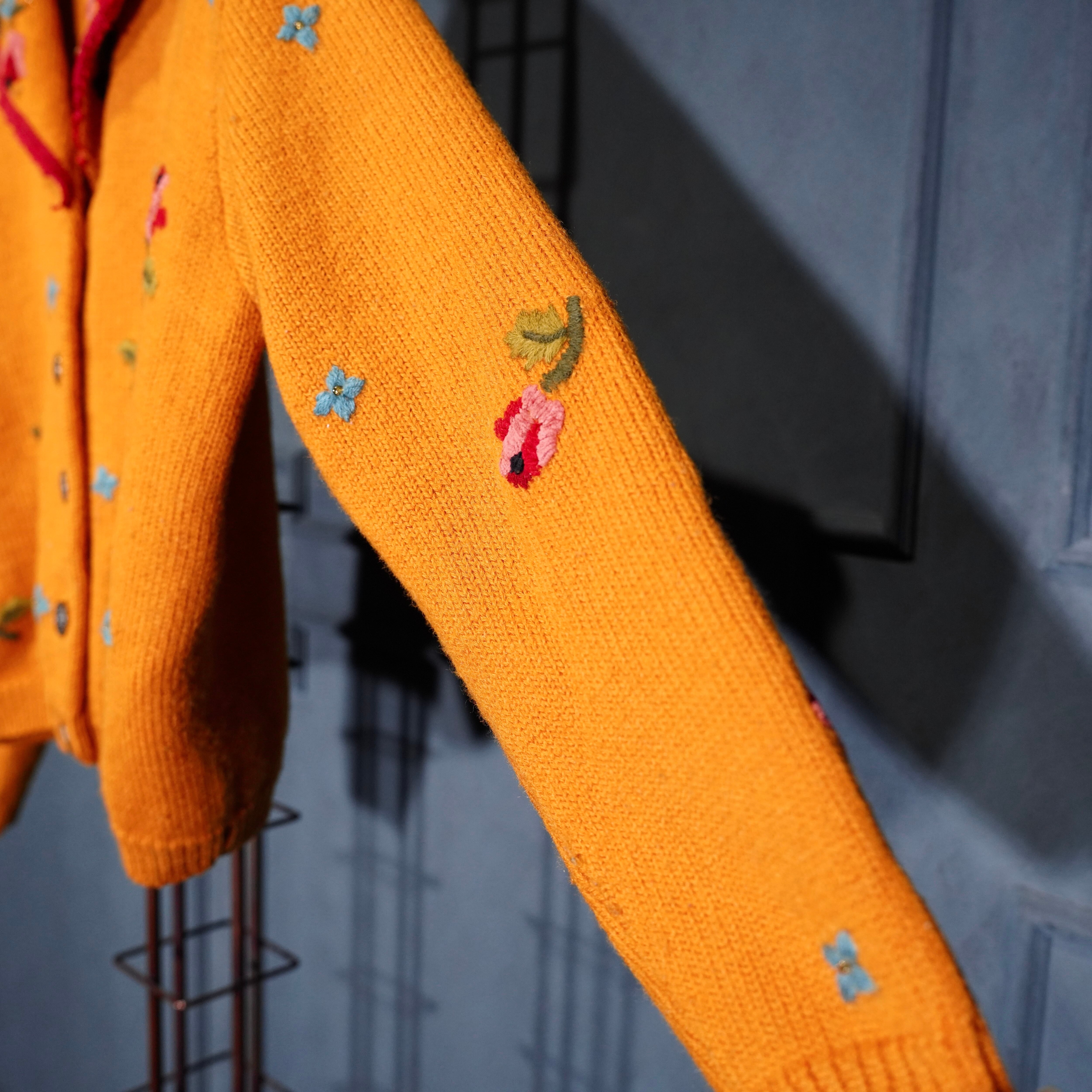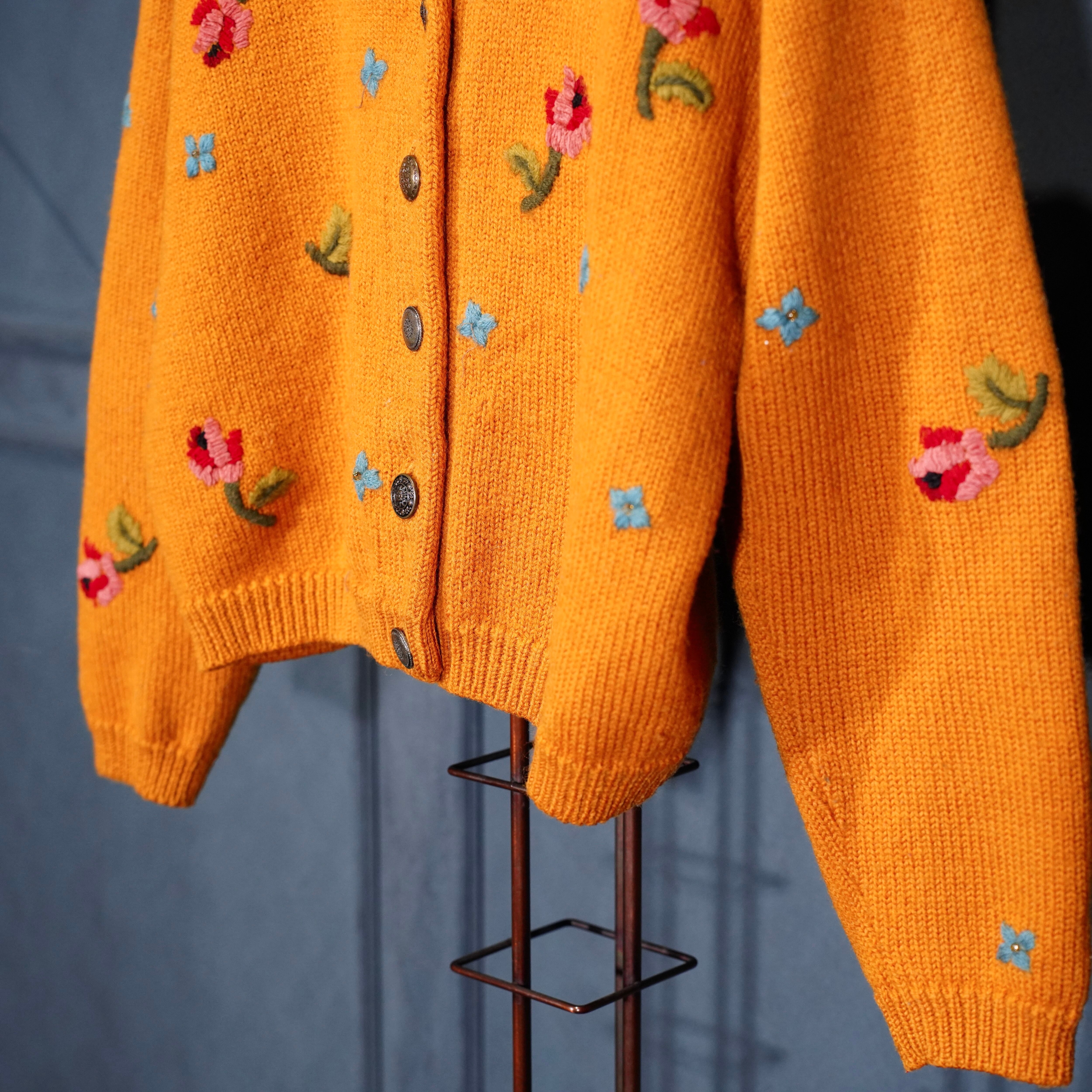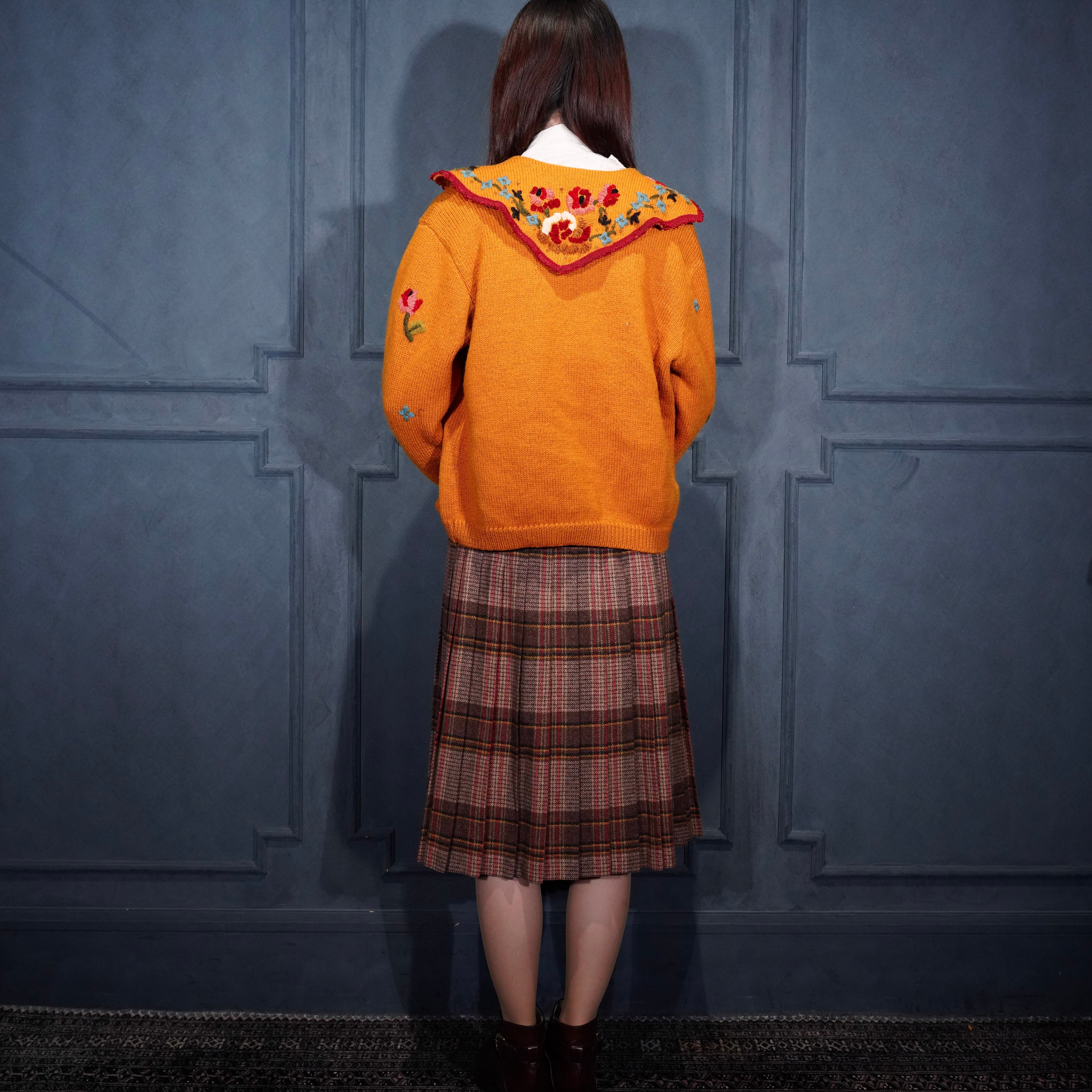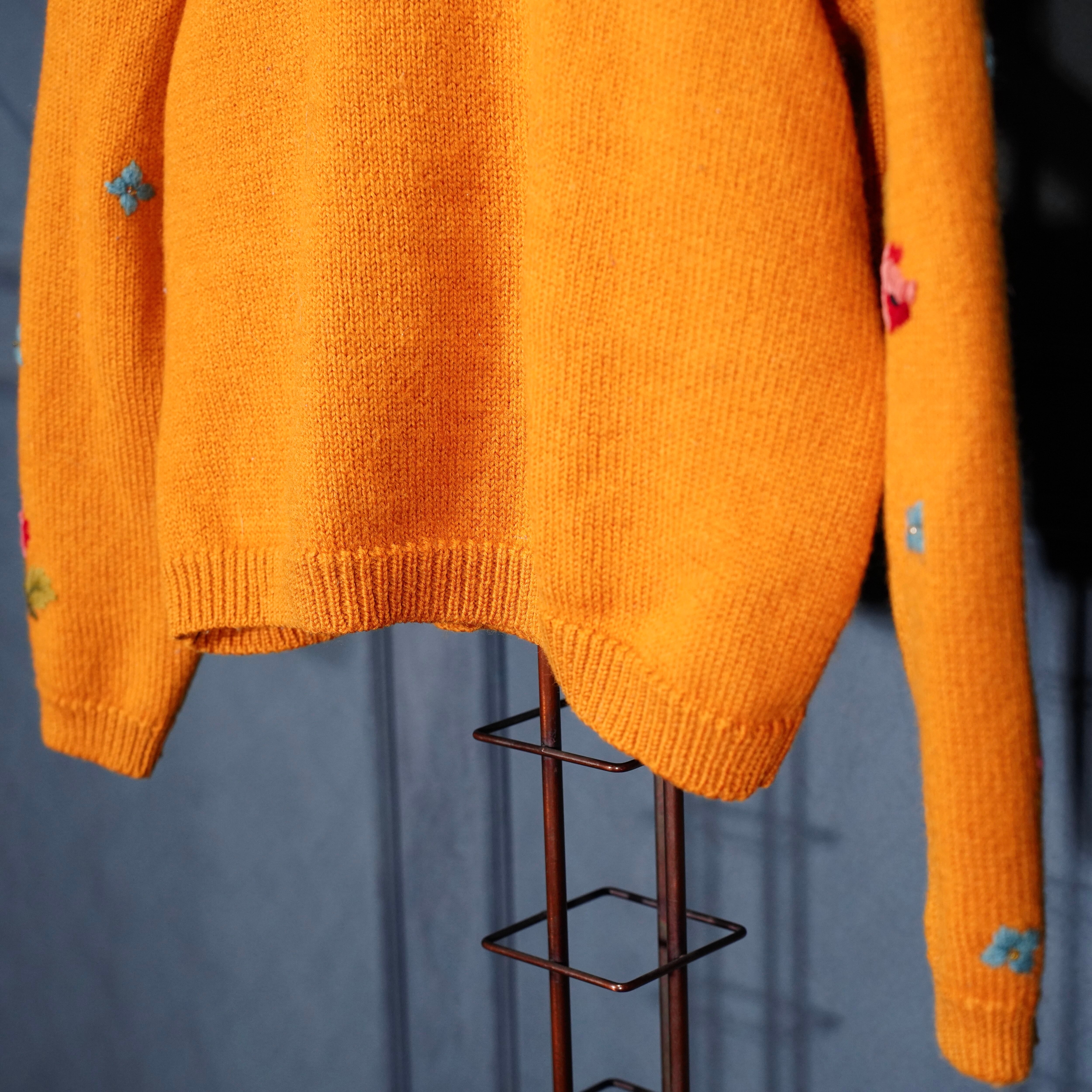 60's USA VINTAGE FLOWER EMBROIDERY DESIGN SAILER COLLAR DESIGN KNIT CARDIGAN/60年代アメリカ古着お花刺繍セーラーカラーデザインニットカーディガン