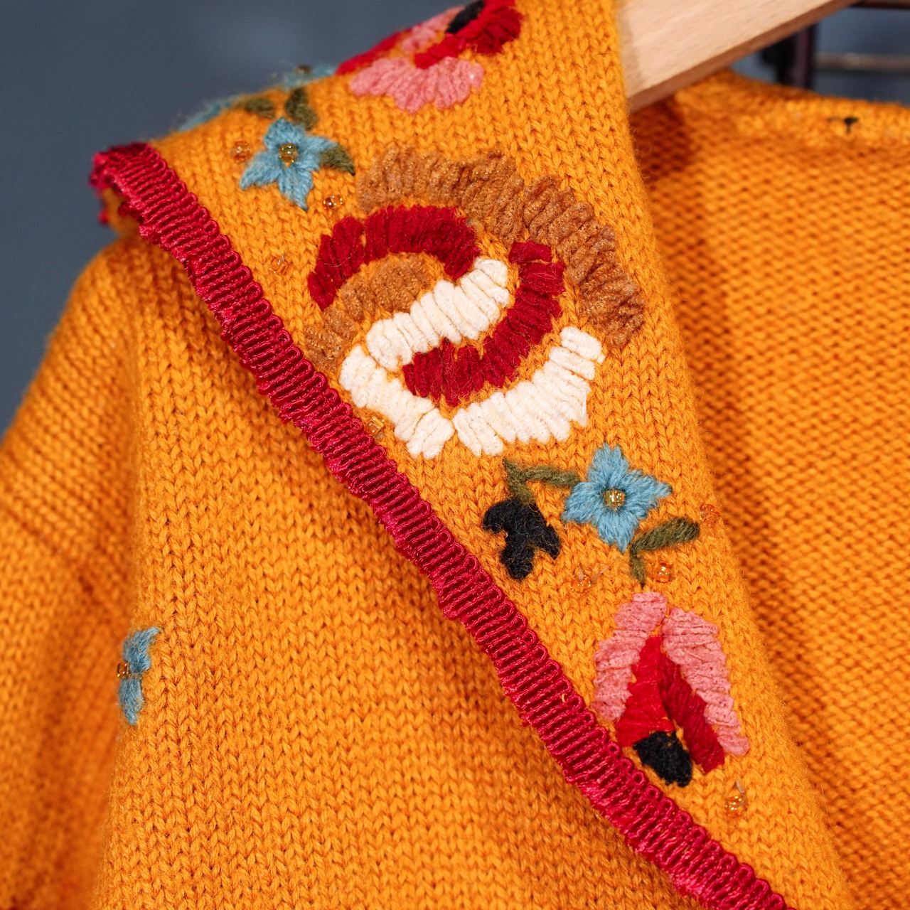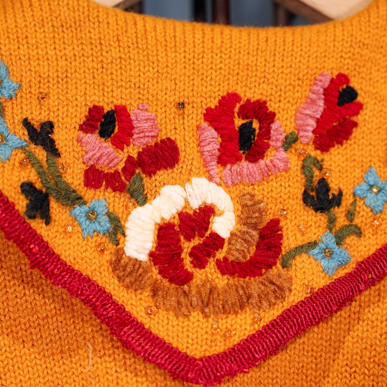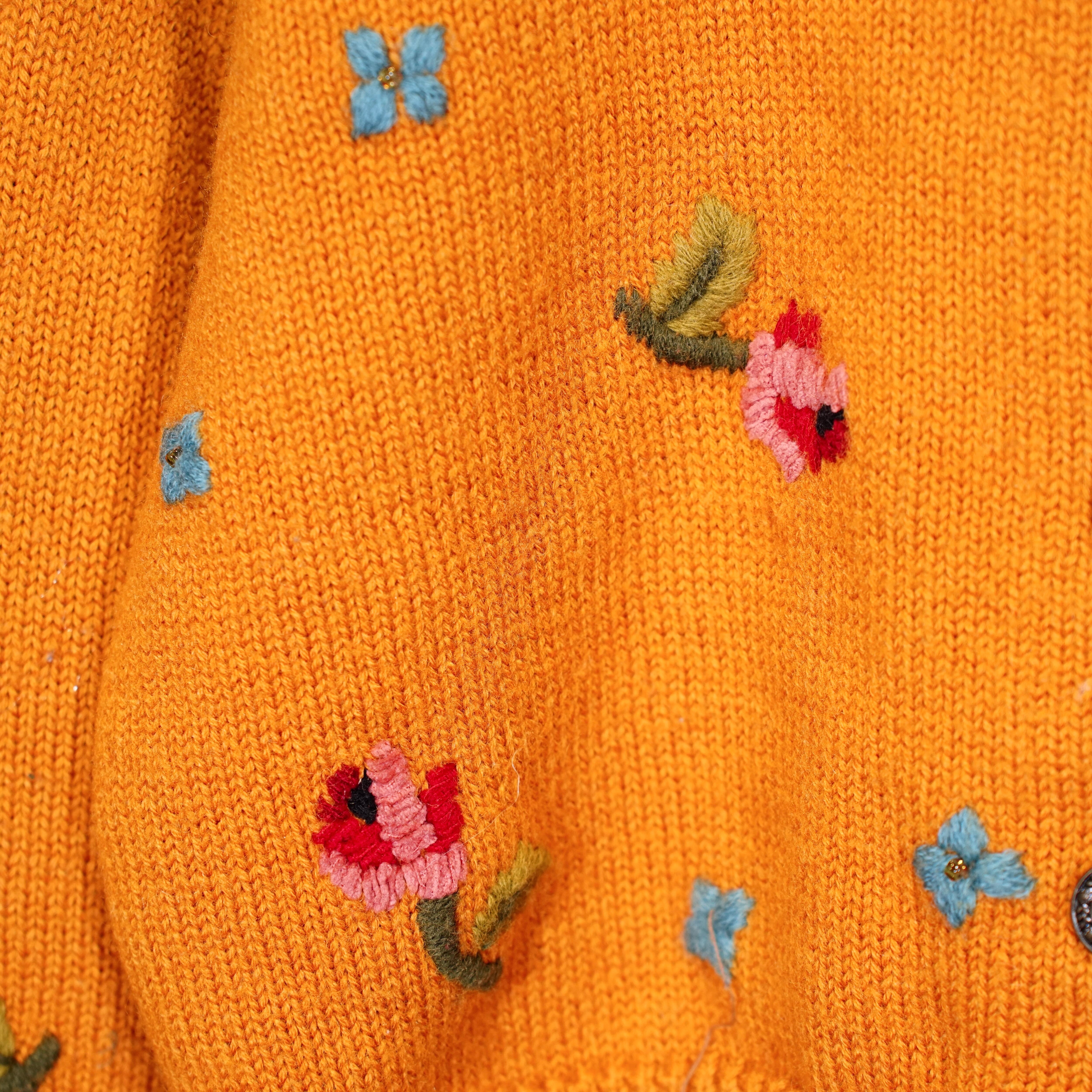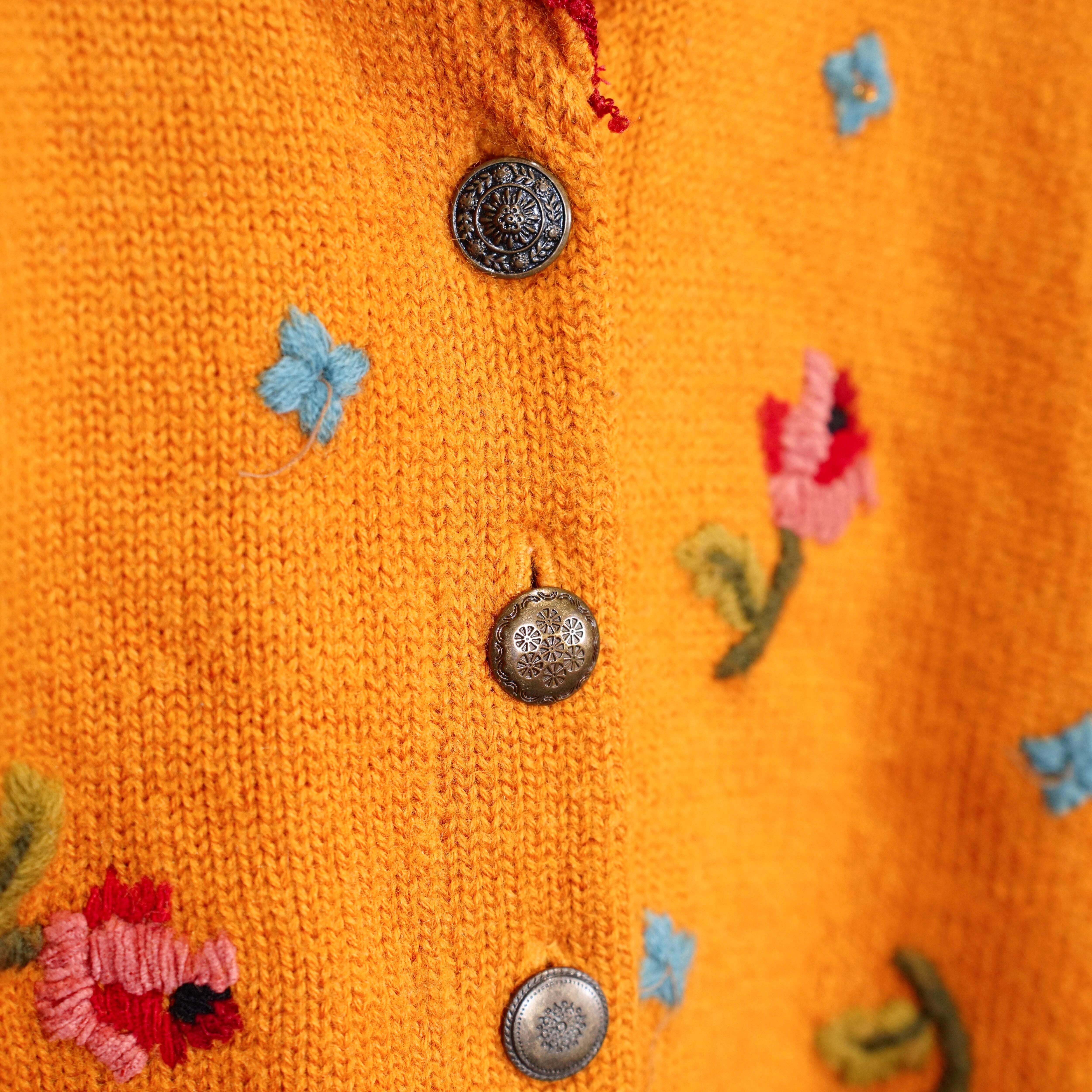60's USA VINTAGE FLOWER EMBROIDERY DESIGN SAILER COLLAR DESIGN KNIT CARDIGAN/60年代アメリカ古着お花刺繍セーラーカラーデザインニットカーディガン