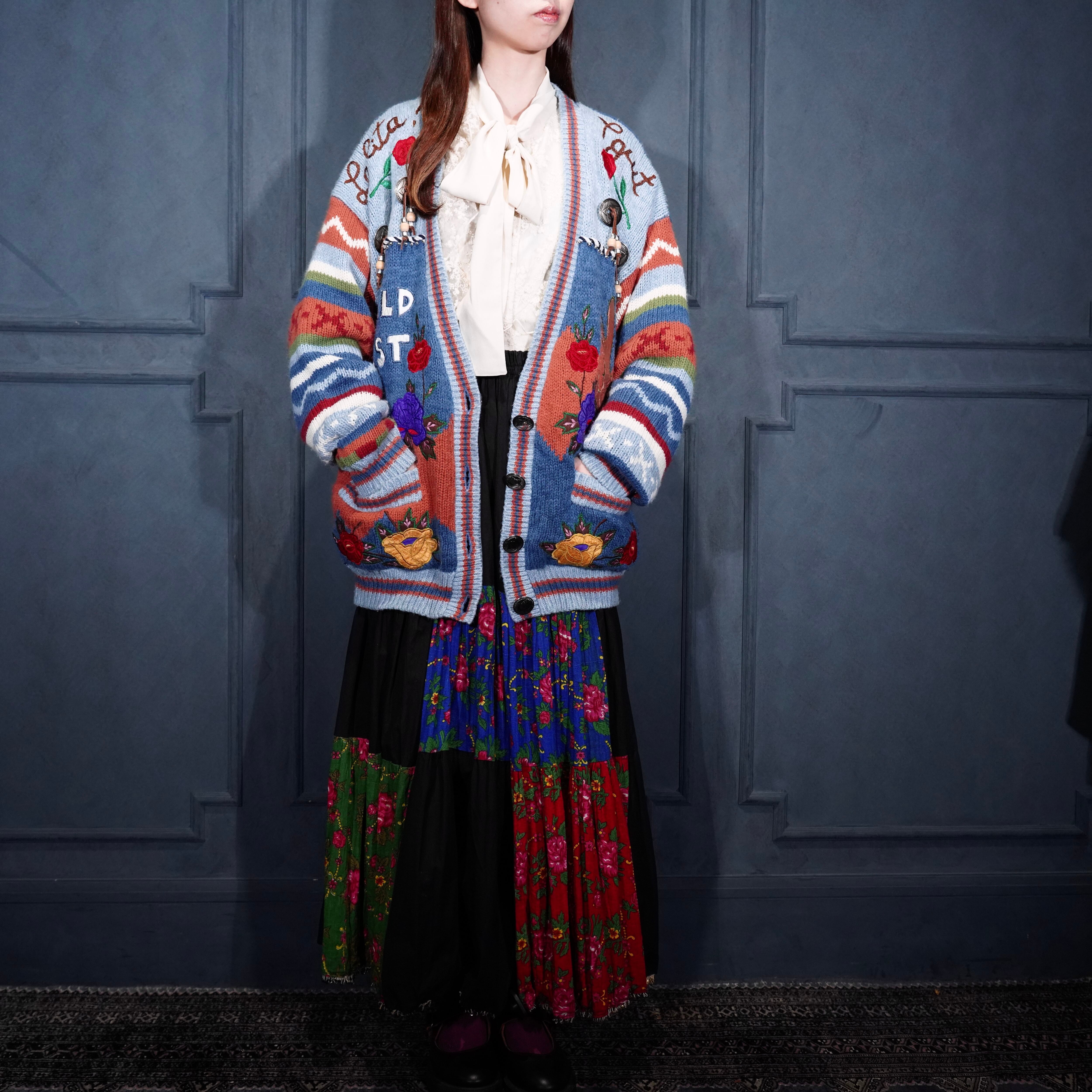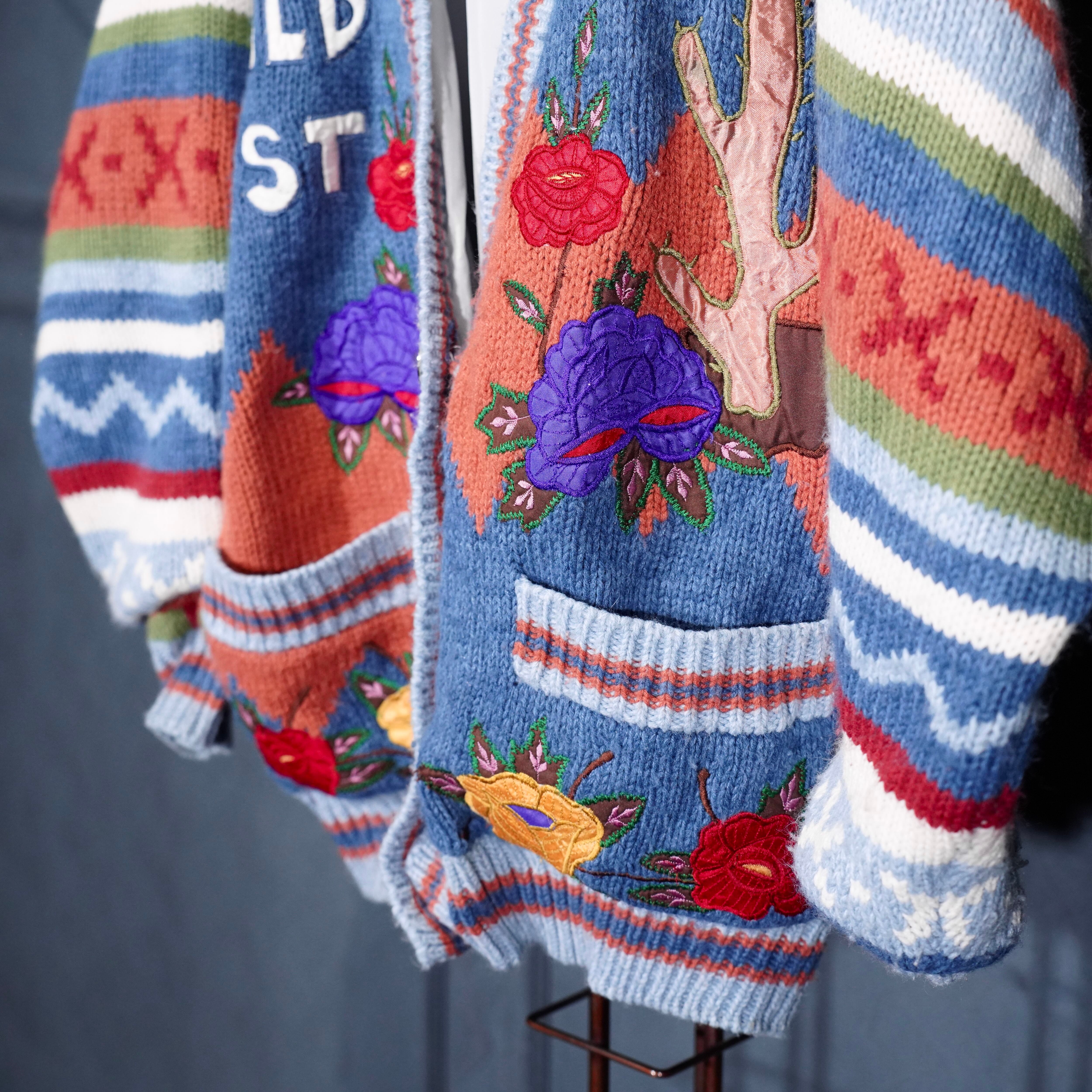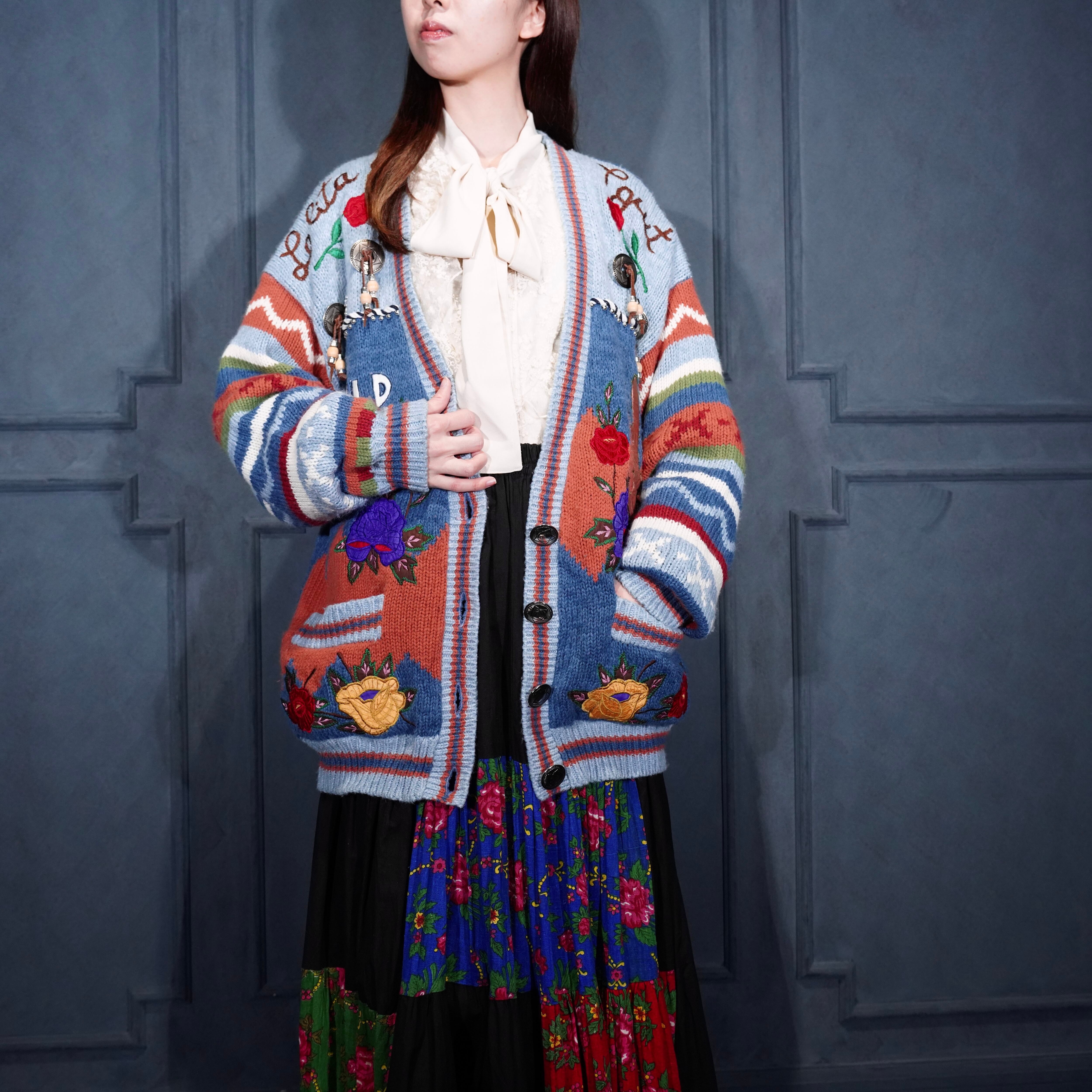 USA VINTAGE sussan KNITWEAR CONCHO BUTTON FLOWER EMBROIDERY DESIGN KNIT CARDIGAN/アメリカ古着コンチョボタンお花刺繍デザインニットカーディガン