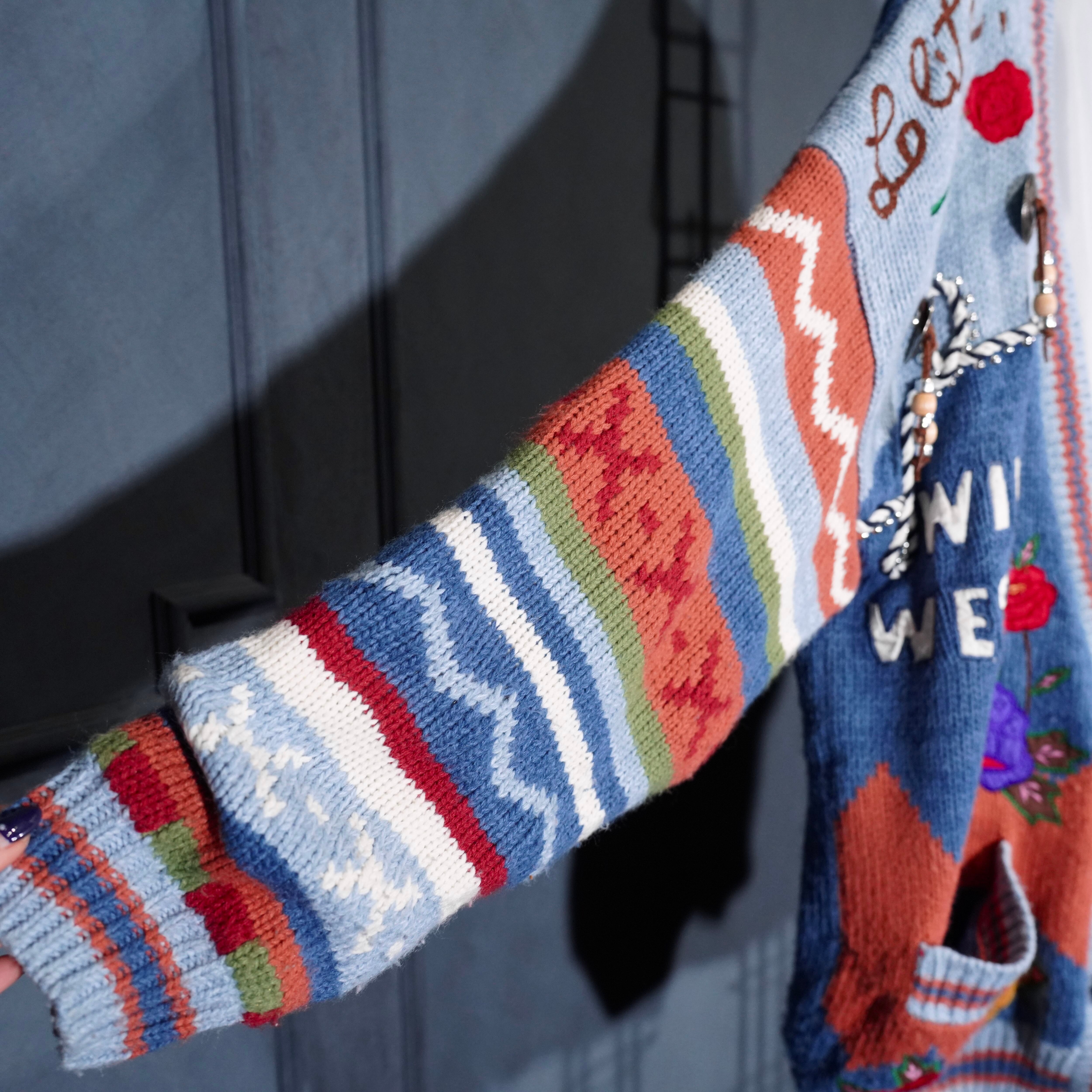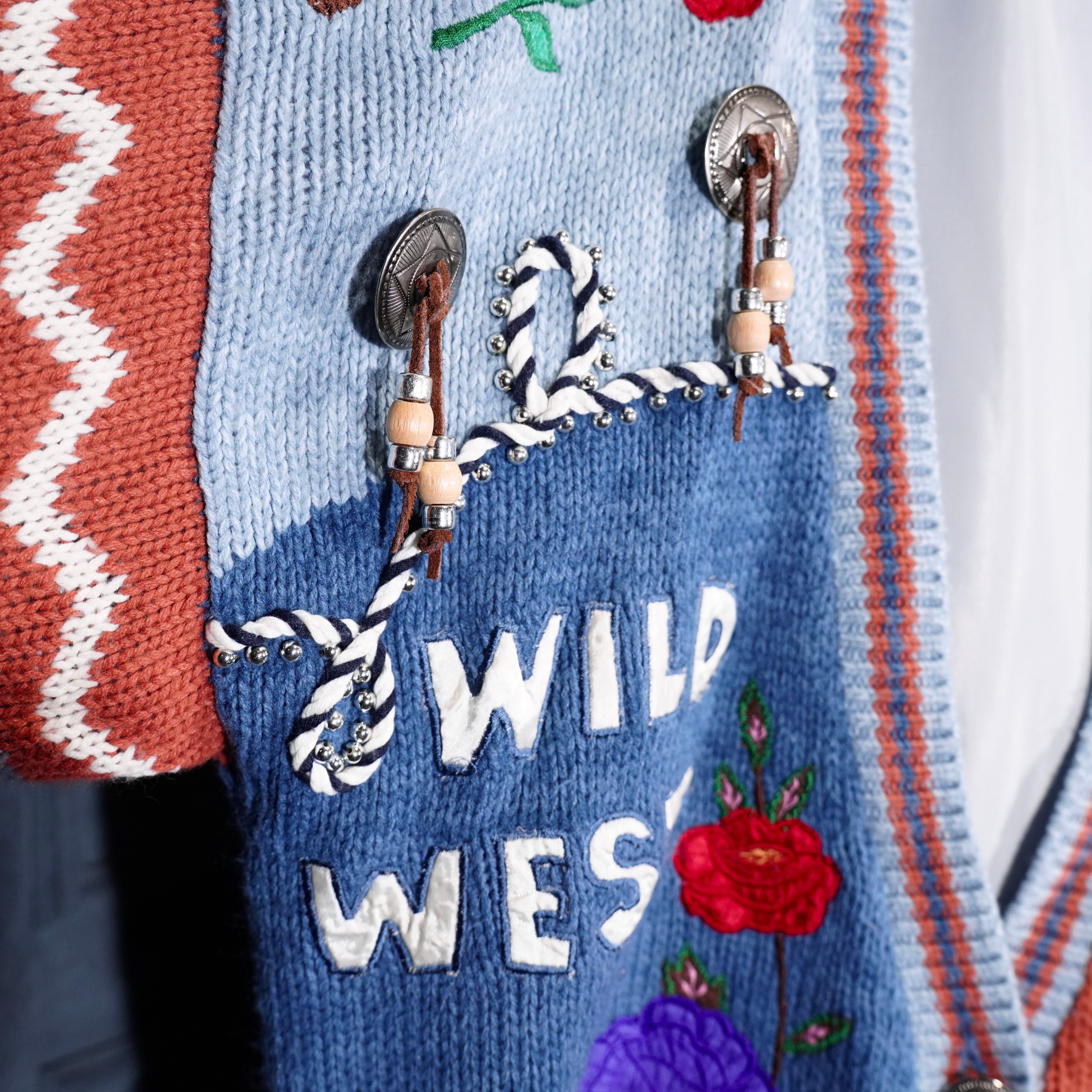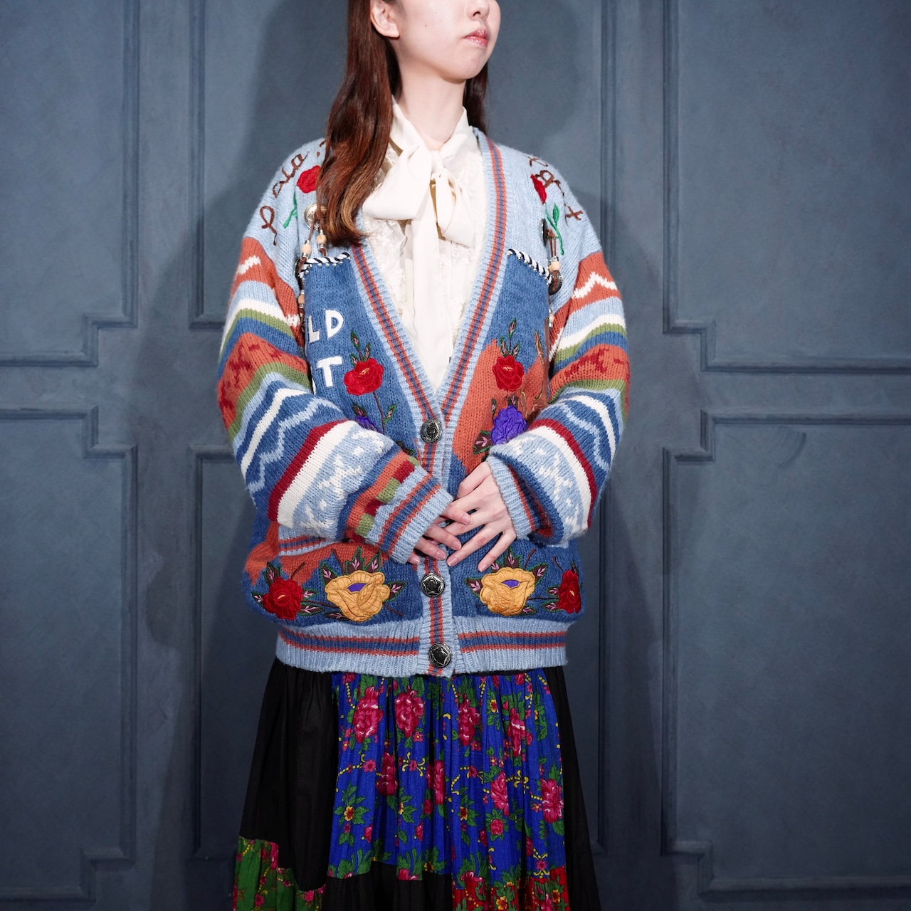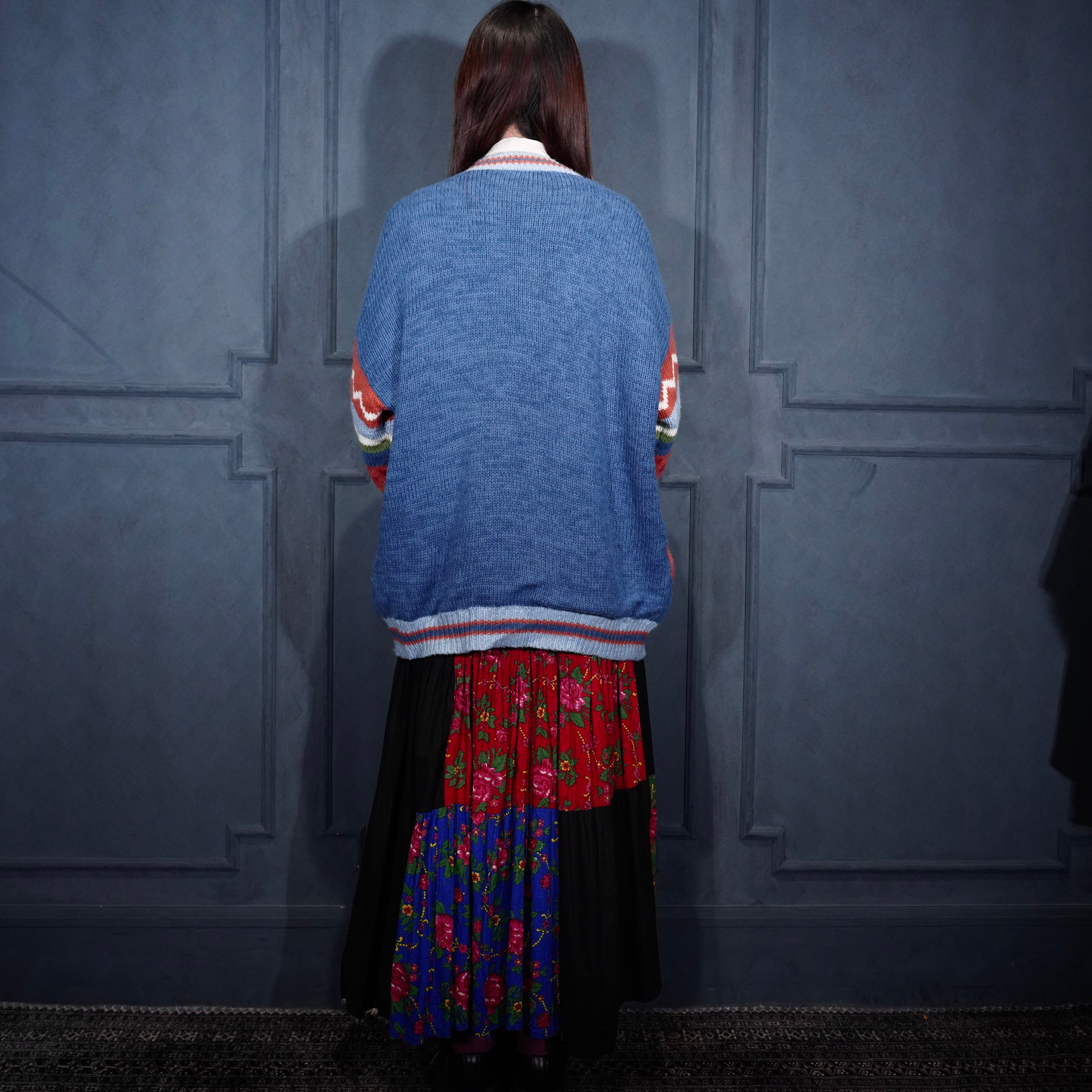 USA VINTAGE sussan KNITWEAR CONCHO BUTTON FLOWER EMBROIDERY DESIGN KNIT CARDIGAN/アメリカ古着コンチョボタンお花刺繍デザインニットカーディガン