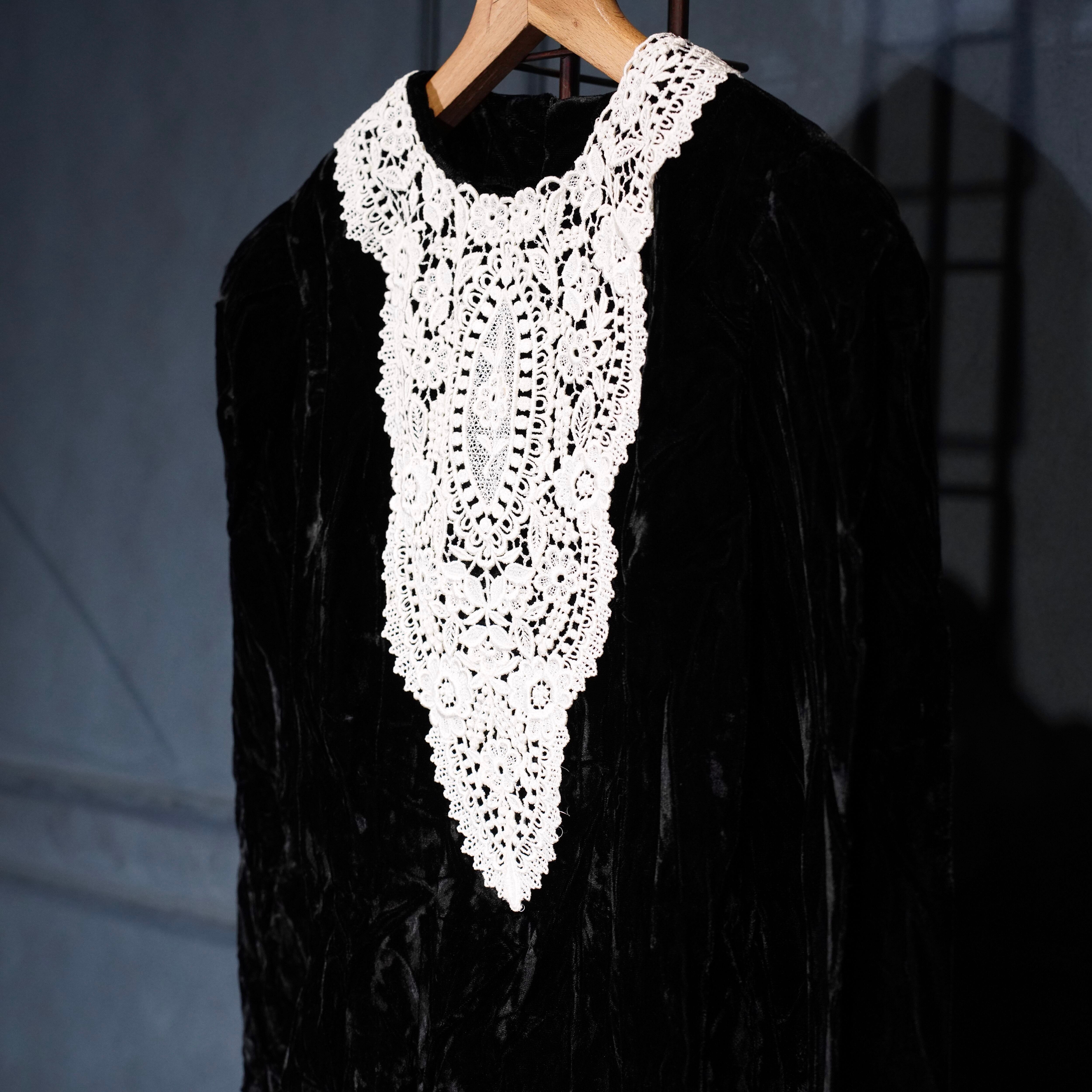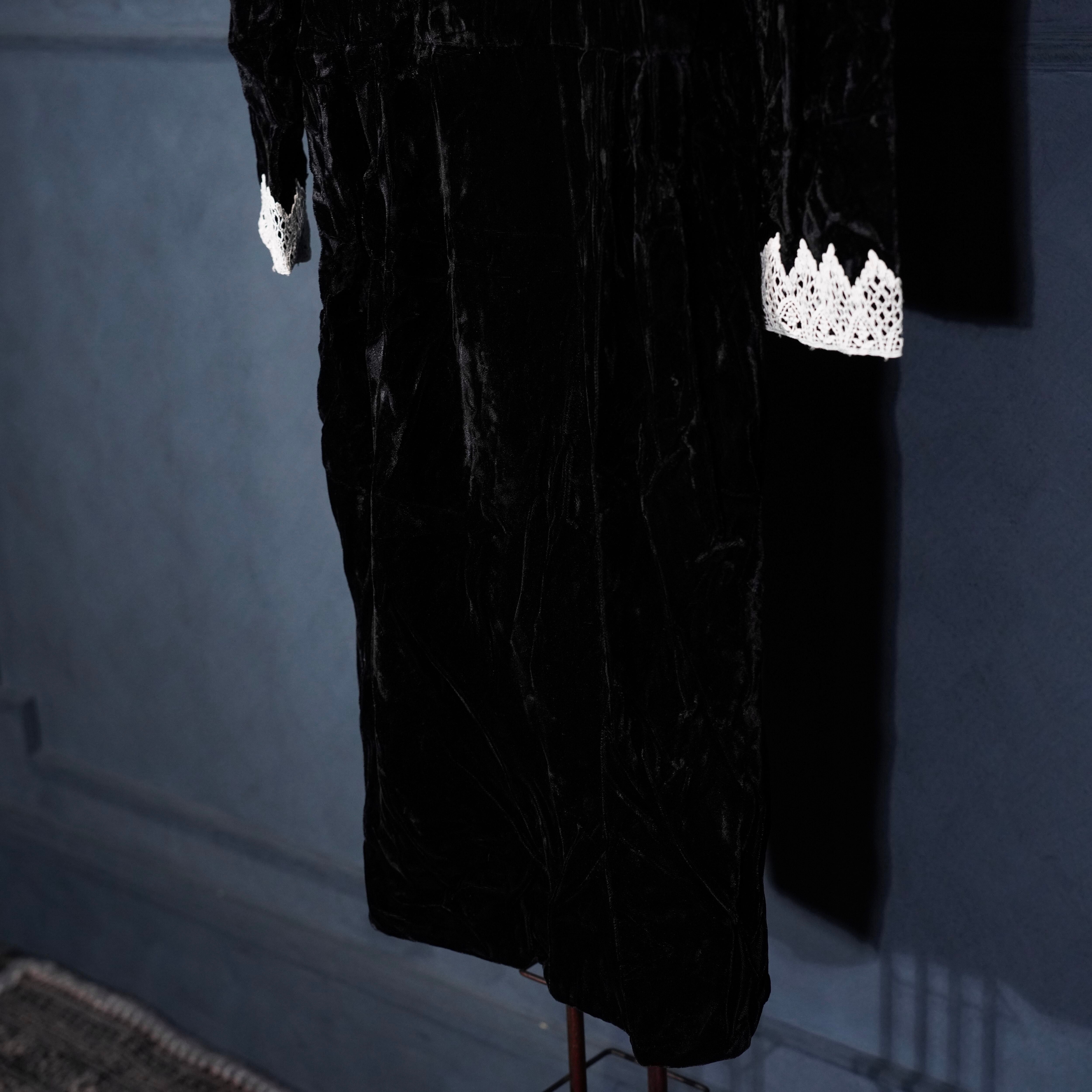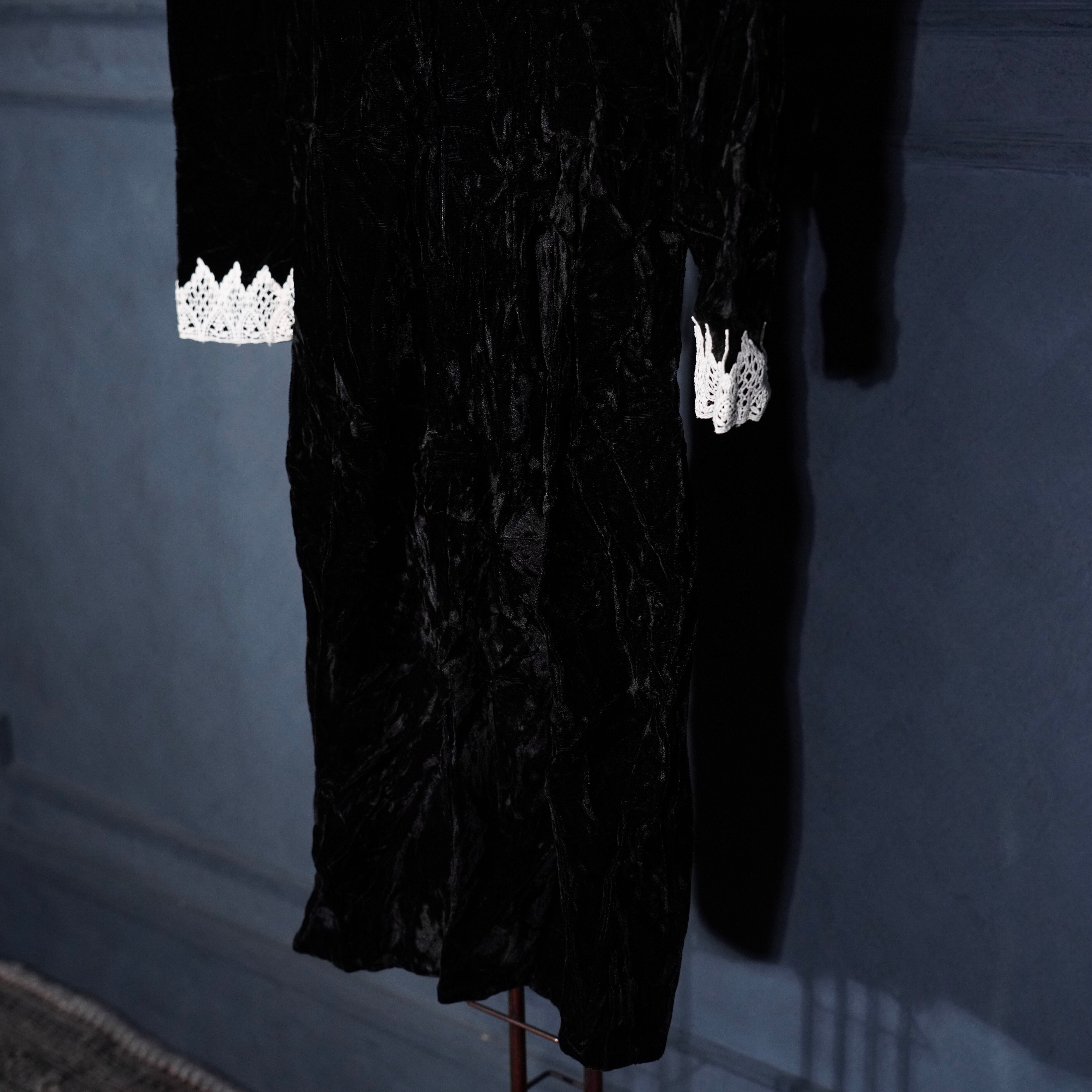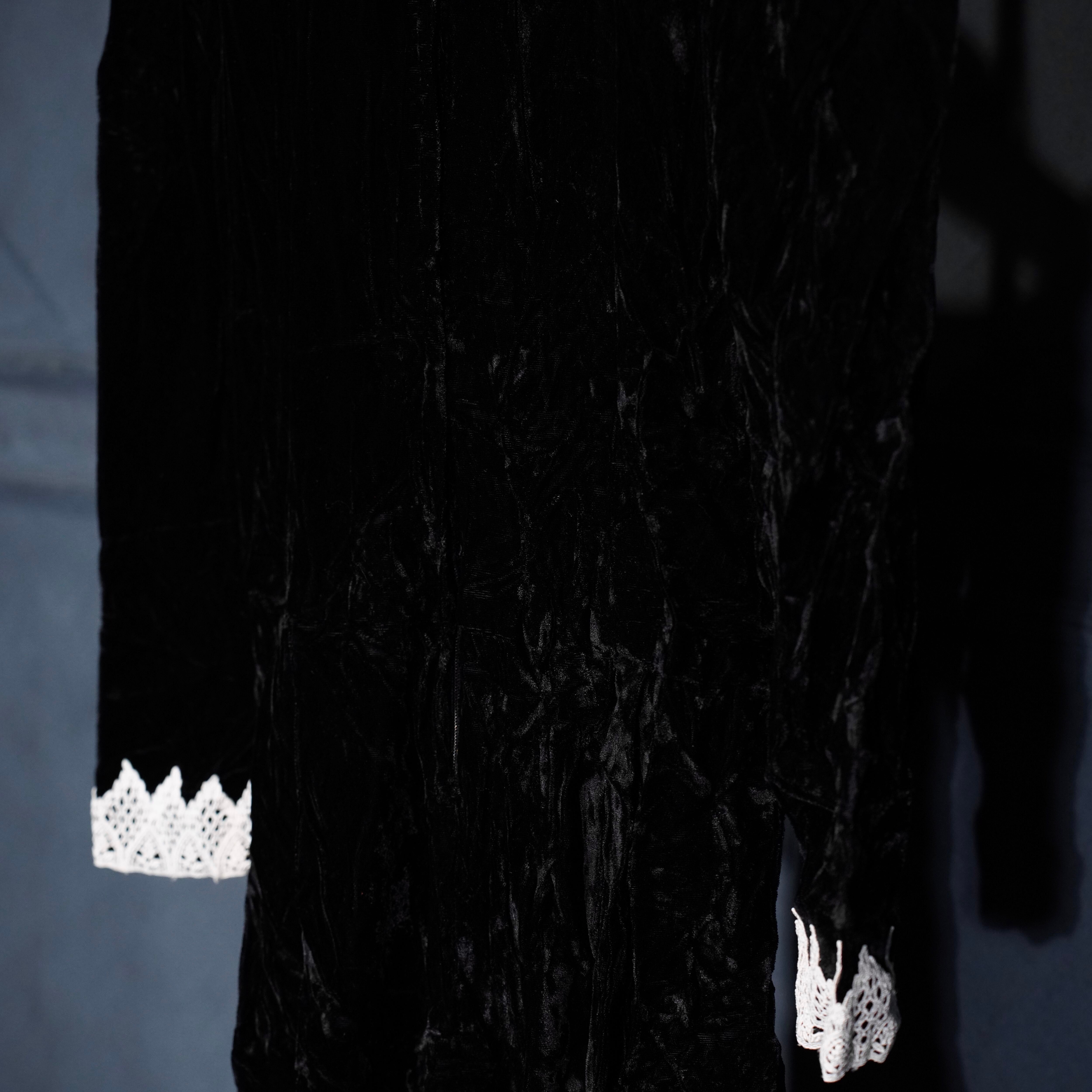 70's USA VINTAGE LACE DESIGN VELOUR DRESS ONE PIECE/70年代アメリカ古着レースデザインドレスワンピース