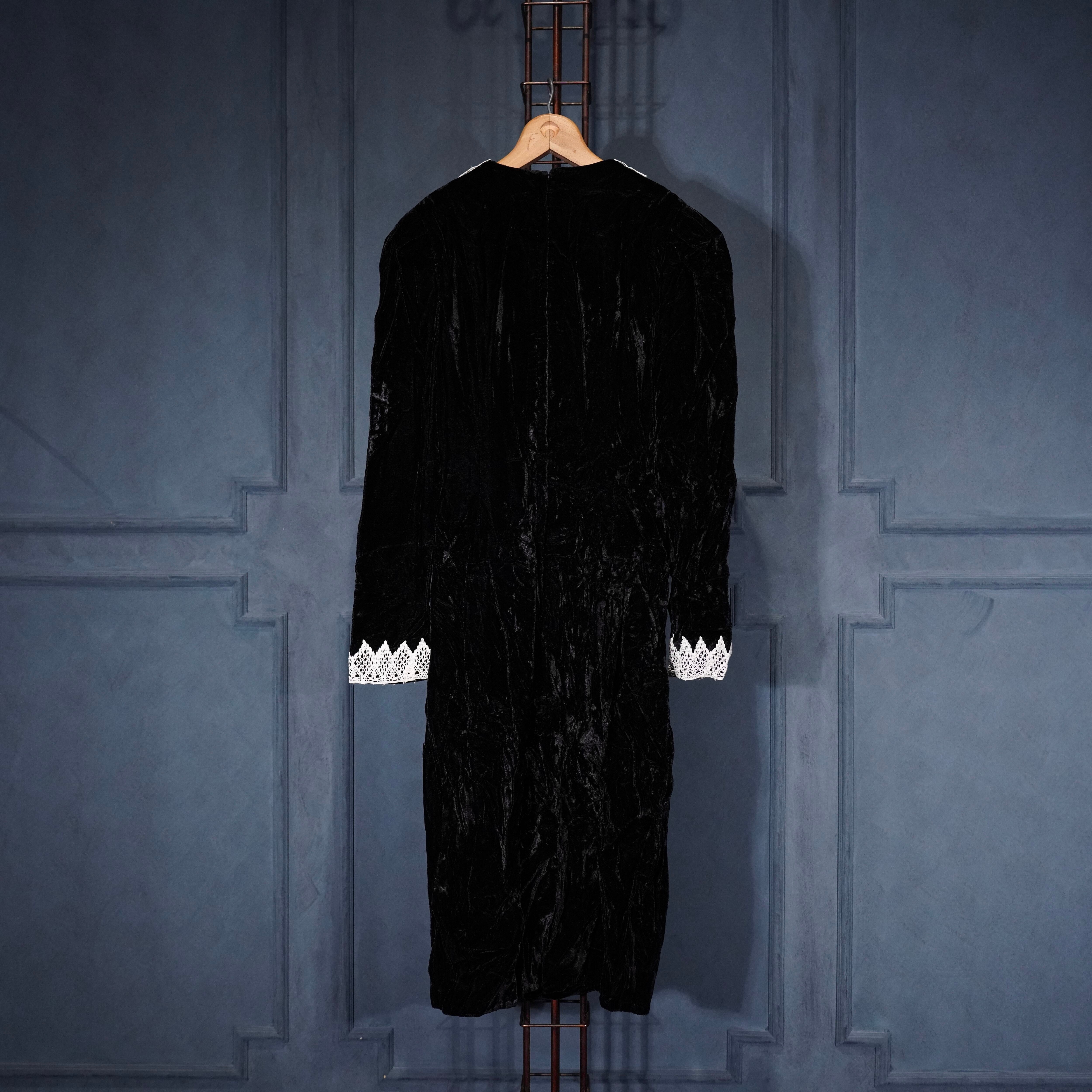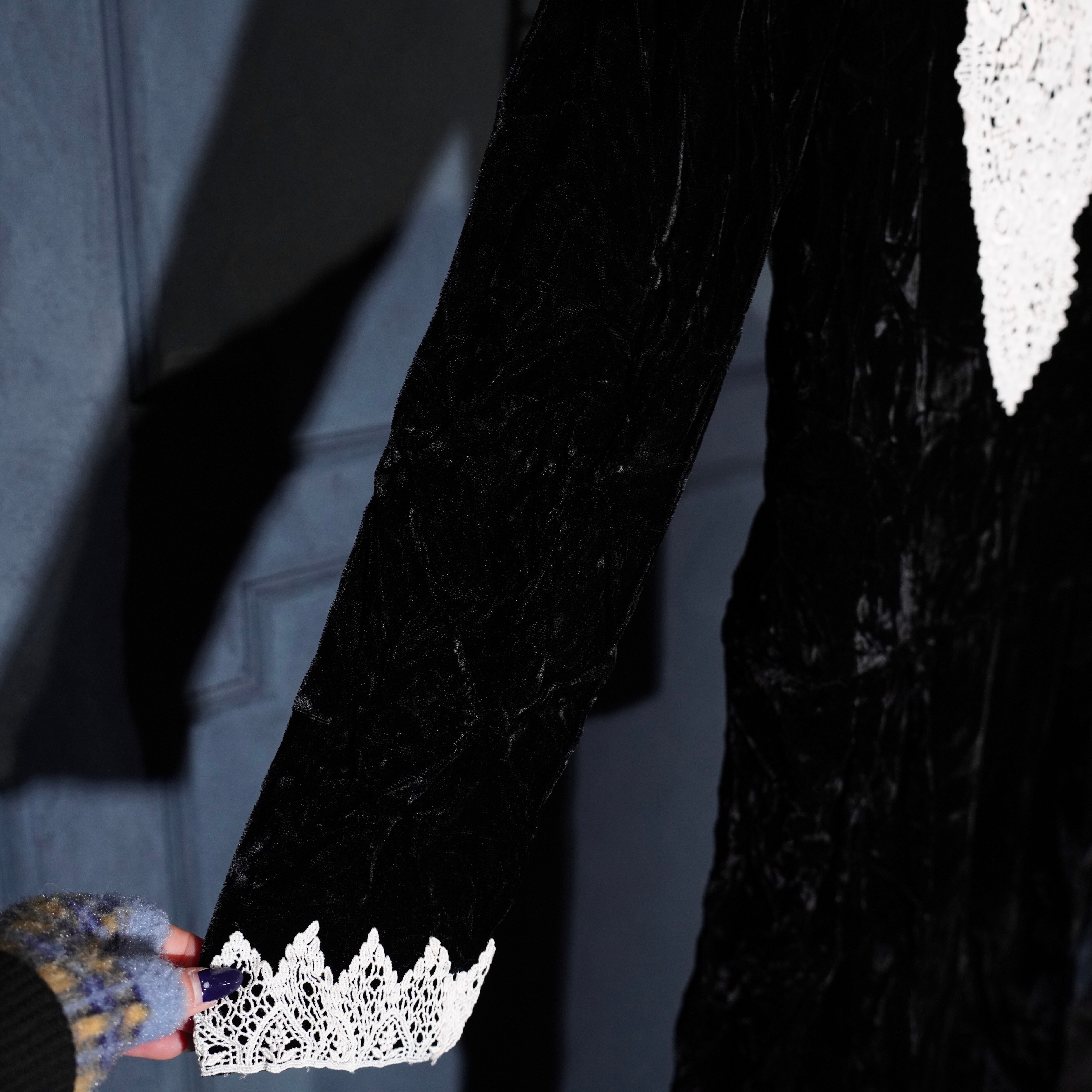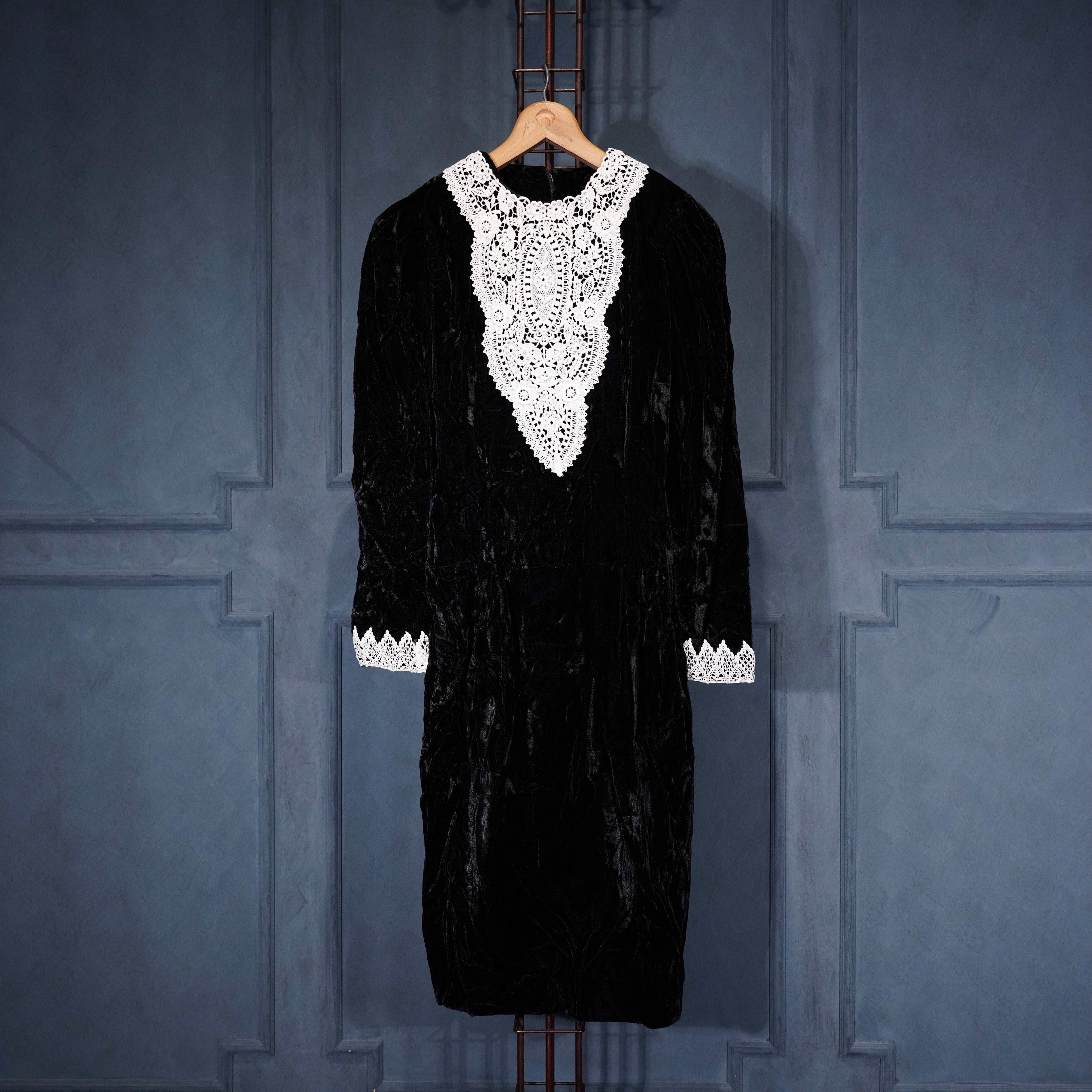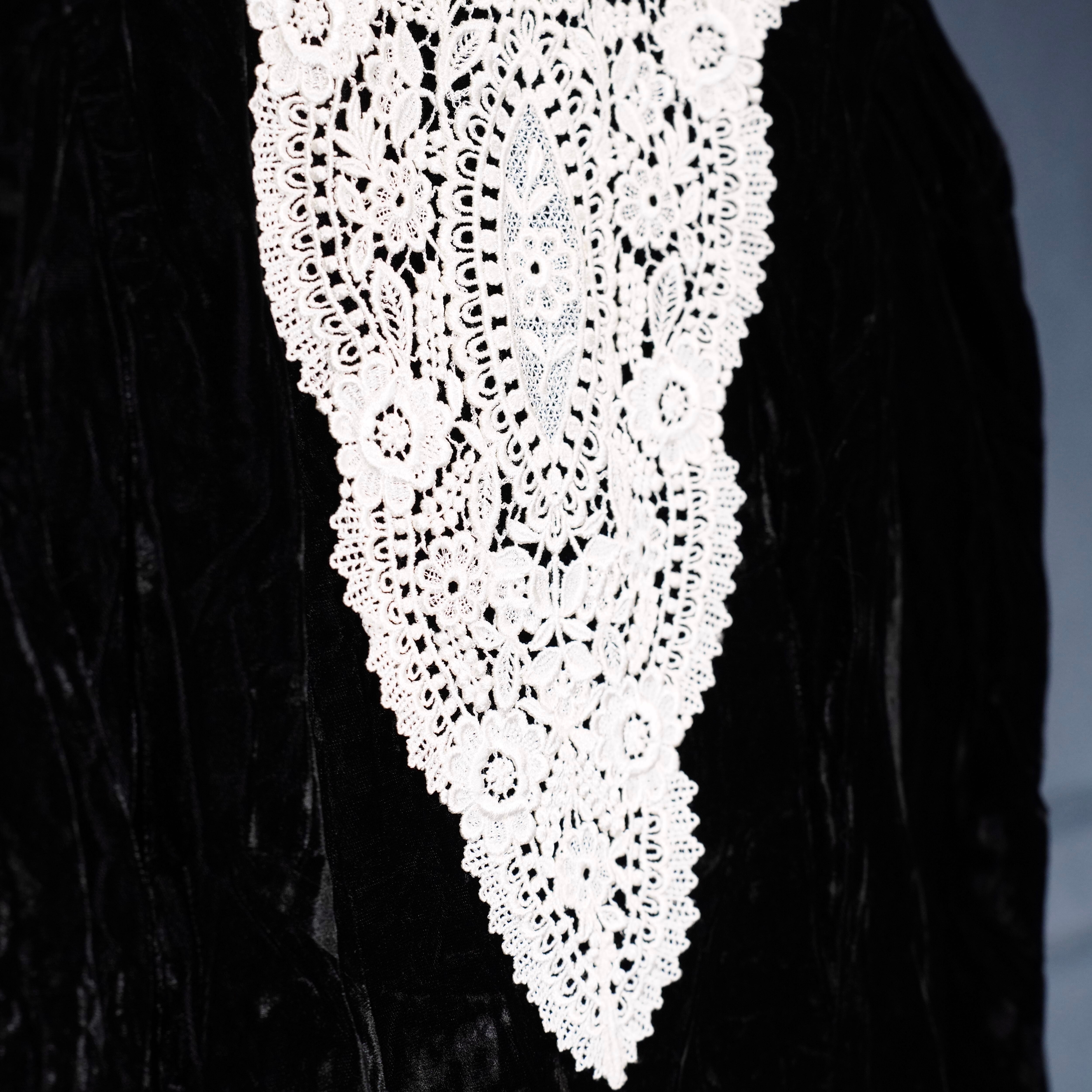 70's USA VINTAGE LACE DESIGN VELOUR DRESS ONE PIECE/70年代アメリカ古着レースデザインドレスワンピース