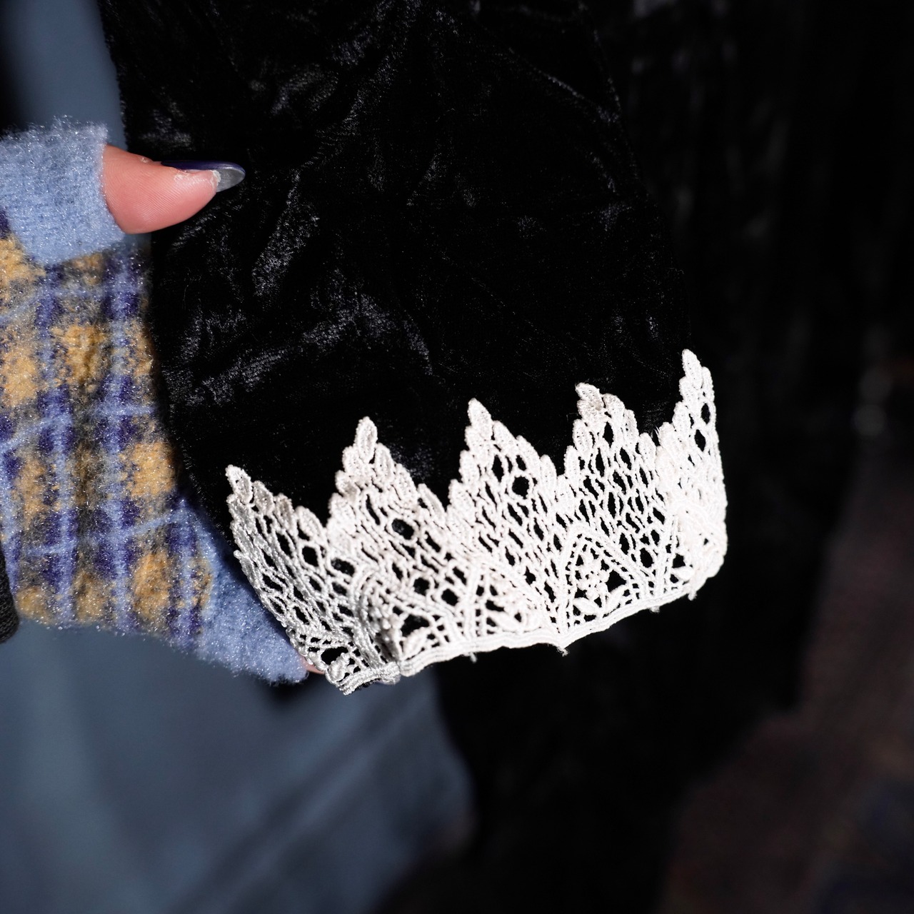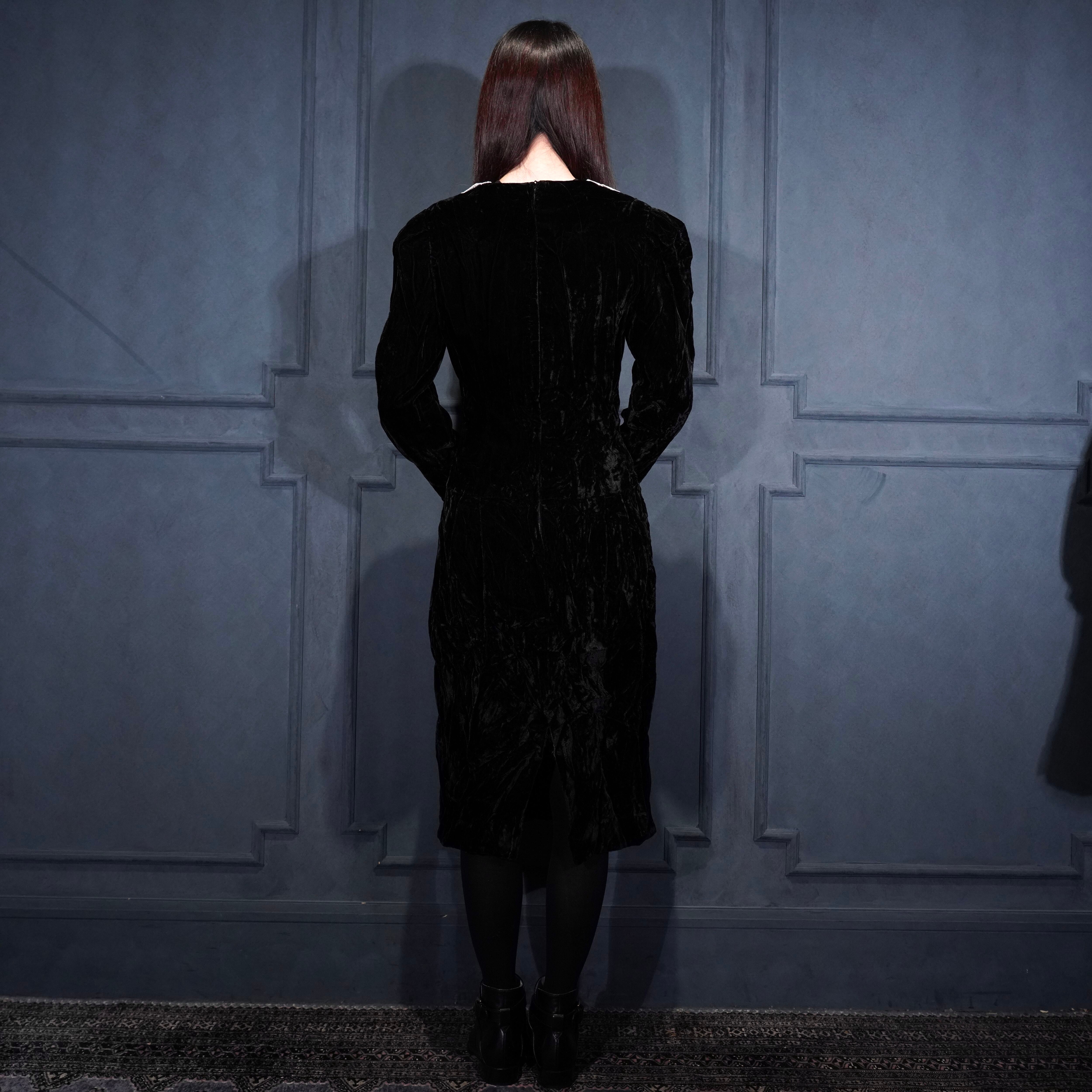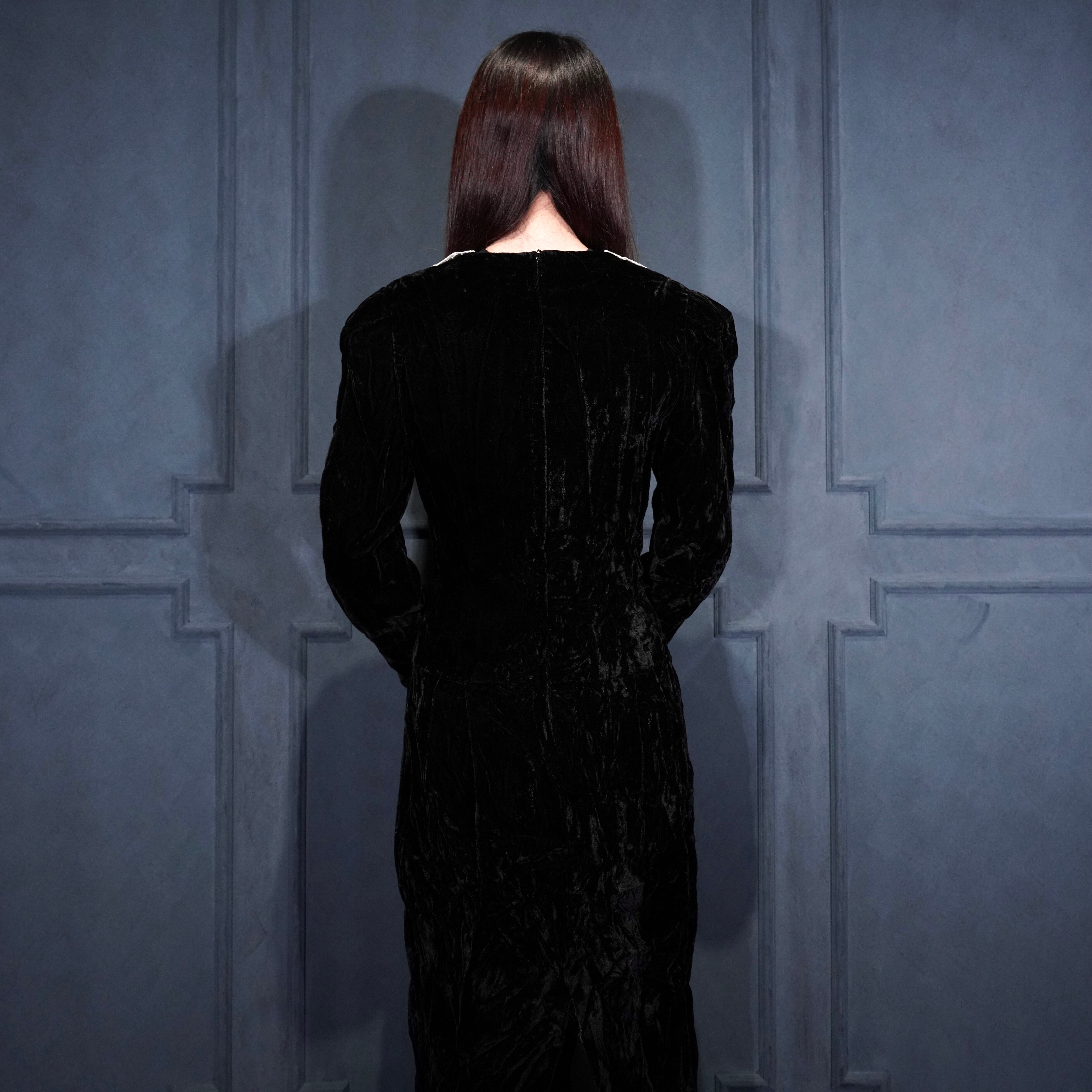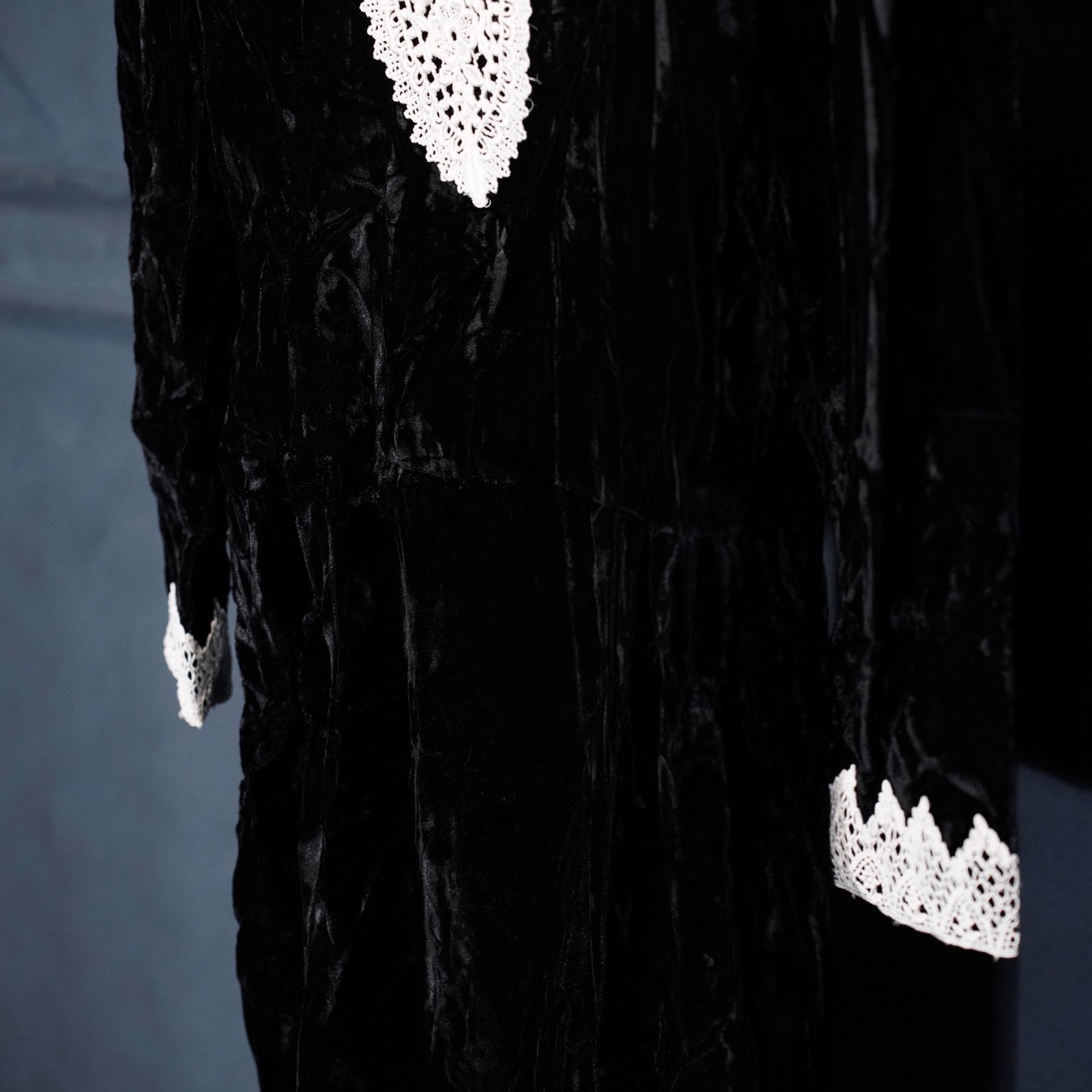 70's USA VINTAGE LACE DESIGN VELOUR DRESS ONE PIECE/70年代アメリカ古着レースデザインドレスワンピース