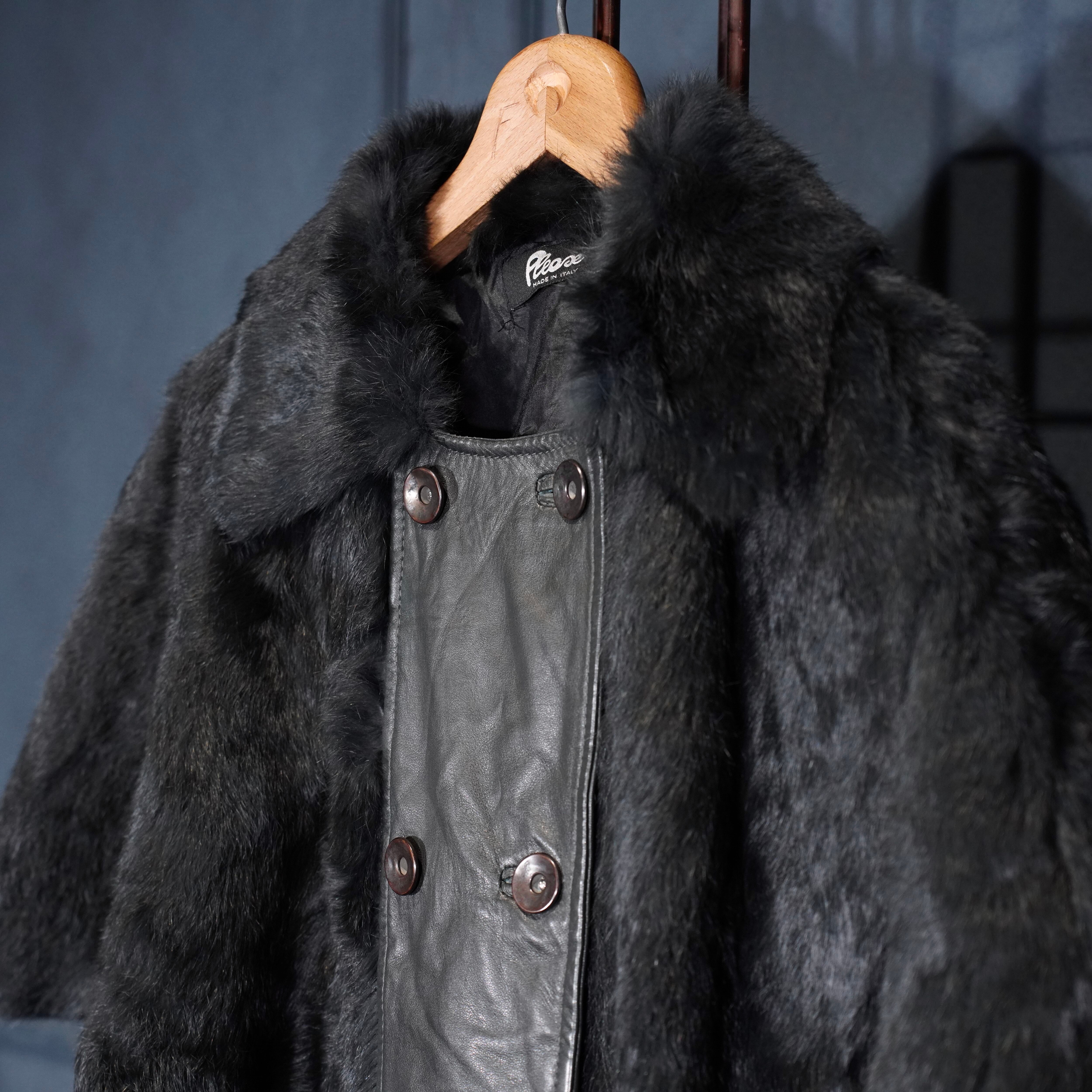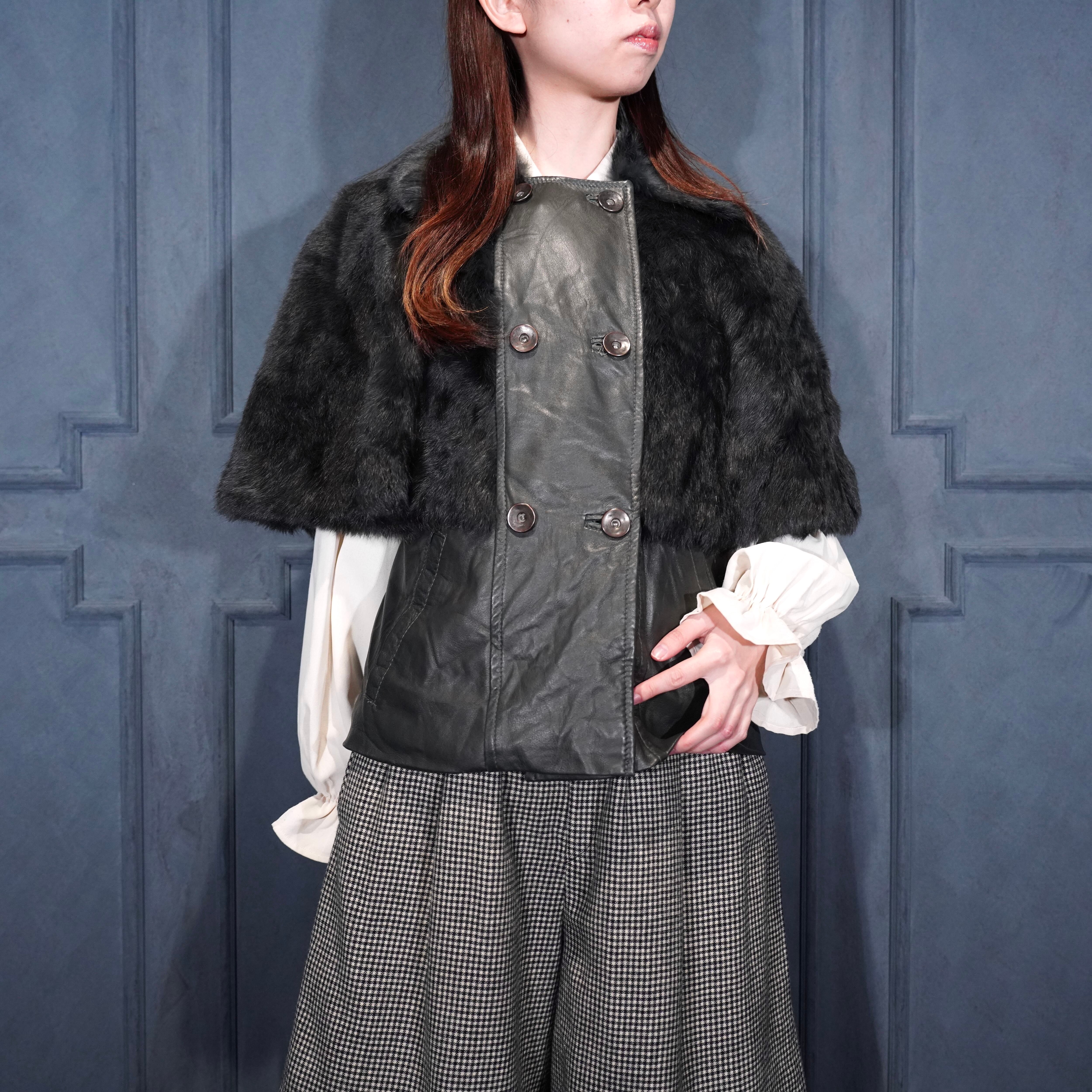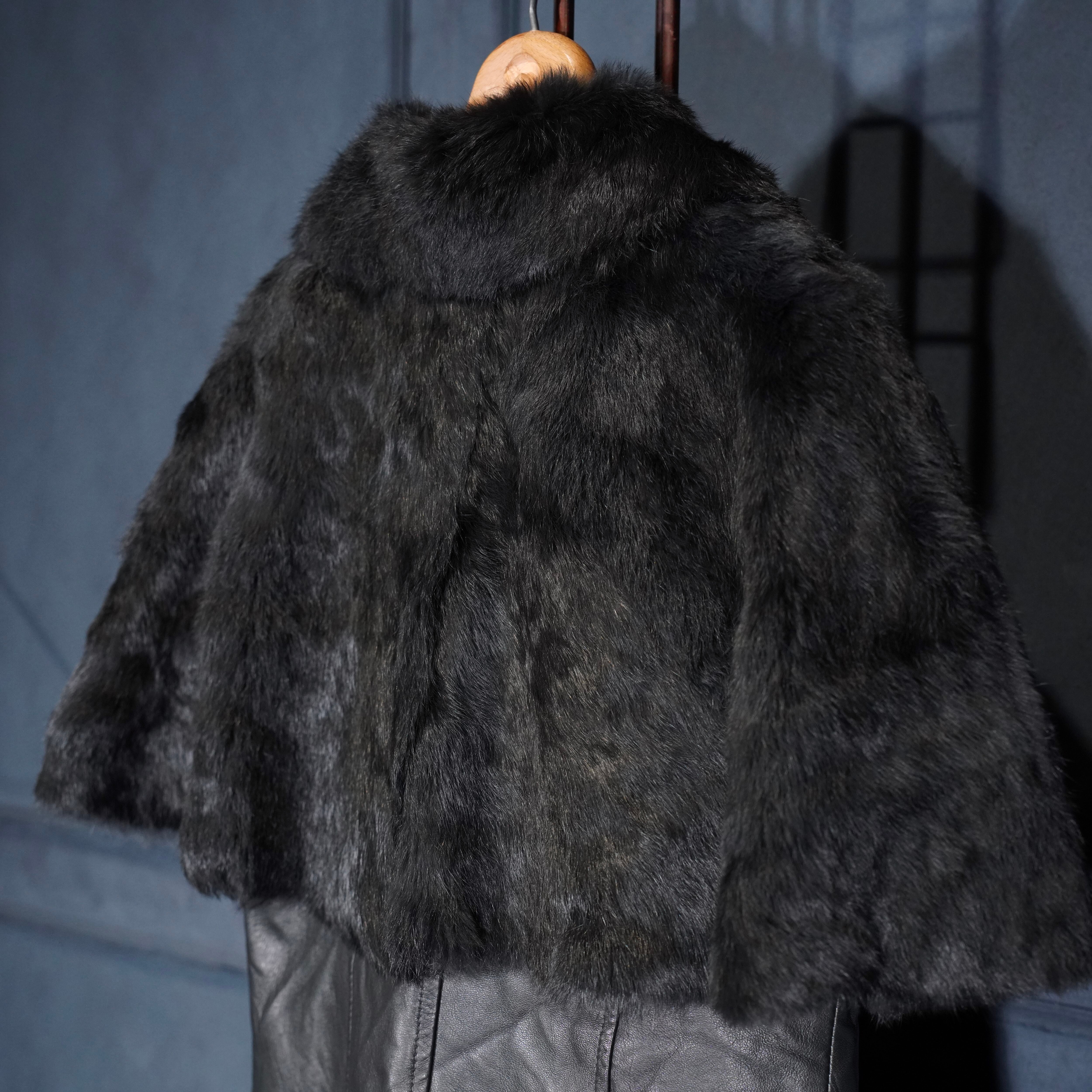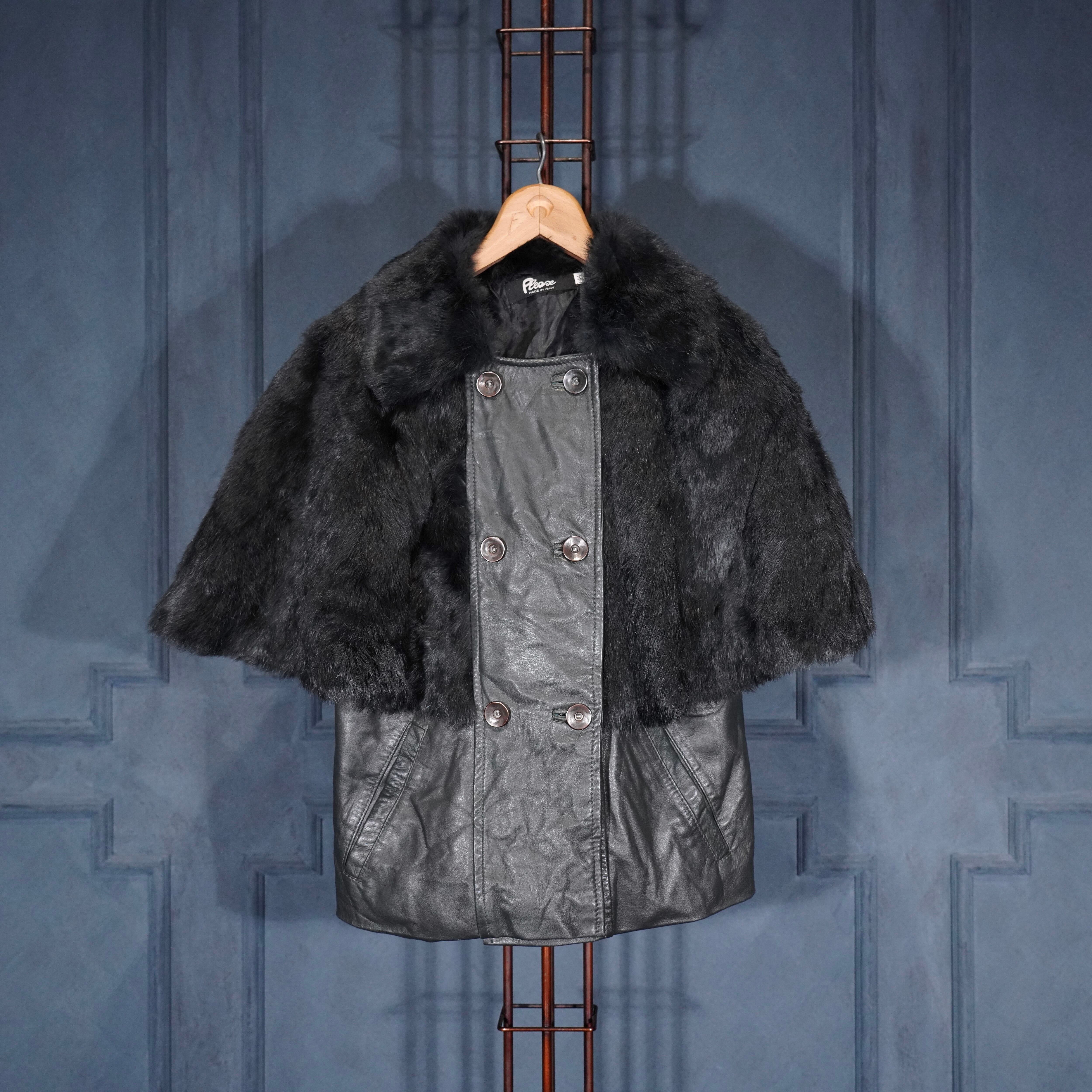 EU VINTAGE Pleace RABBIT FUR LEATHER CAPE COAT MADE IN ITALY/ヨーロッパ古着ラビットファーレザーケープコート