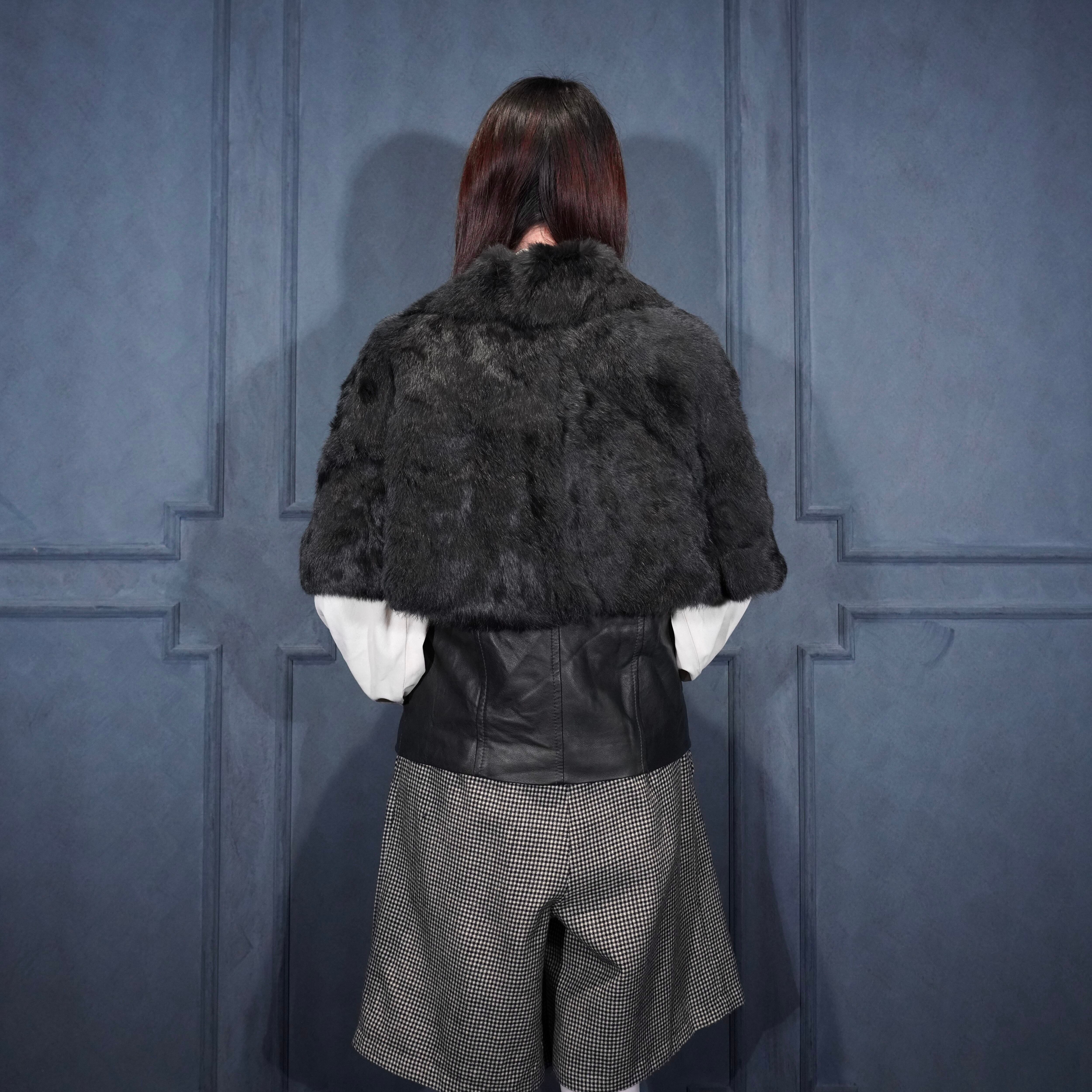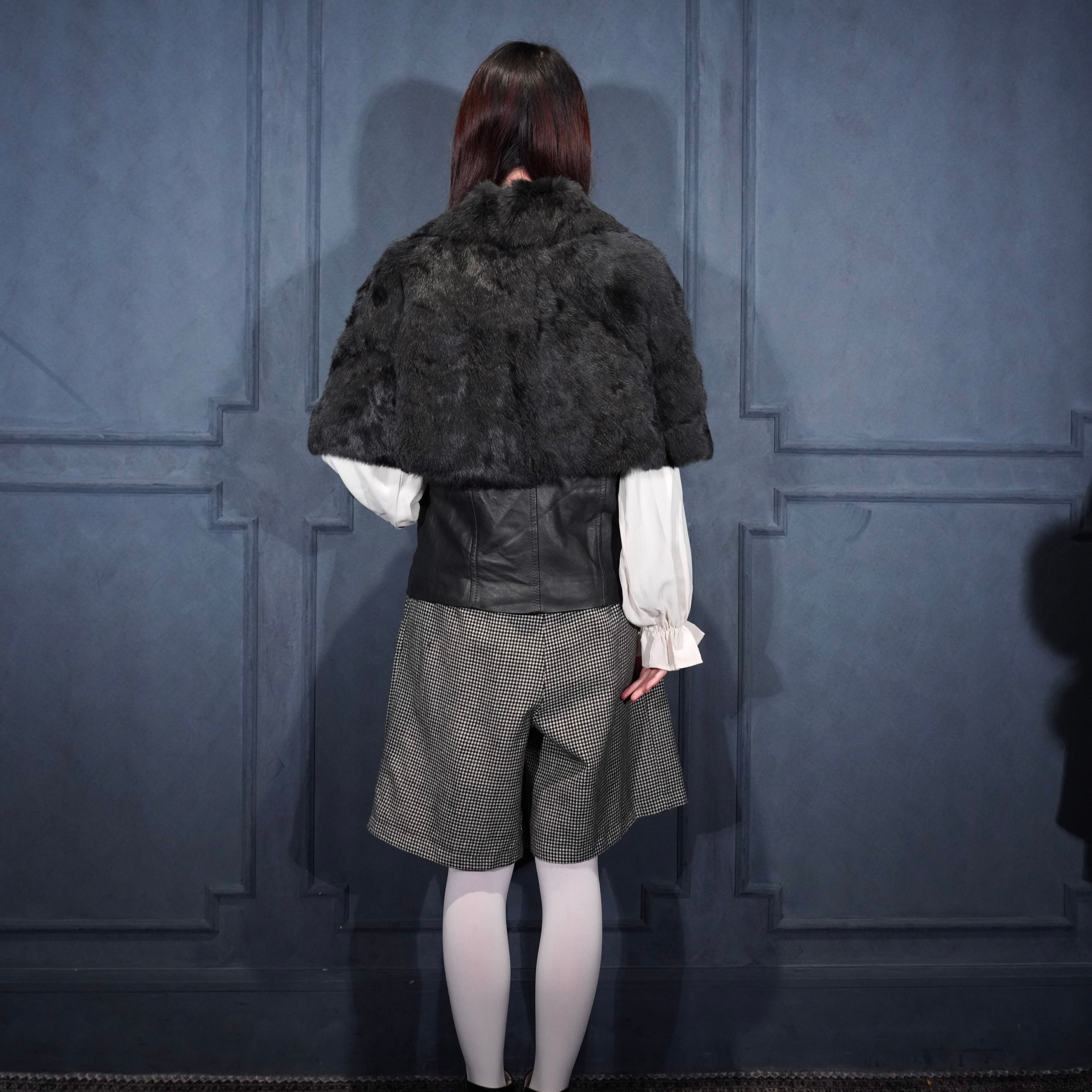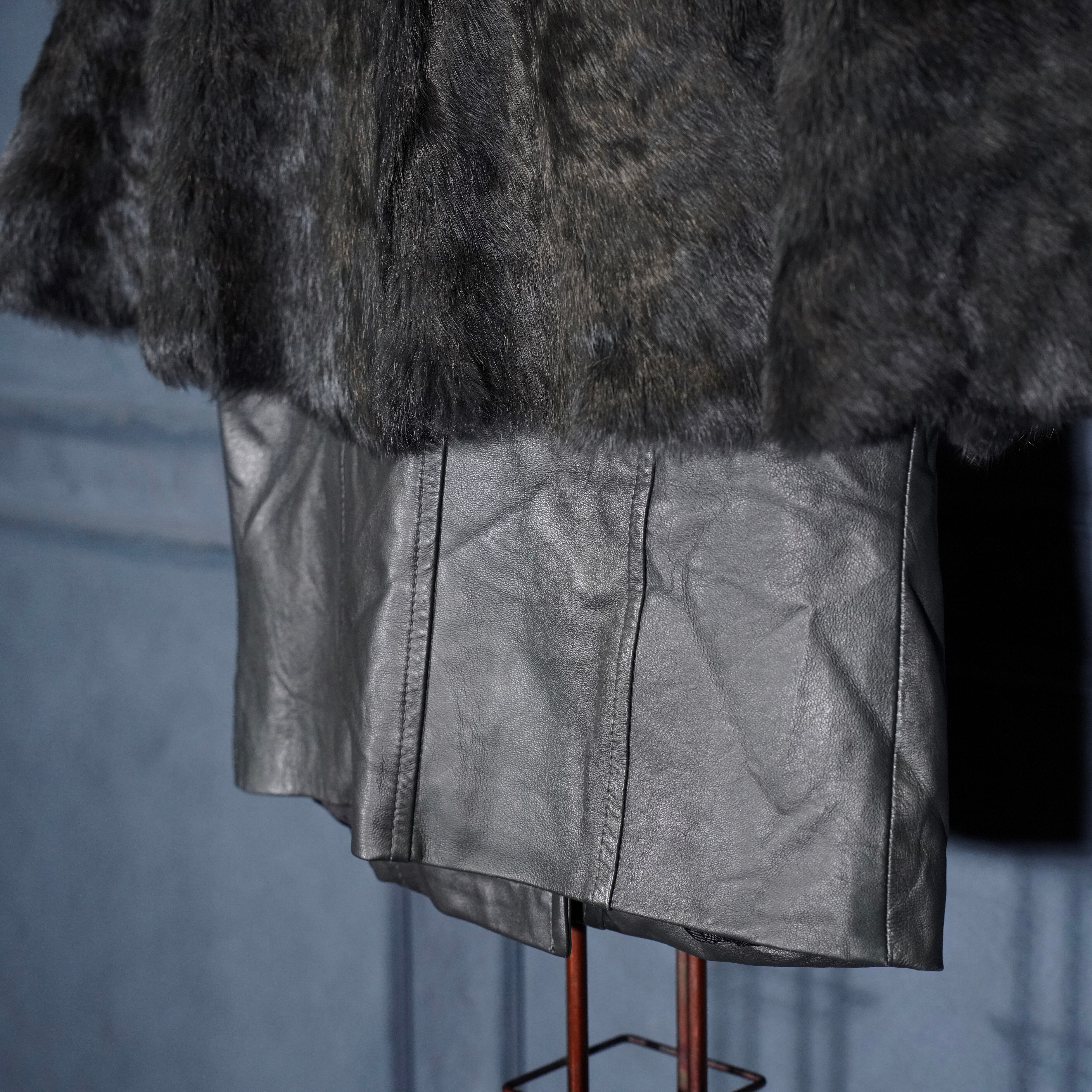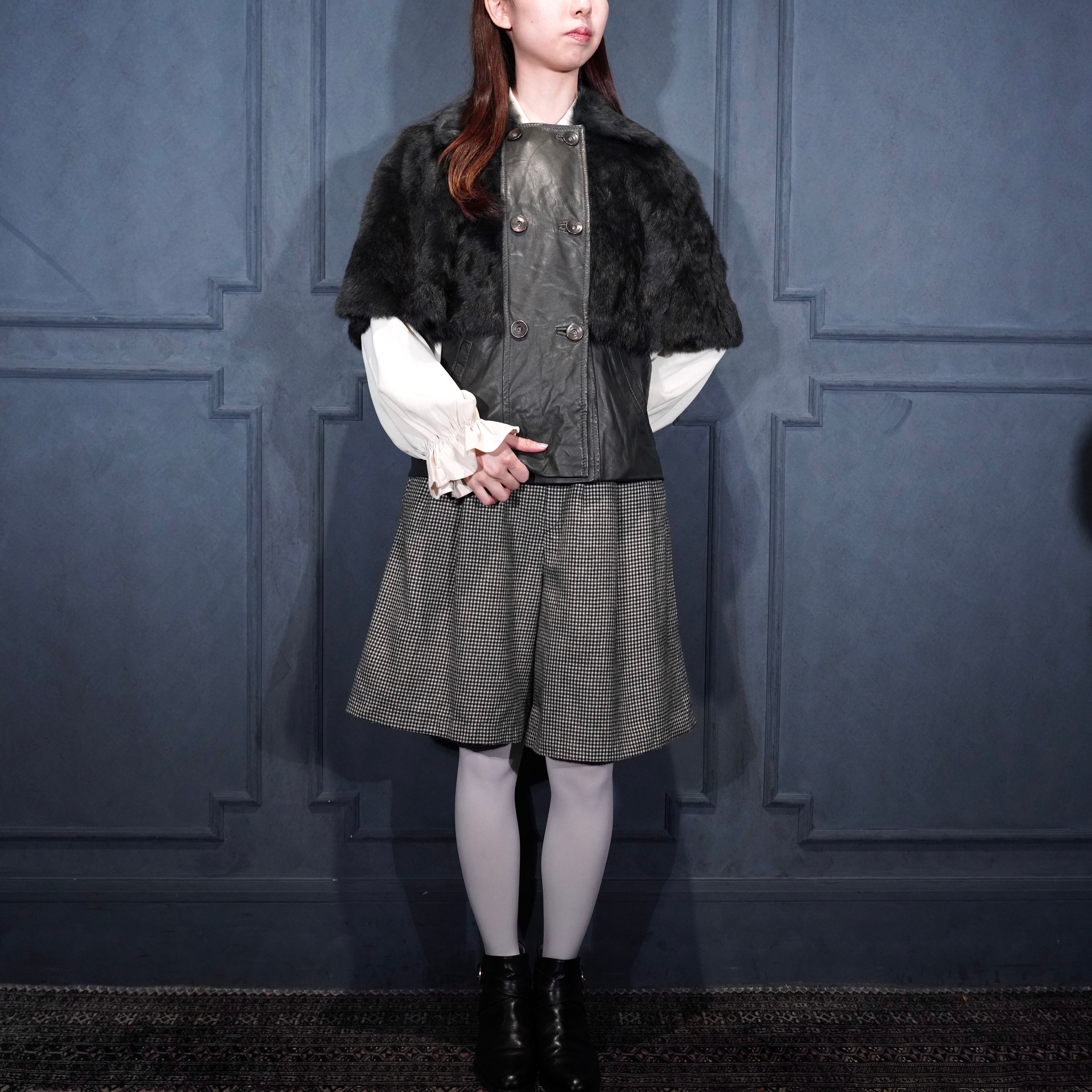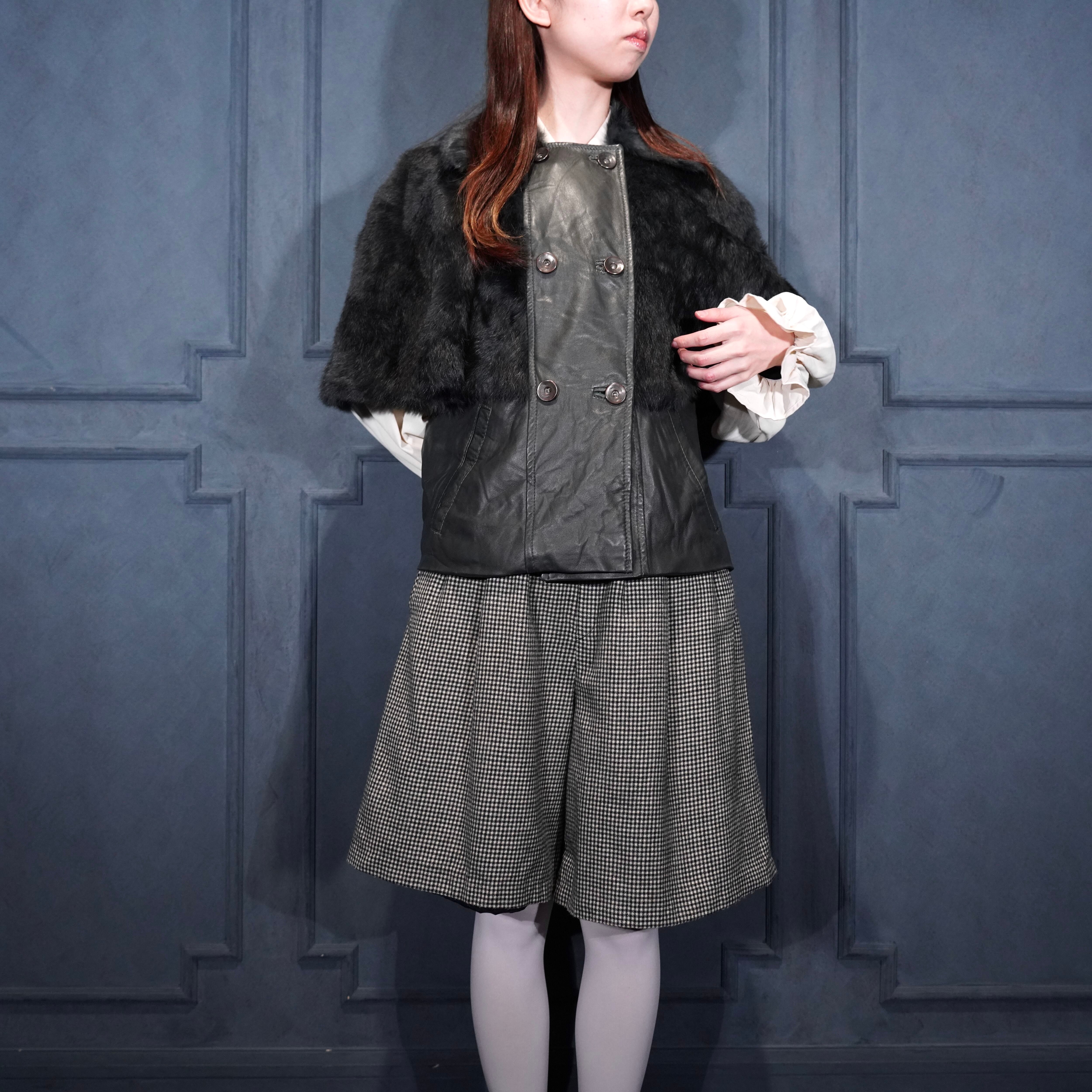 EU VINTAGE Pleace RABBIT FUR LEATHER CAPE COAT MADE IN ITALY/ヨーロッパ古着ラビットファーレザーケープコート