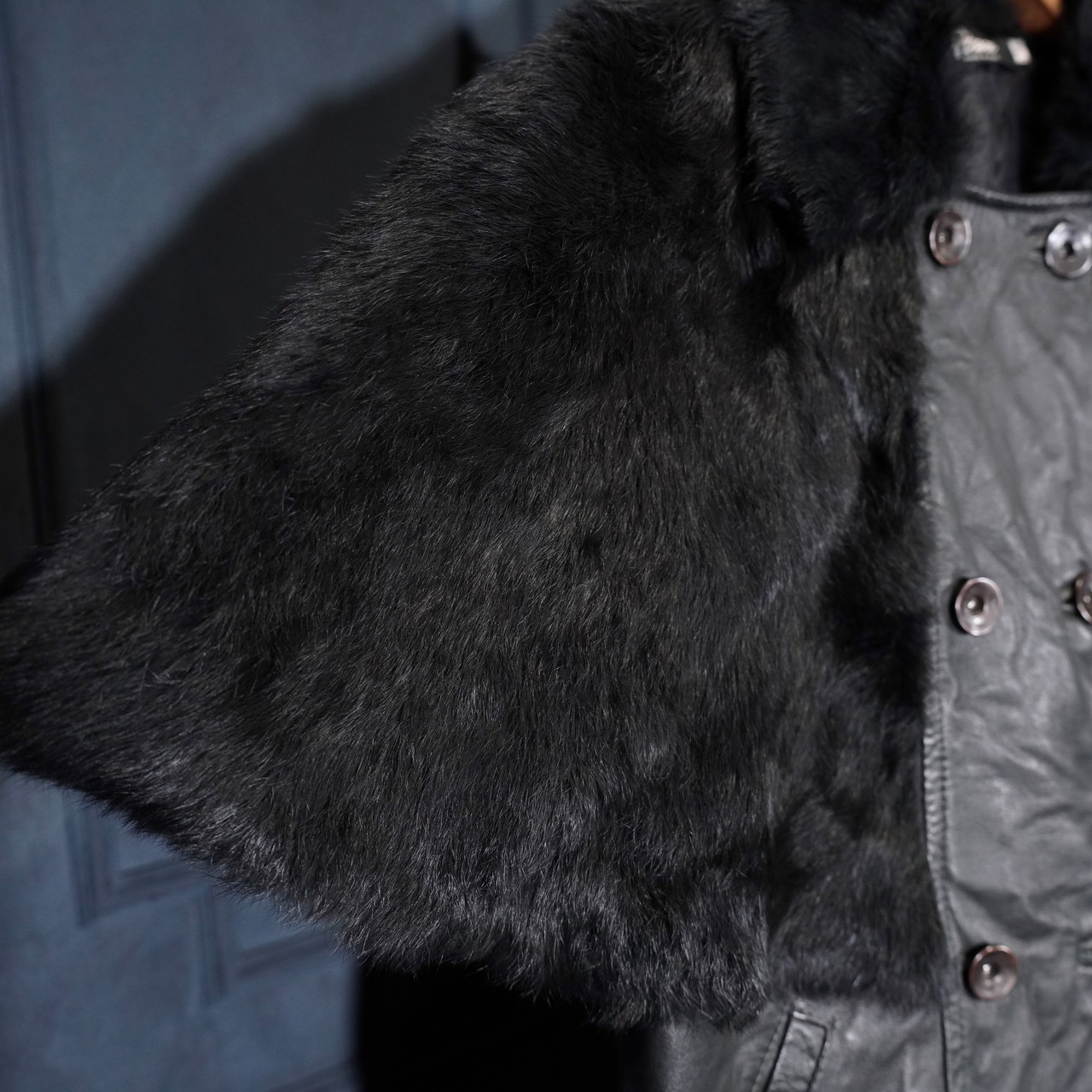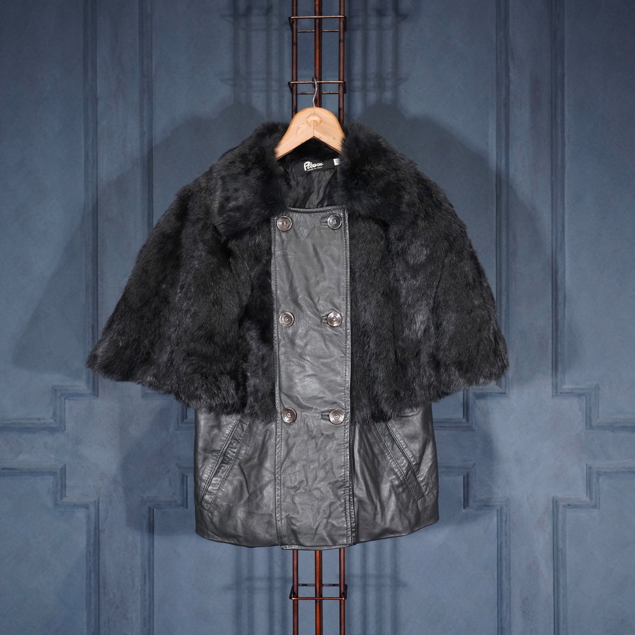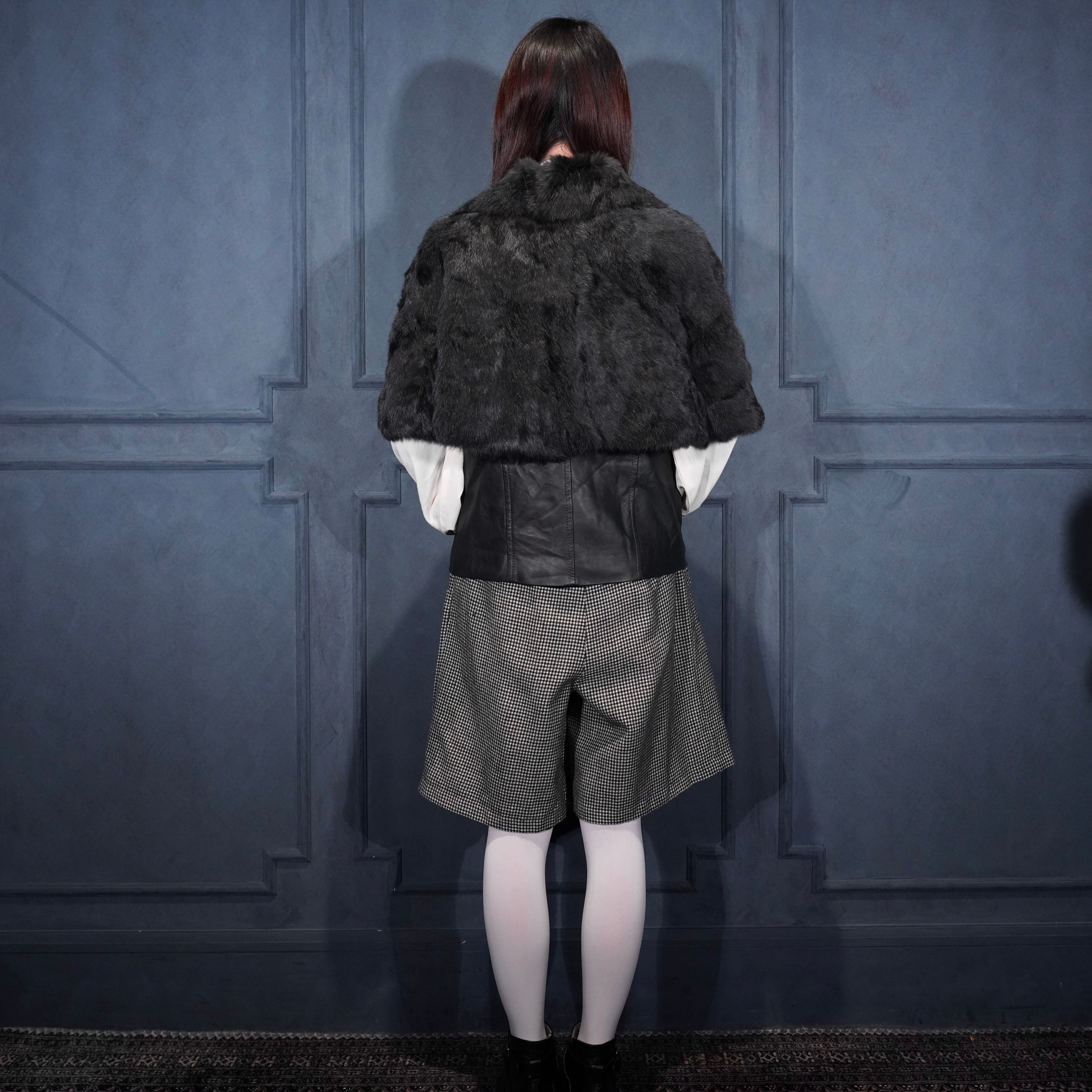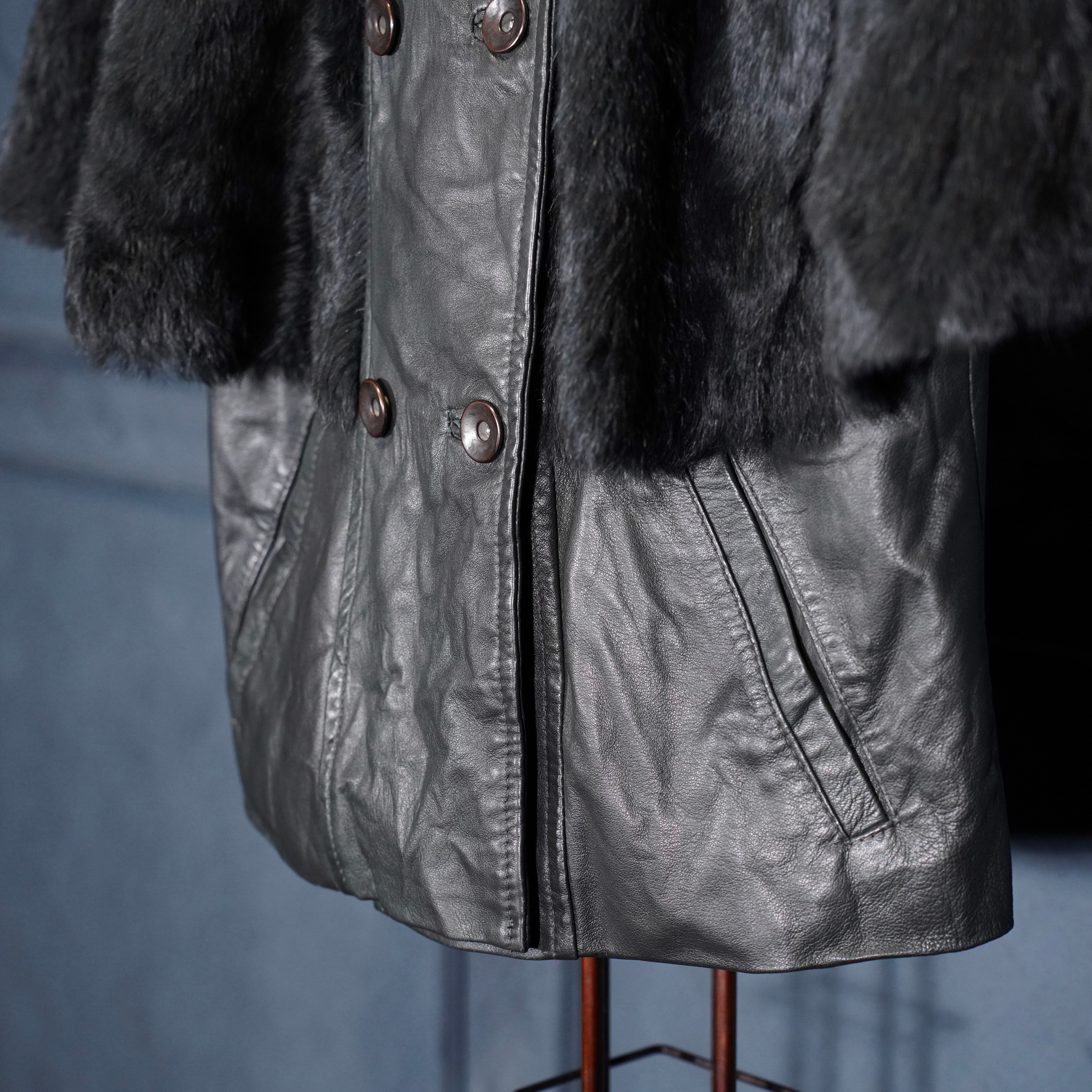 EU VINTAGE Pleace RABBIT FUR LEATHER CAPE COAT MADE IN ITALY/ヨーロッパ古着ラビットファーレザーケープコート