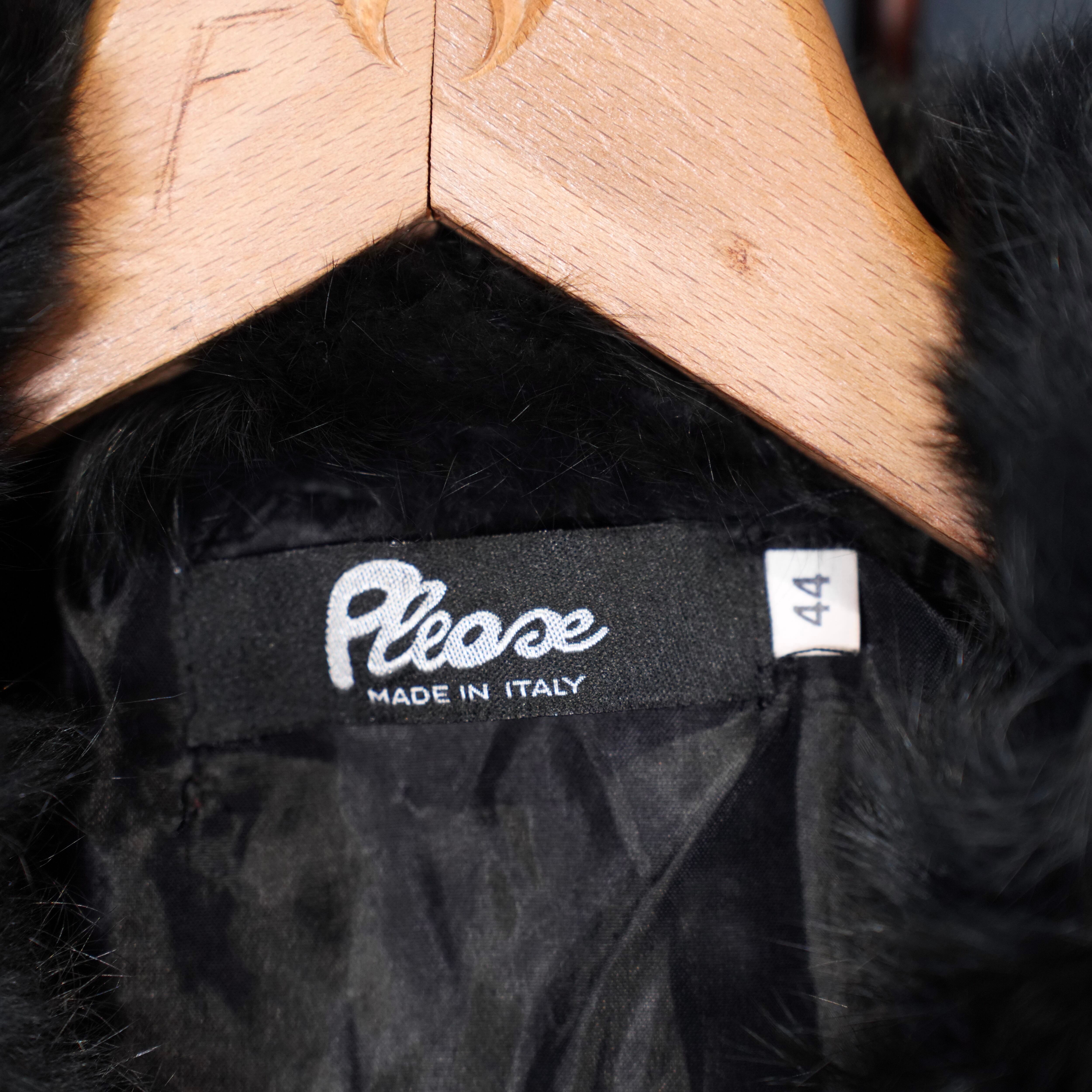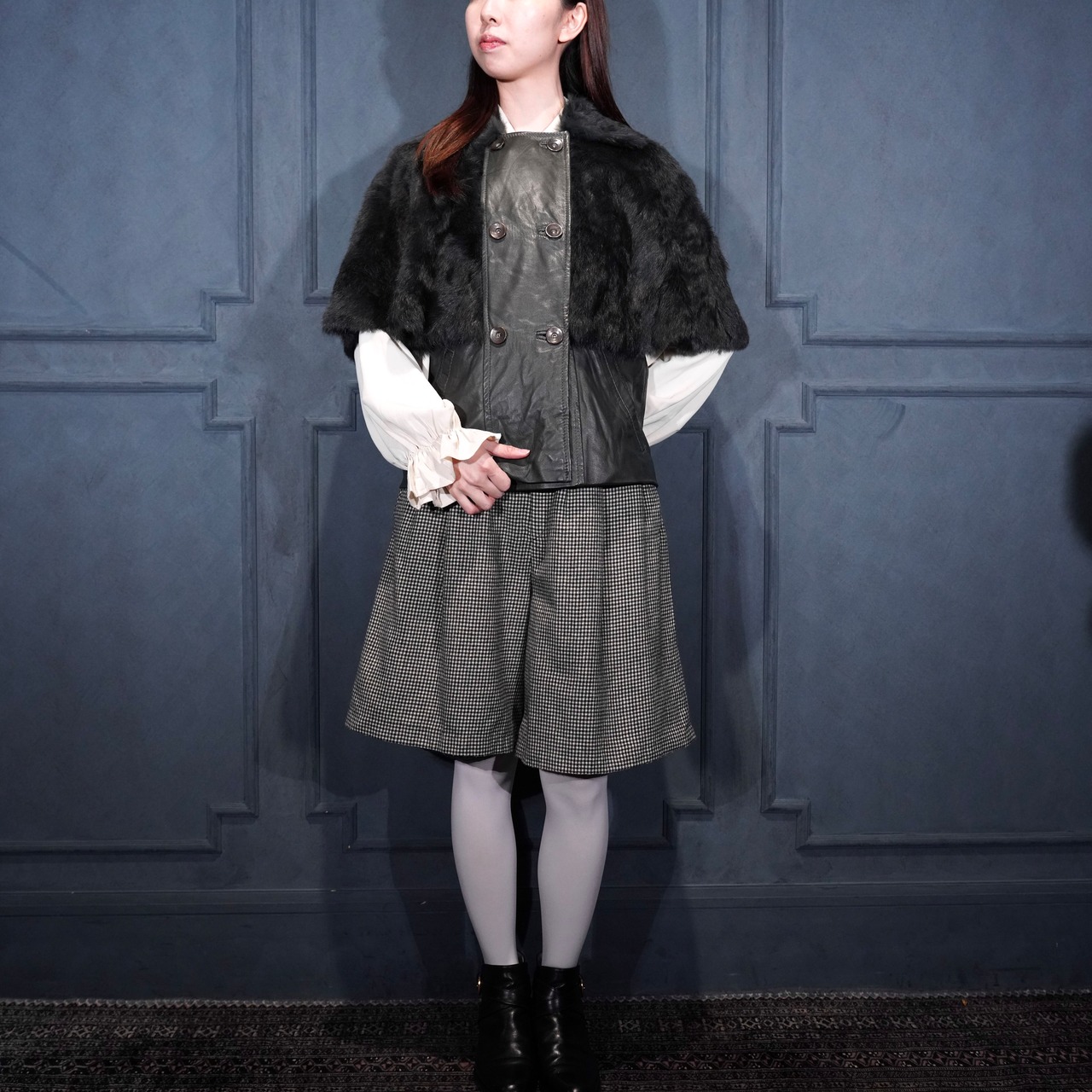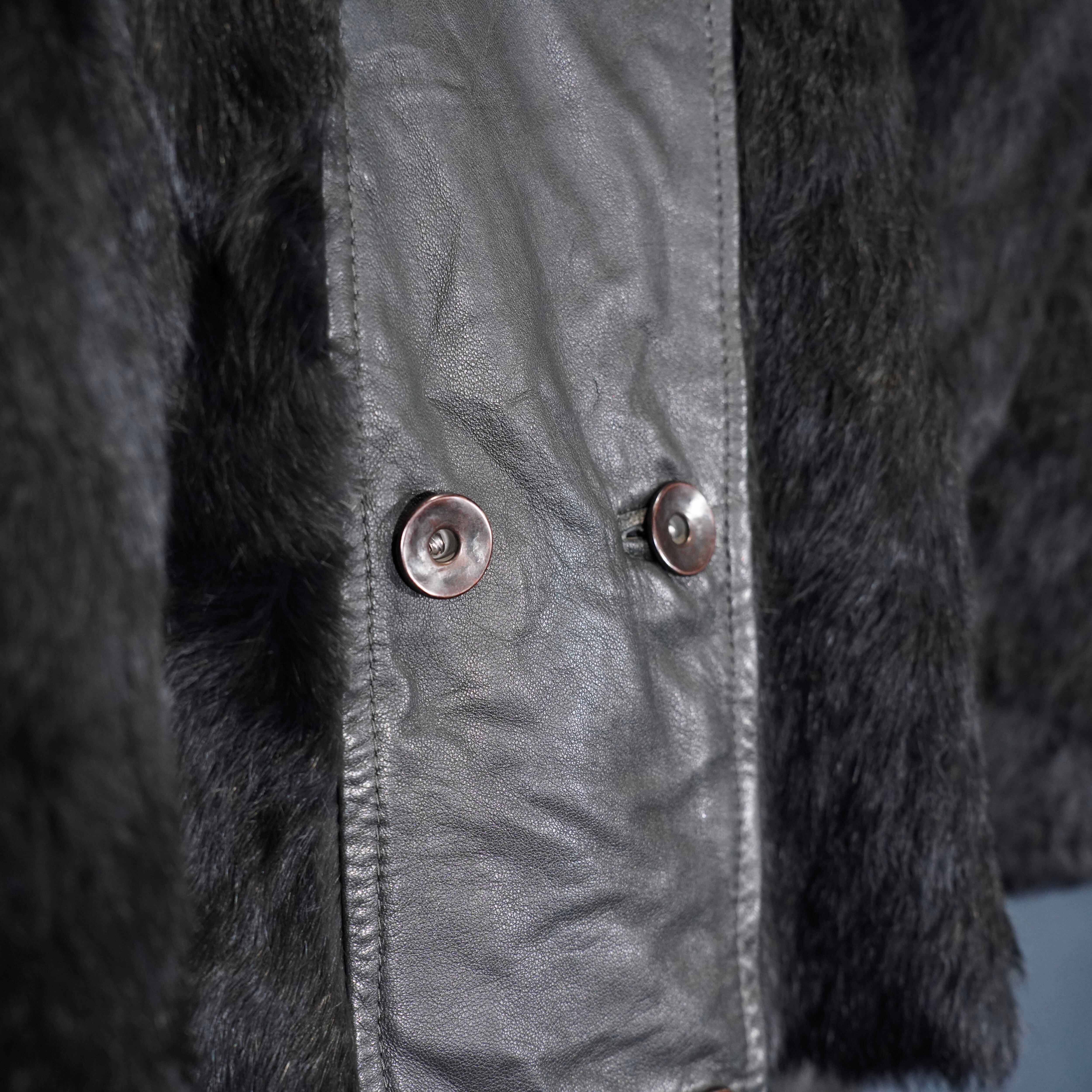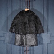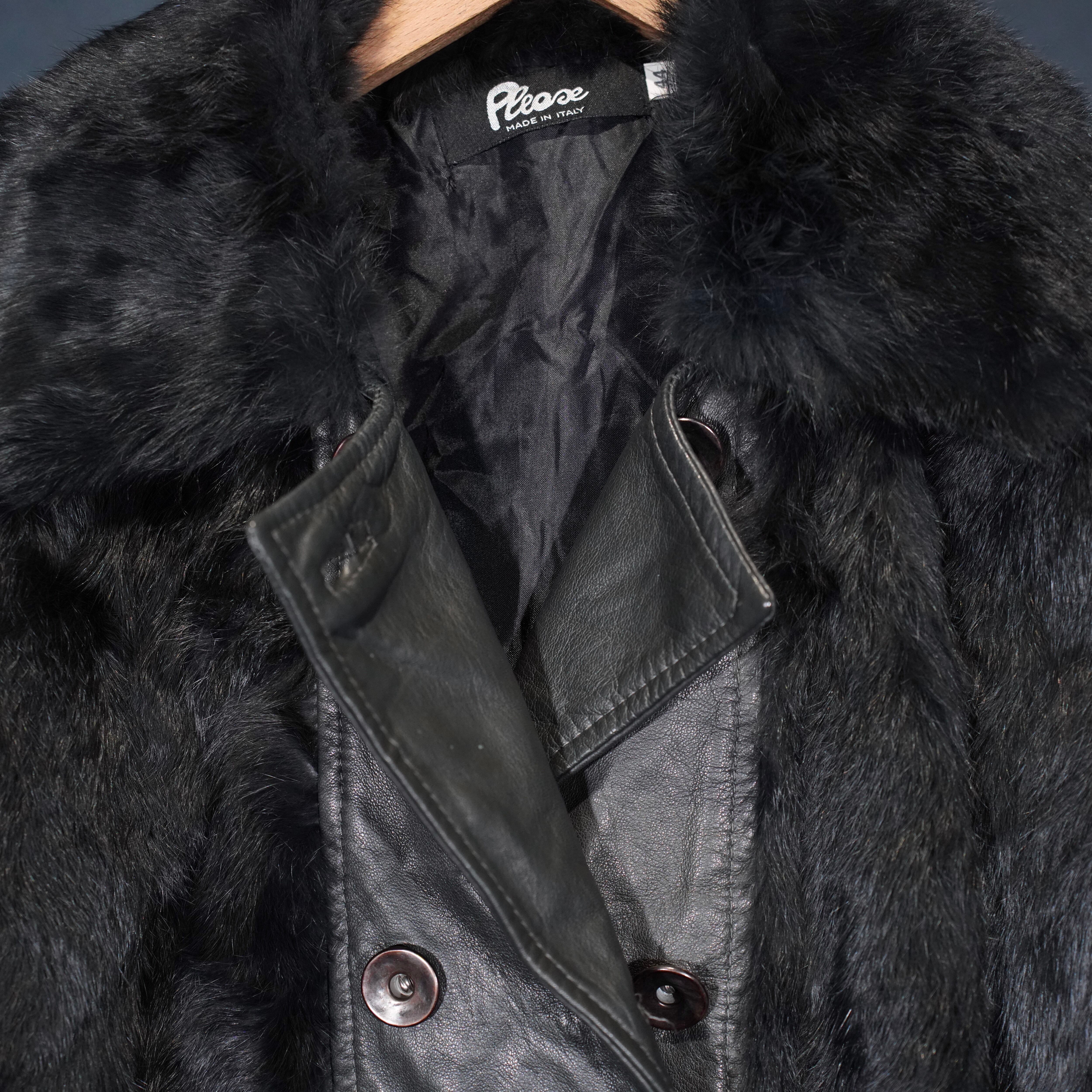 EU VINTAGE Pleace RABBIT FUR LEATHER CAPE COAT MADE IN ITALY/ヨーロッパ古着ラビットファーレザーケープコート