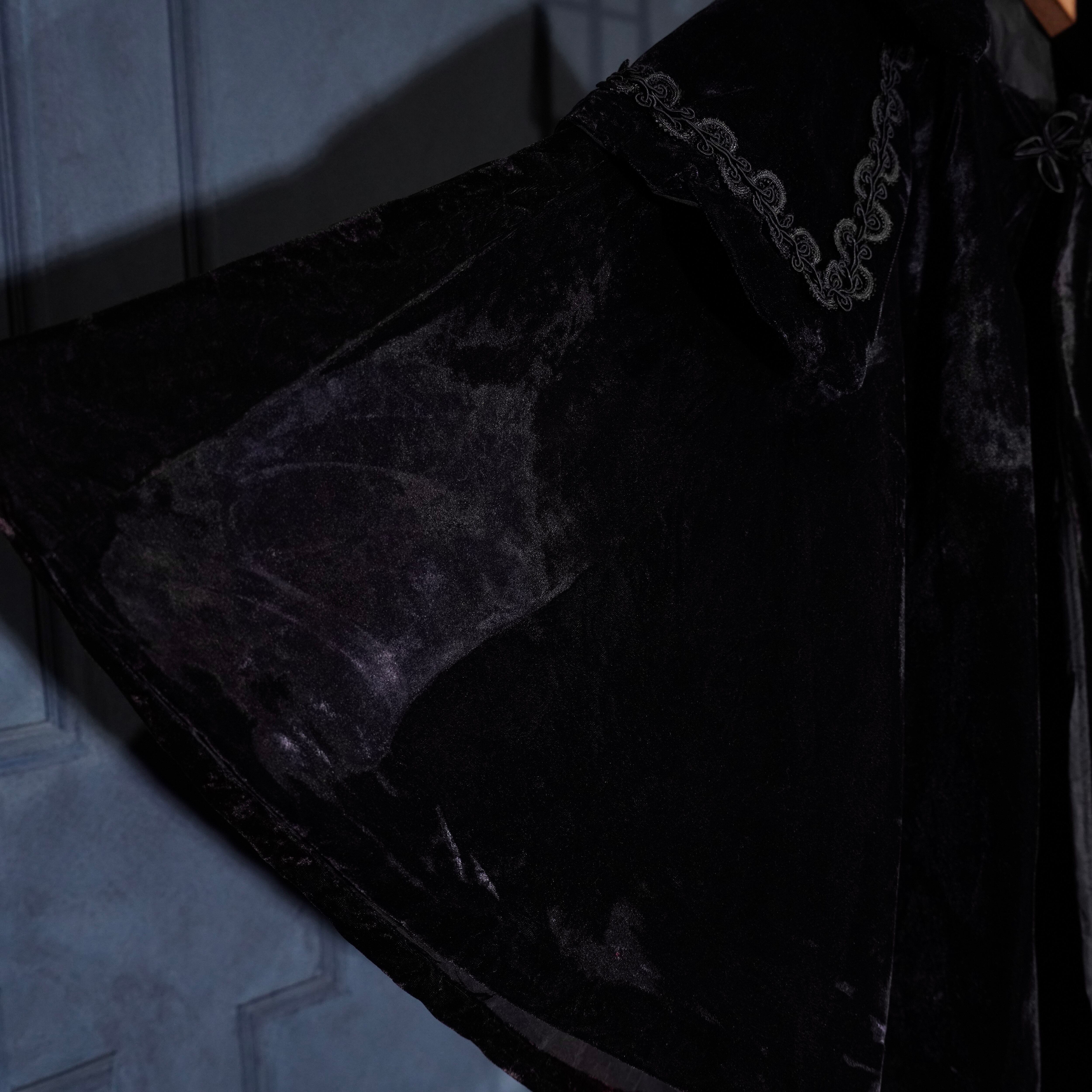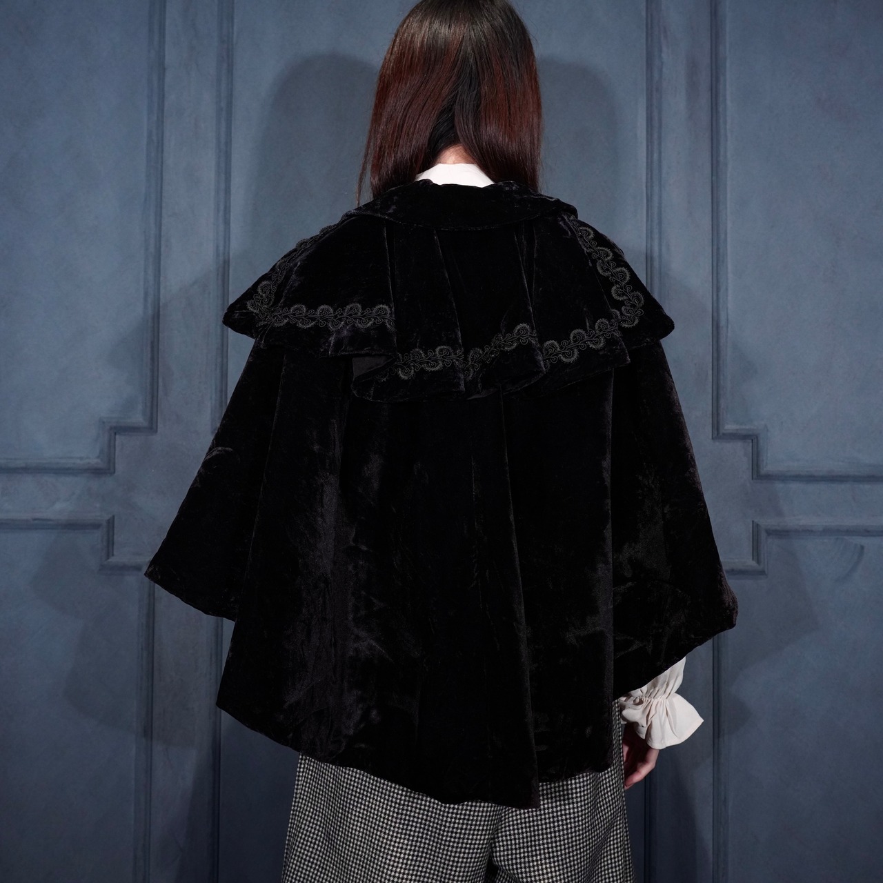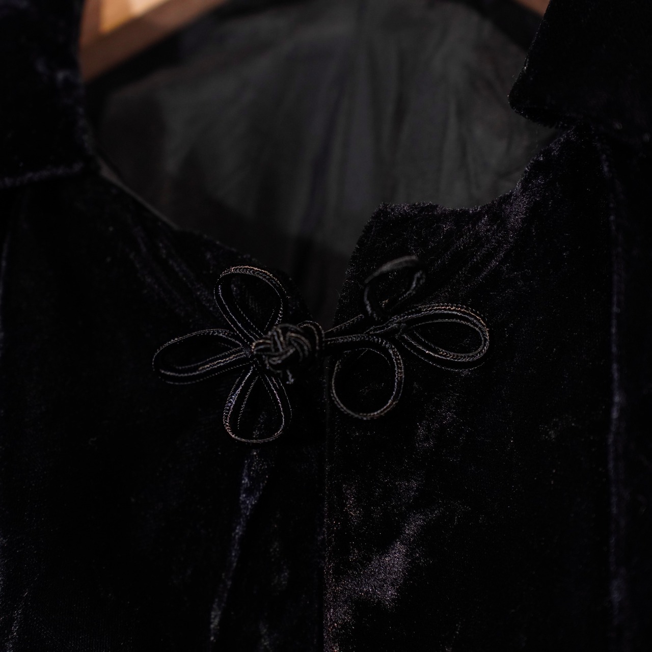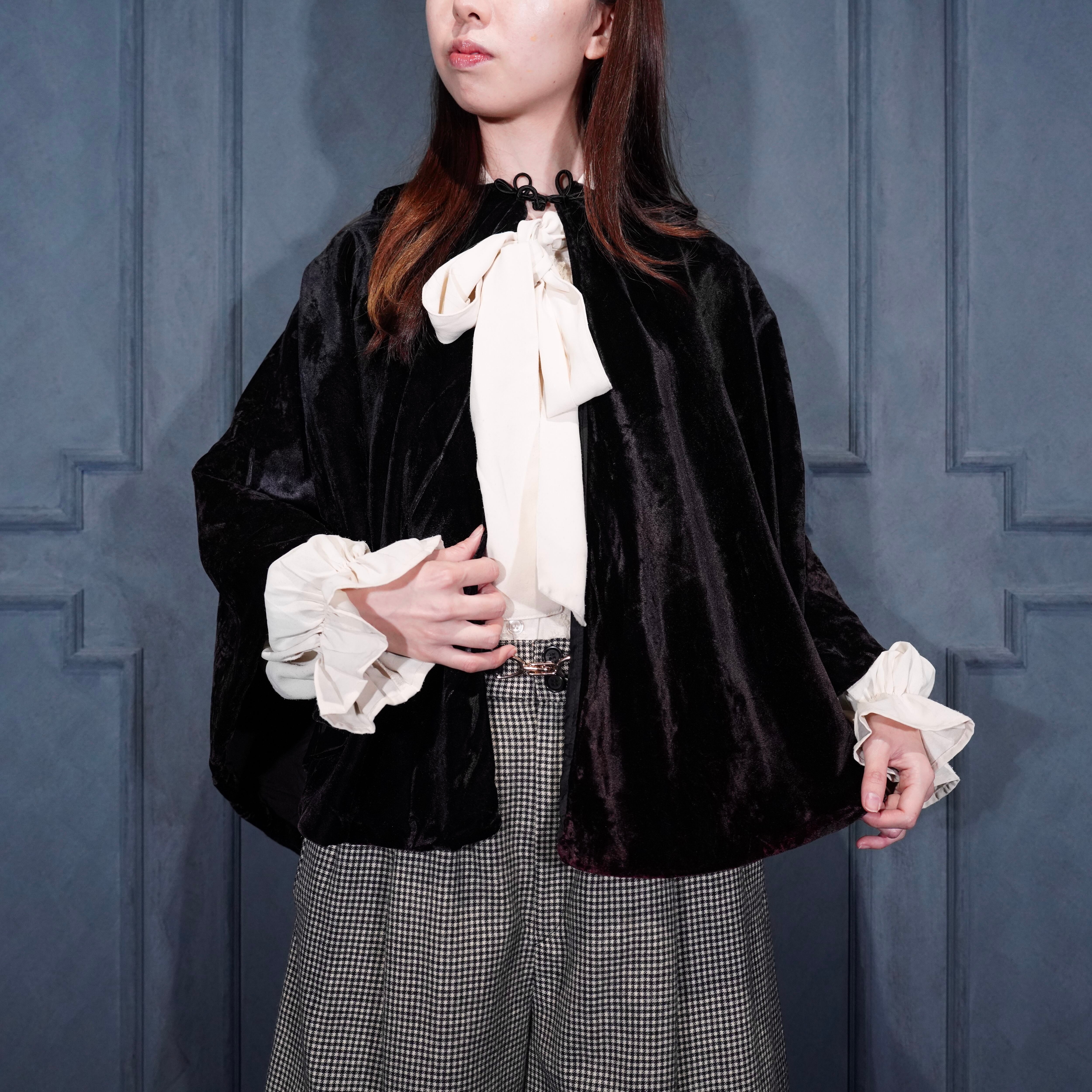 USA VINTAGE DOUBLE COLLAR EMBROIDERY CHINA BUTTON DESIGN VELOUR CAPE JACKET/アメリカ古着ダブルカラー刺繍チャイナボタンデザインベロアケープジャケット