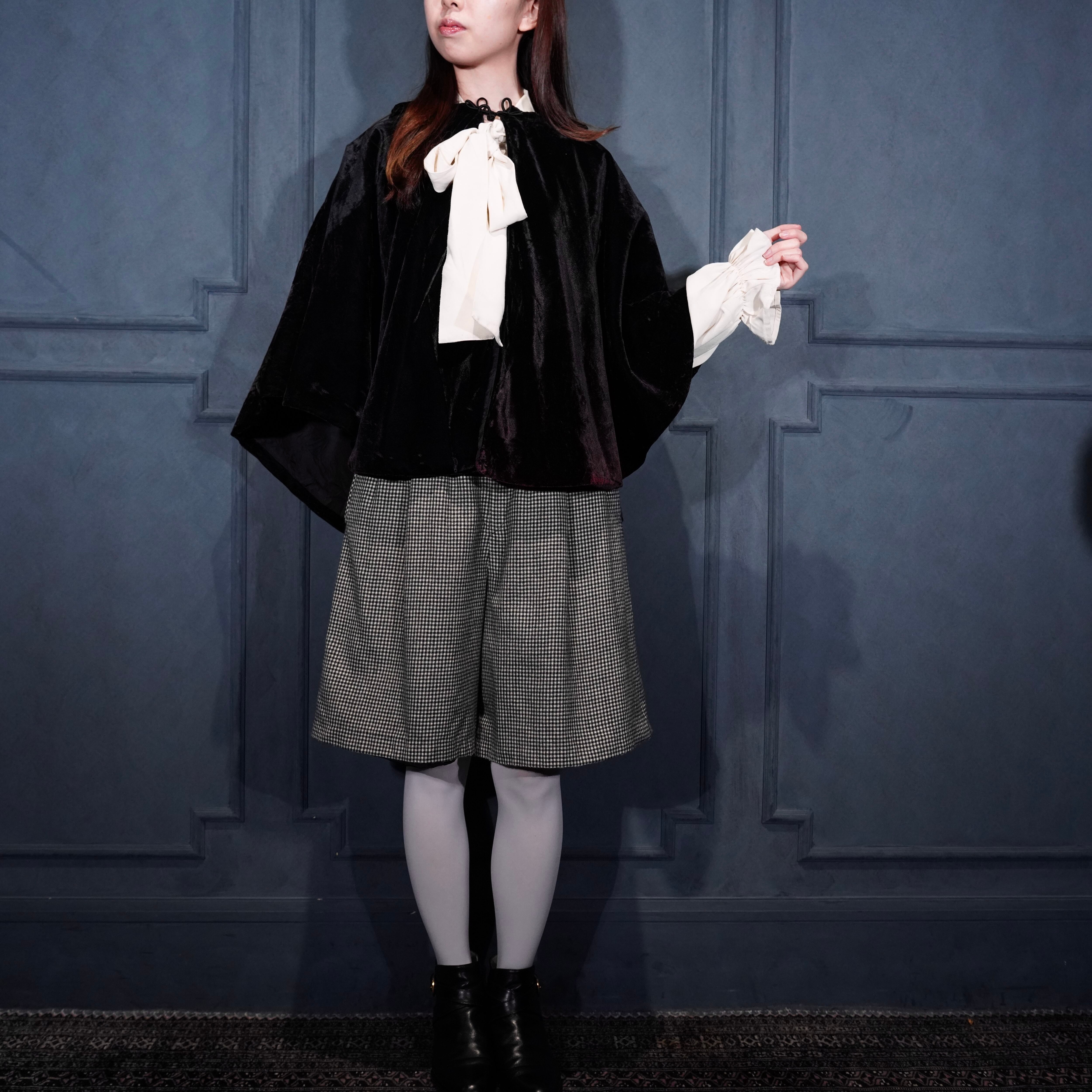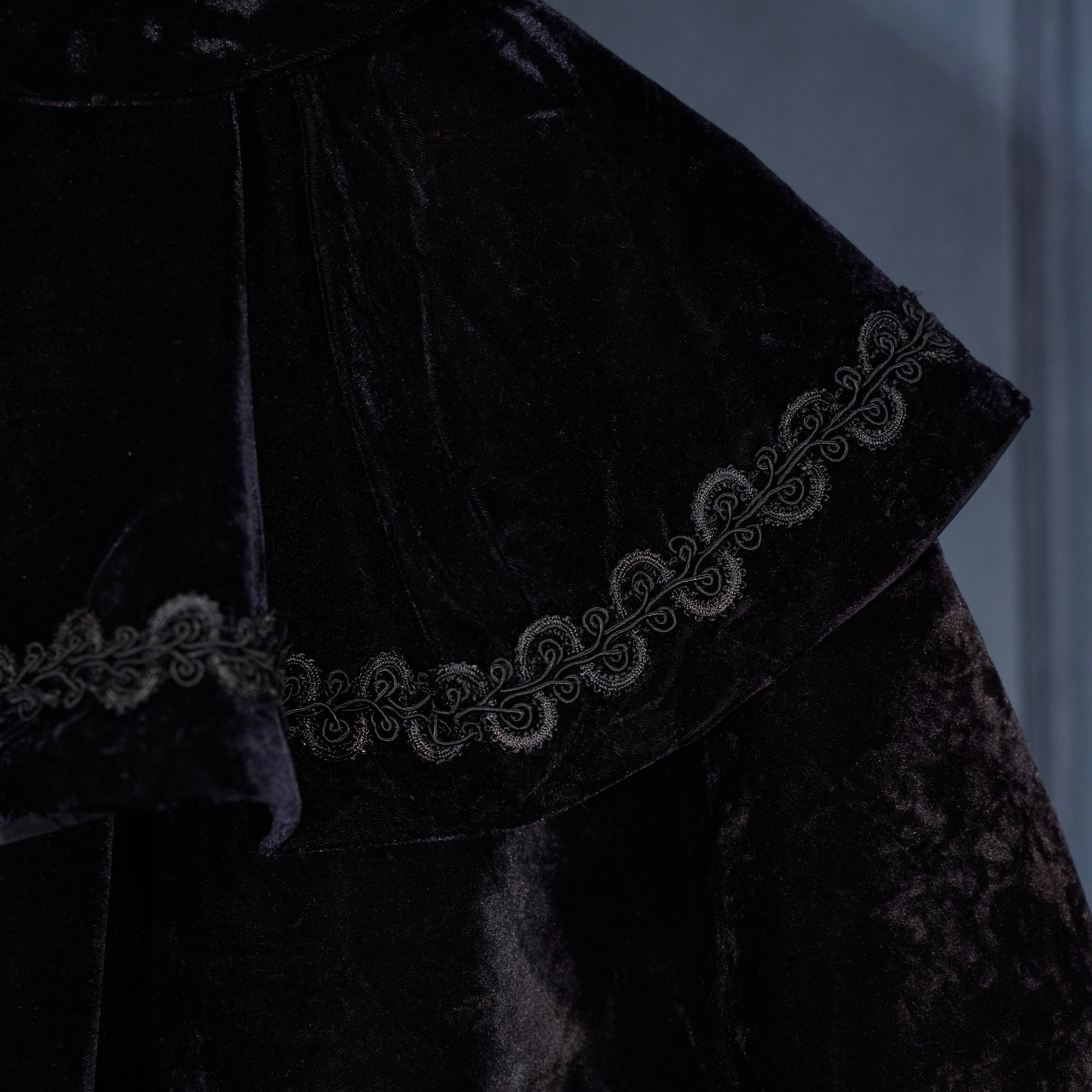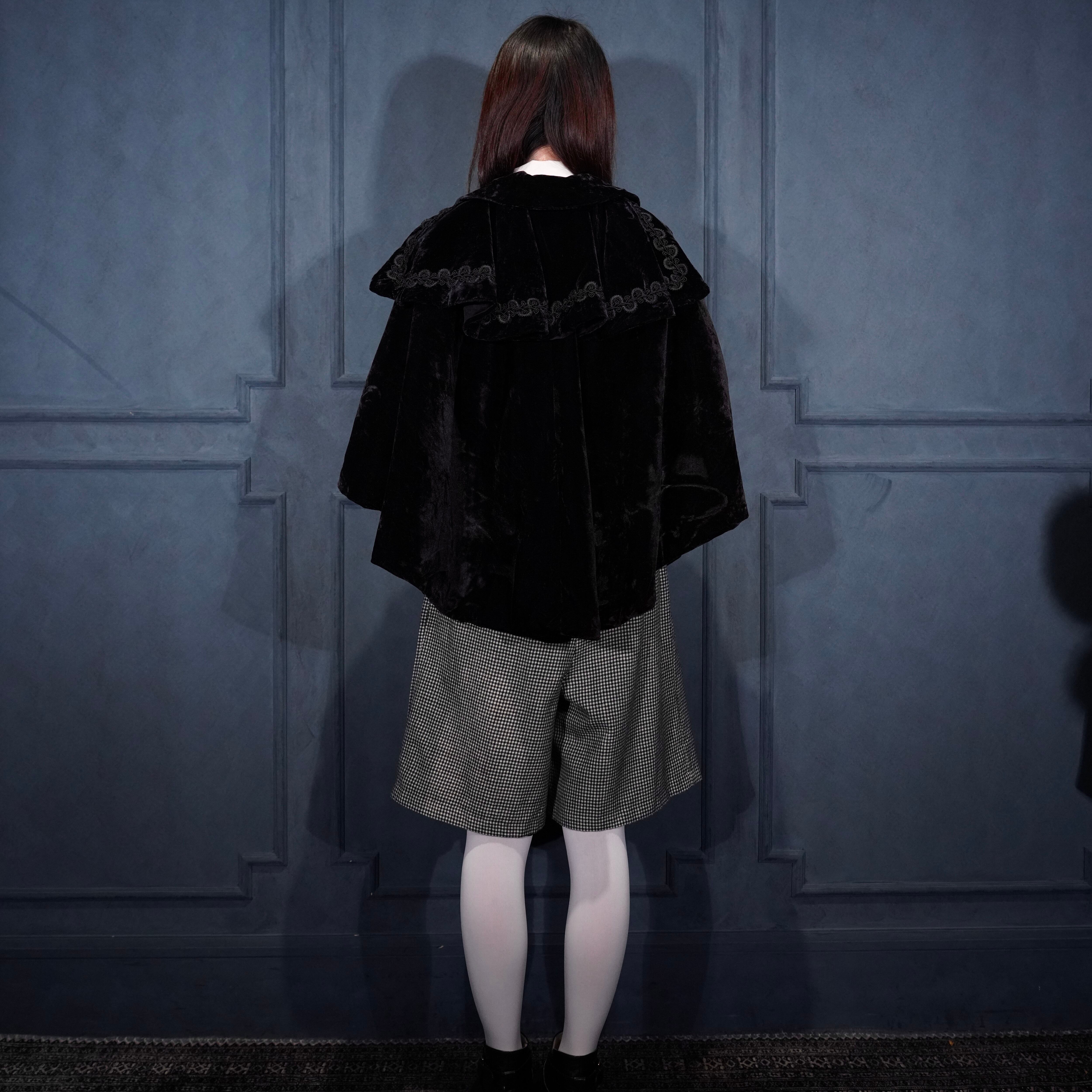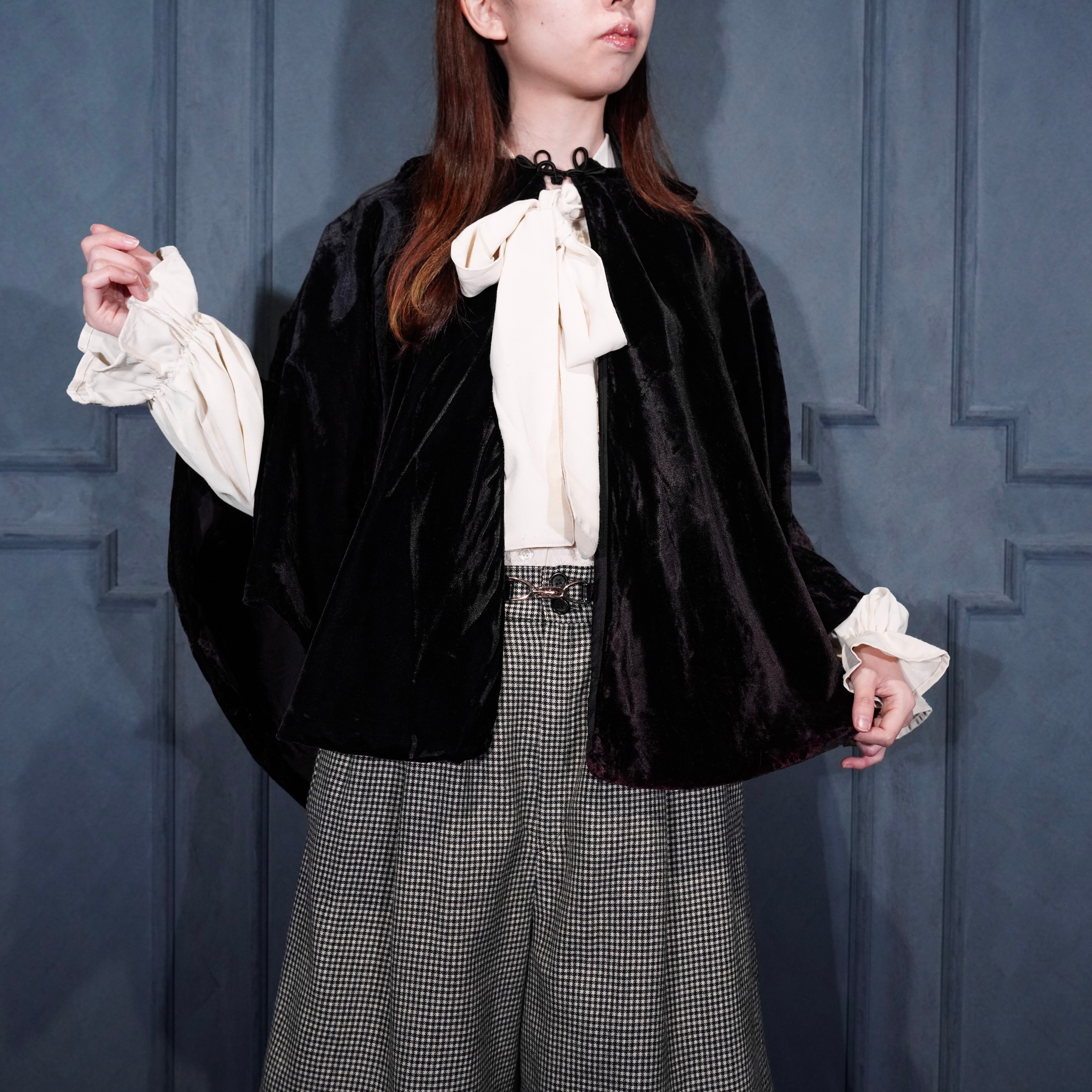 USA VINTAGE DOUBLE COLLAR EMBROIDERY CHINA BUTTON DESIGN VELOUR CAPE JACKET/アメリカ古着ダブルカラー刺繍チャイナボタンデザインベロアケープジャケット
