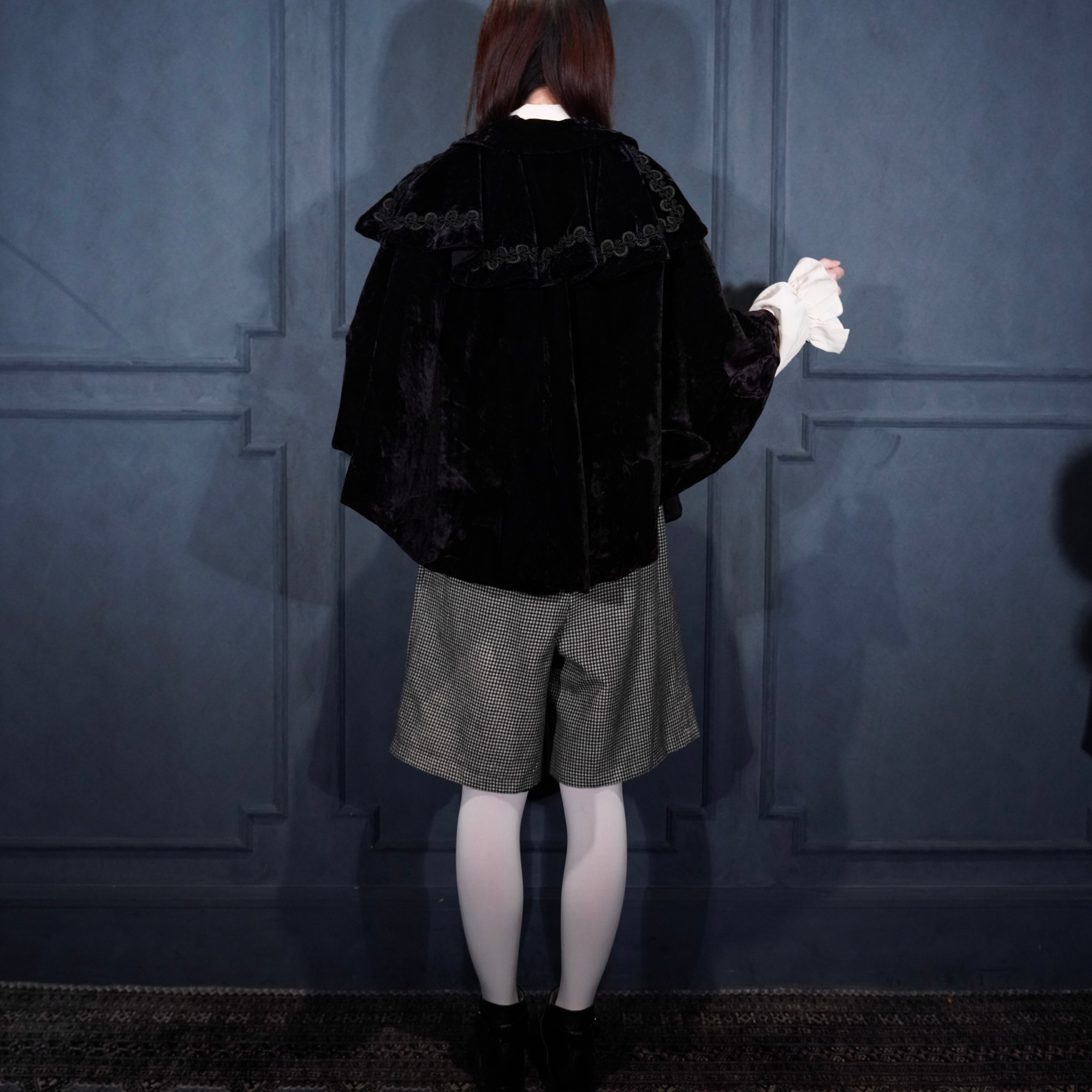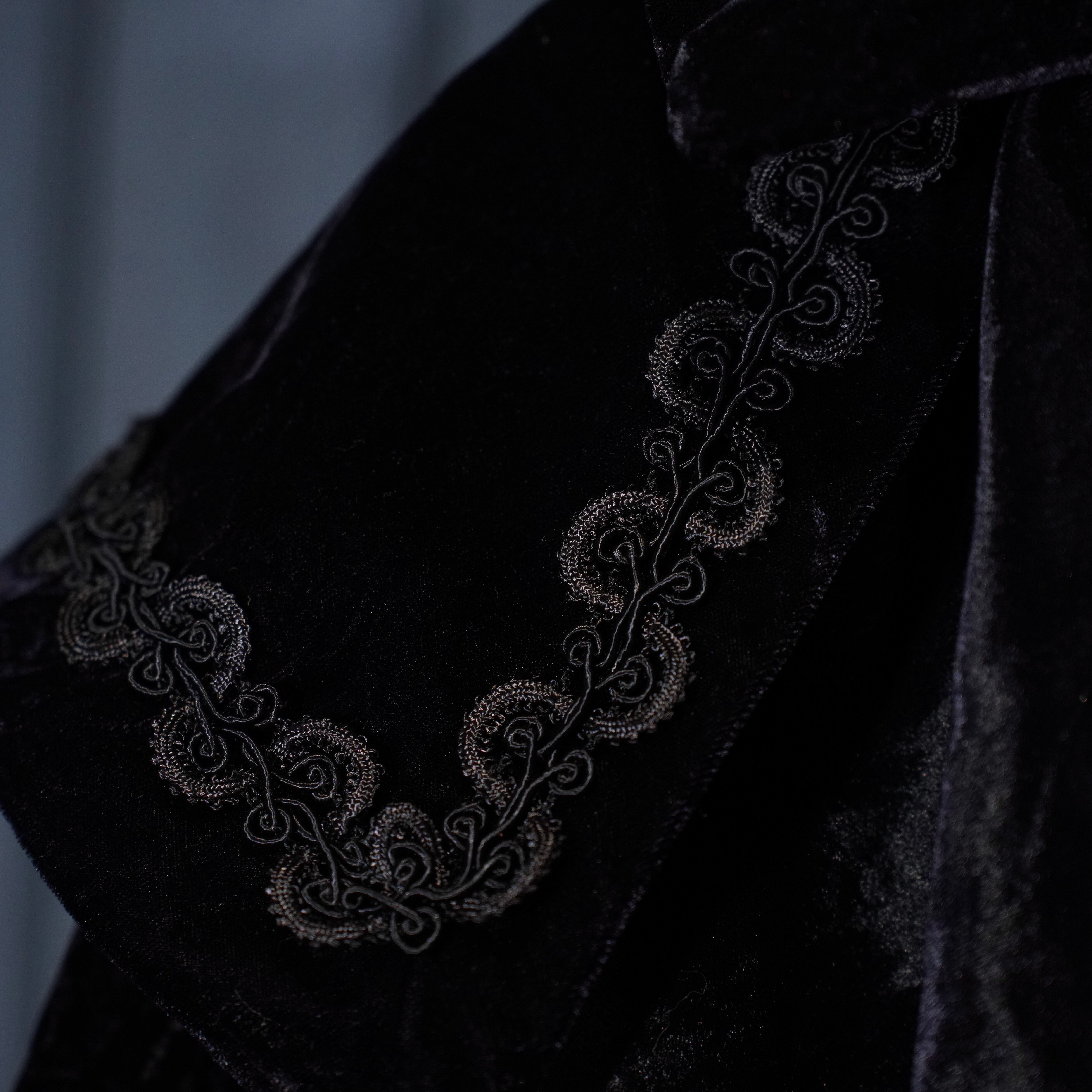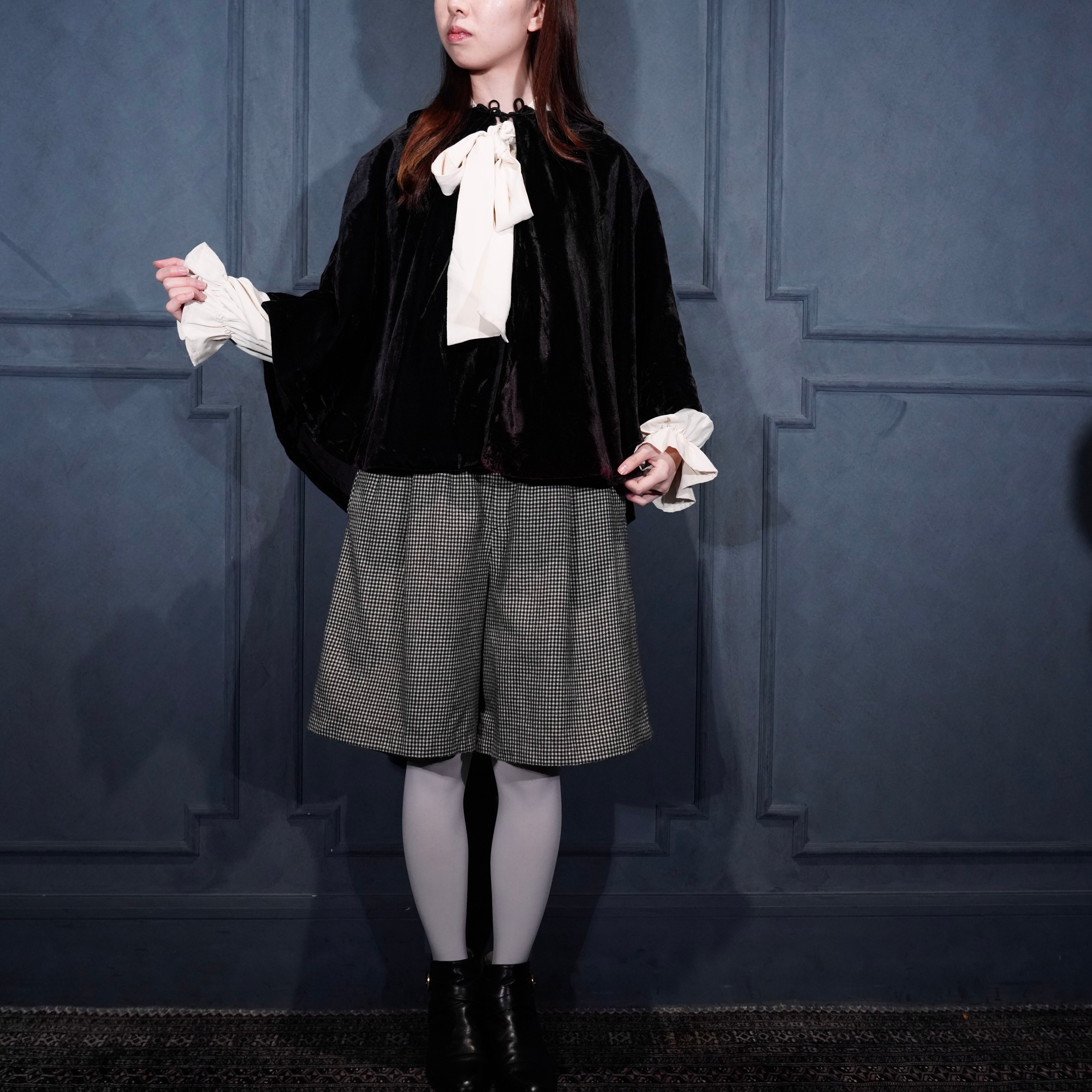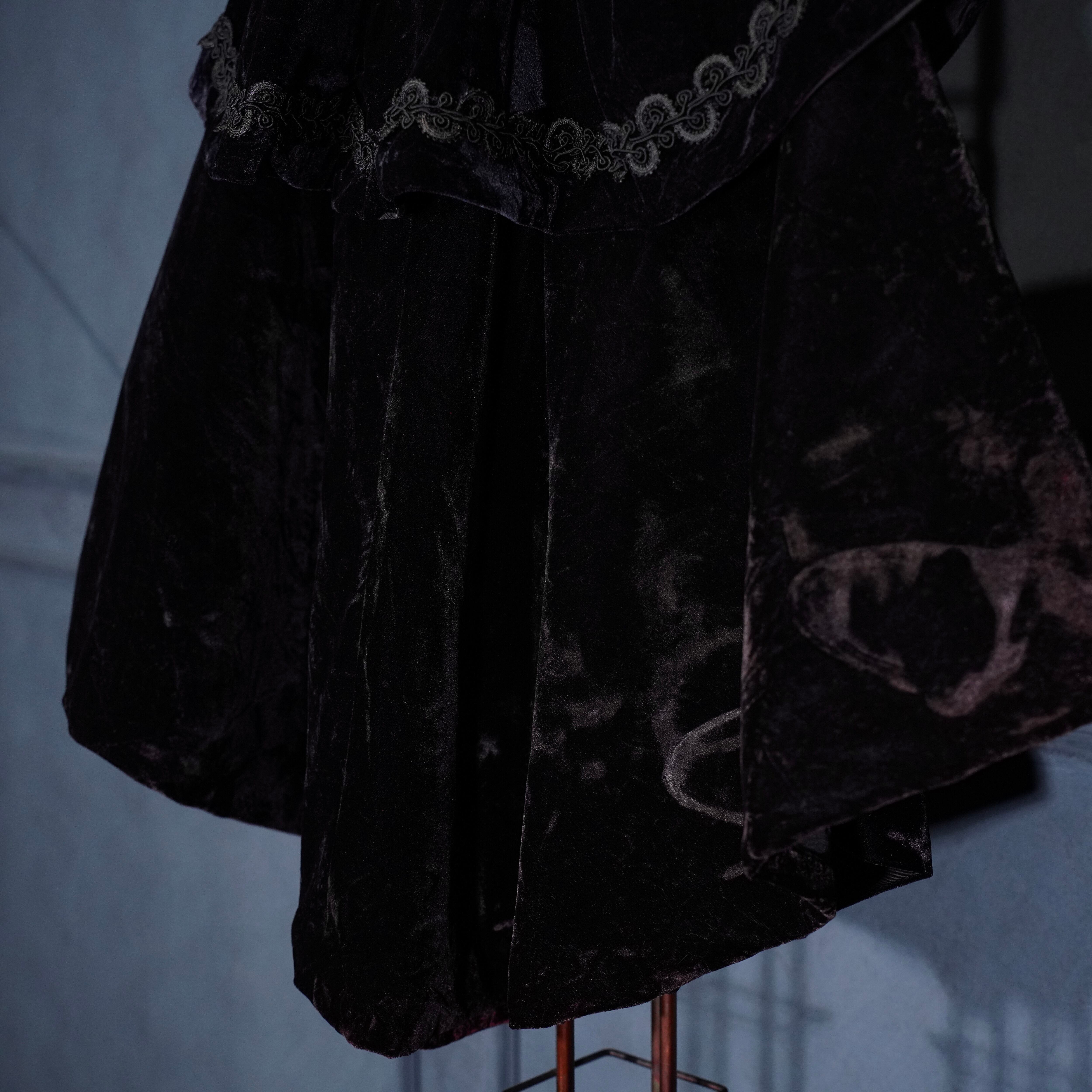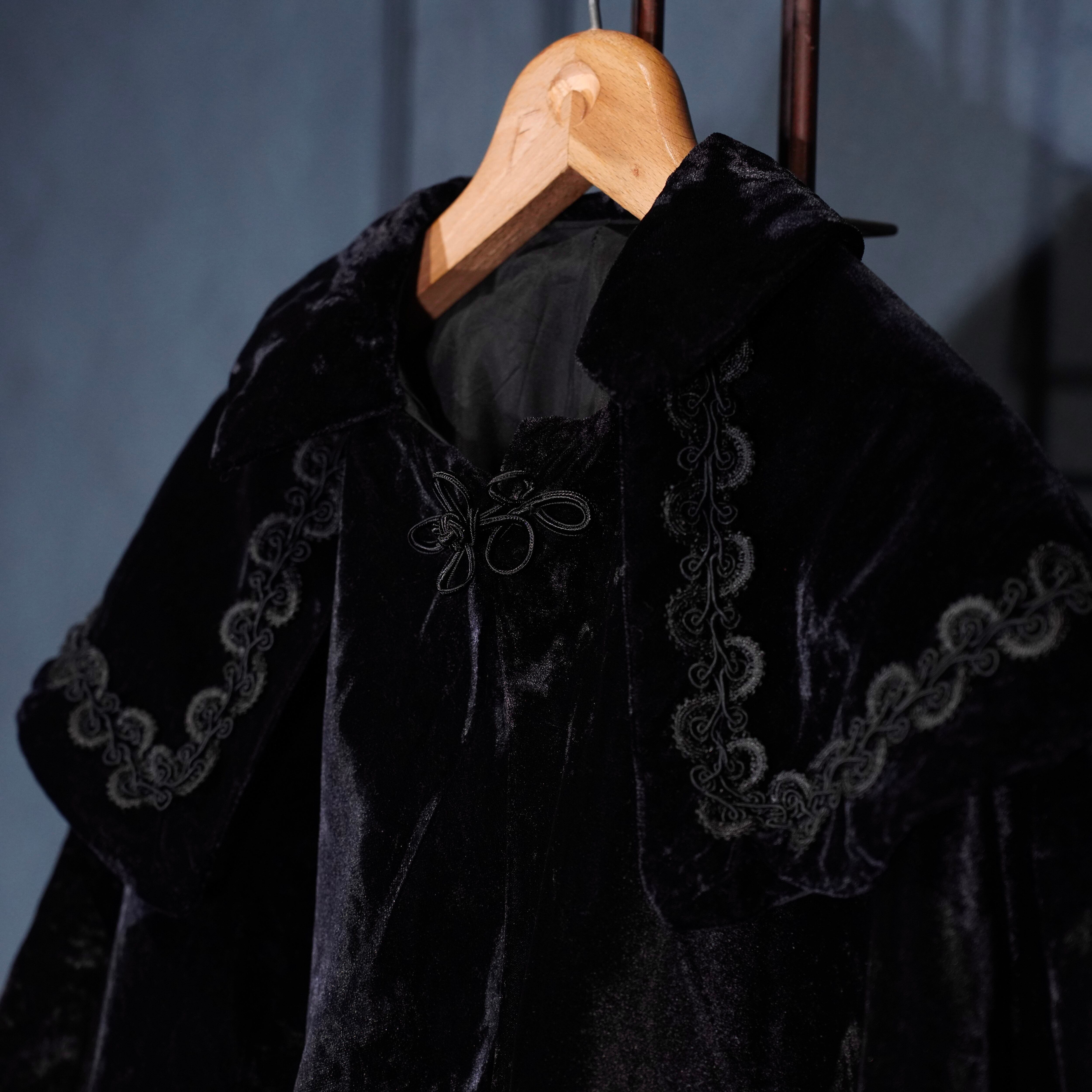 USA VINTAGE DOUBLE COLLAR EMBROIDERY CHINA BUTTON DESIGN VELOUR CAPE JACKET/アメリカ古着ダブルカラー刺繍チャイナボタンデザインベロアケープジャケット
