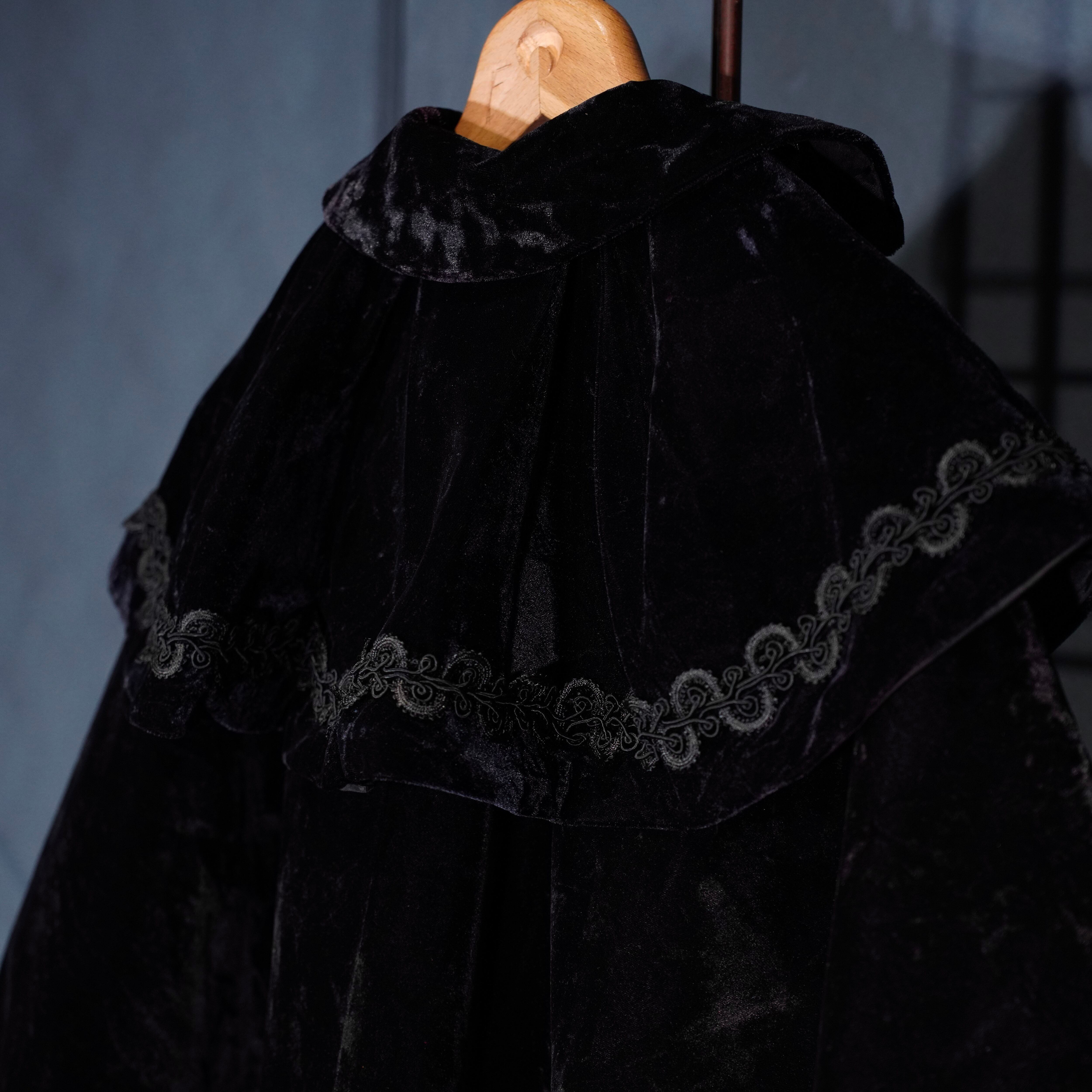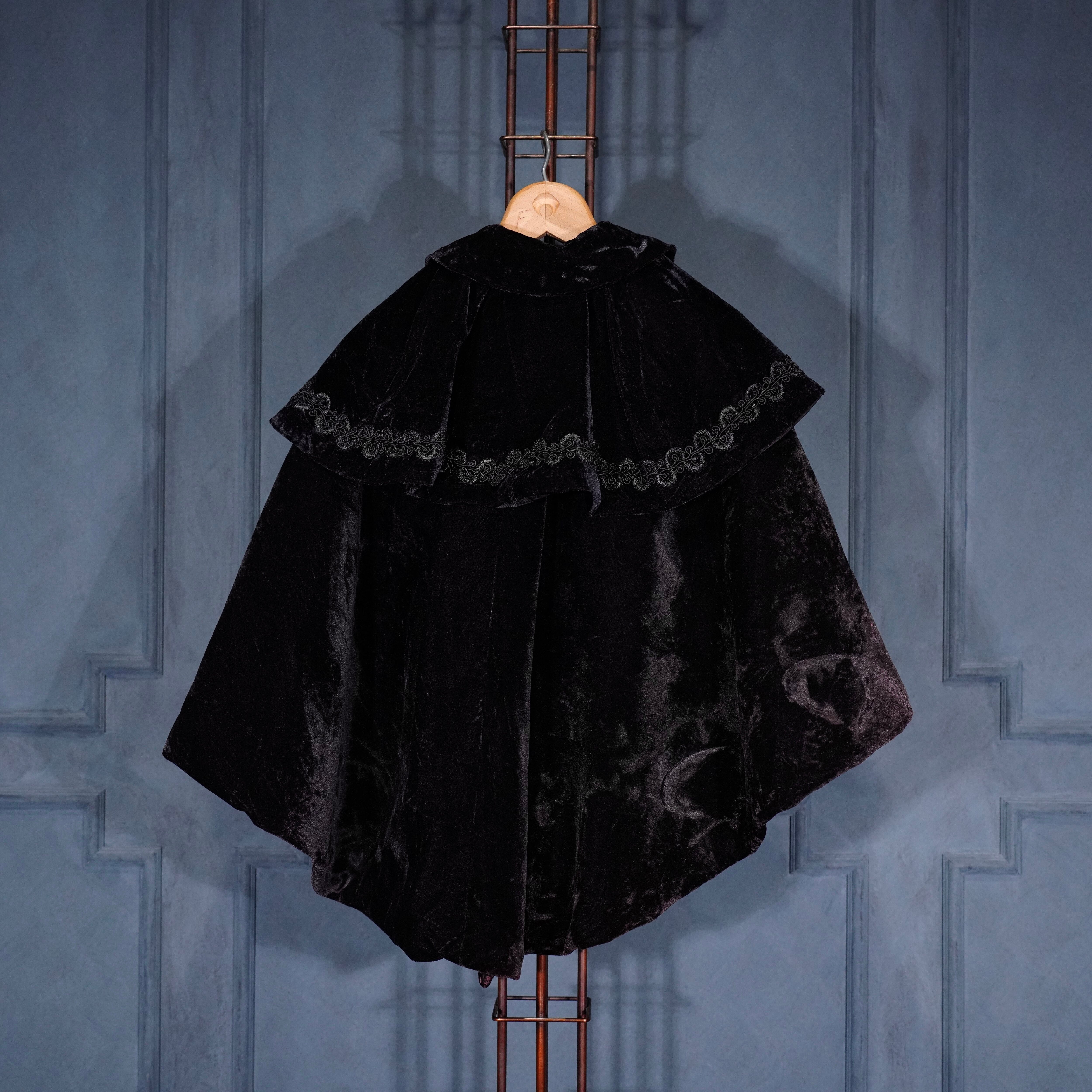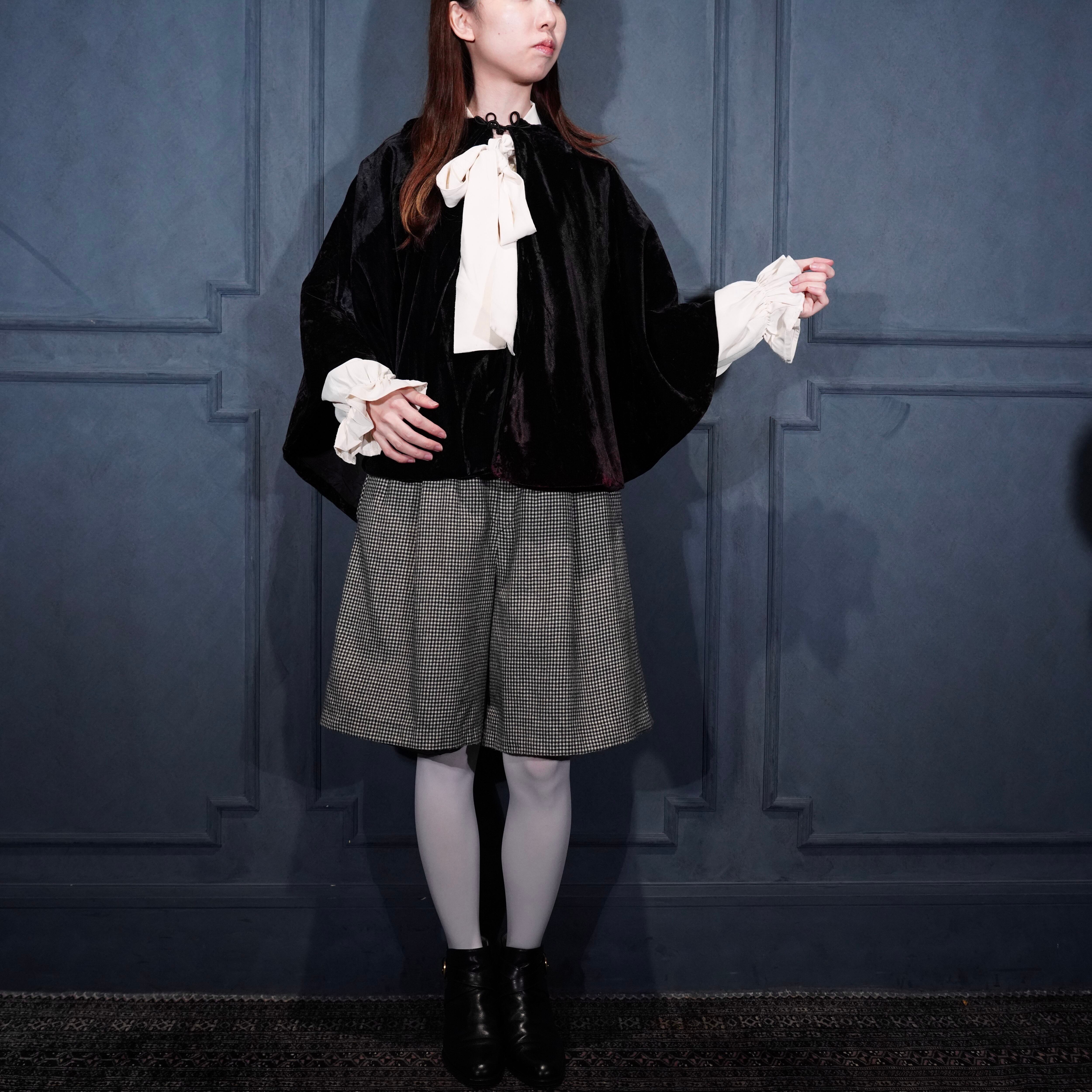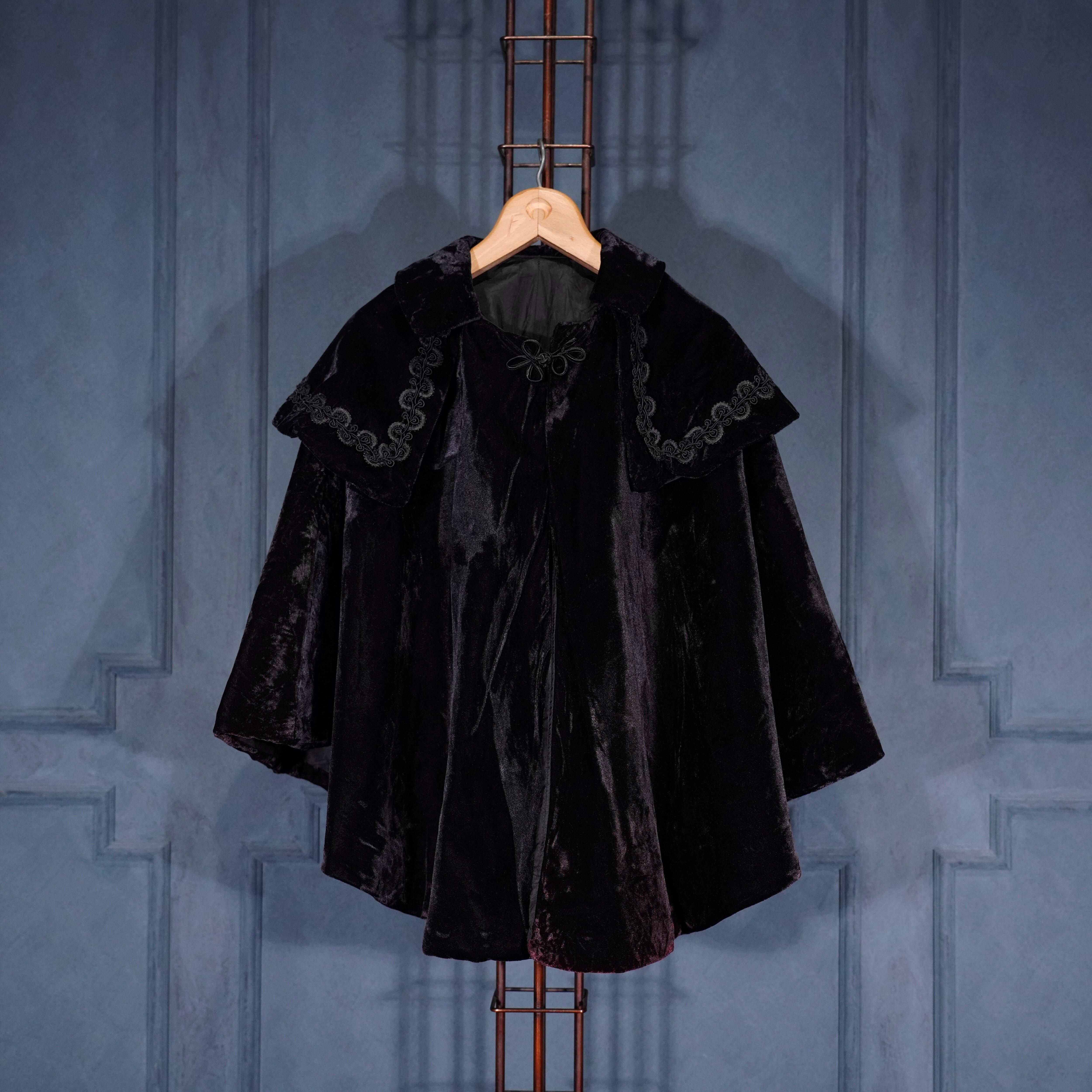 USA VINTAGE DOUBLE COLLAR EMBROIDERY CHINA BUTTON DESIGN VELOUR CAPE JACKET/アメリカ古着ダブルカラー刺繍チャイナボタンデザインベロアケープジャケット