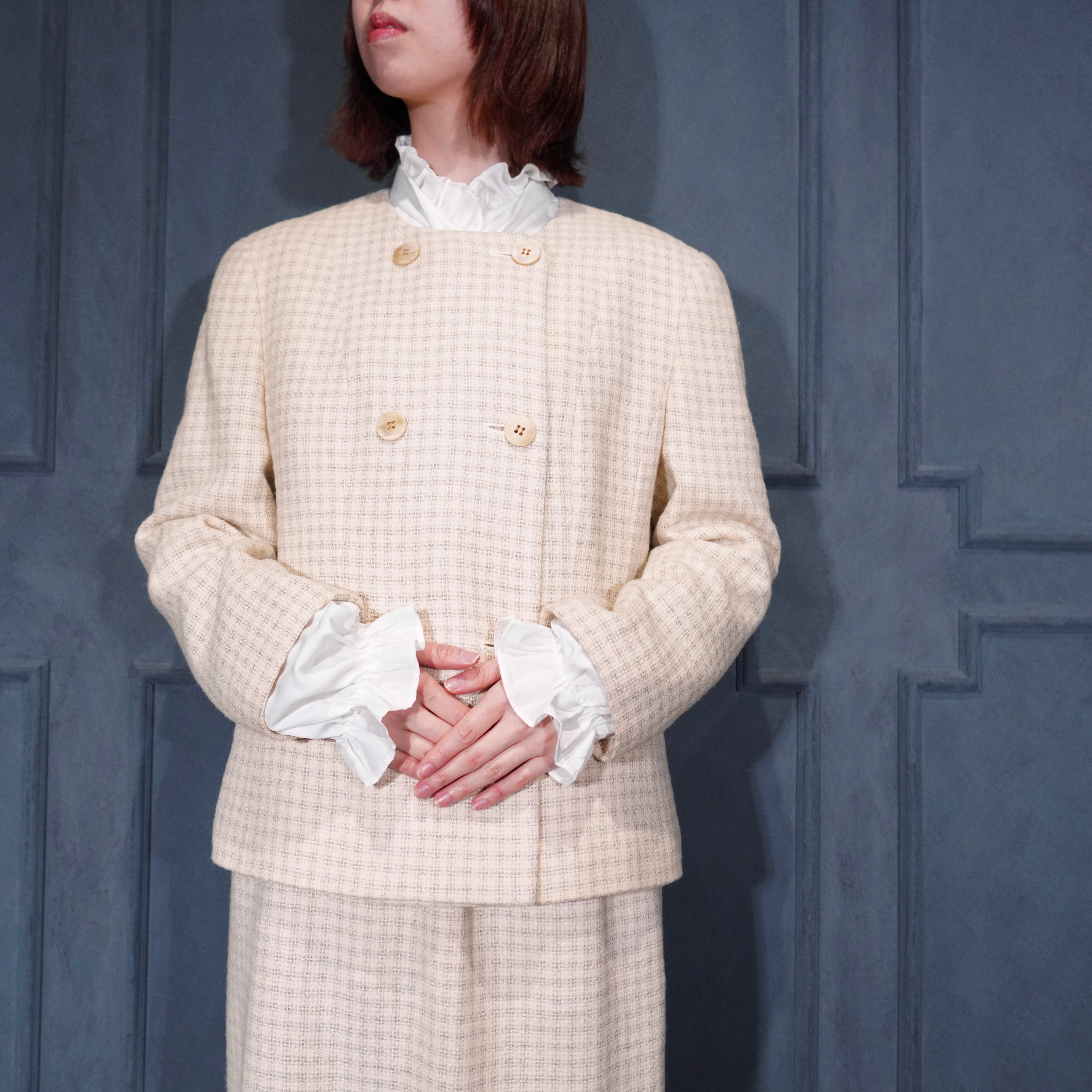 Burberrys NO COLLAR SUMMER TWEED DESIGN SET UP SKIRT SUIT/バーバリーズノーカラーサマーツイードデザインセットアップスカートスーツ