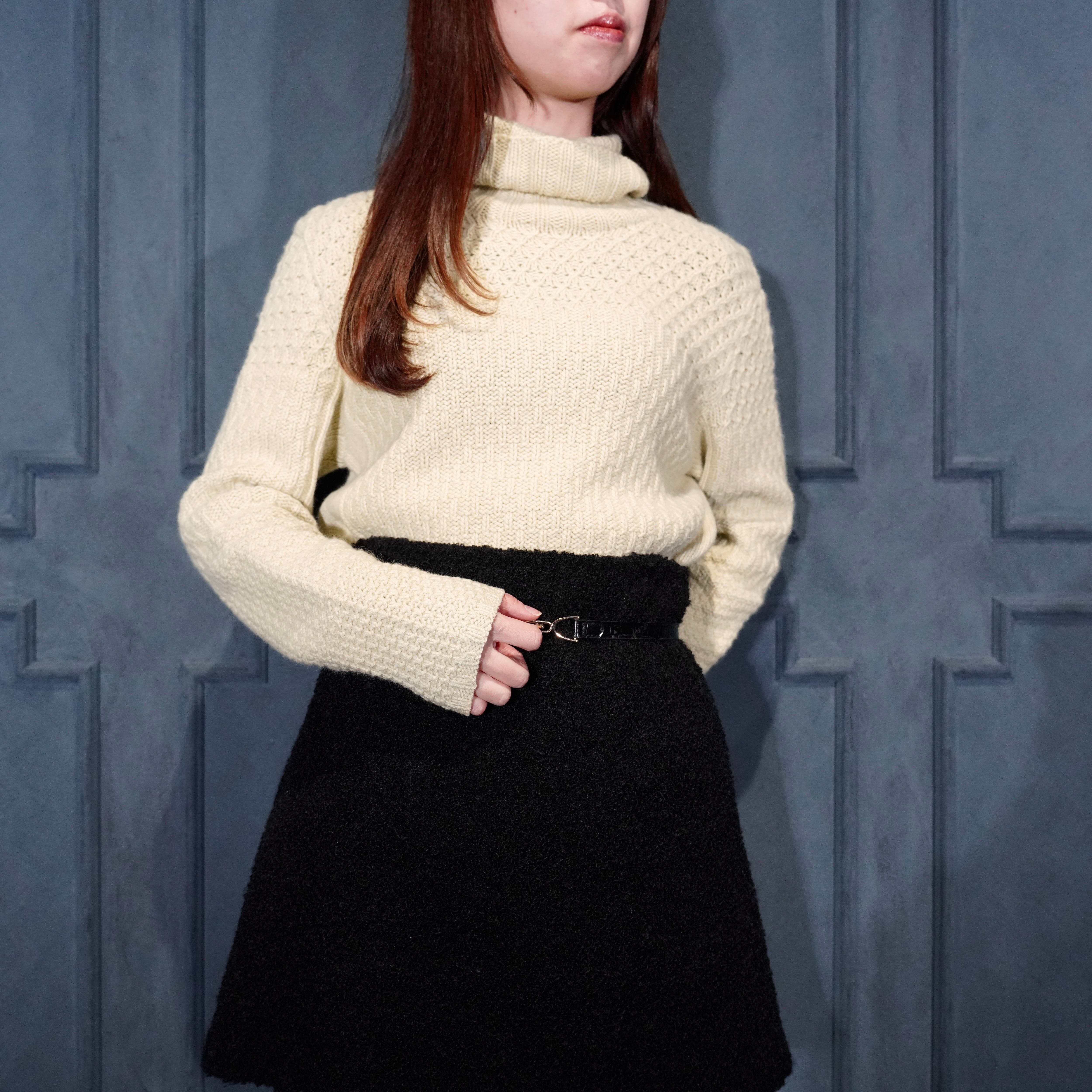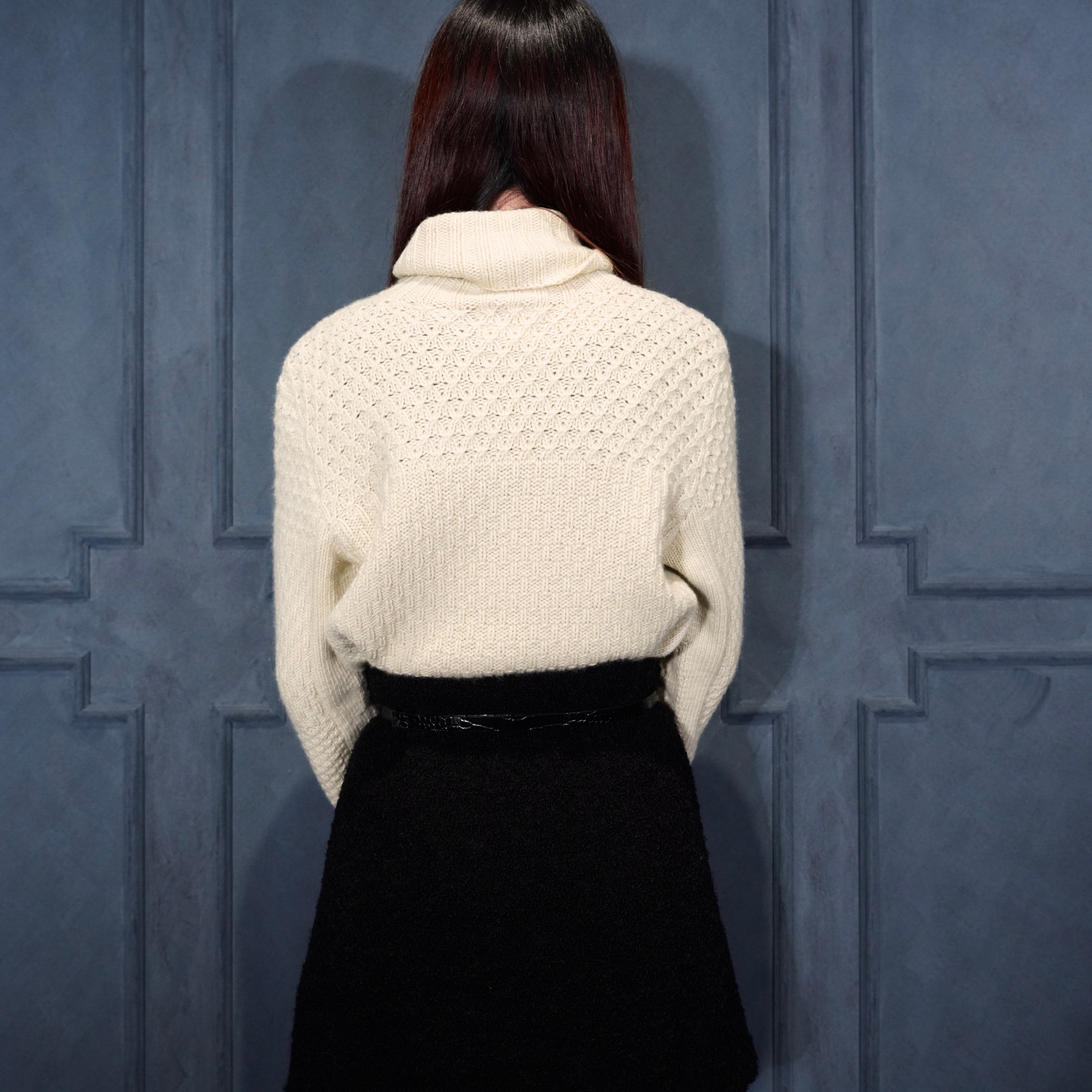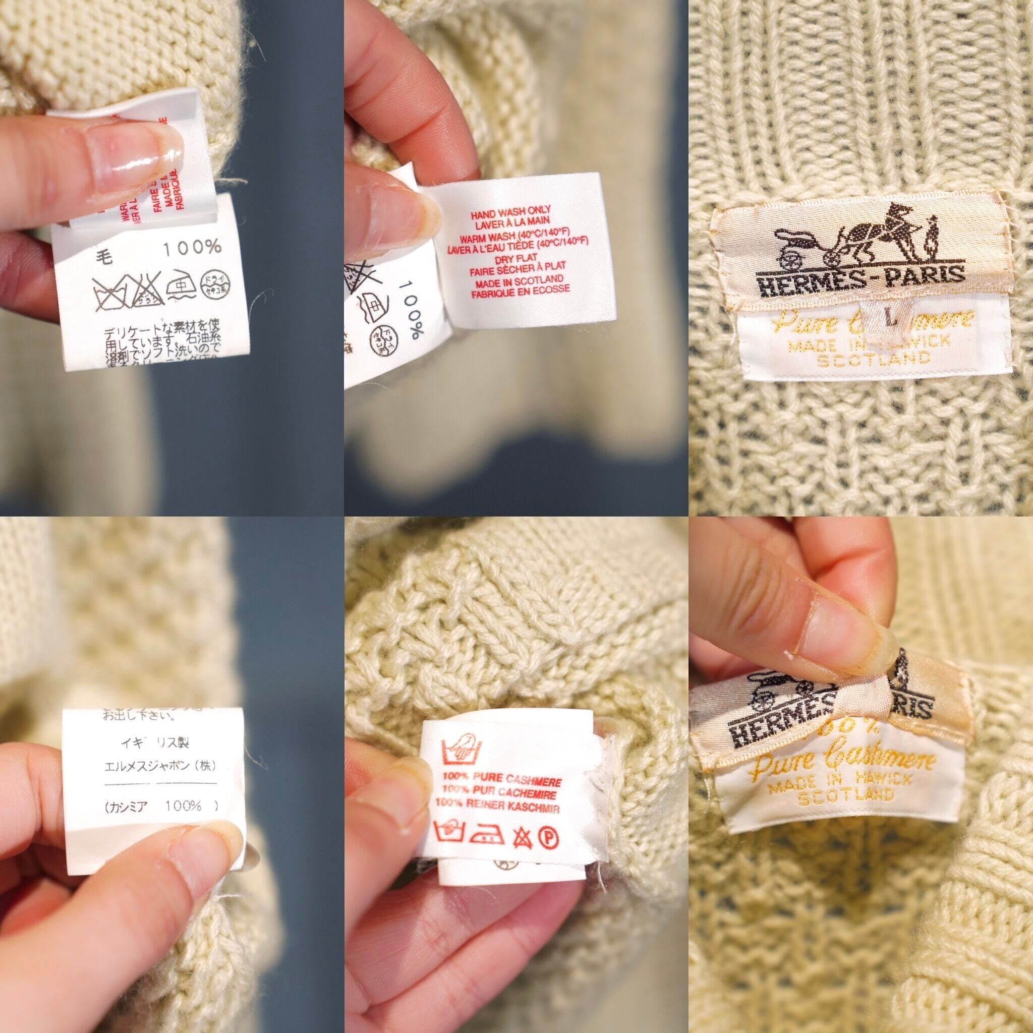 .HERMES WOVEN DESIGN CASHMERE100% HIGH NECK KNIT MADE IN ENGLAND/エルメス織デザインカシミヤ100%ハイネックニット 2000000075082
