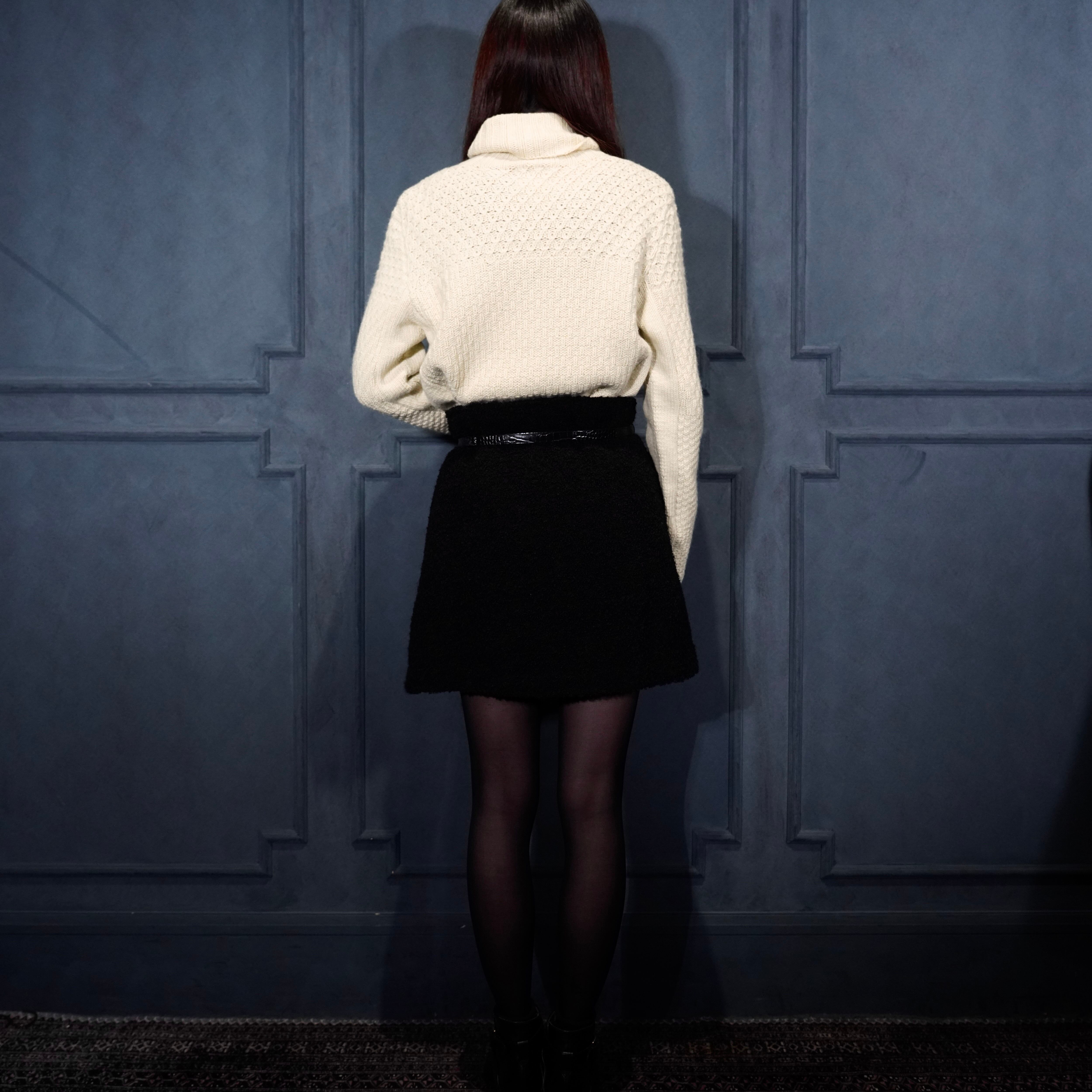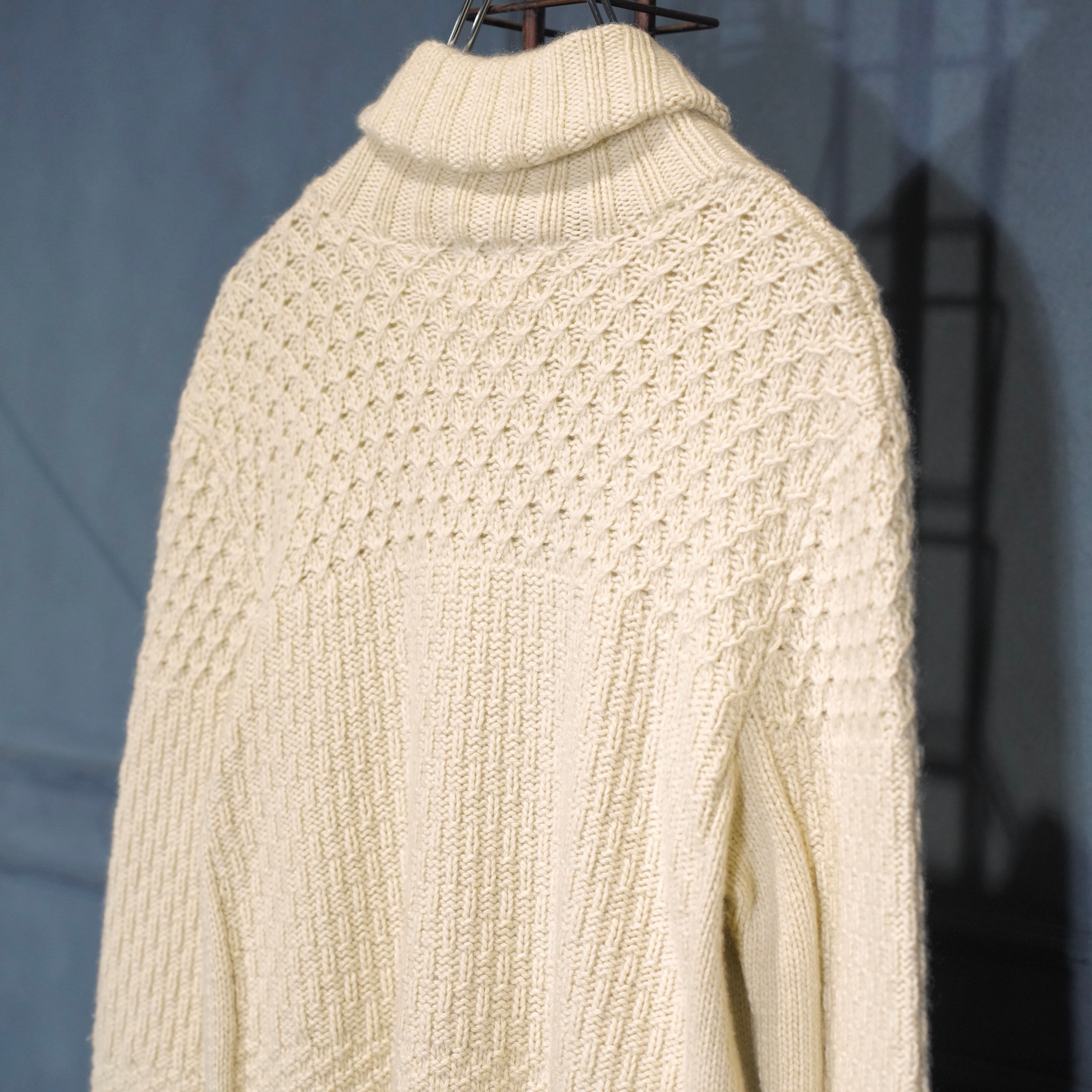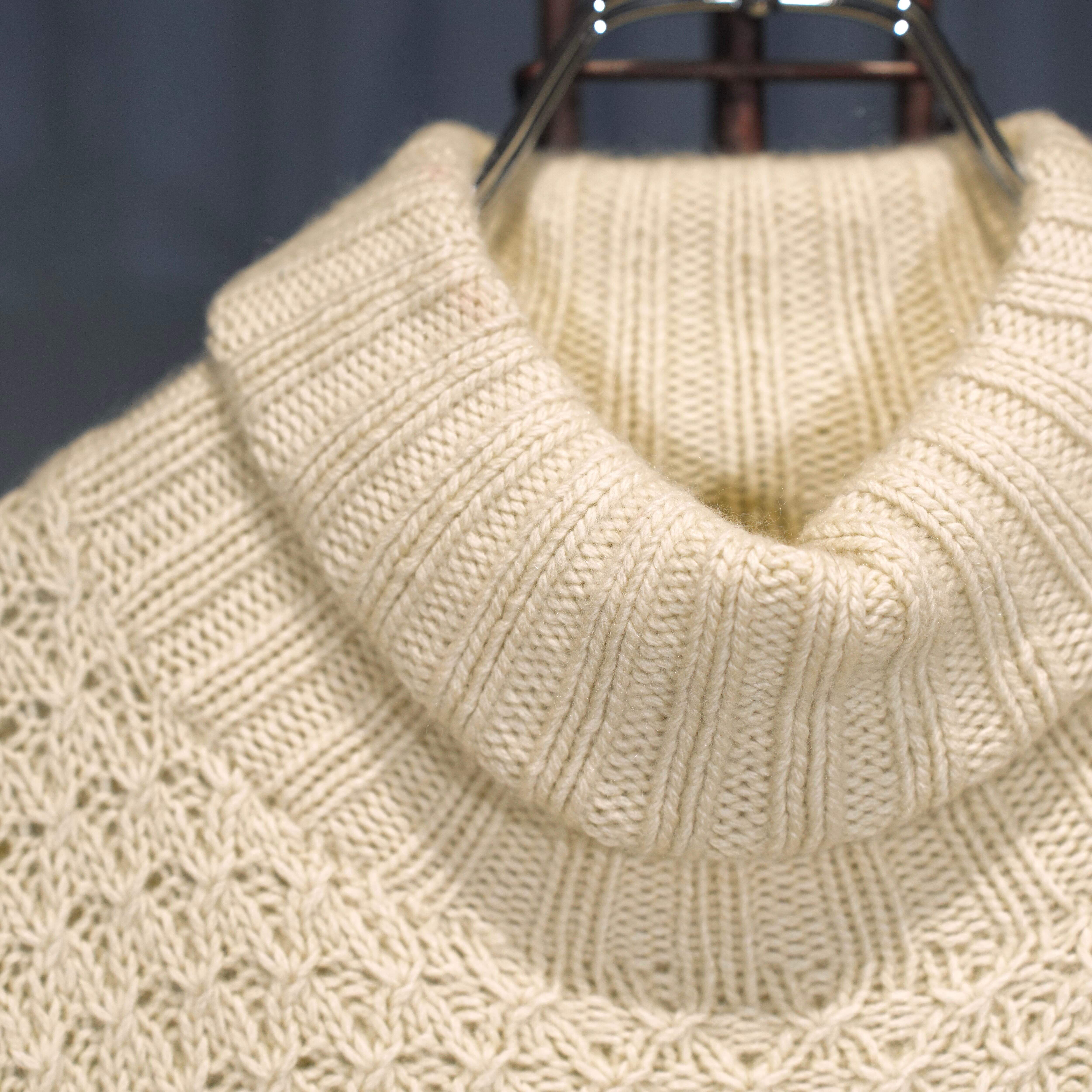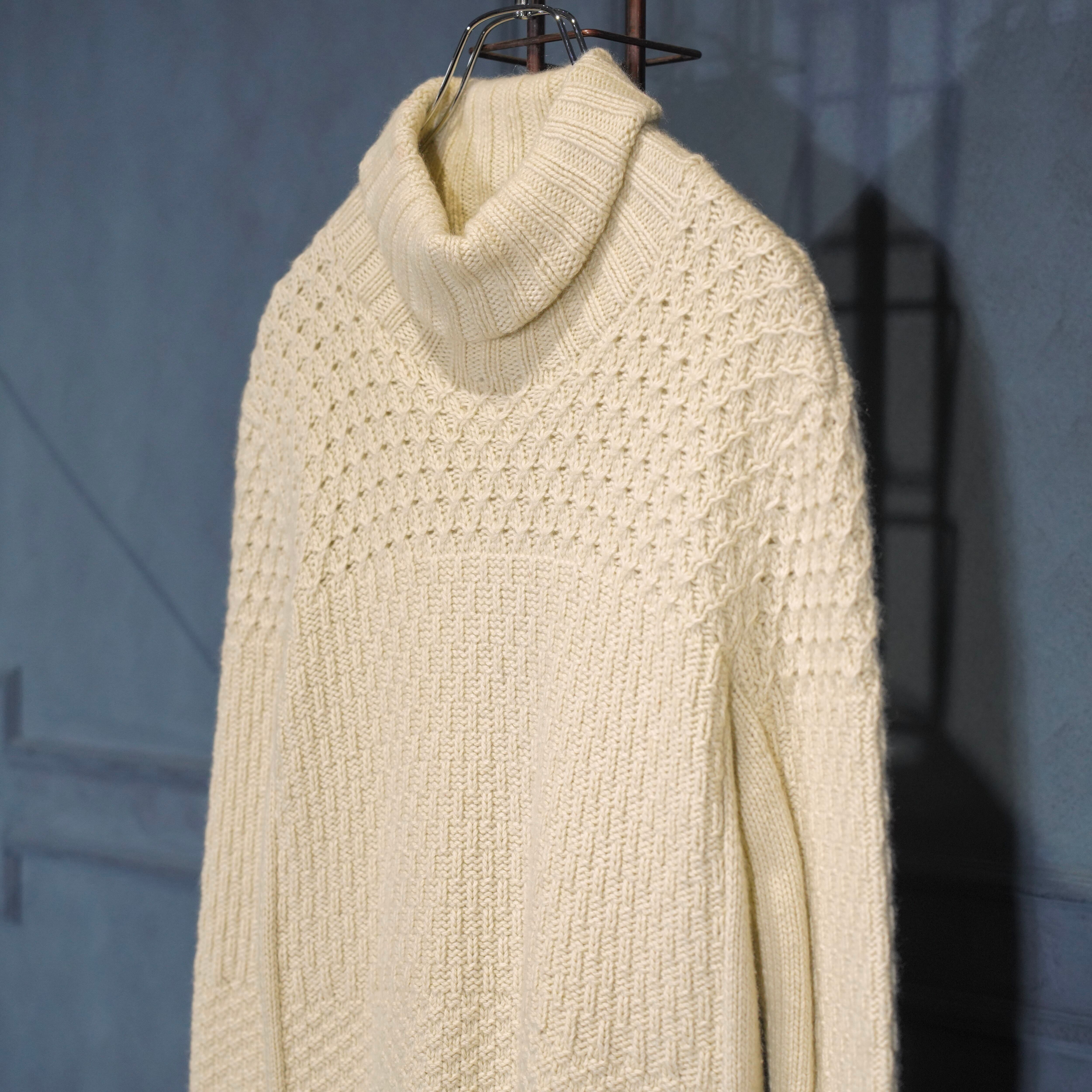.HERMES WOVEN DESIGN CASHMERE100% HIGH NECK KNIT MADE IN ENGLAND/エルメス織デザインカシミヤ100%ハイネックニット 2000000075082