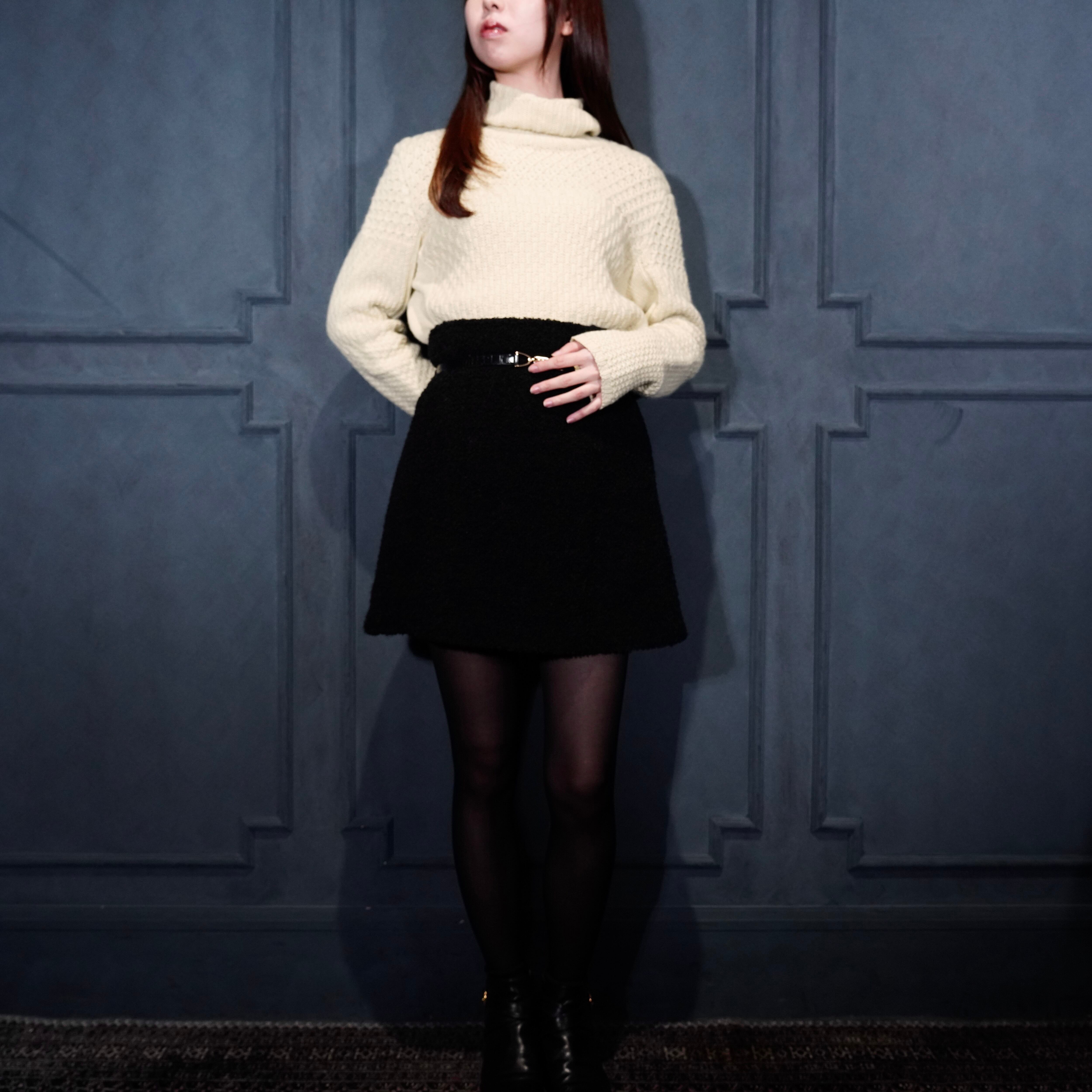 HERMES WOVEN DESIGN CASHMERE100% HIGH NECK KNIT MADE IN ENGLAND/エルメス織デザインカシミヤ100%ハイネックニット
