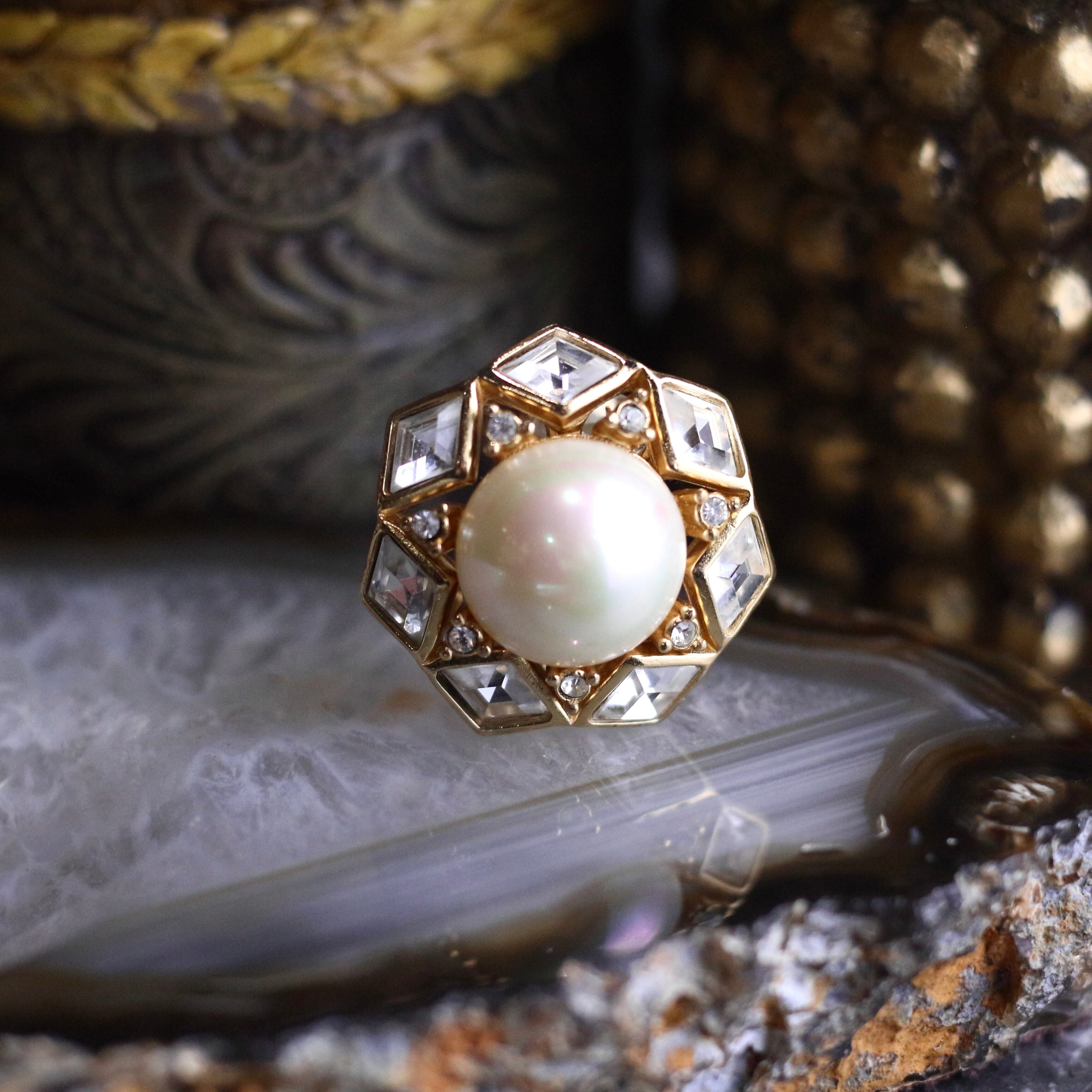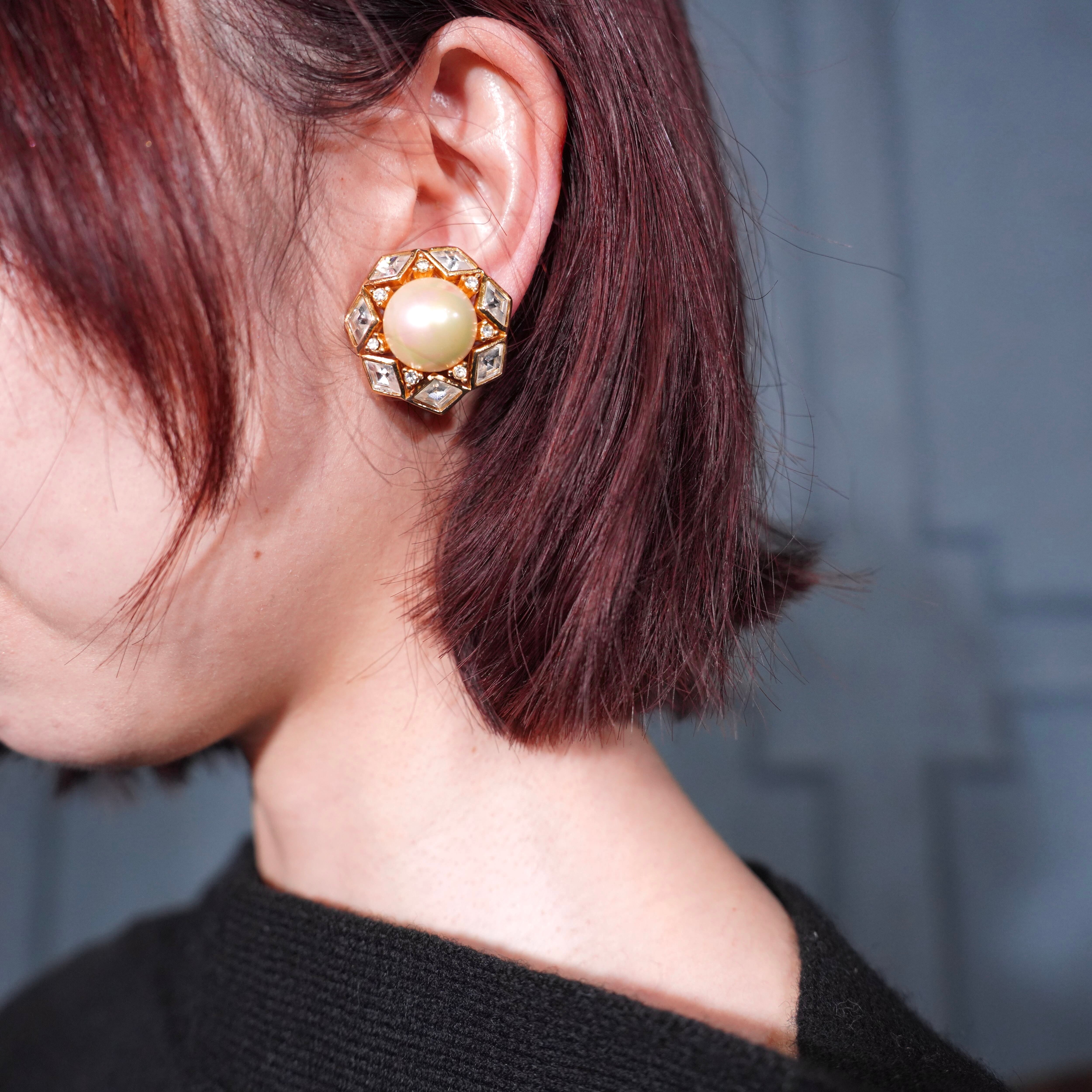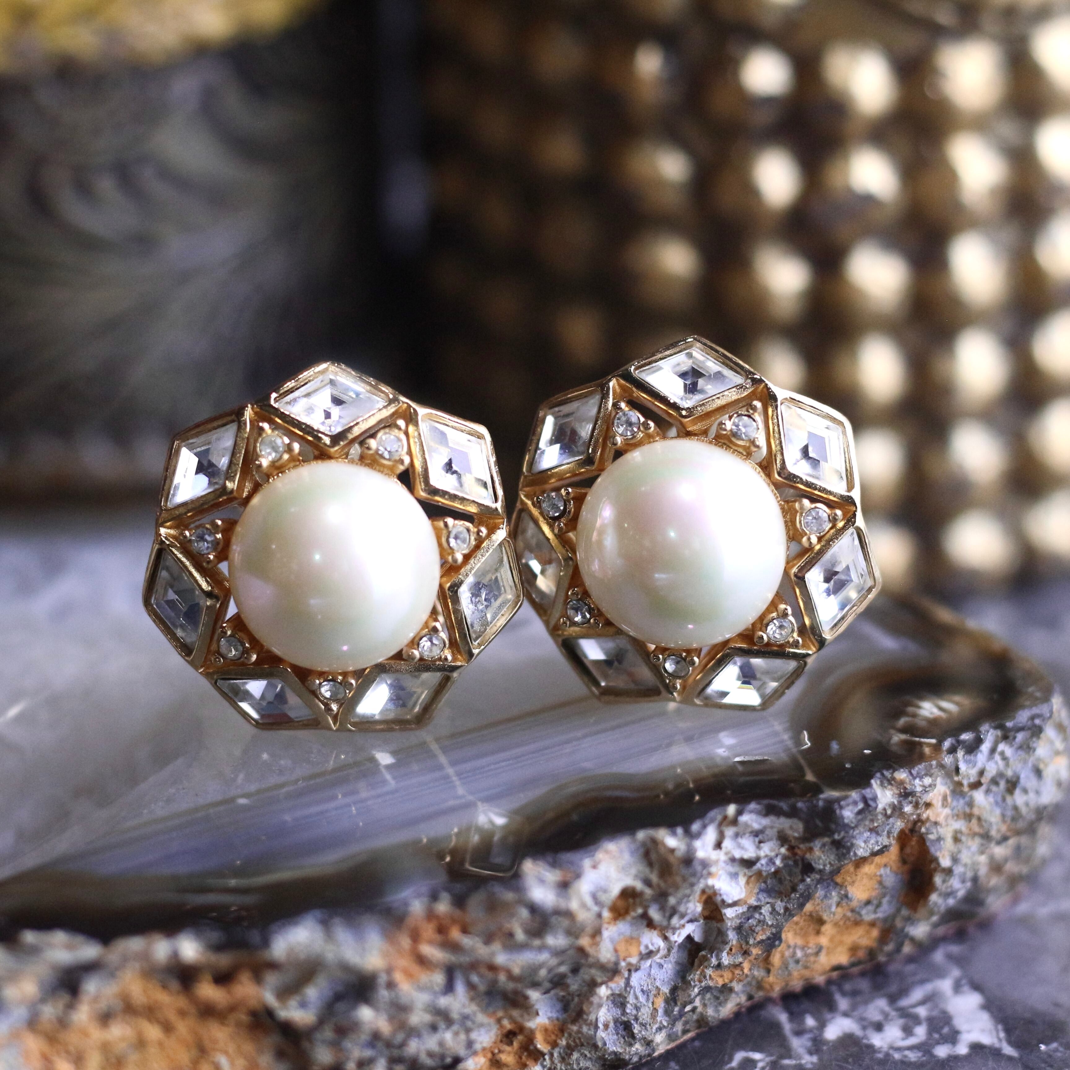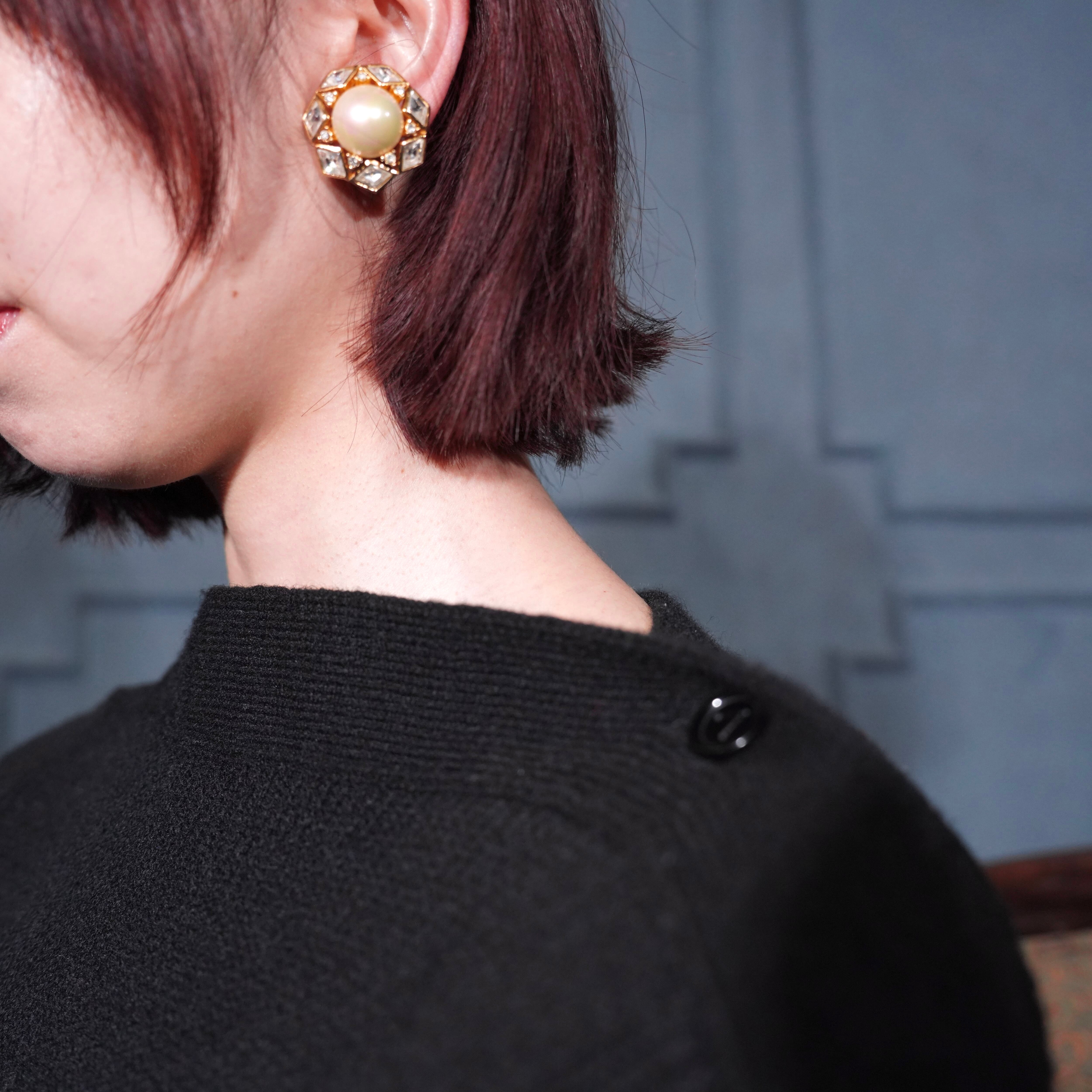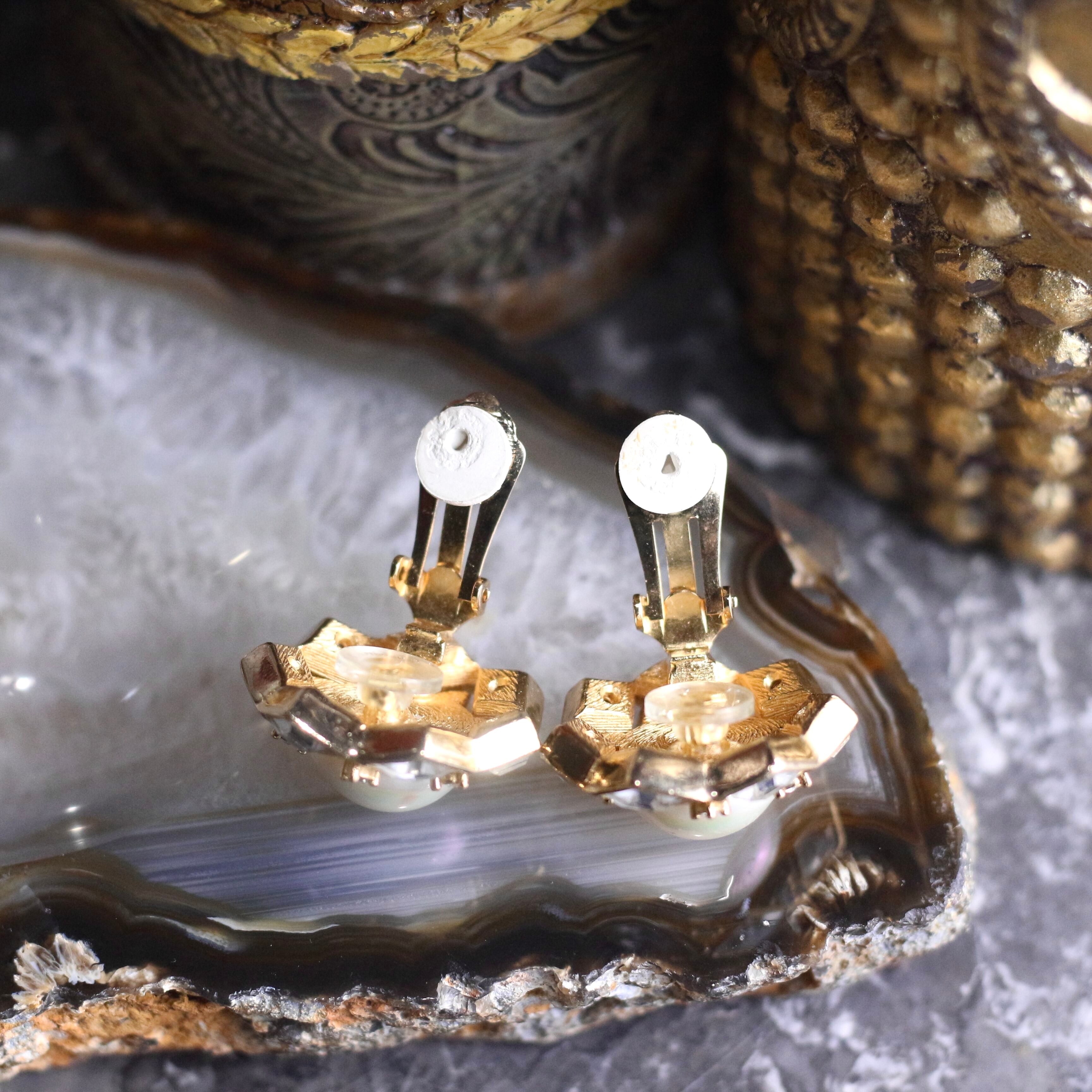 Christian Dior CLEAR STONE PEARL DESIGN RETRO EARCLIPS/クリスチャンディオールクリアストーンパールデザインイヤリング
