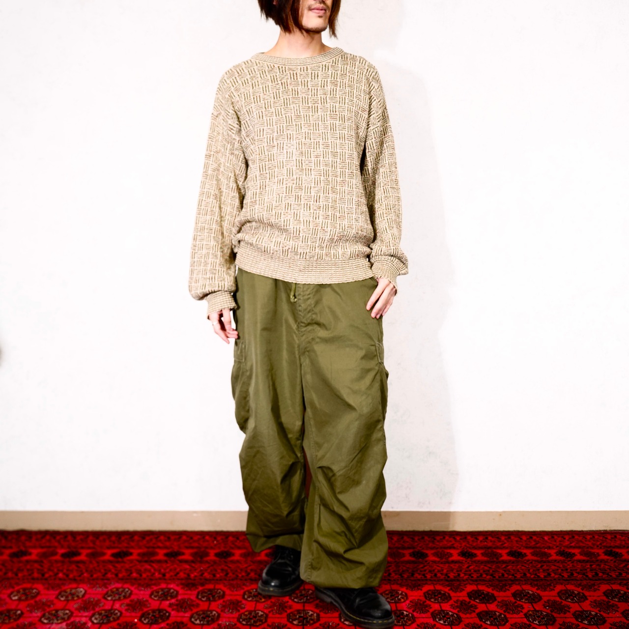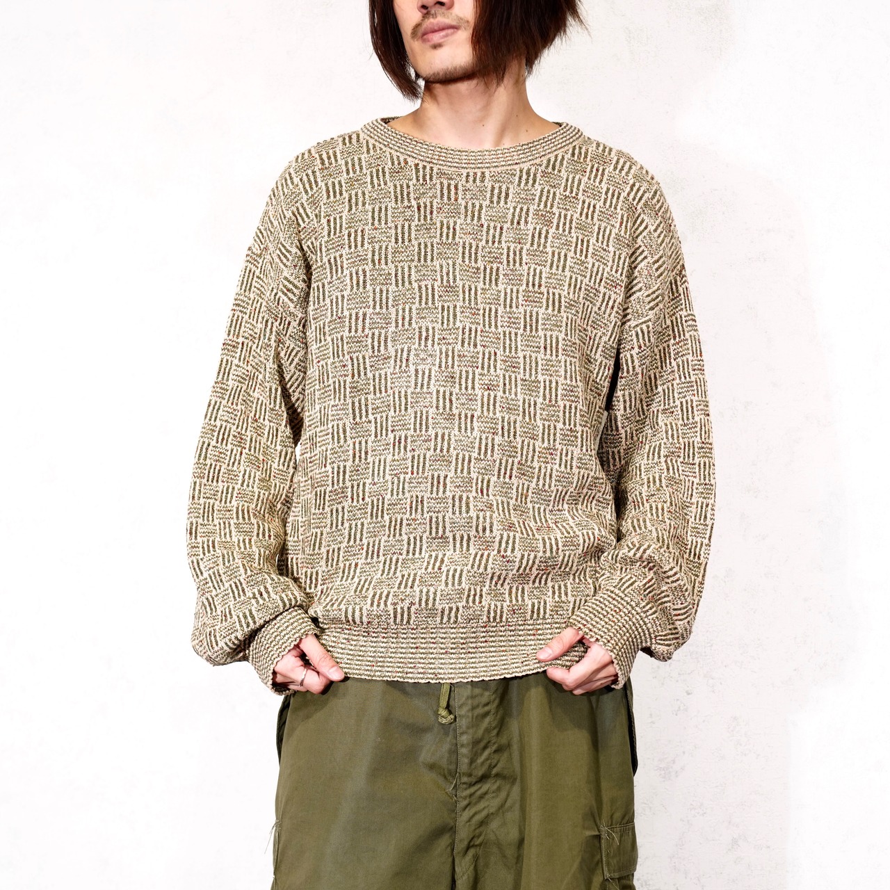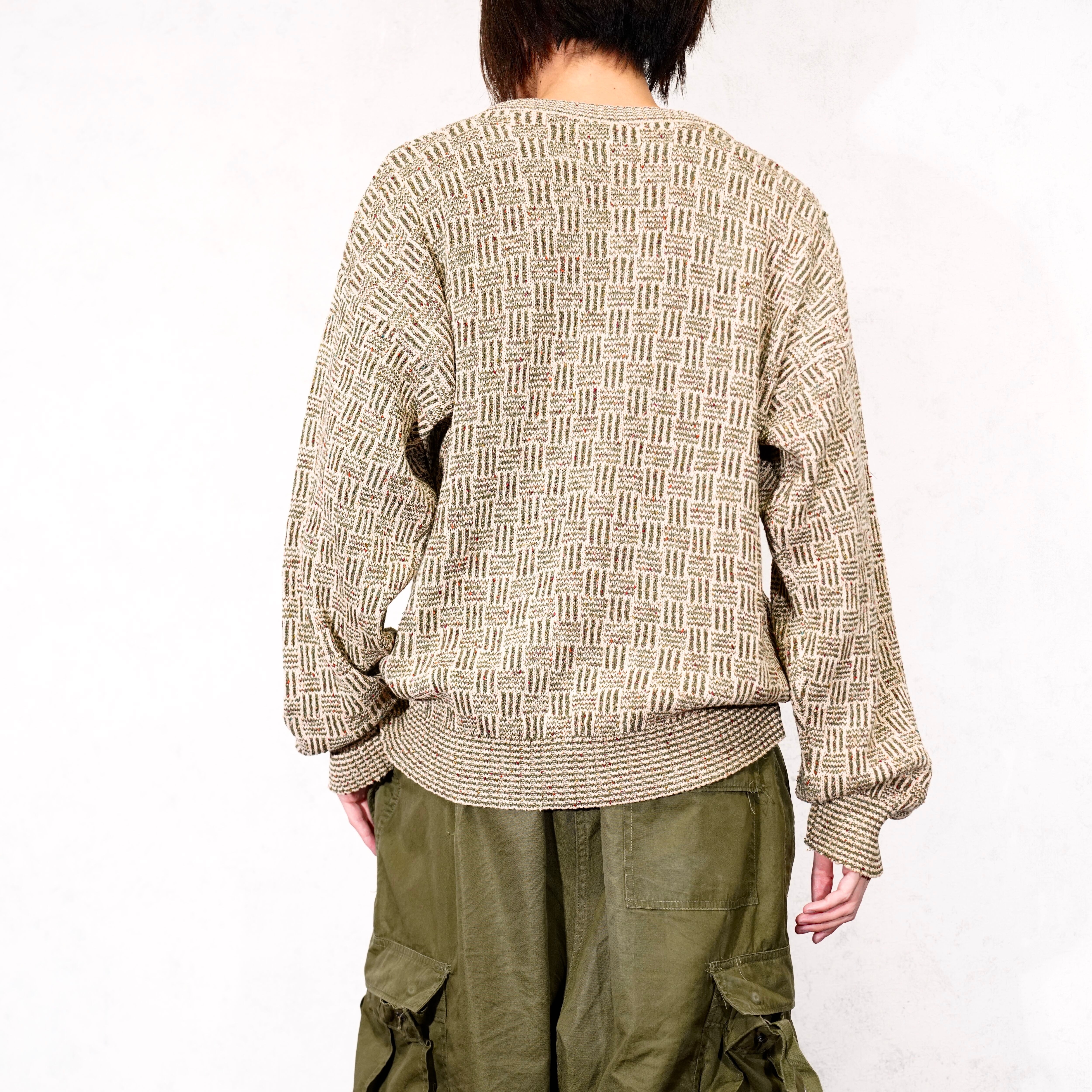 USA VINTAGE PATTERNED DESIGN COTTON KNIT/アメリカ古着柄デザインコットンニット