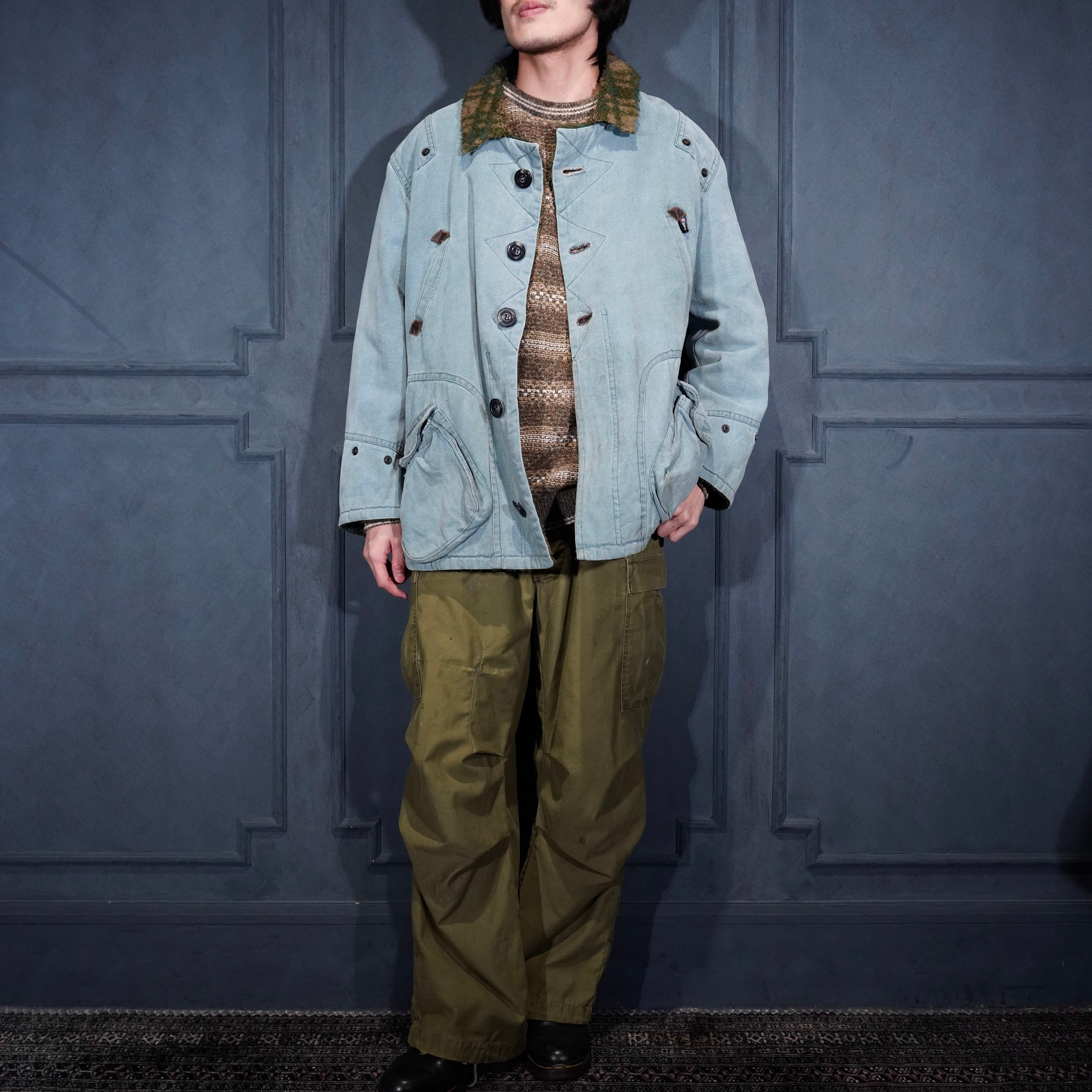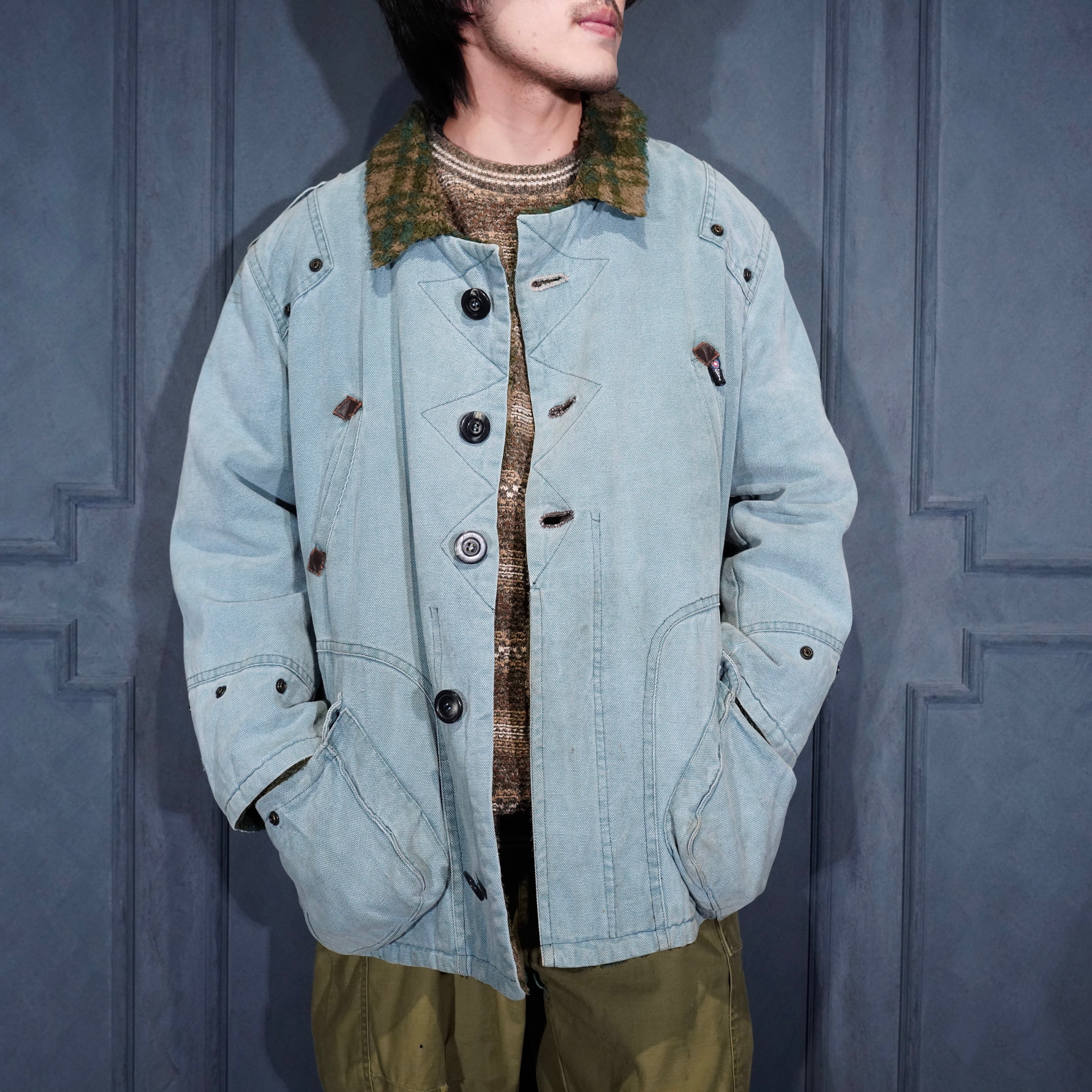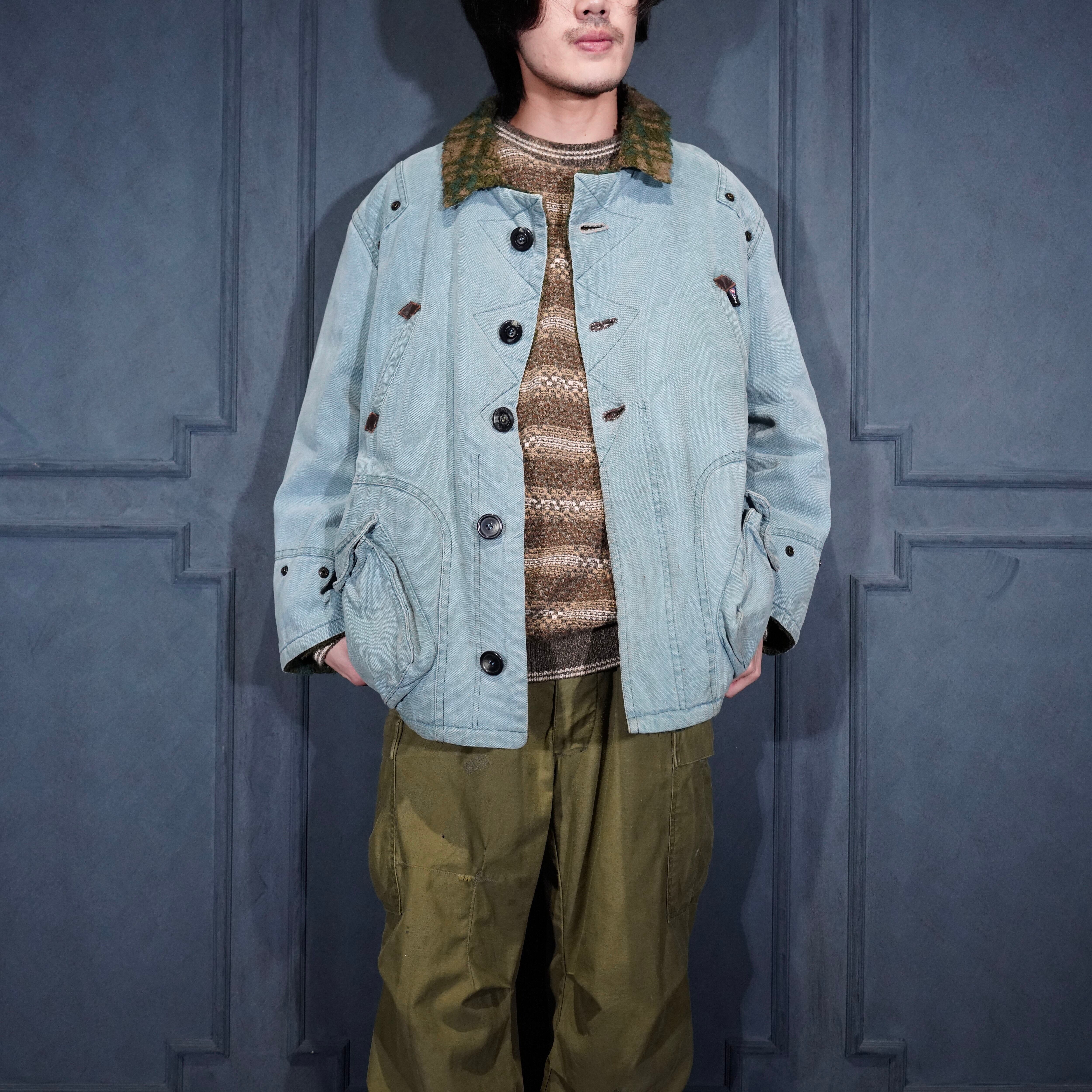 EU VINTAGE pooh jeans STITCH DESIGN BOA COLLAR DUCK JACKET/ヨーロッパ古着ステッチデザインボアカラーダックジャケット
