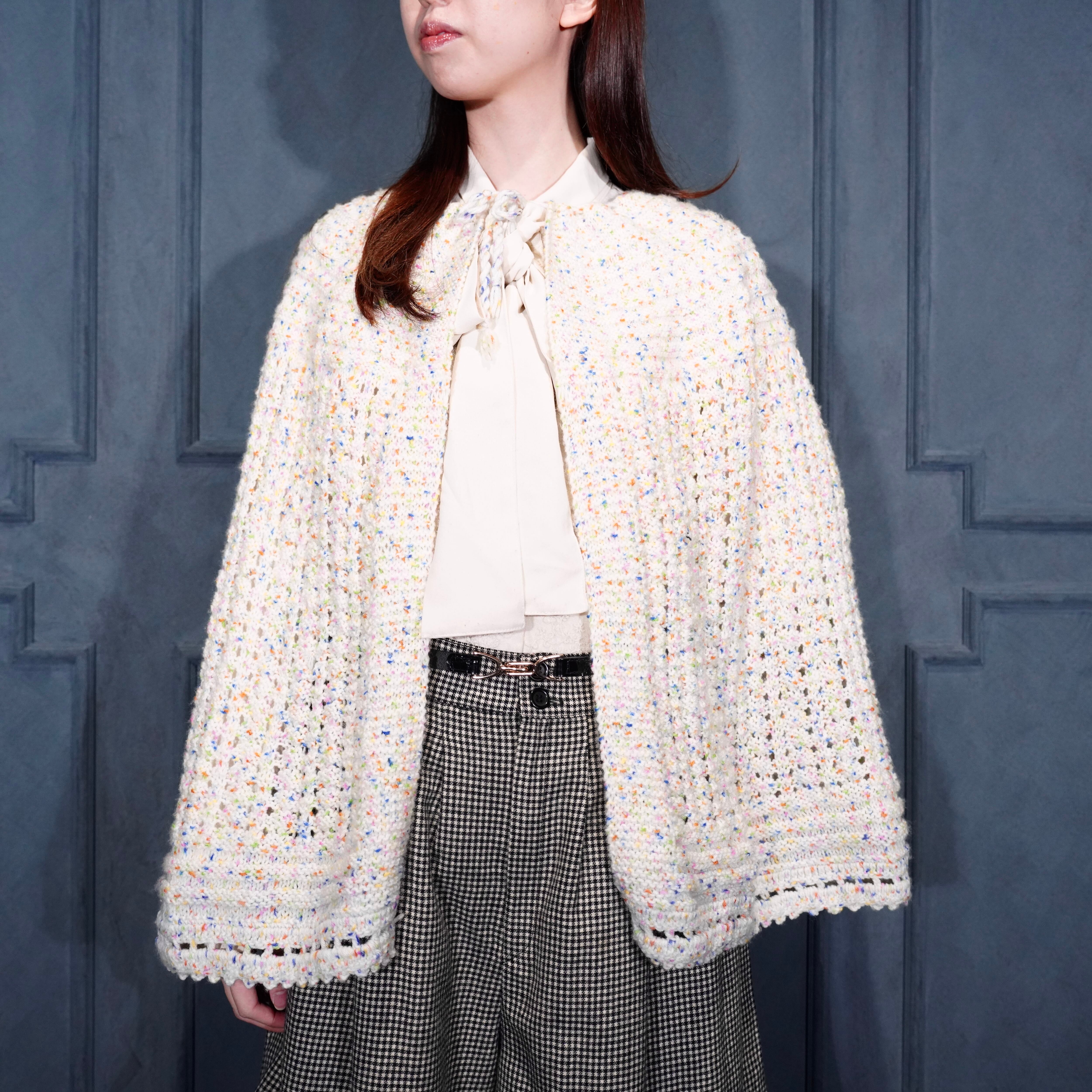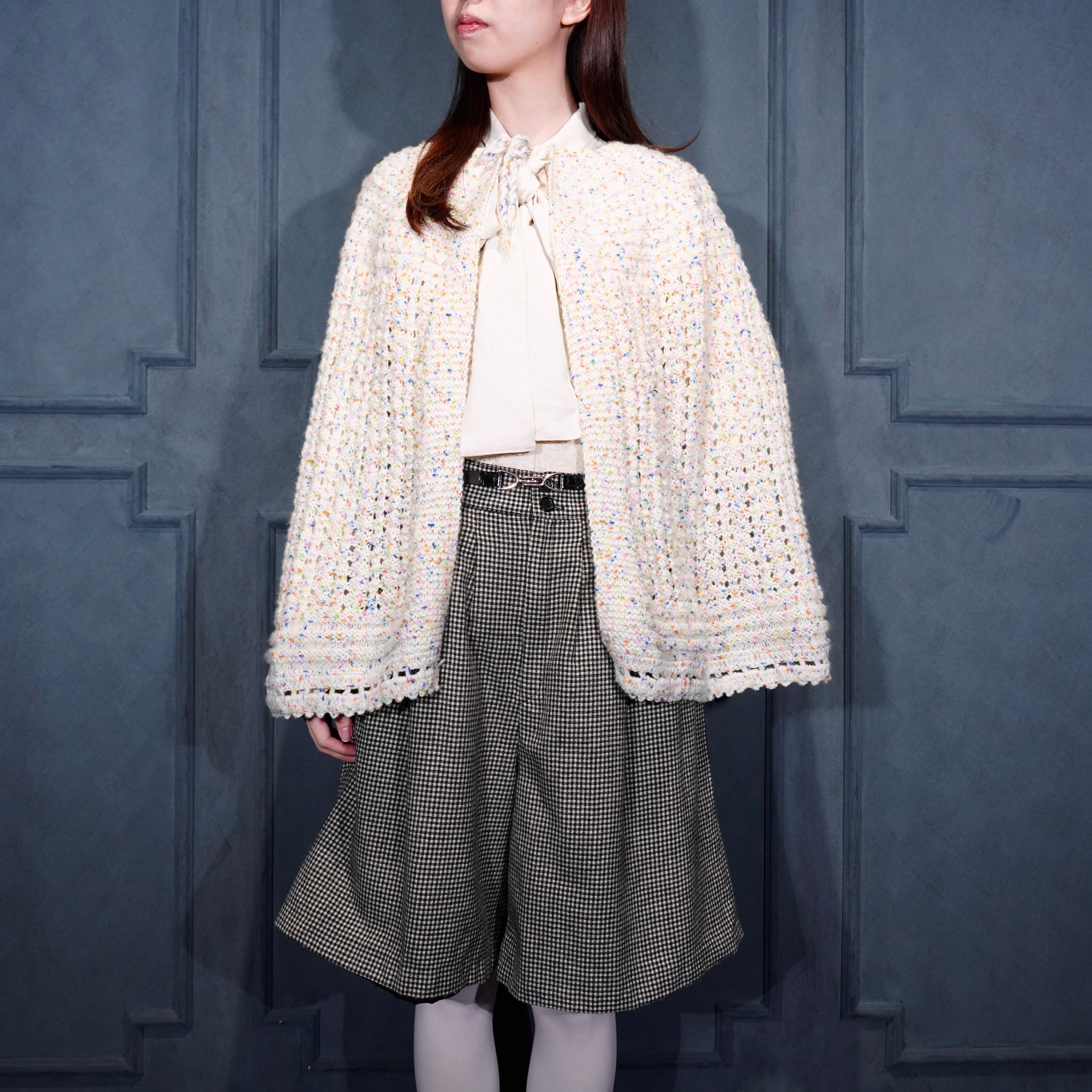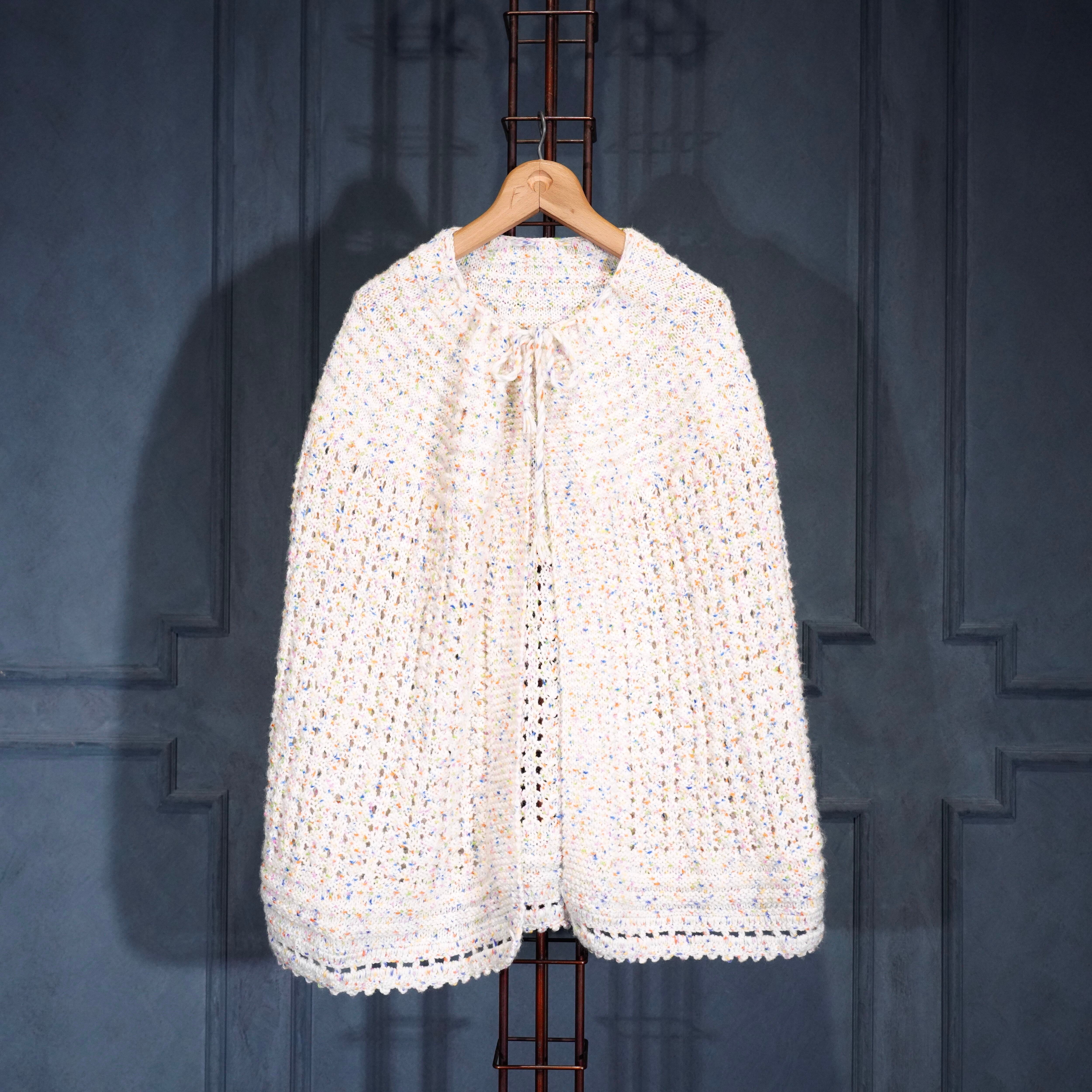 USA VINTAGE NEP CROCHET DESIGN KNIT CAPE/アメリカ古着ネップクロシェットデザインニットケープ(ポンチョ)