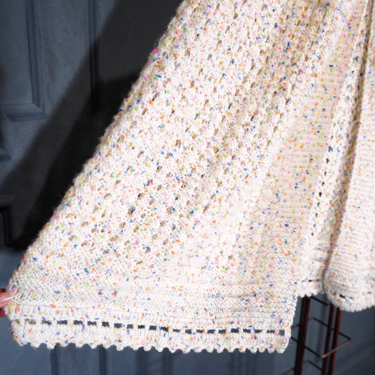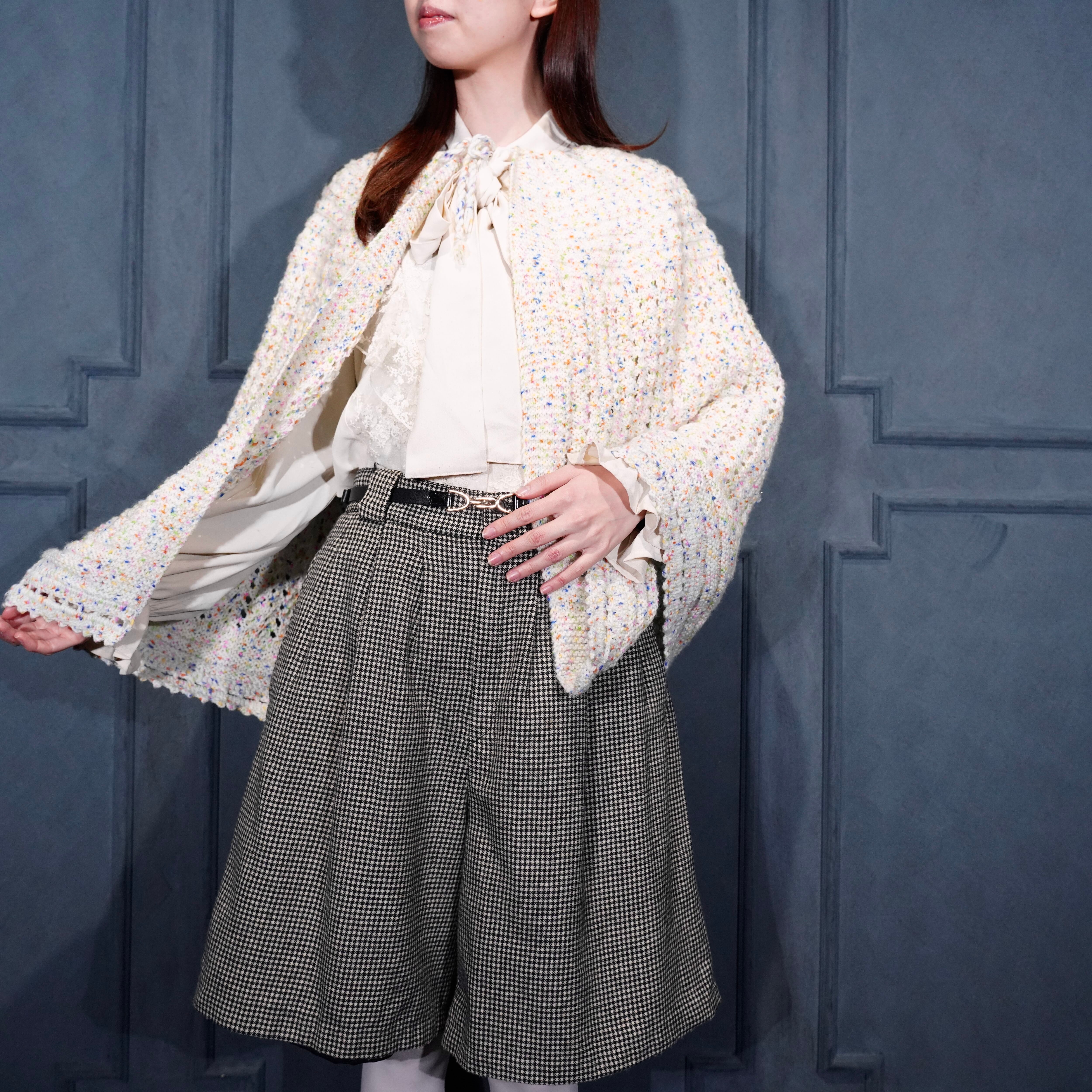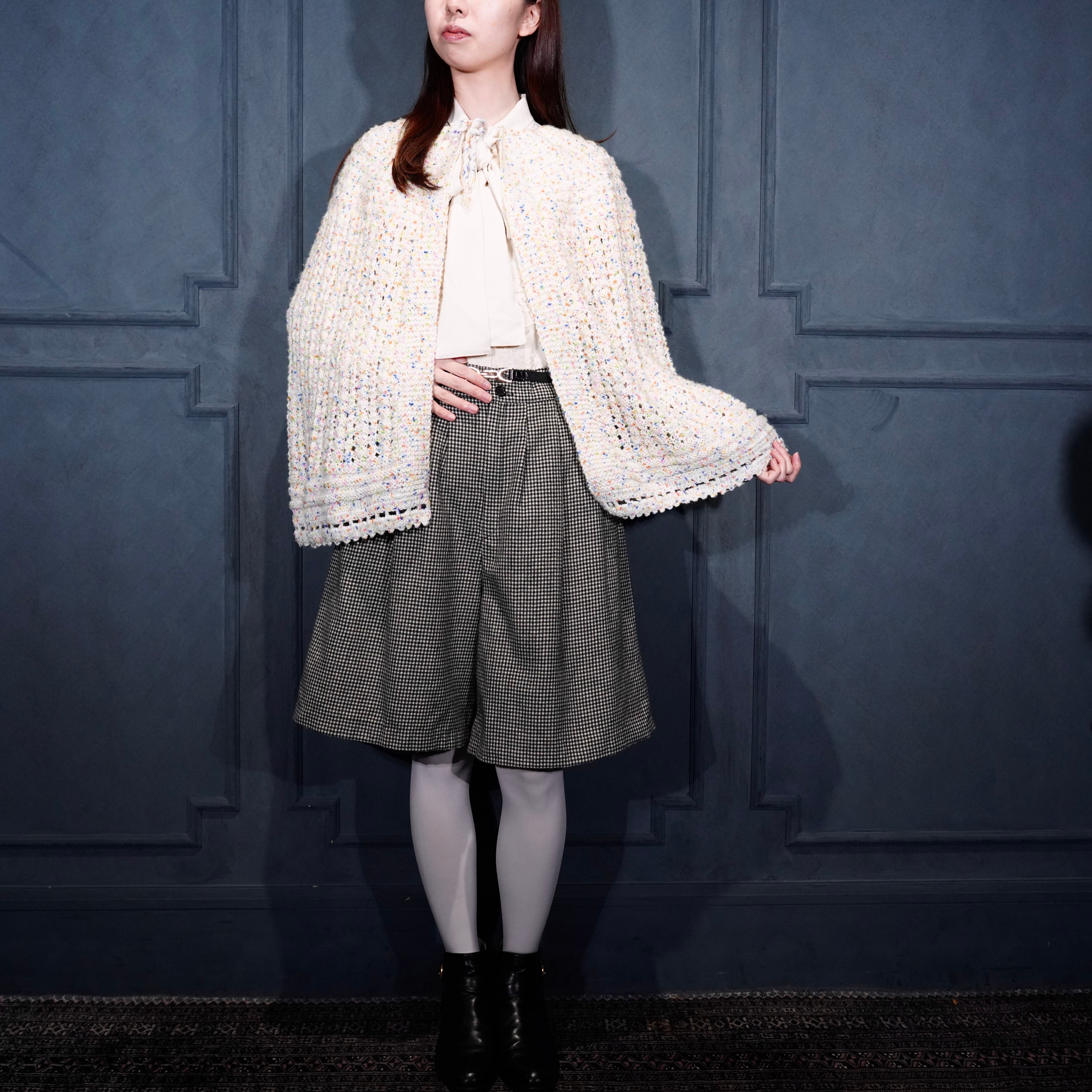 USA VINTAGE NEP CROCHET DESIGN KNIT CAPE/アメリカ古着ネップクロシェットデザインニットケープ(ポンチョ)
