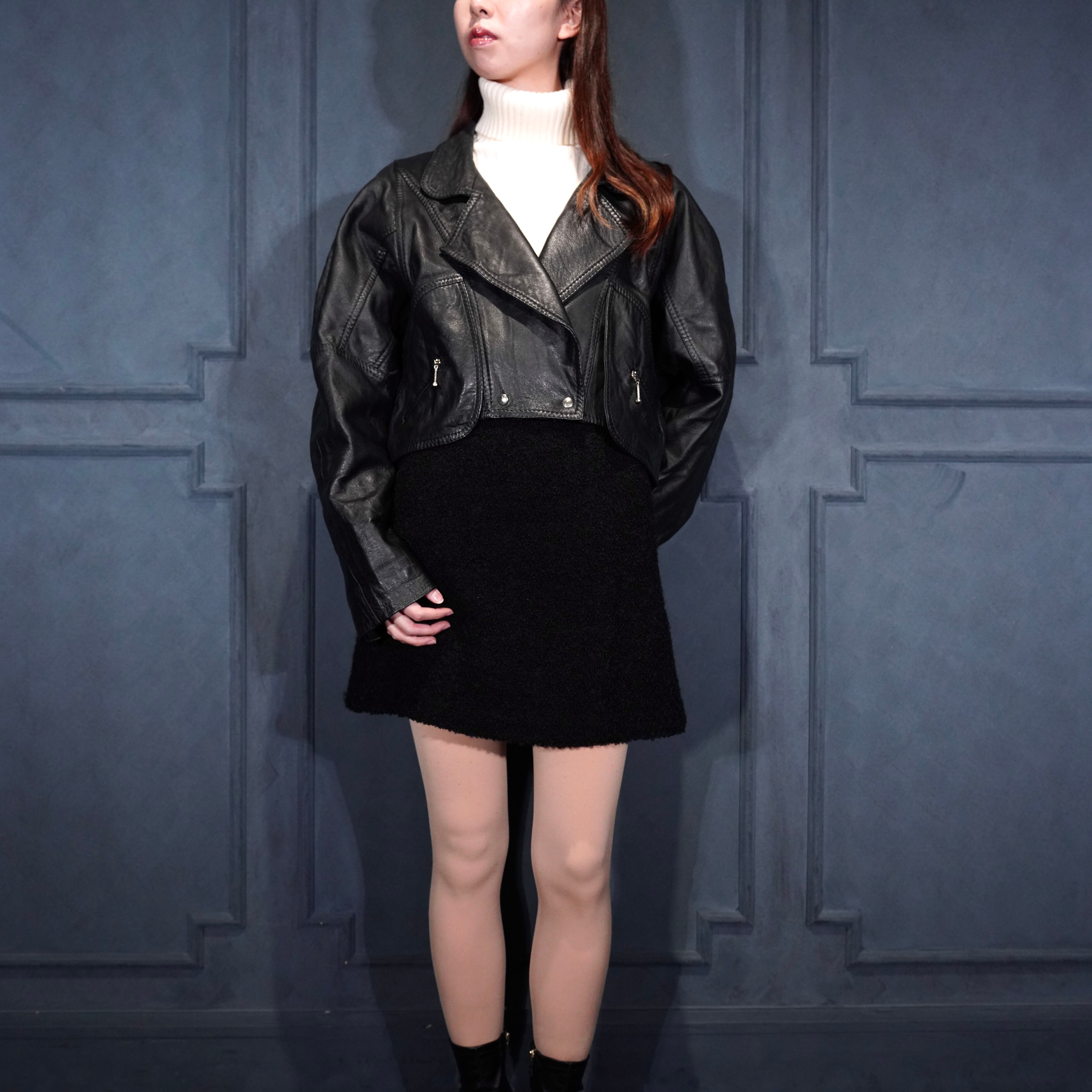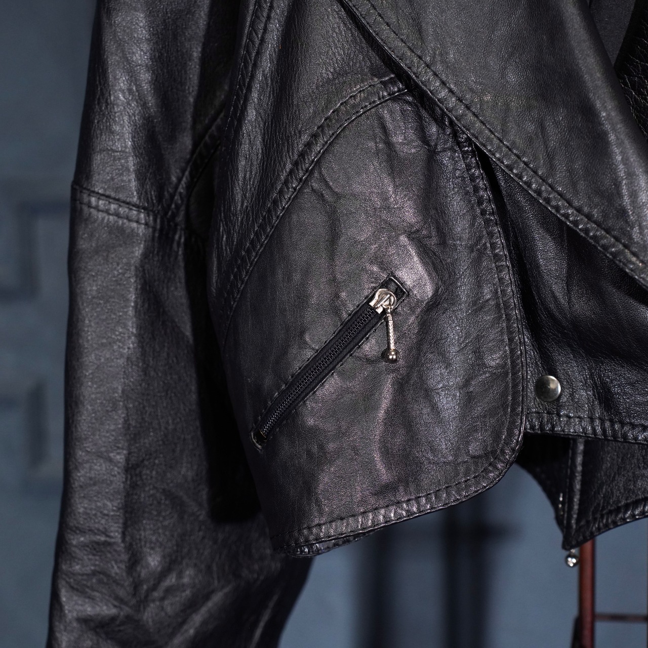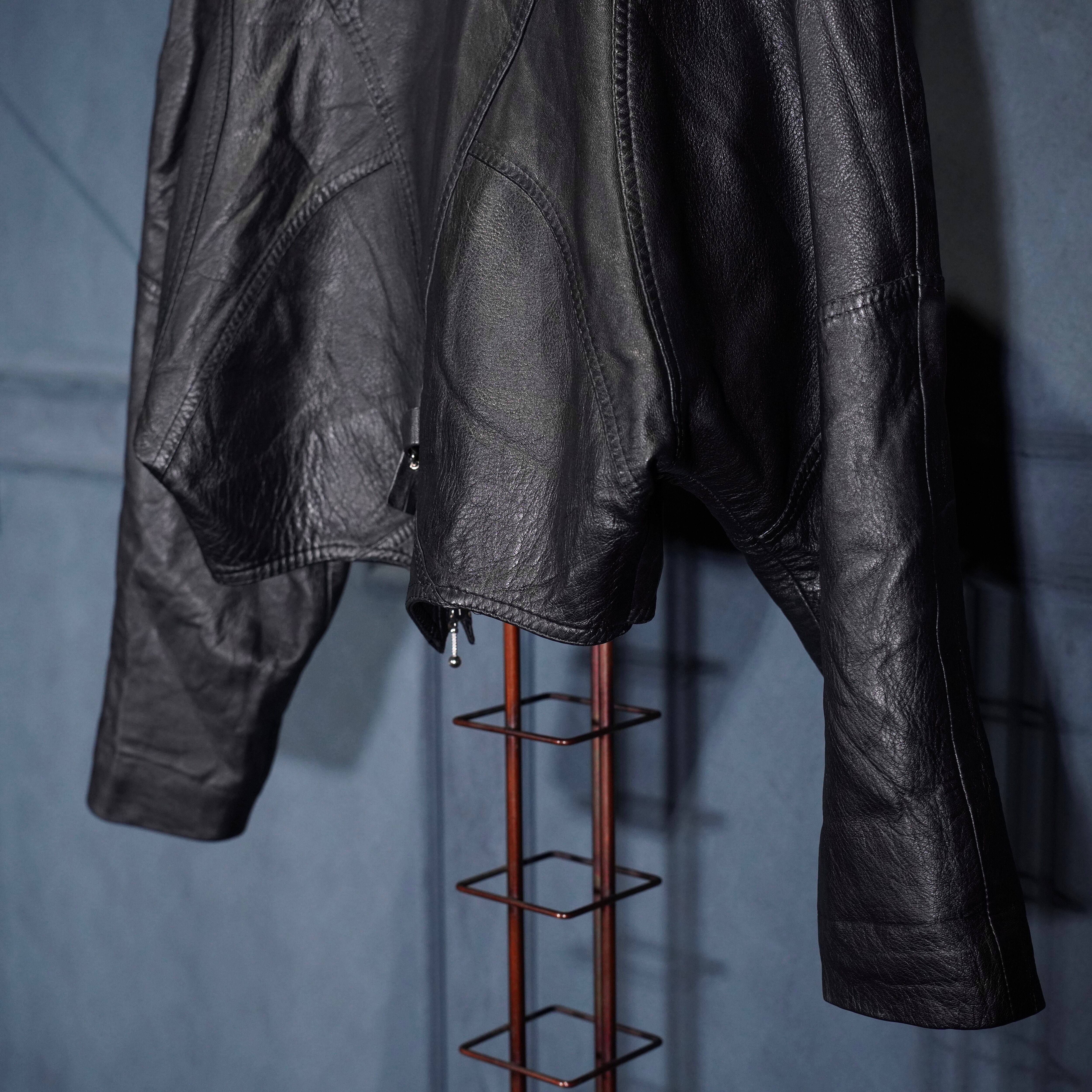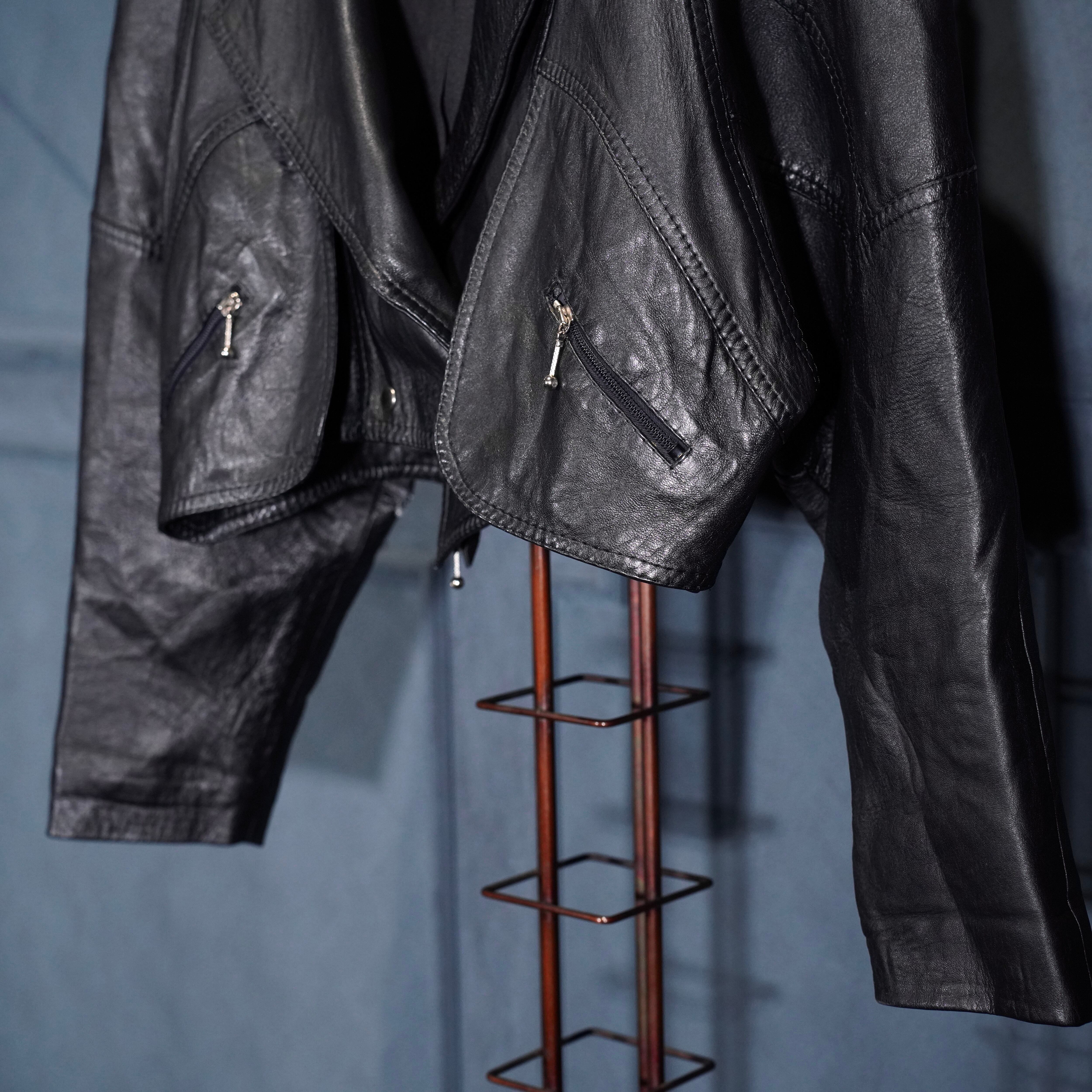 EU VINTAGE KaiSen SHORT LENGTH DEFORMATION DESIGN LEATHER RIDERS JACKET/ヨーロッパ古着ショート丈変形デザインレザーライダースジャケット