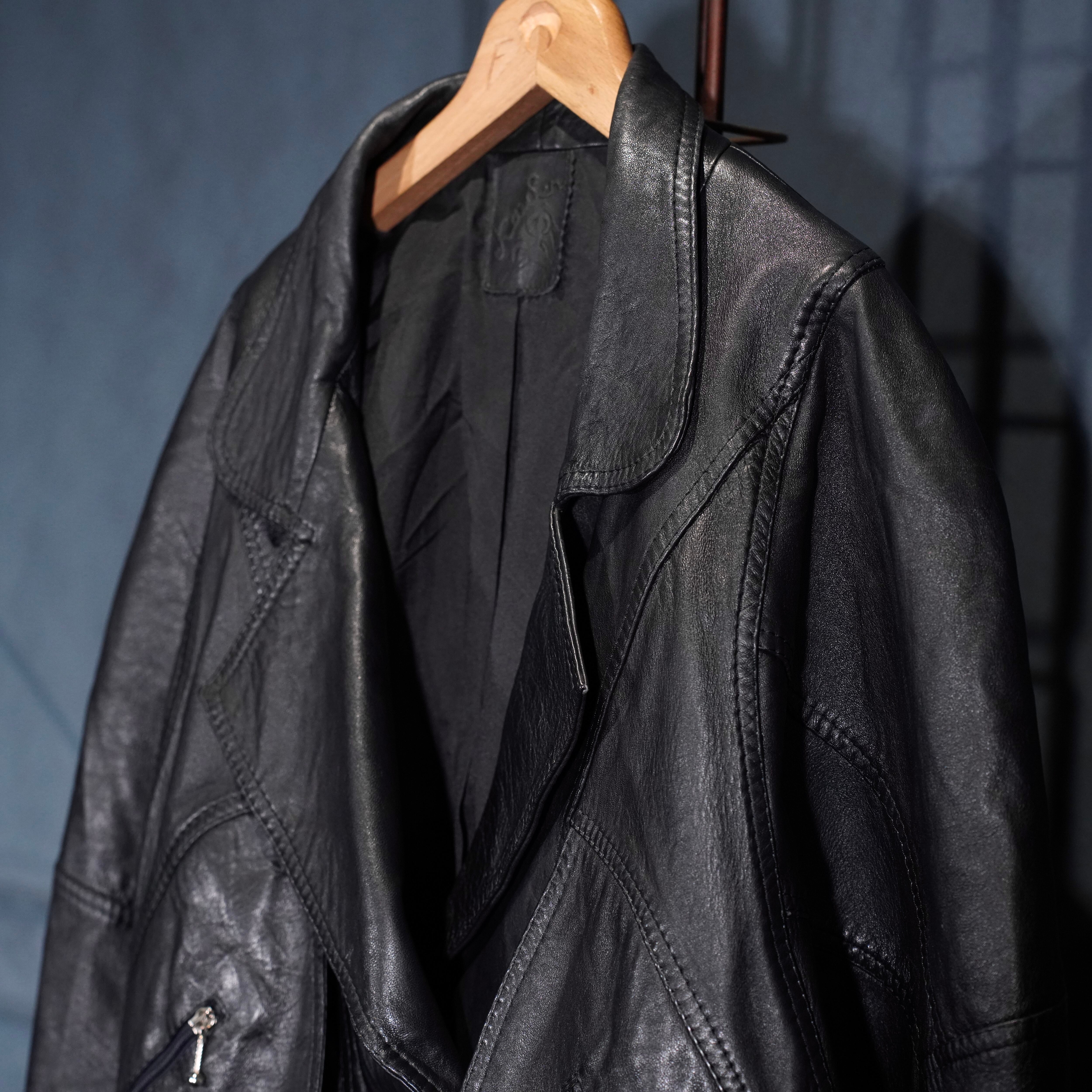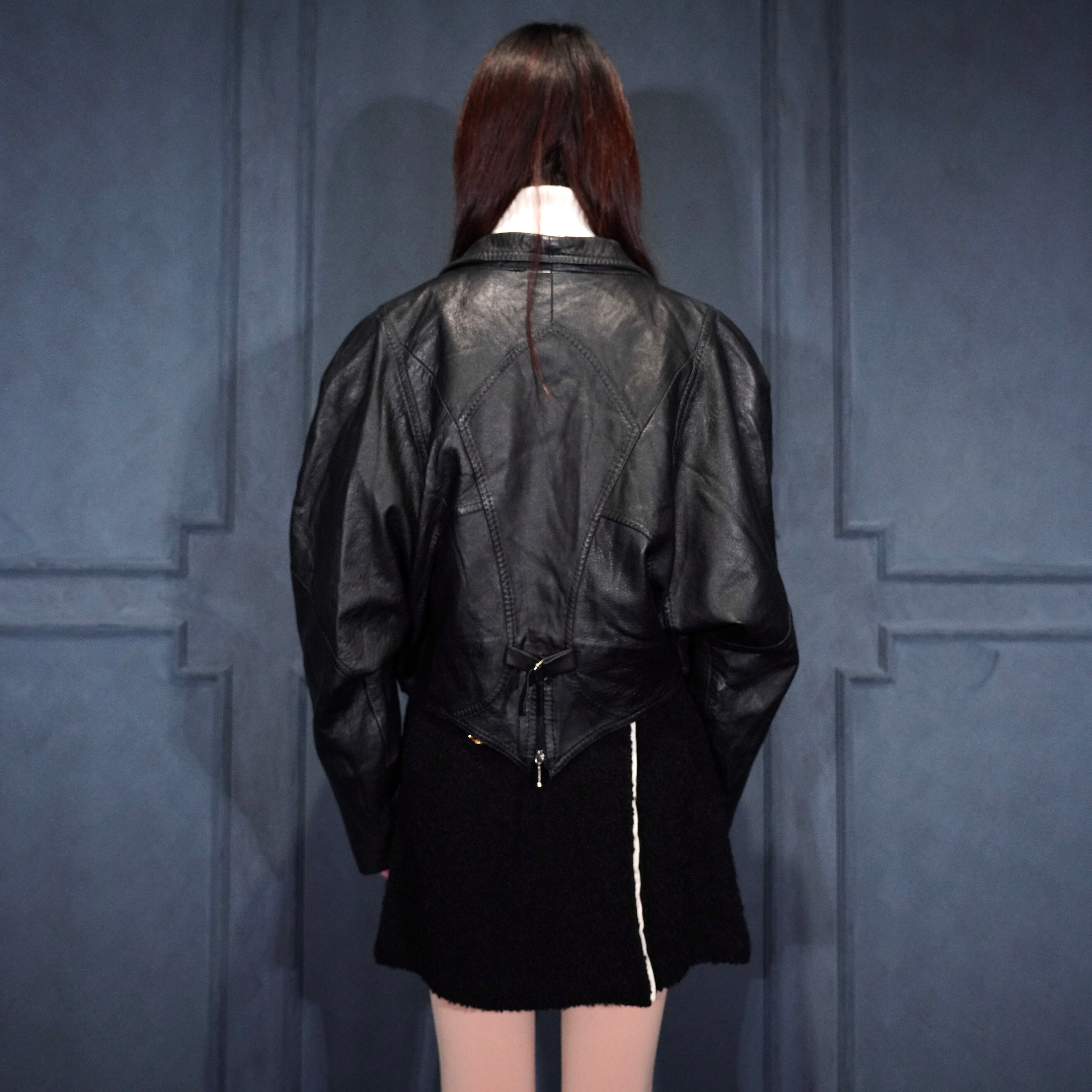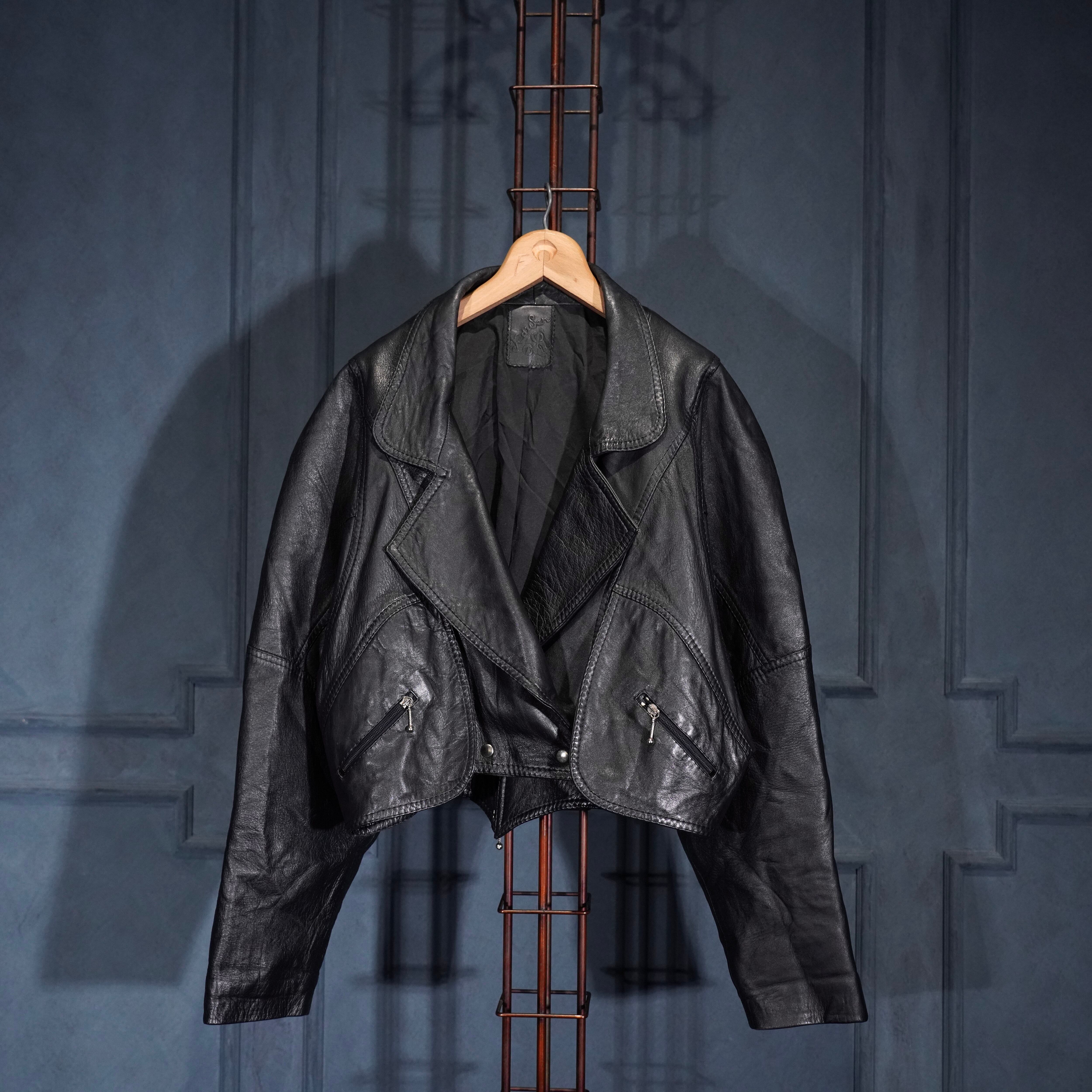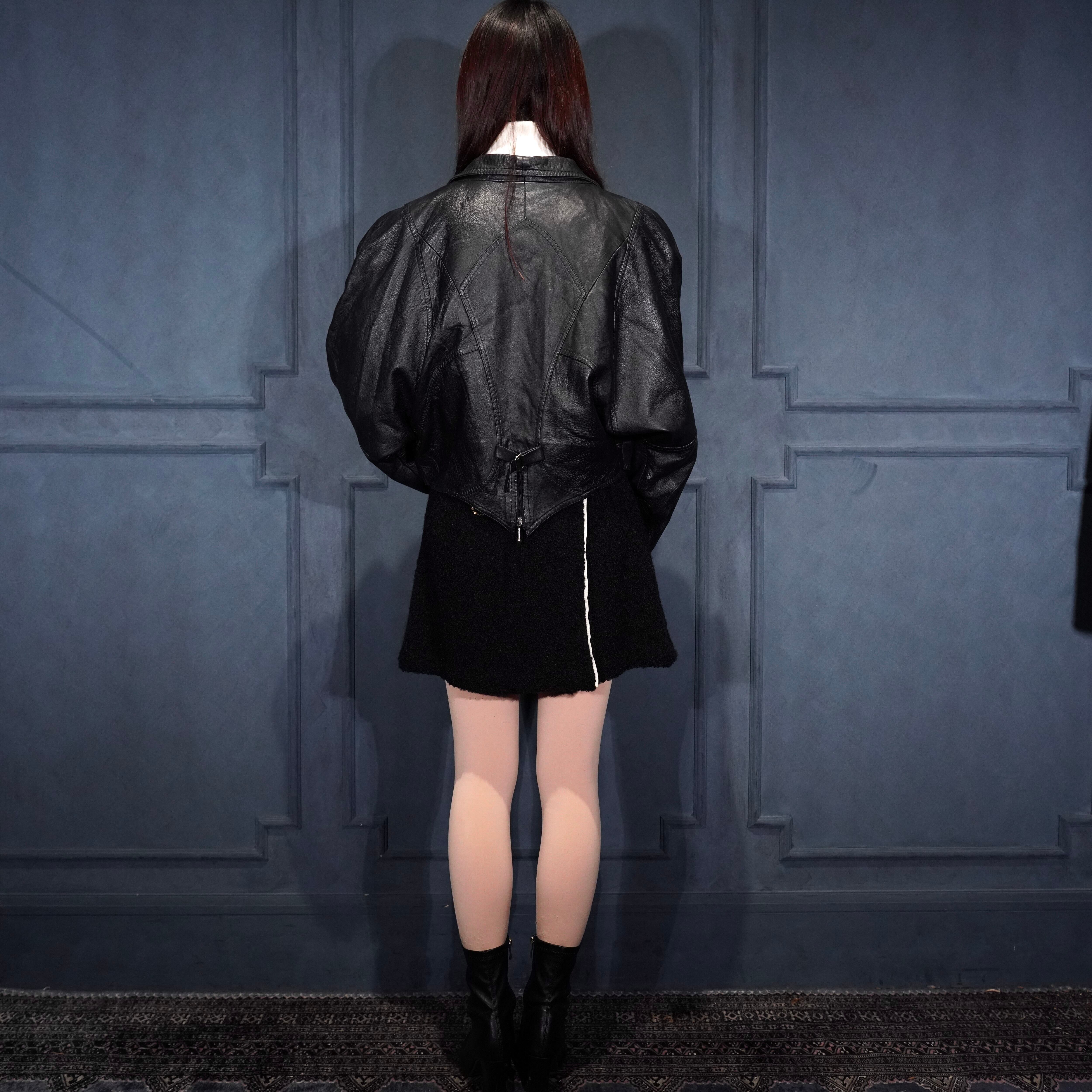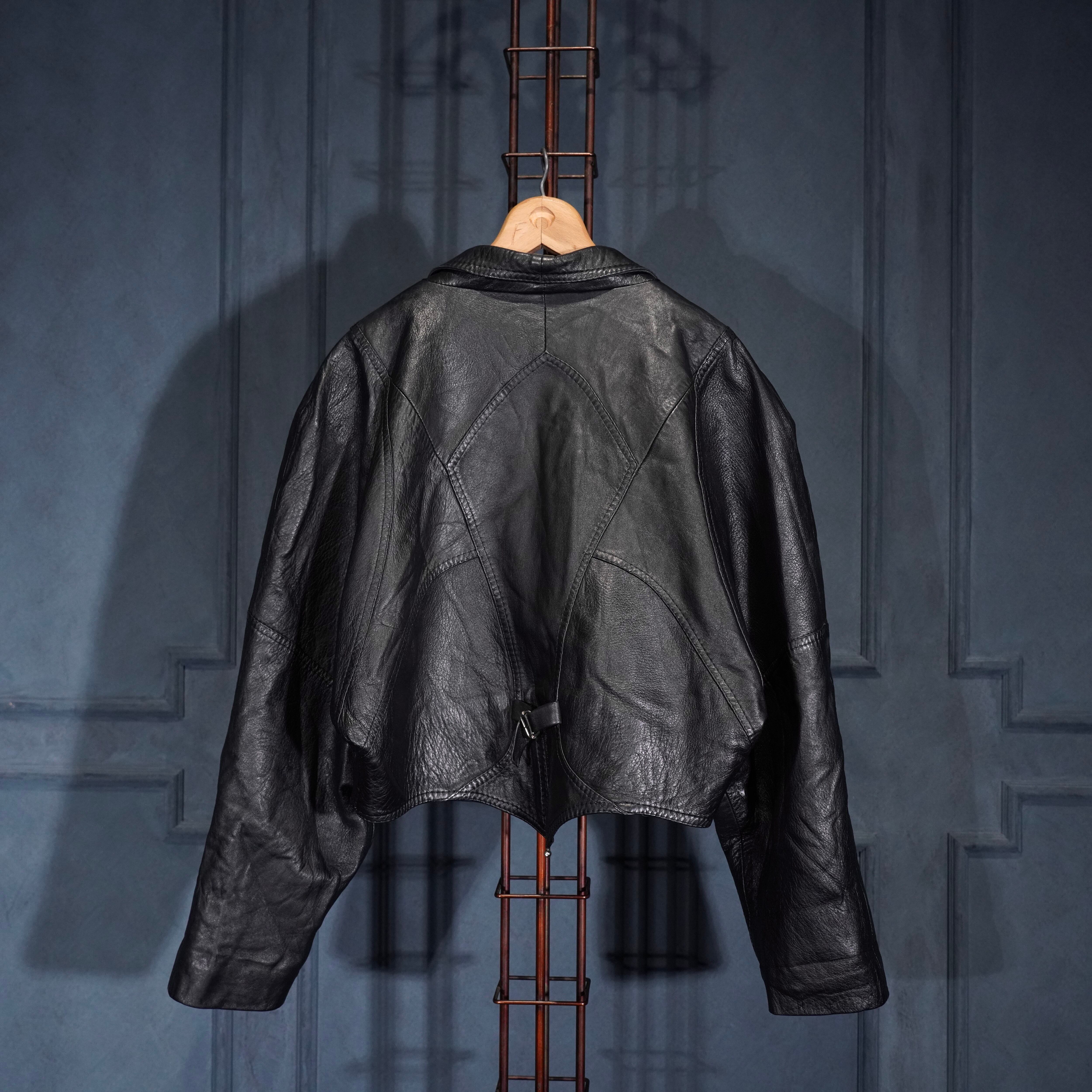 EU VINTAGE KaiSen SHORT LENGTH DEFORMATION DESIGN LEATHER RIDERS JACKET/ヨーロッパ古着ショート丈変形デザインレザーライダースジャケット