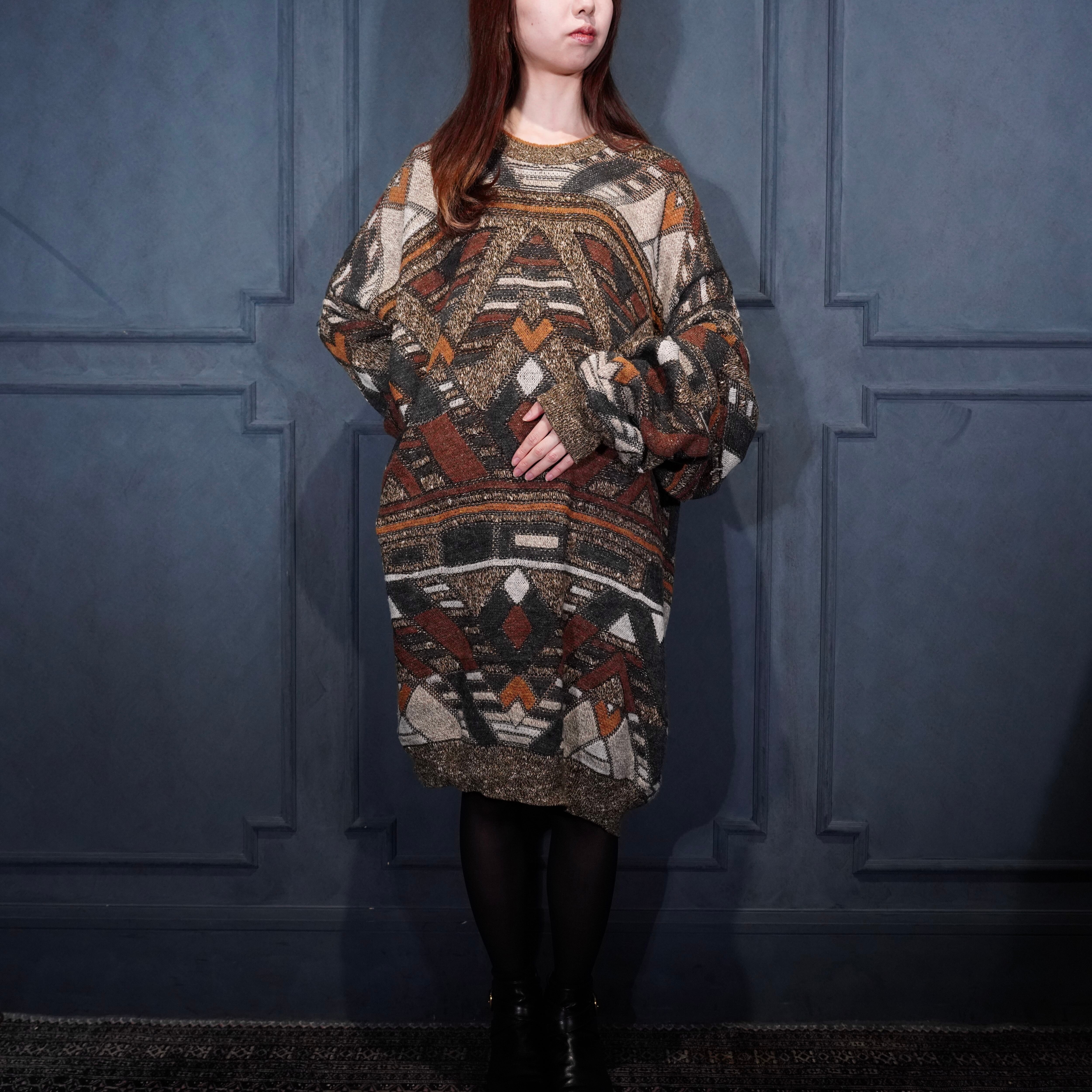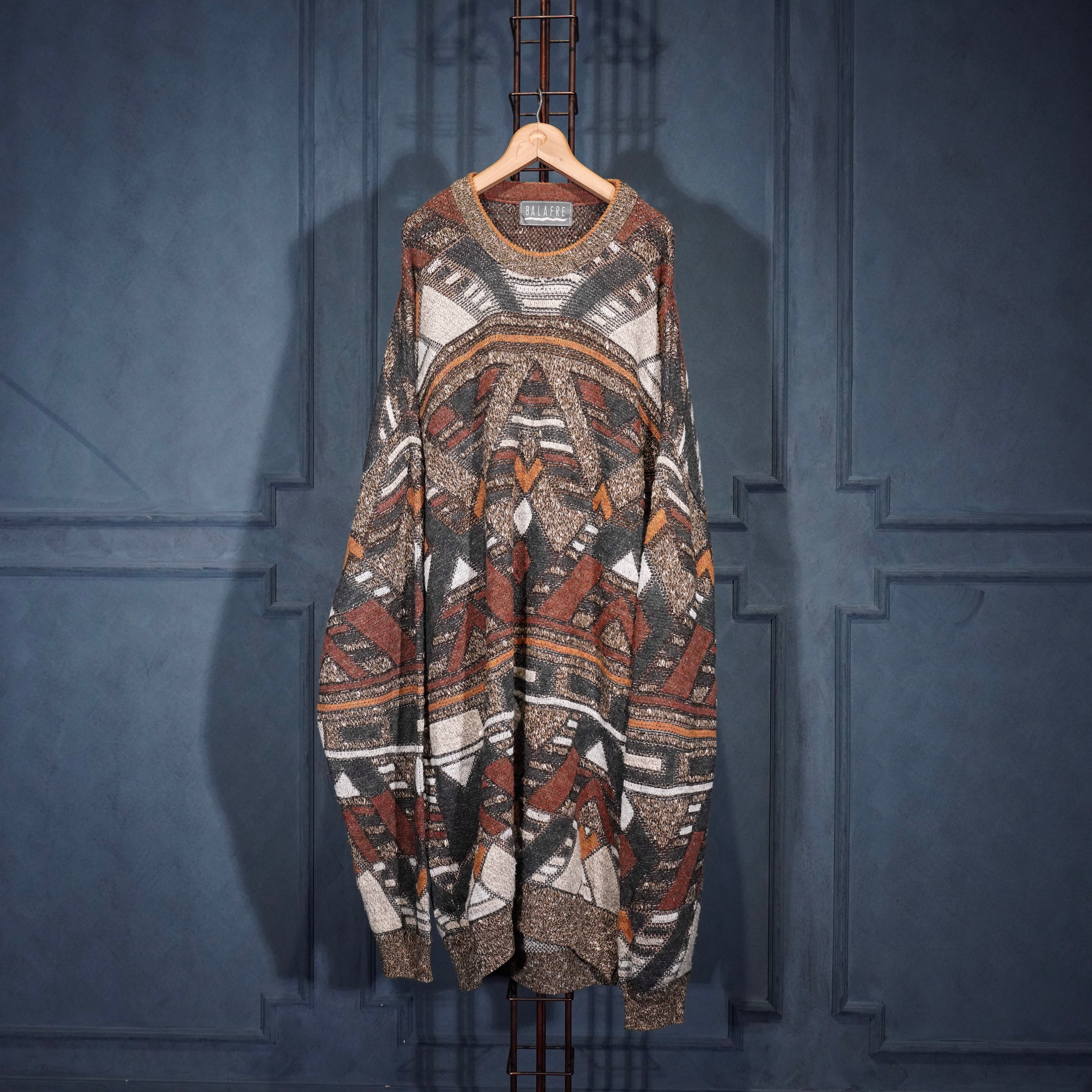 EU VINTAGE BALAFRE PATTERNED DESIGN KNIT ONE PIECE MADE IN ITALY/ヨーロッパ古着柄デザインニットワンピース