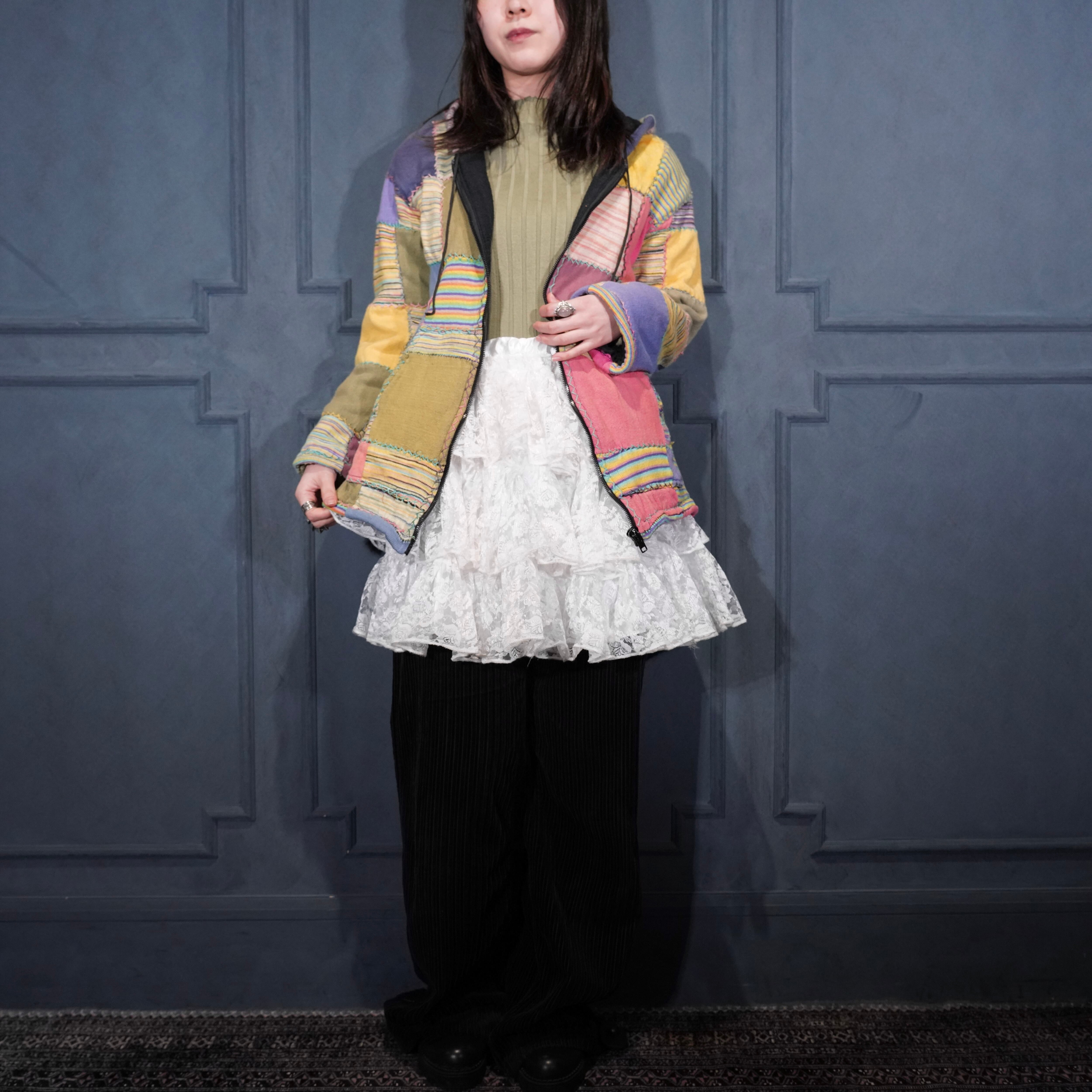 EU VINTAGE O.P.C PATCHWORK DESIGN HOODIE BLOUSON MADE IN NEPAL/ヨーロッパ古着パッチワークデザインフーディブルゾン