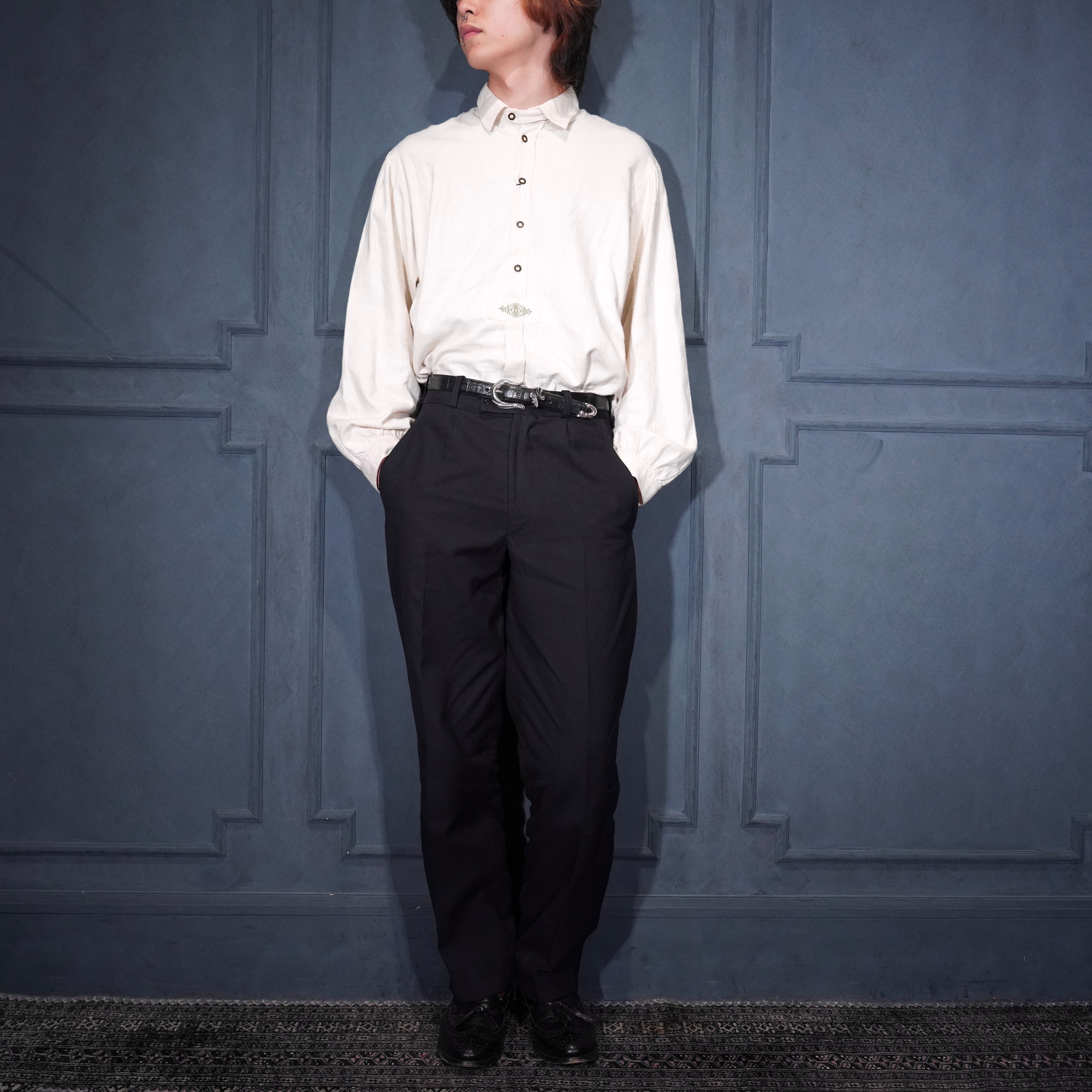 70's EU VINTAGE MICHIELSENS TUCK DESIGN WOOL SLACKS PANTS/70年代ヨーロッパ古着タックデザインウールスラックスパンツ