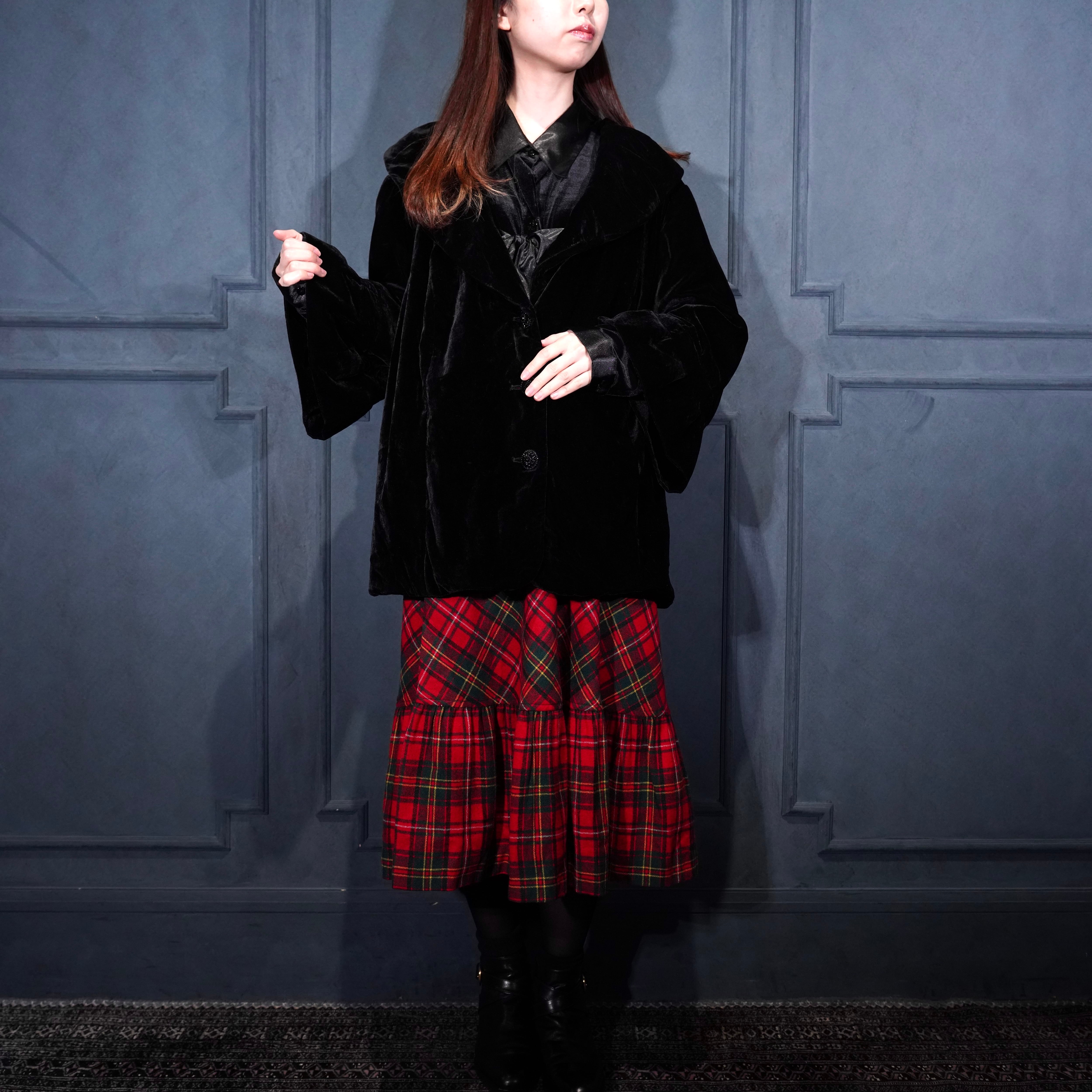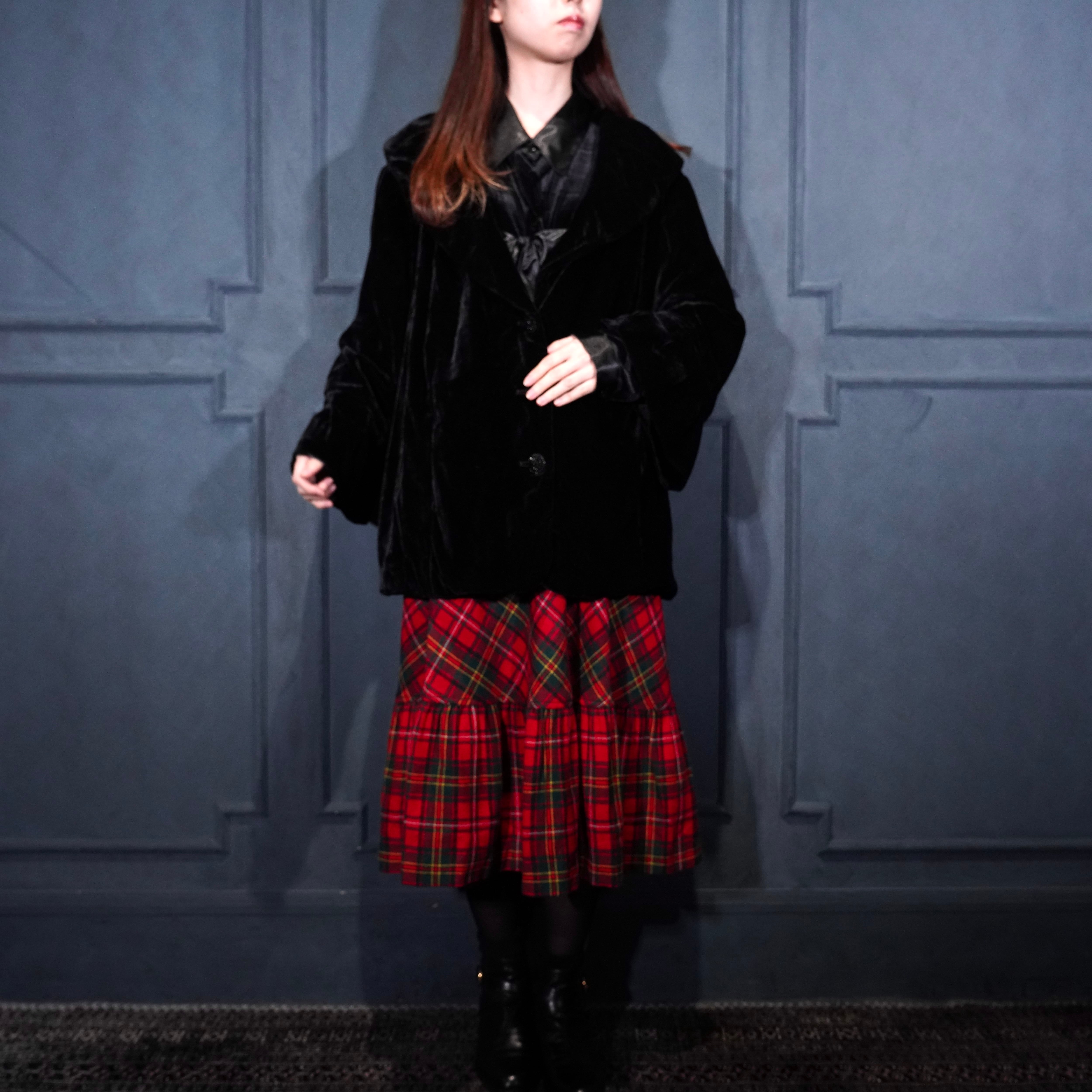 USA VINATAGE LANE BRYANT DESIGN BUTTON VELOUR OVER JACKET/アメリカ古着デザインボタンベロアオーバージャケット