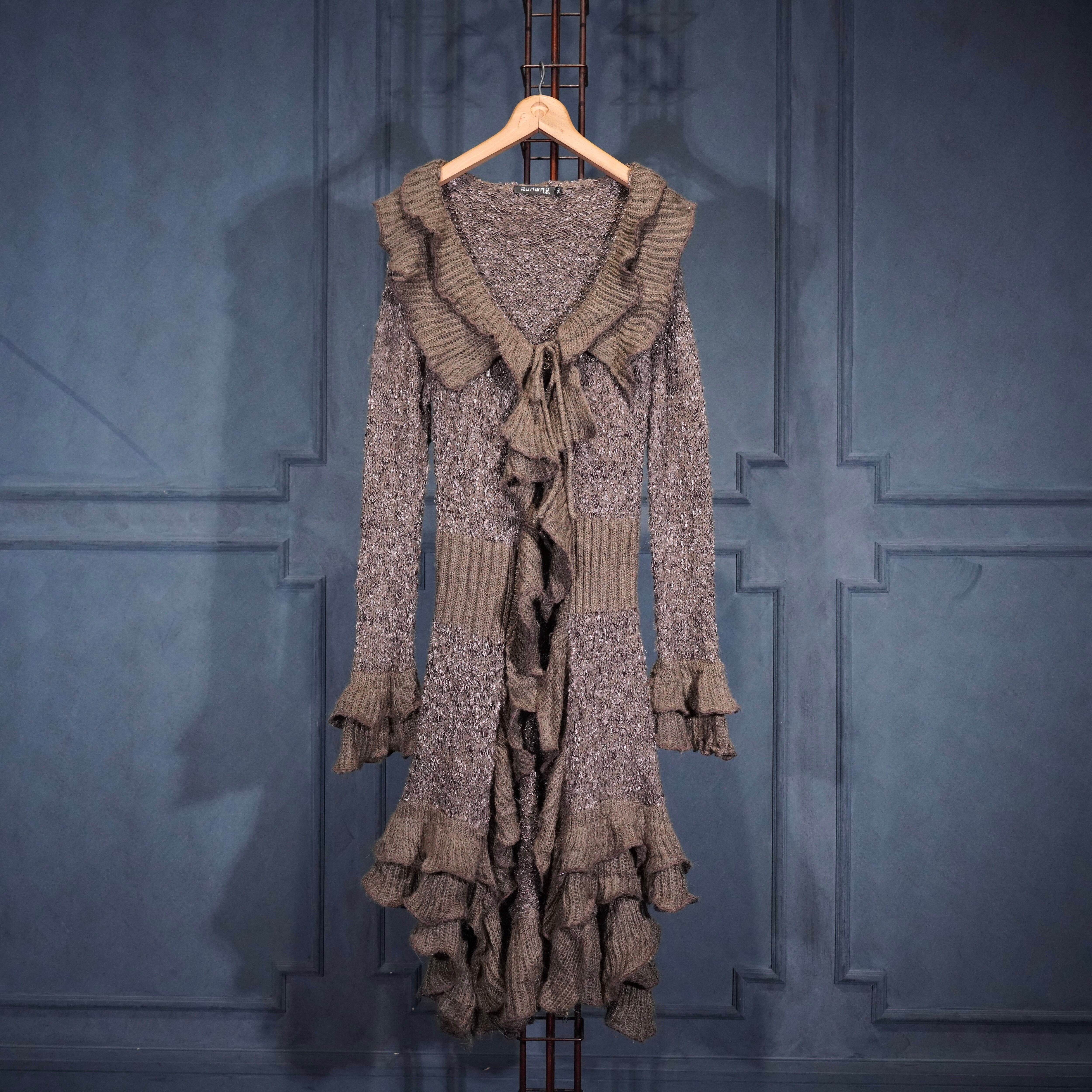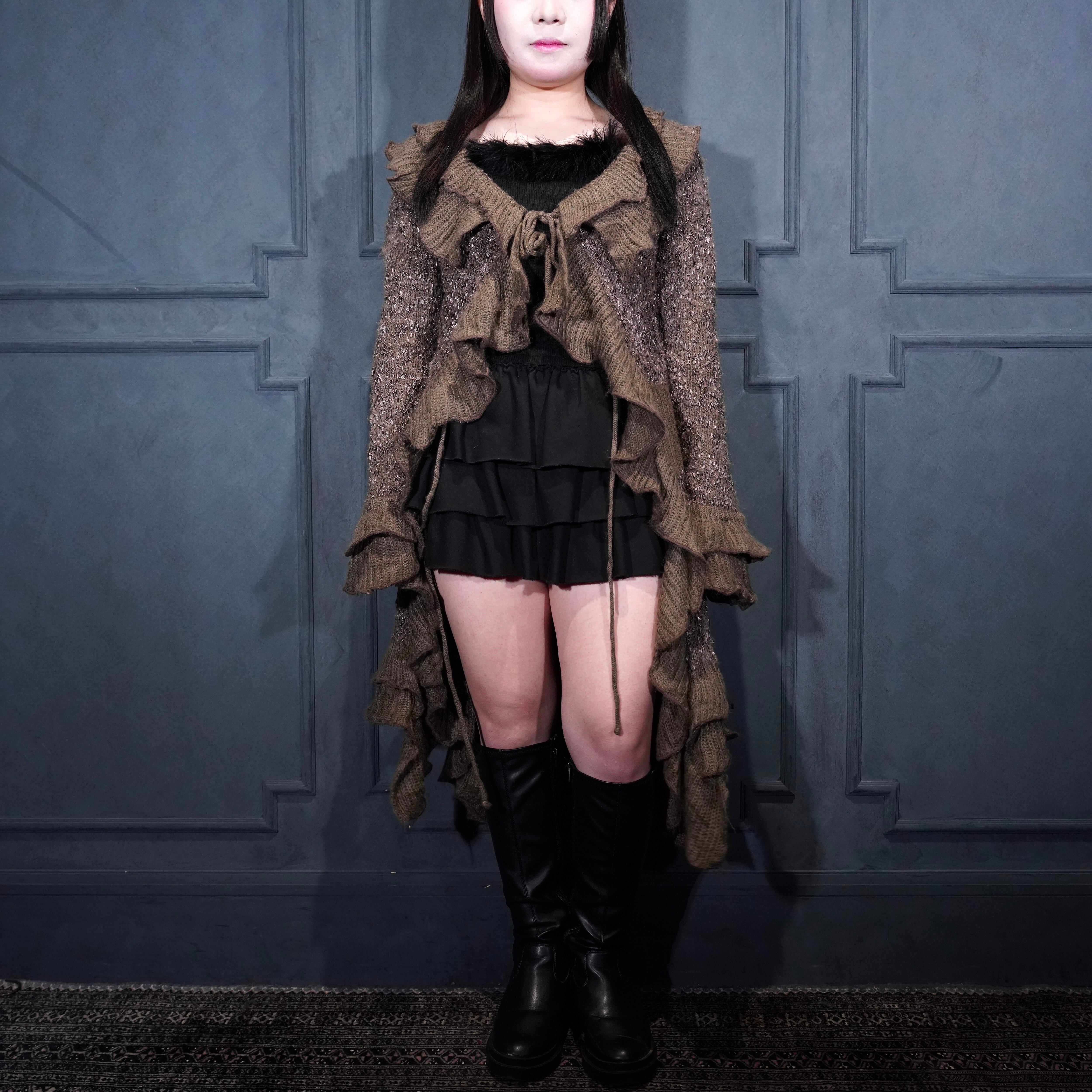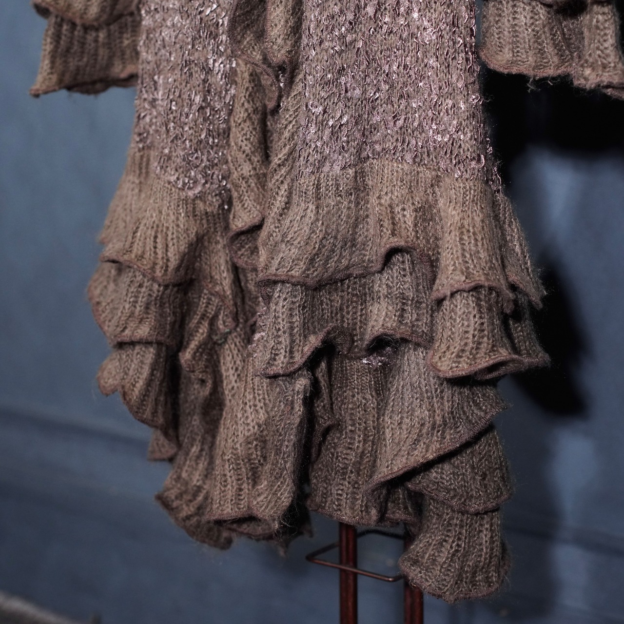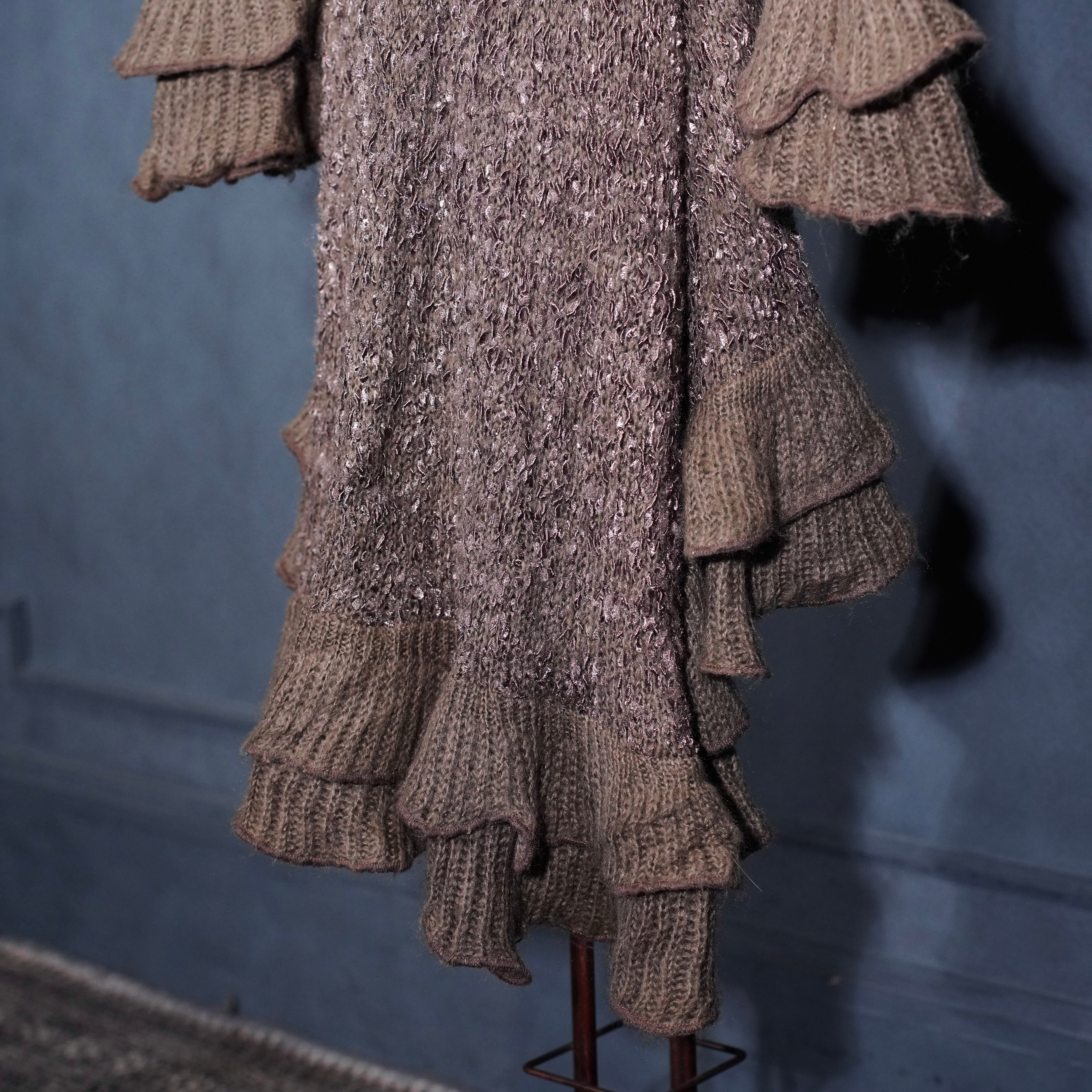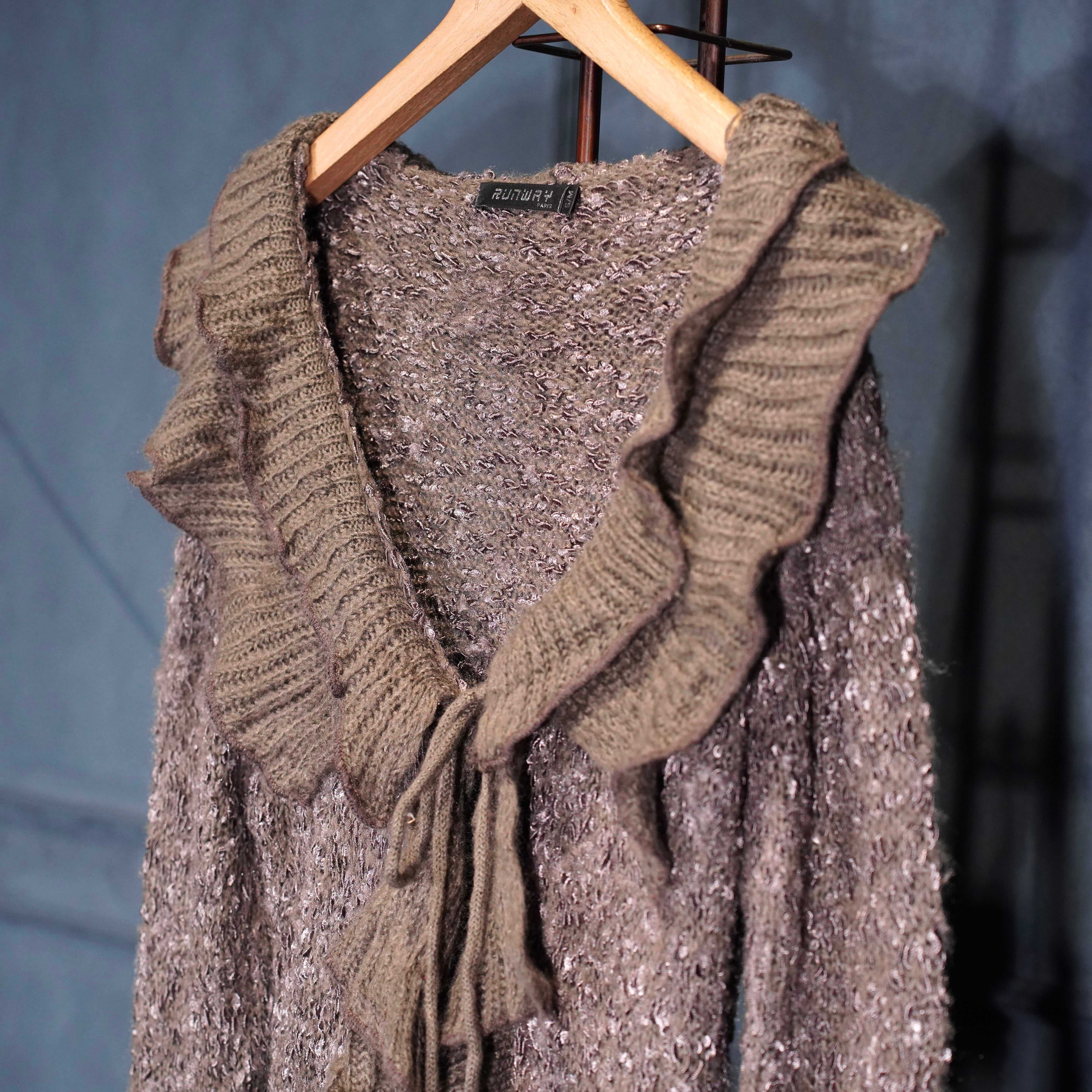 EU VINTAGE RUNWAY FRILL DESIGN KNIT LONG COAT/ヨーロッパ古着フリルデザインニットロングコート(カーディガン)