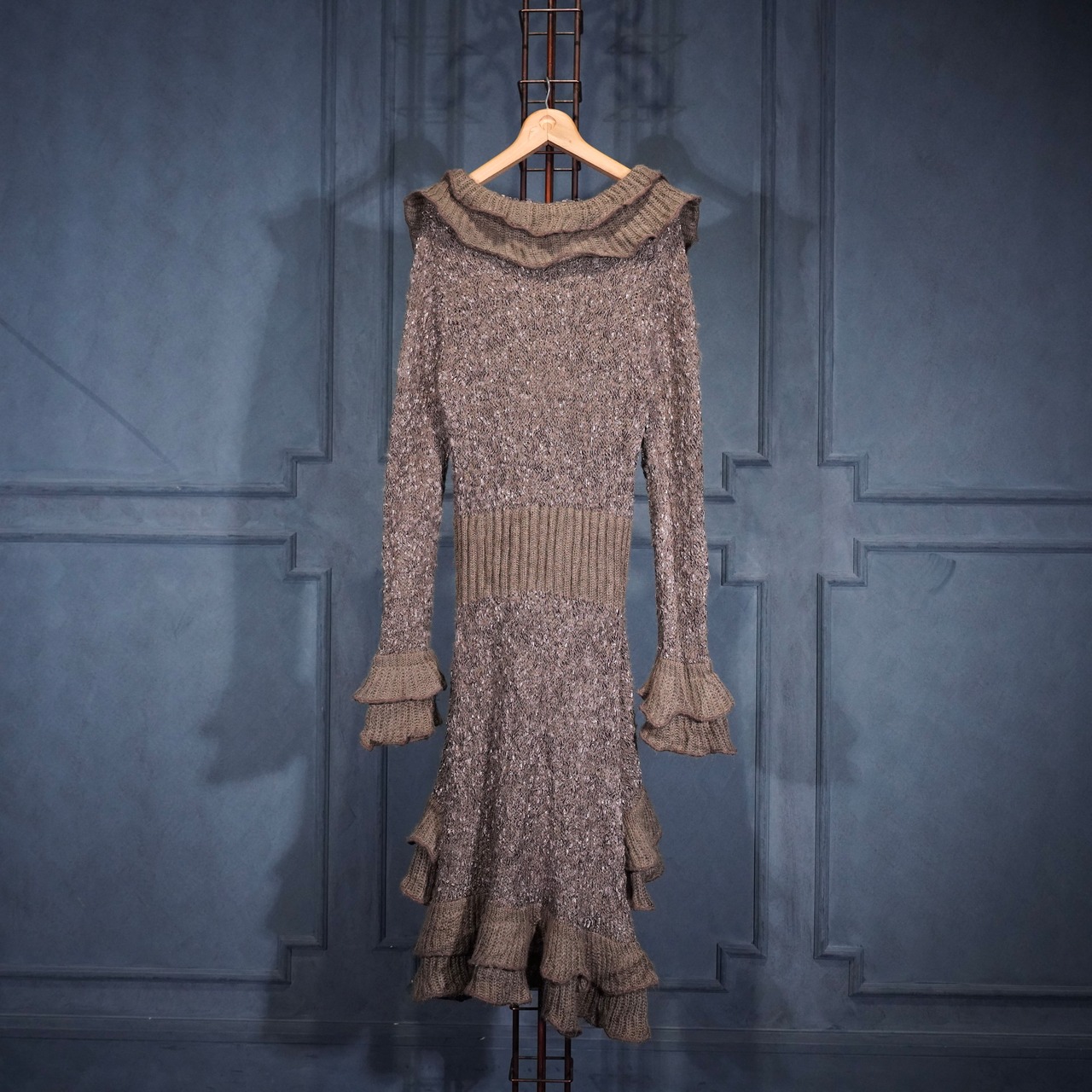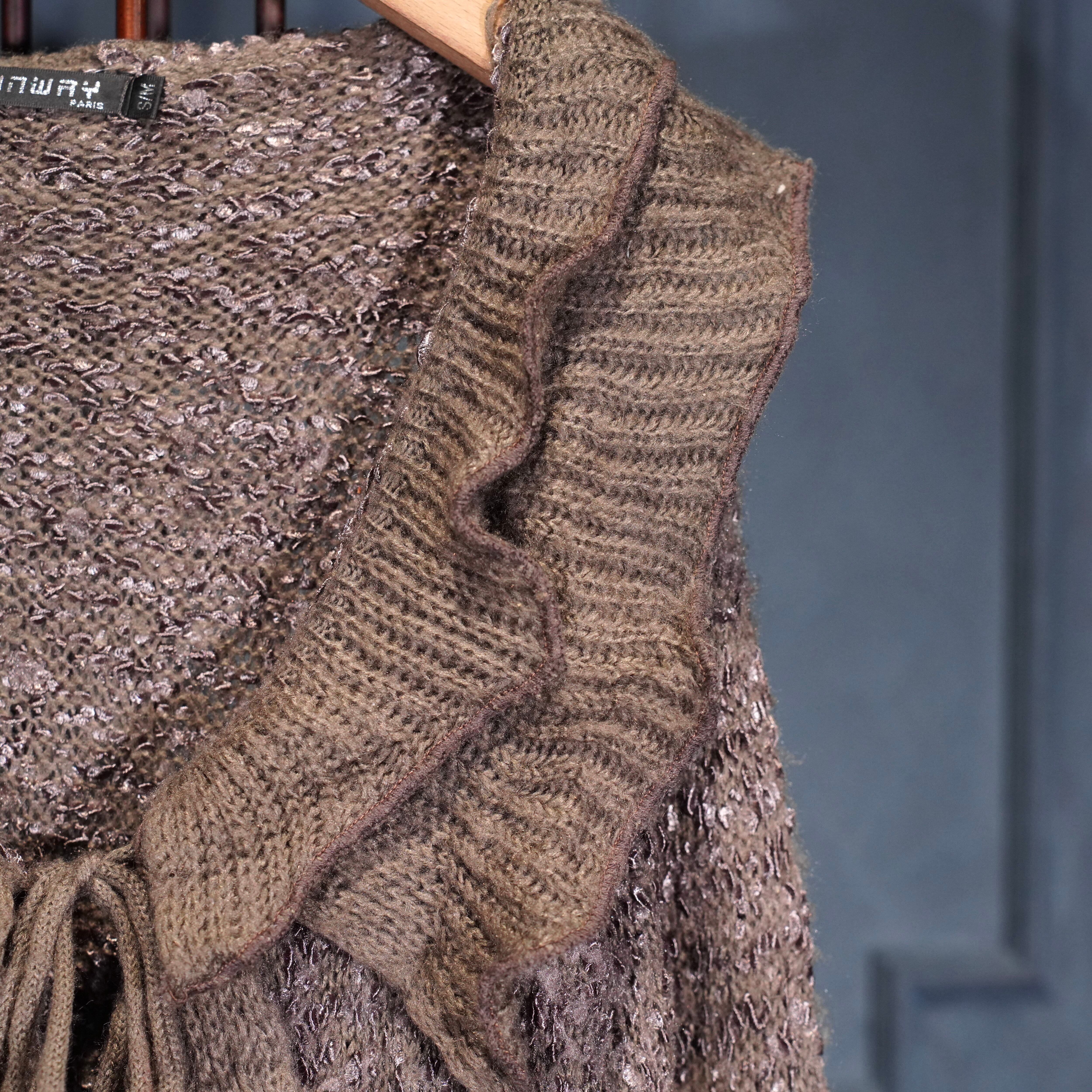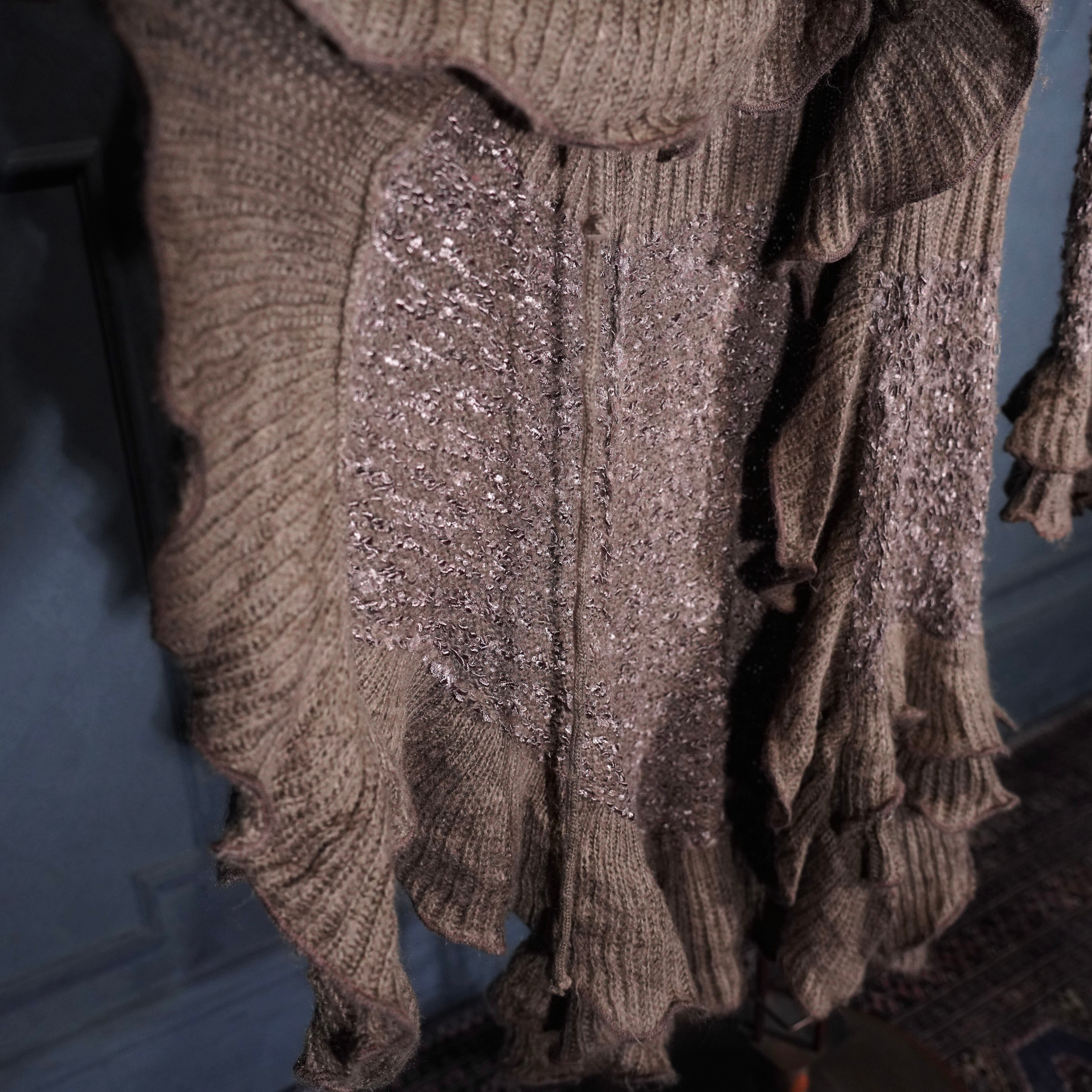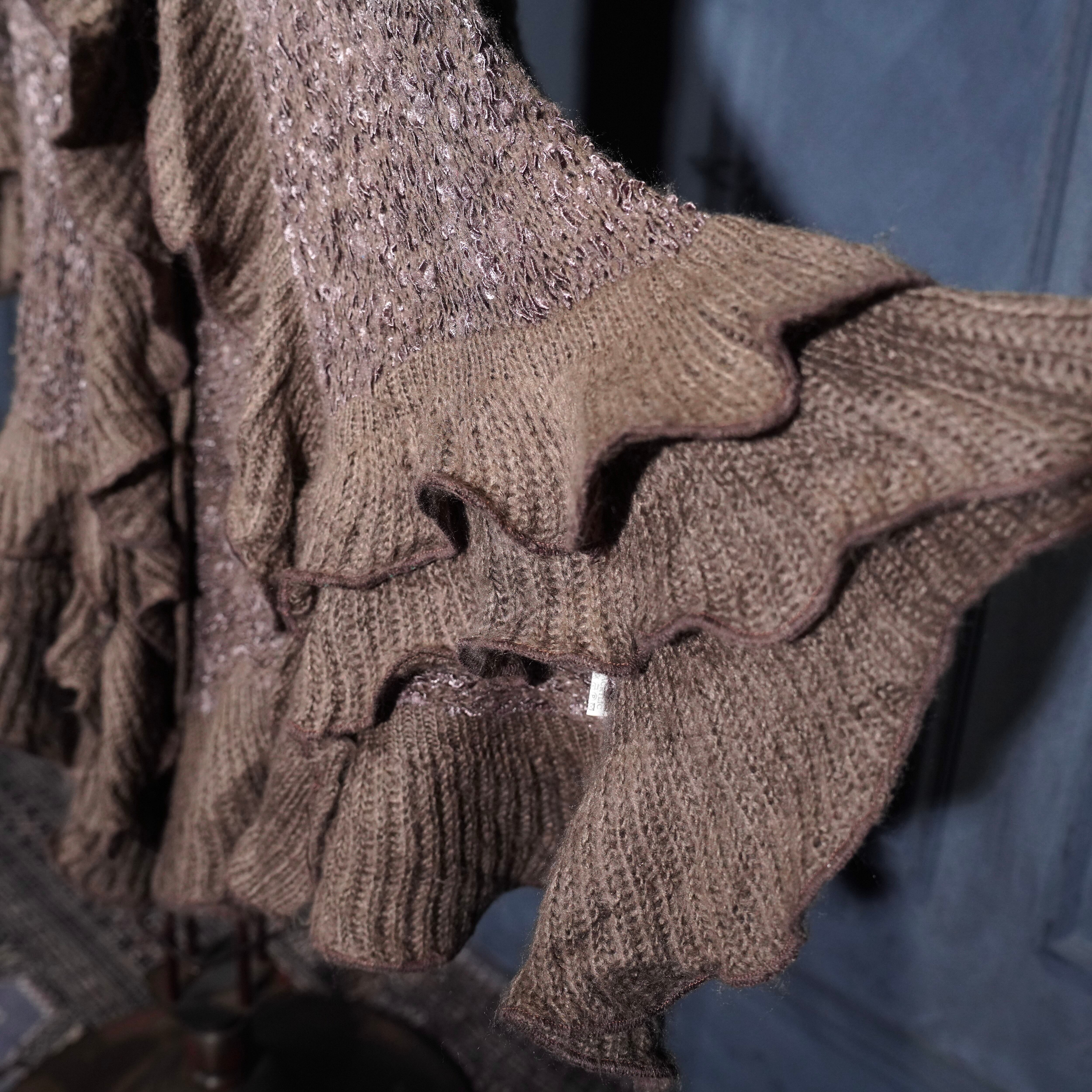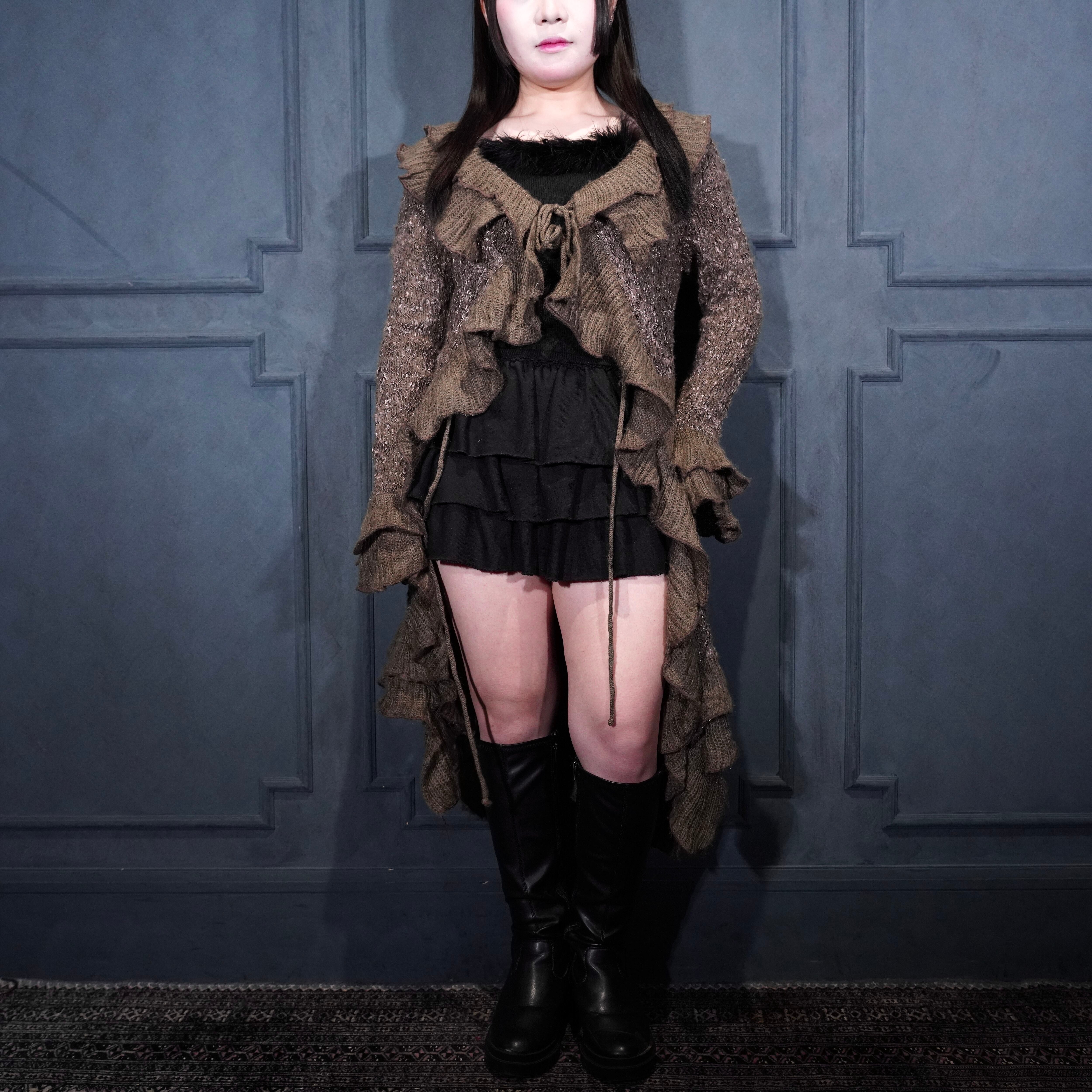 EU VINTAGE RUNWAY FRILL DESIGN KNIT LONG COAT/ヨーロッパ古着フリルデザインニットロングコート(カーディガン)