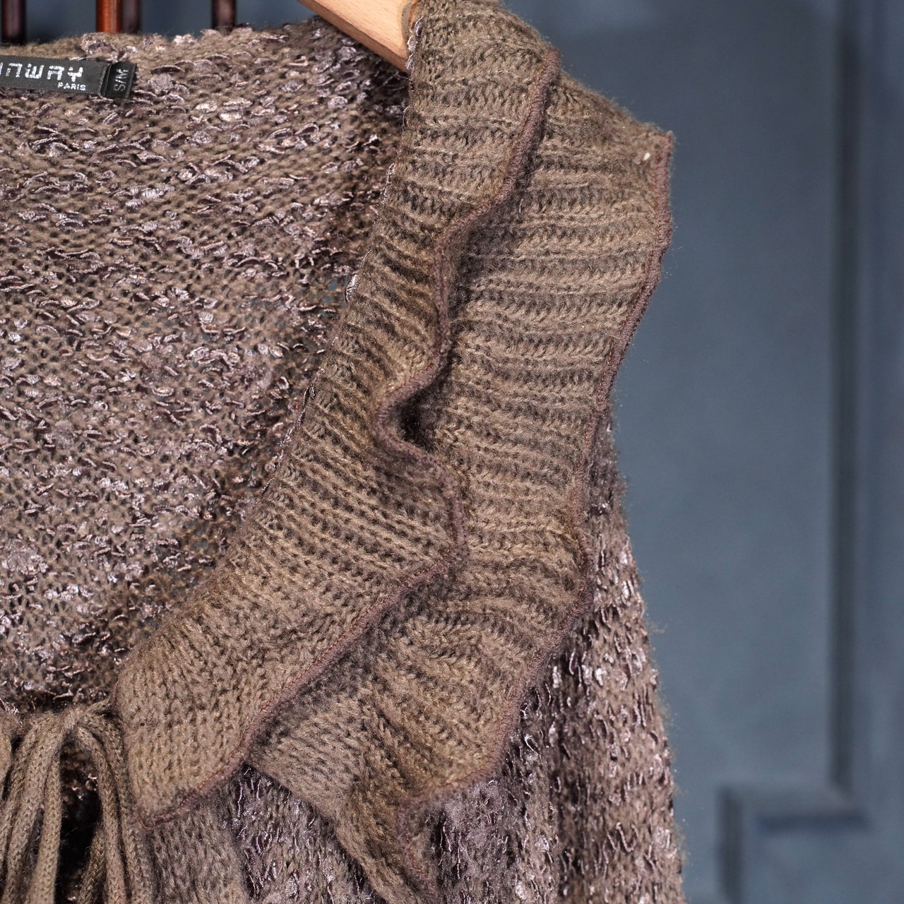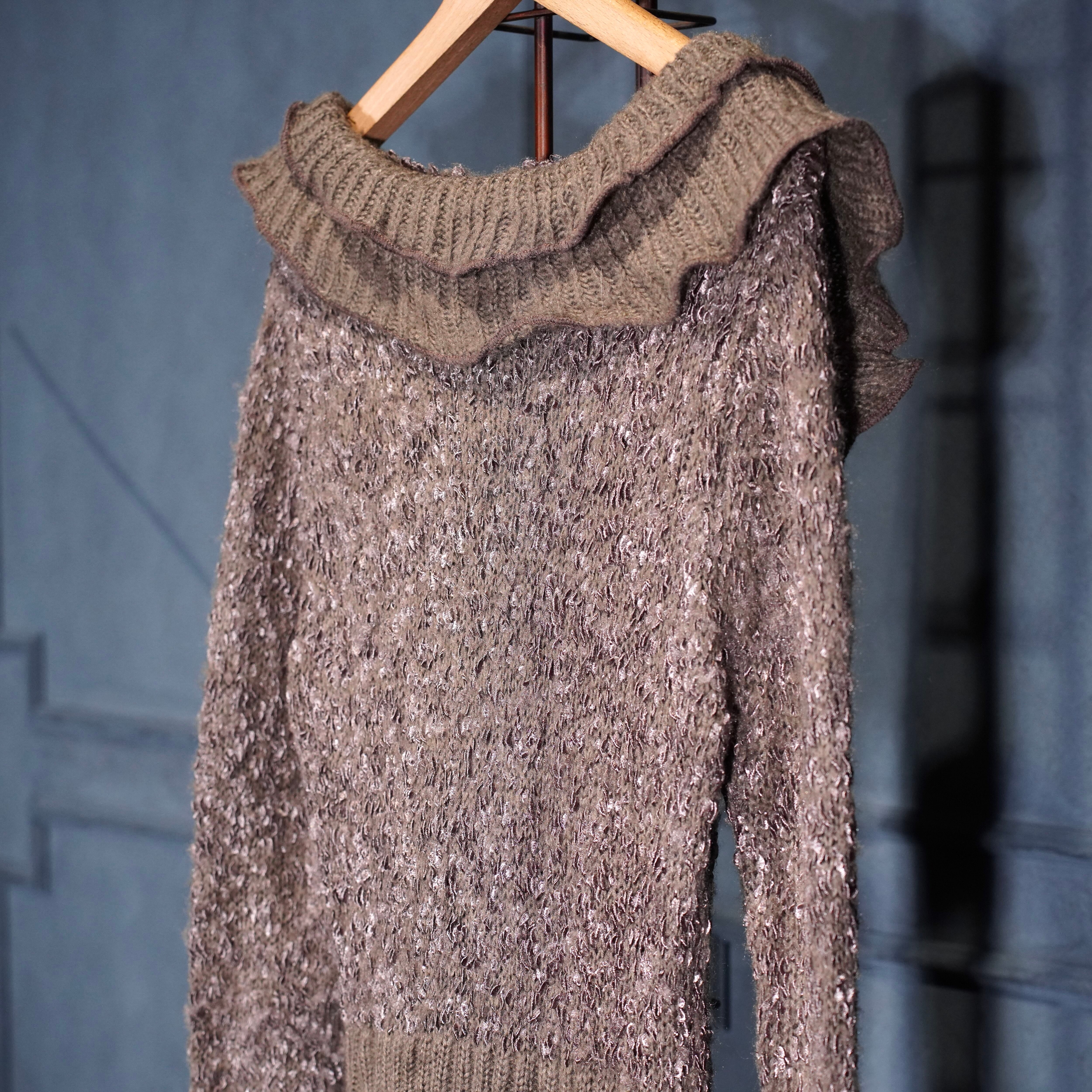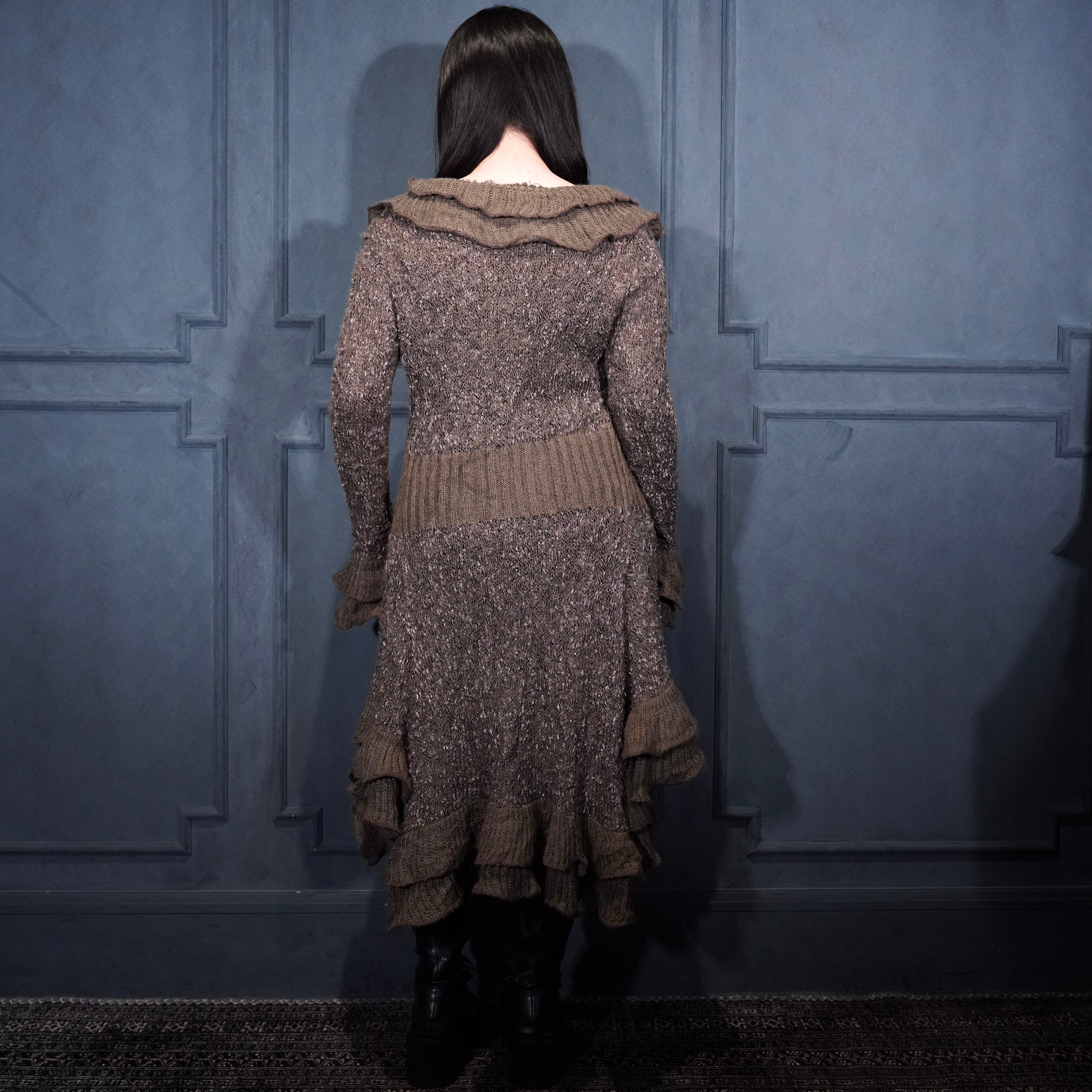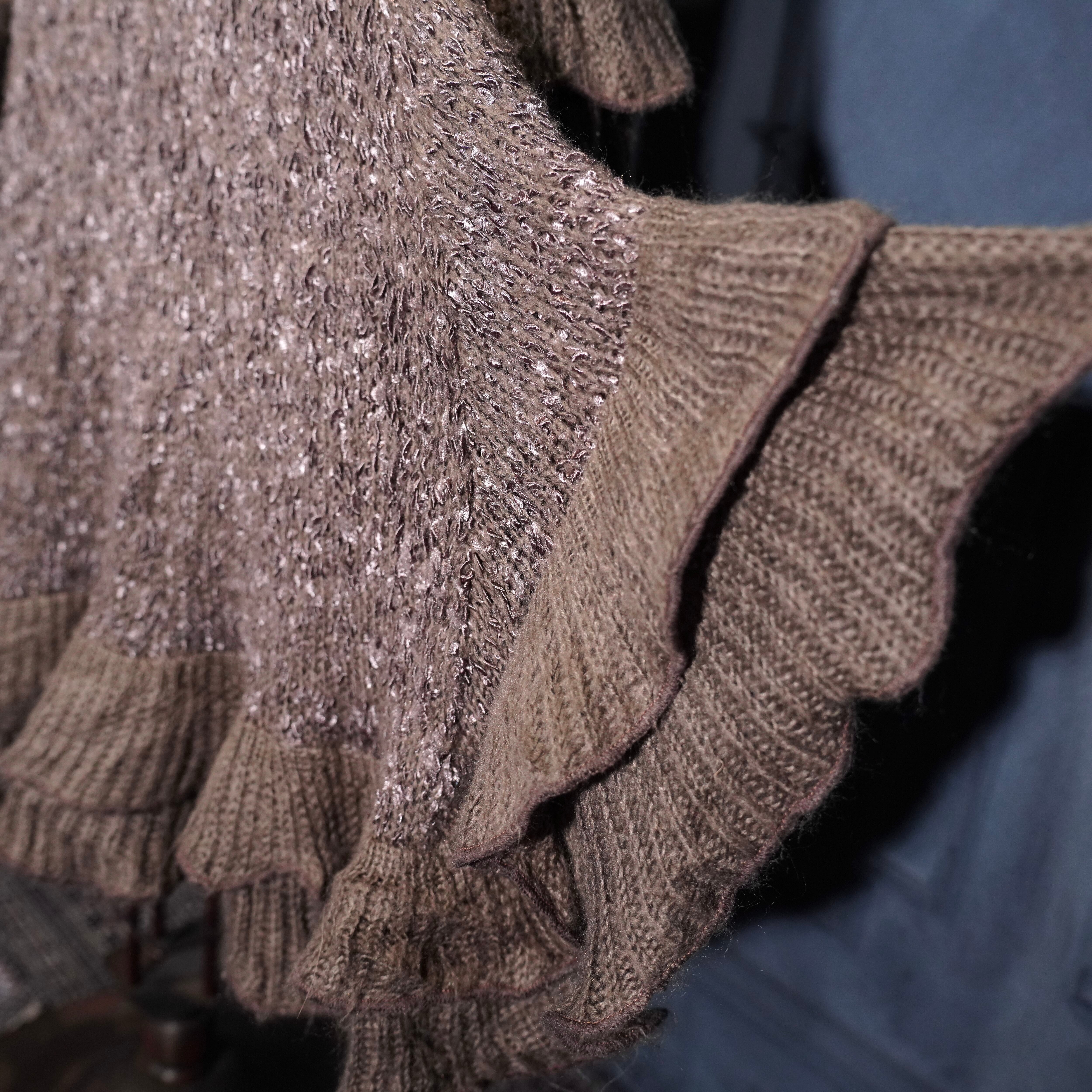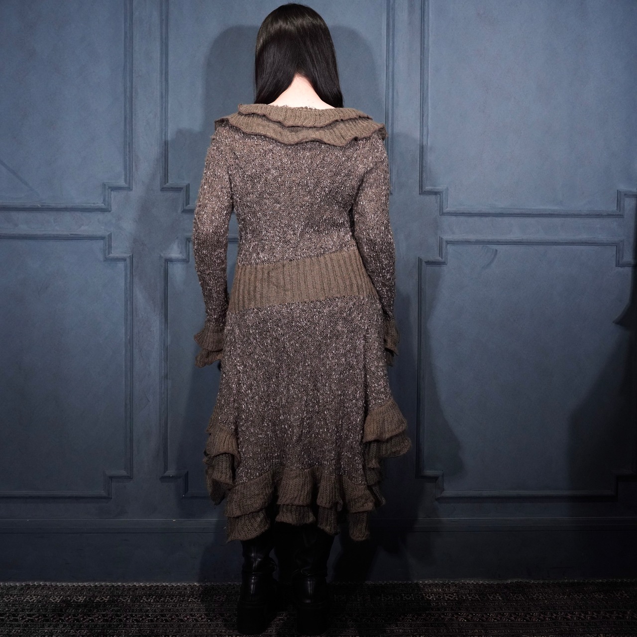 EU VINTAGE FRILL DESIGN KNIT LONG COAT/ヨーロッパ古着フリルデザインニットロングコート(カーディガン)