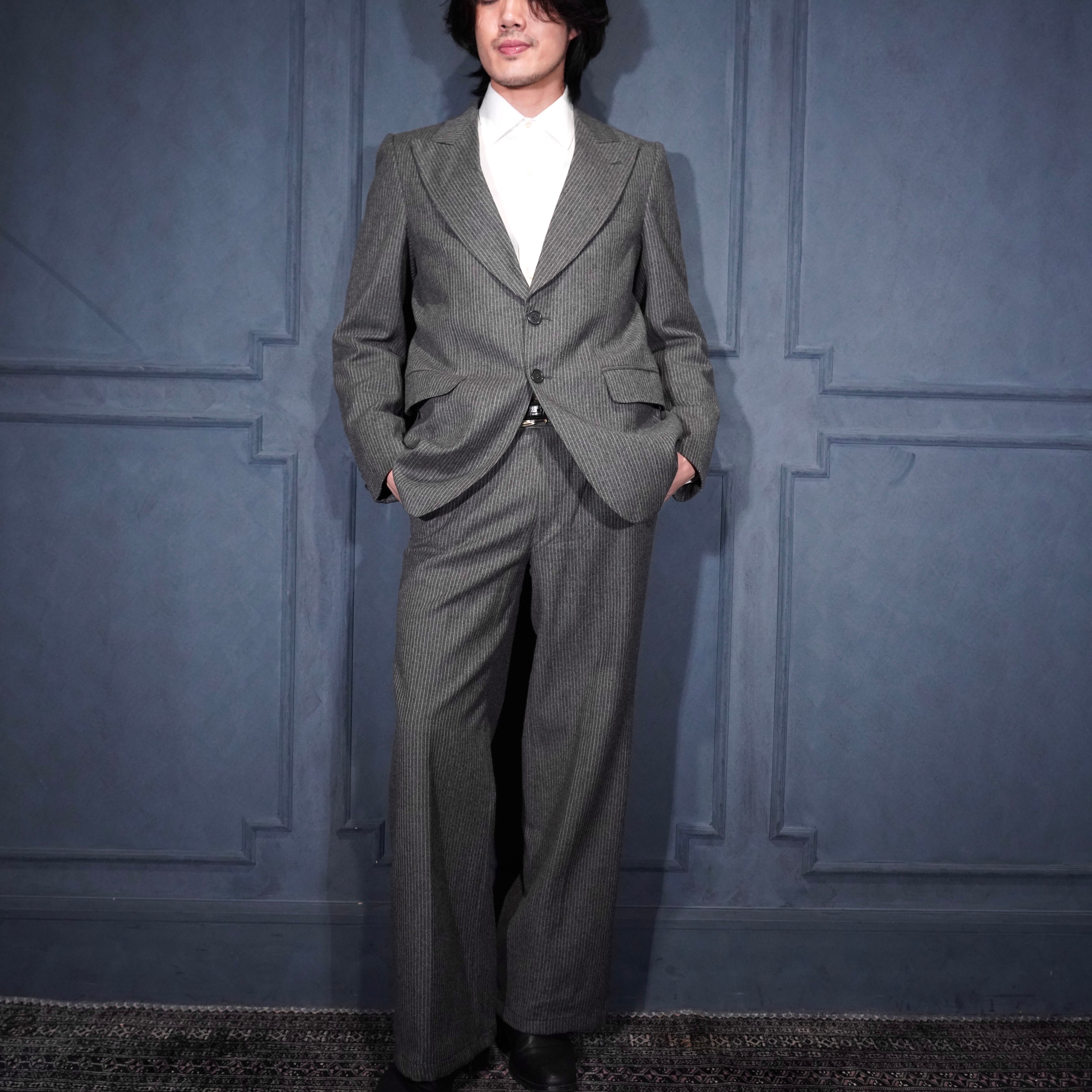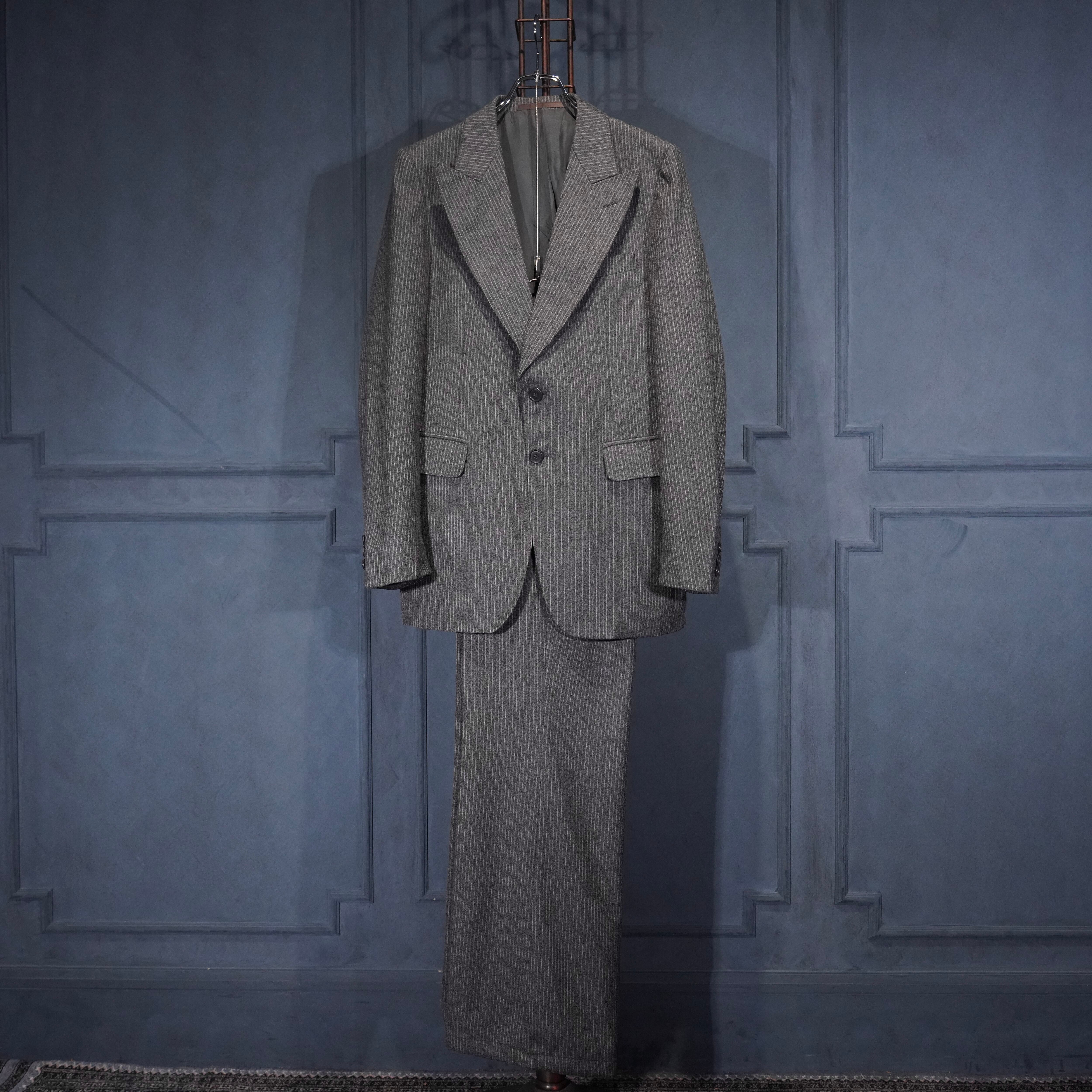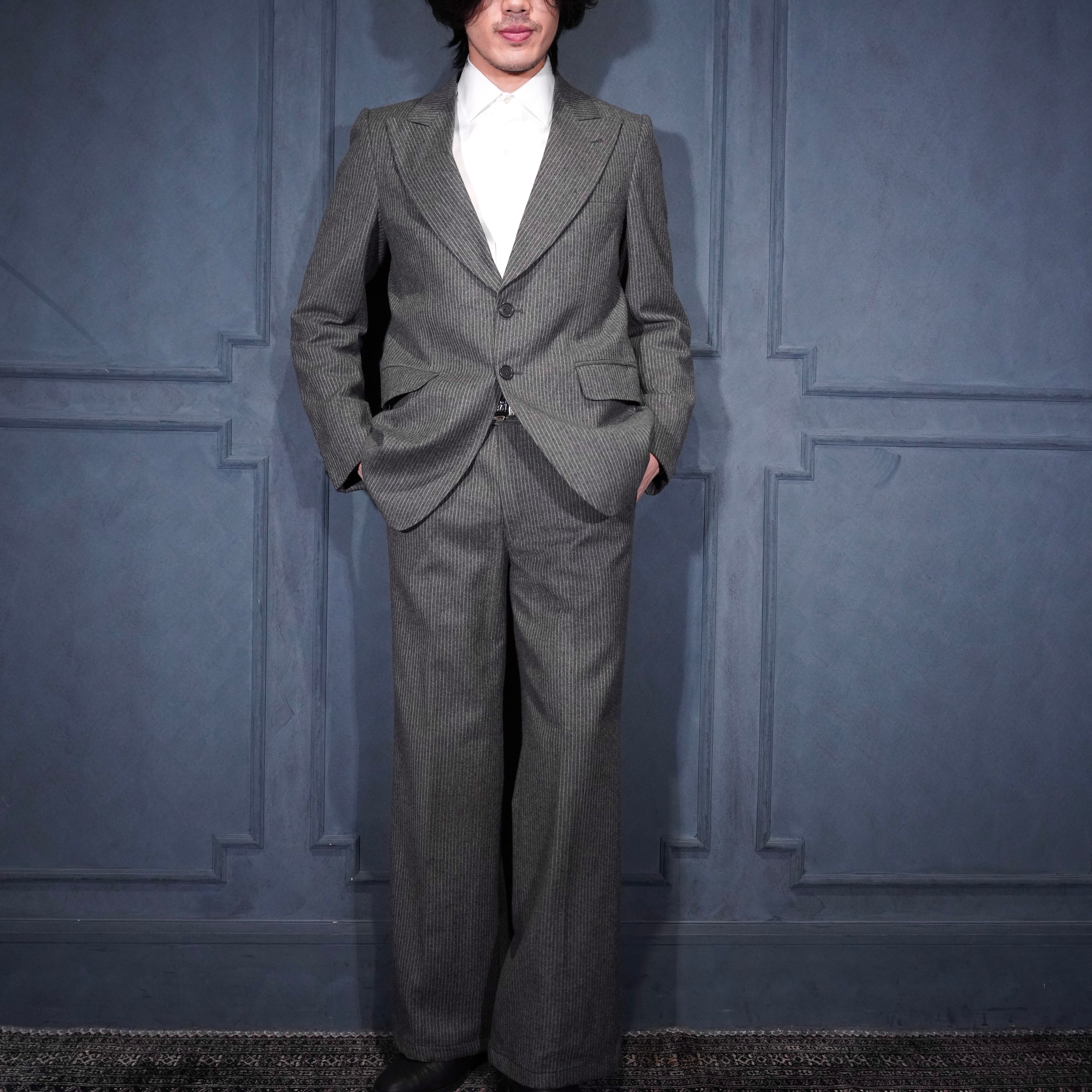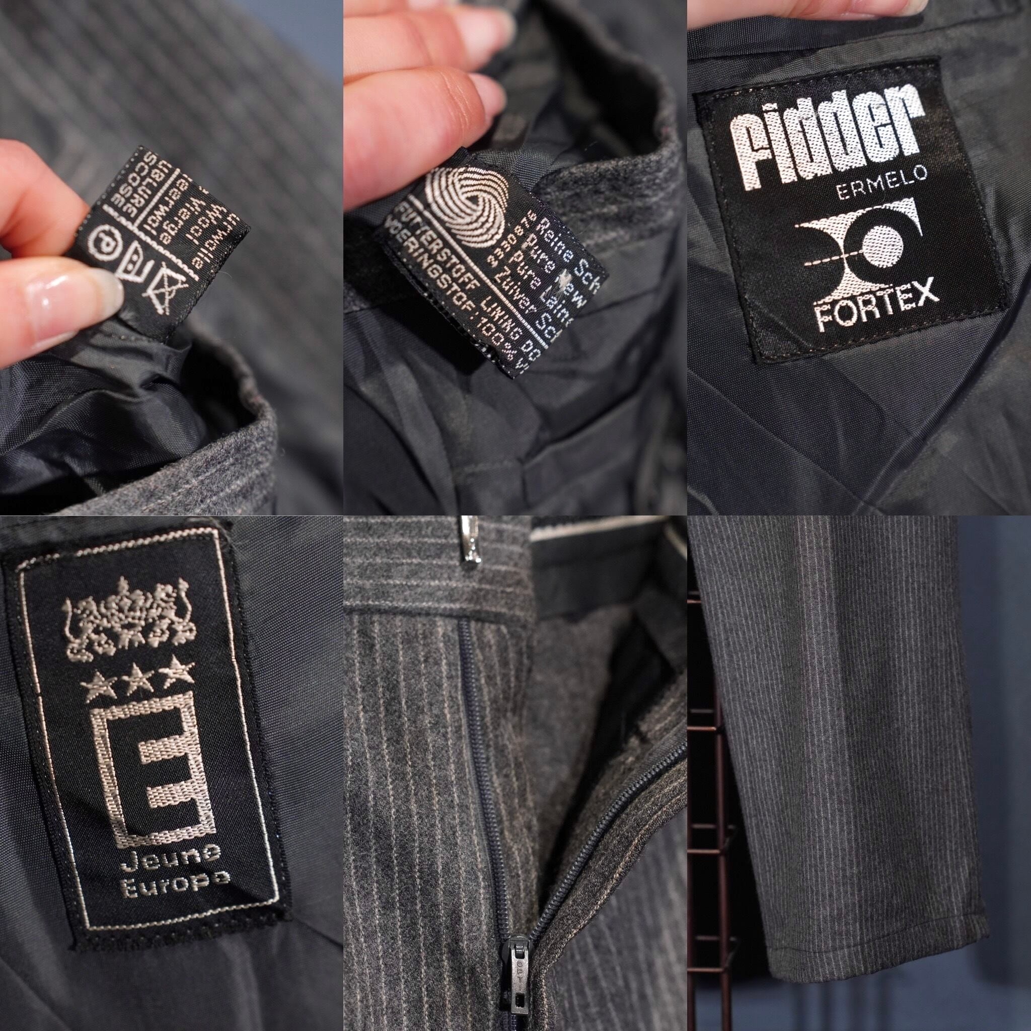 EU VINTAGE Fidder ERMELO STRIPE PATTERNED FLARE SLACKS WOOL SET UP SUIT/ヨーロッパ古着ストライプ柄フレアスラックスウールセットアップスーツ
