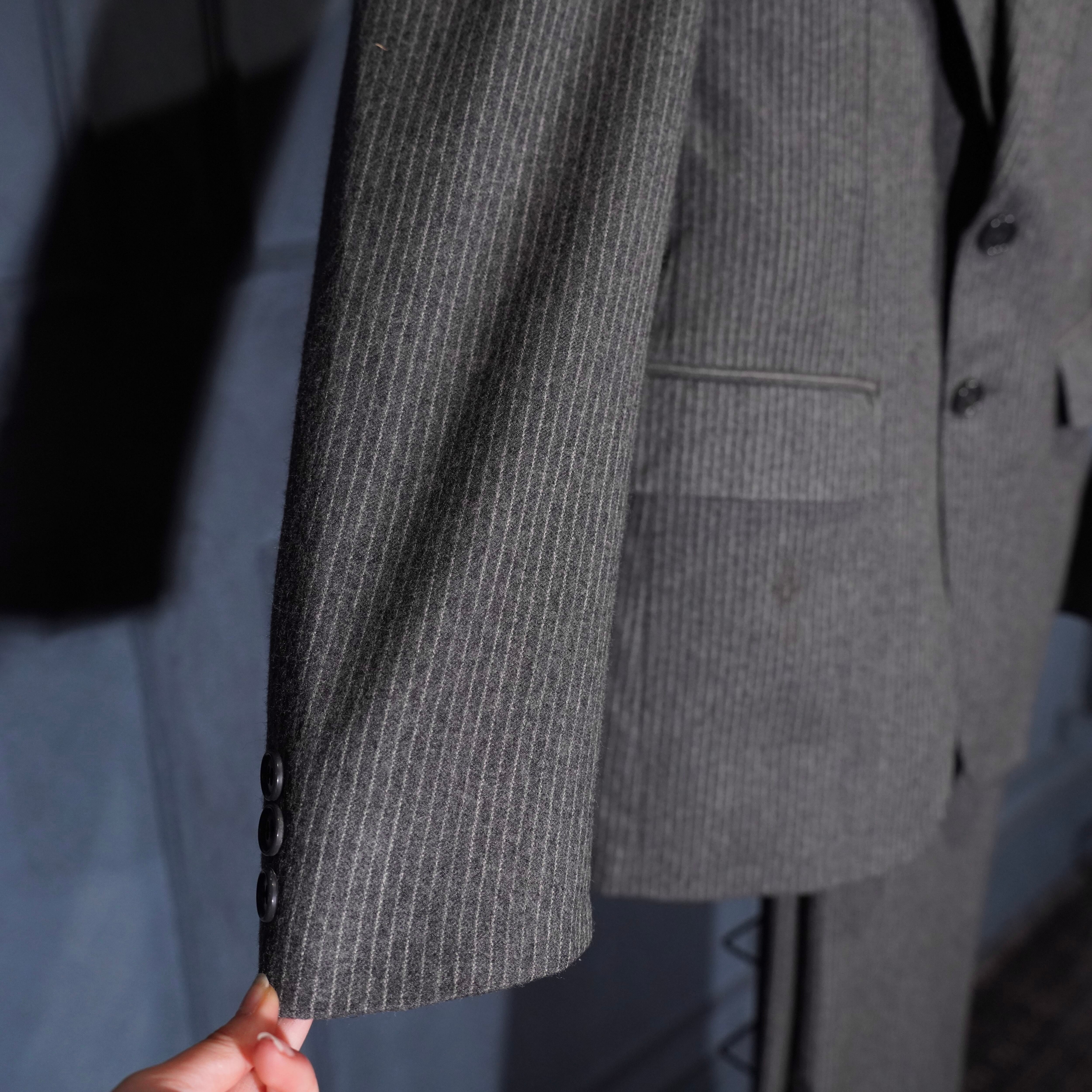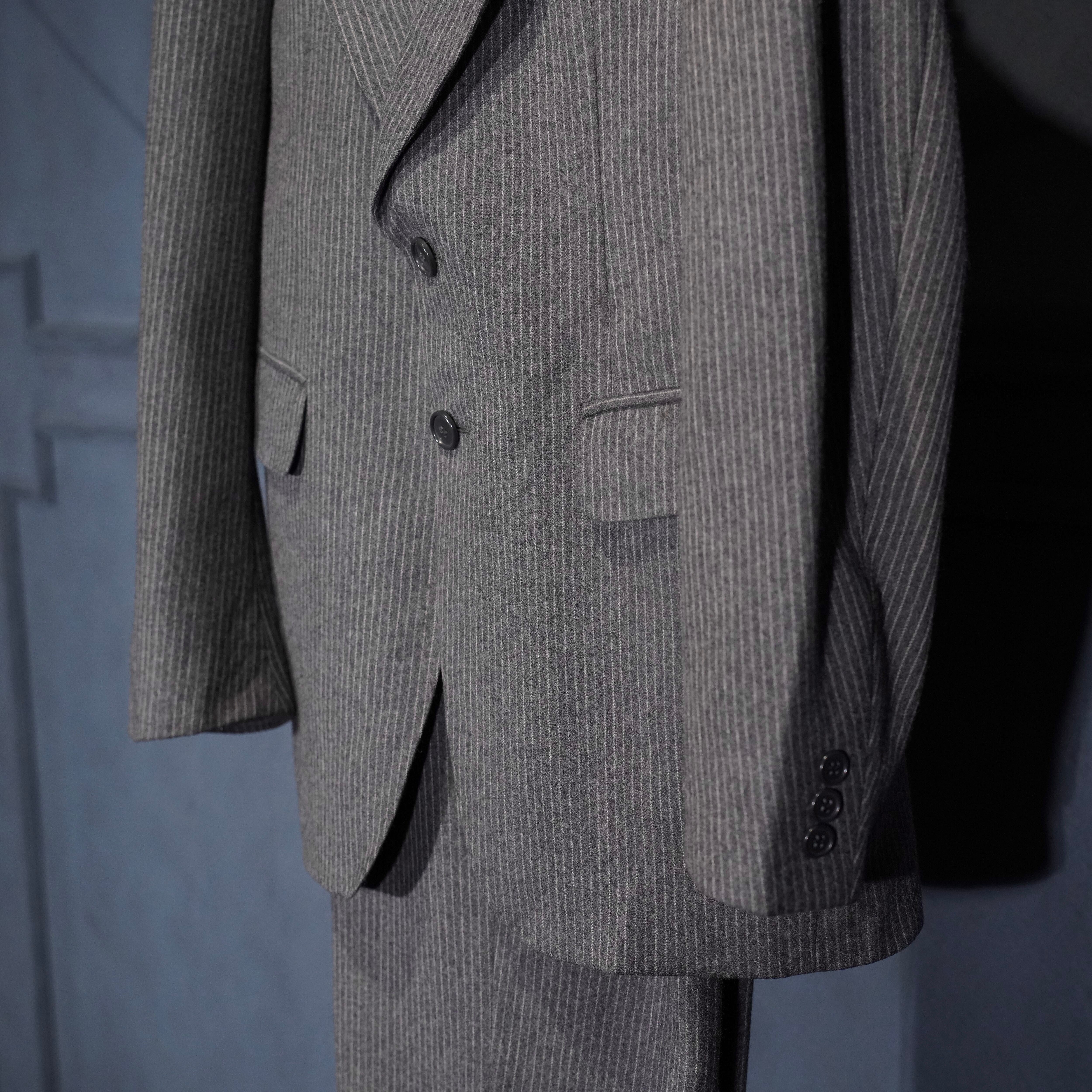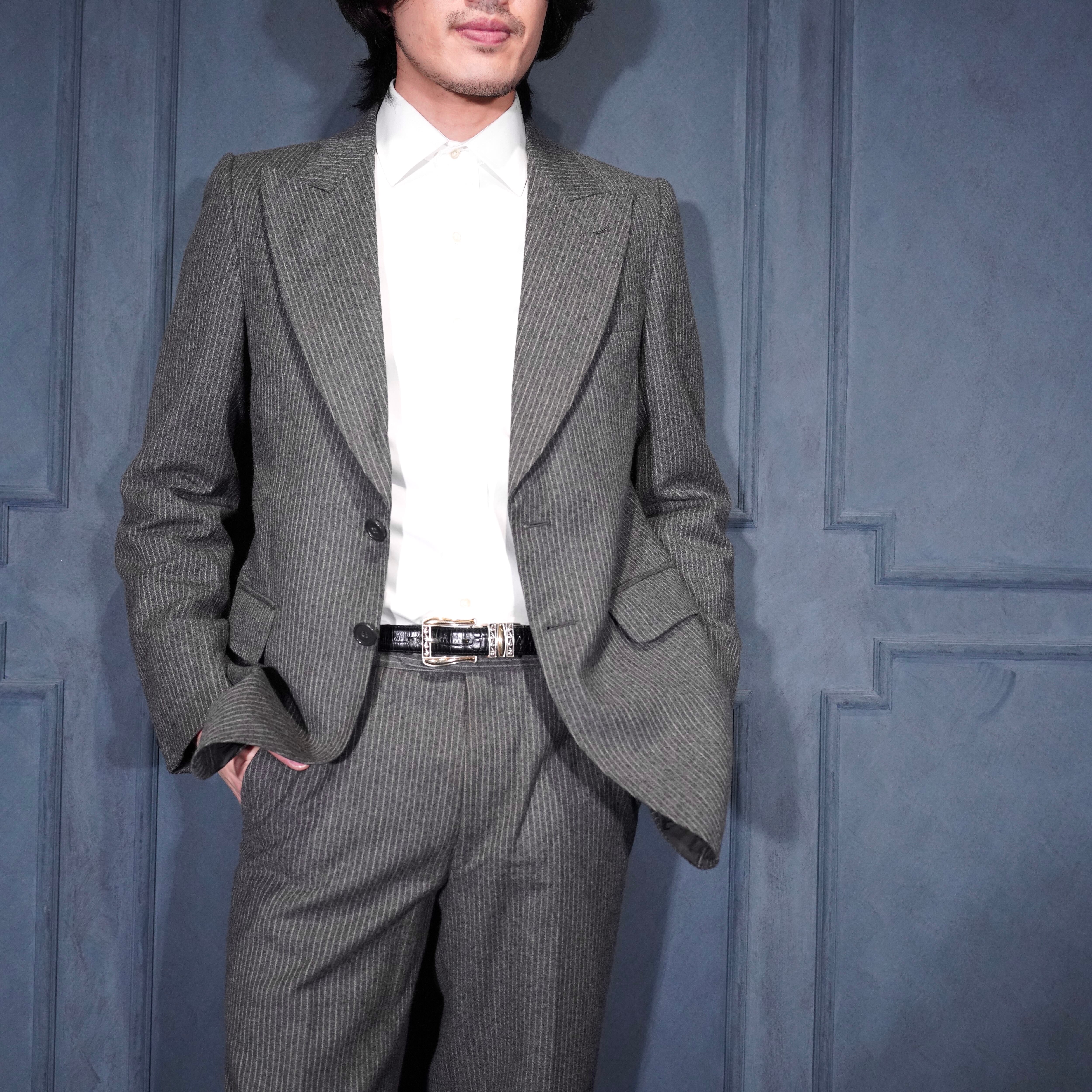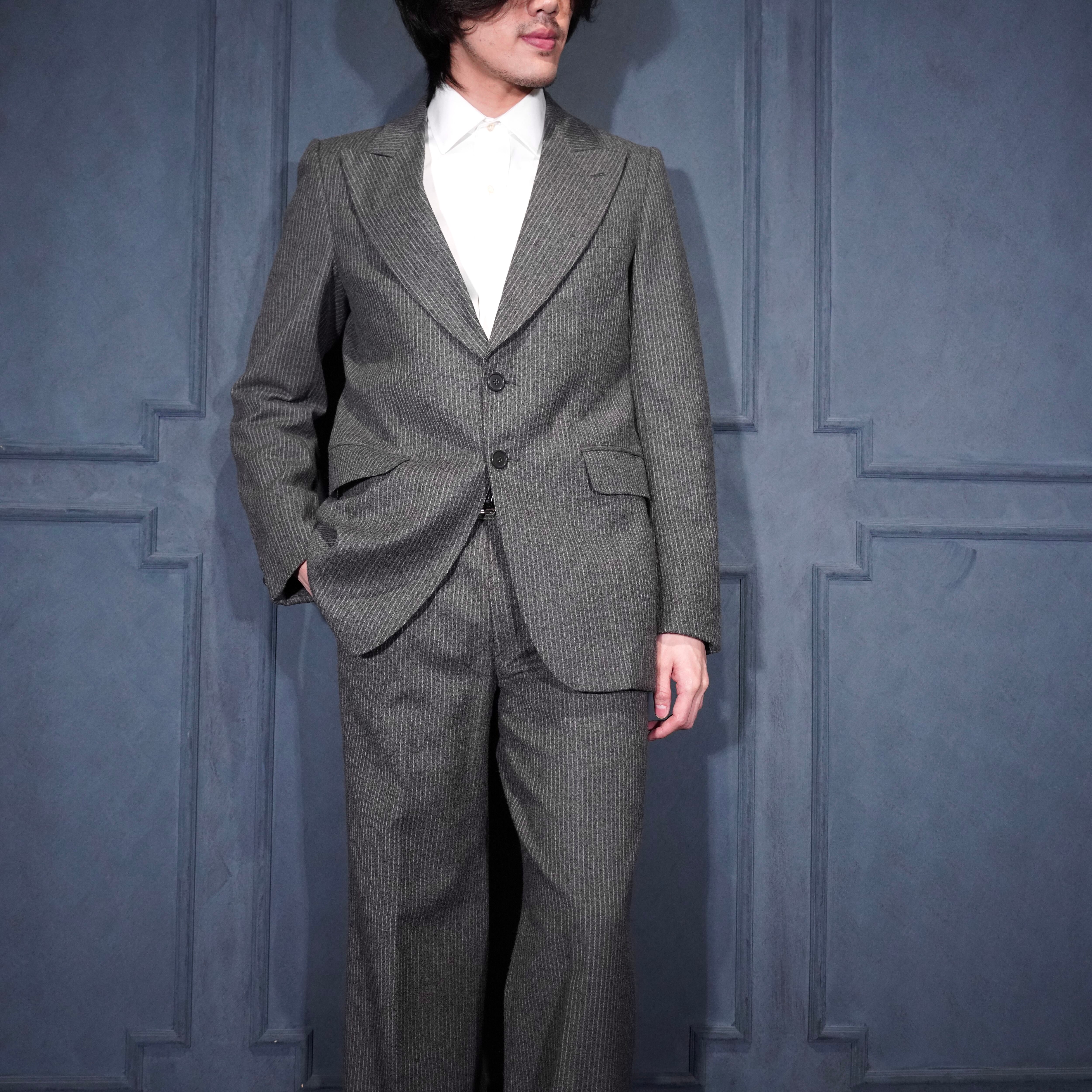 EU VINTAGE Fidder ERMELO STRIPE PATTERNED FLARE SLACKS WOOL SET UP SUIT/ヨーロッパ古着ストライプ柄フレアスラックスウールセットアップスーツ