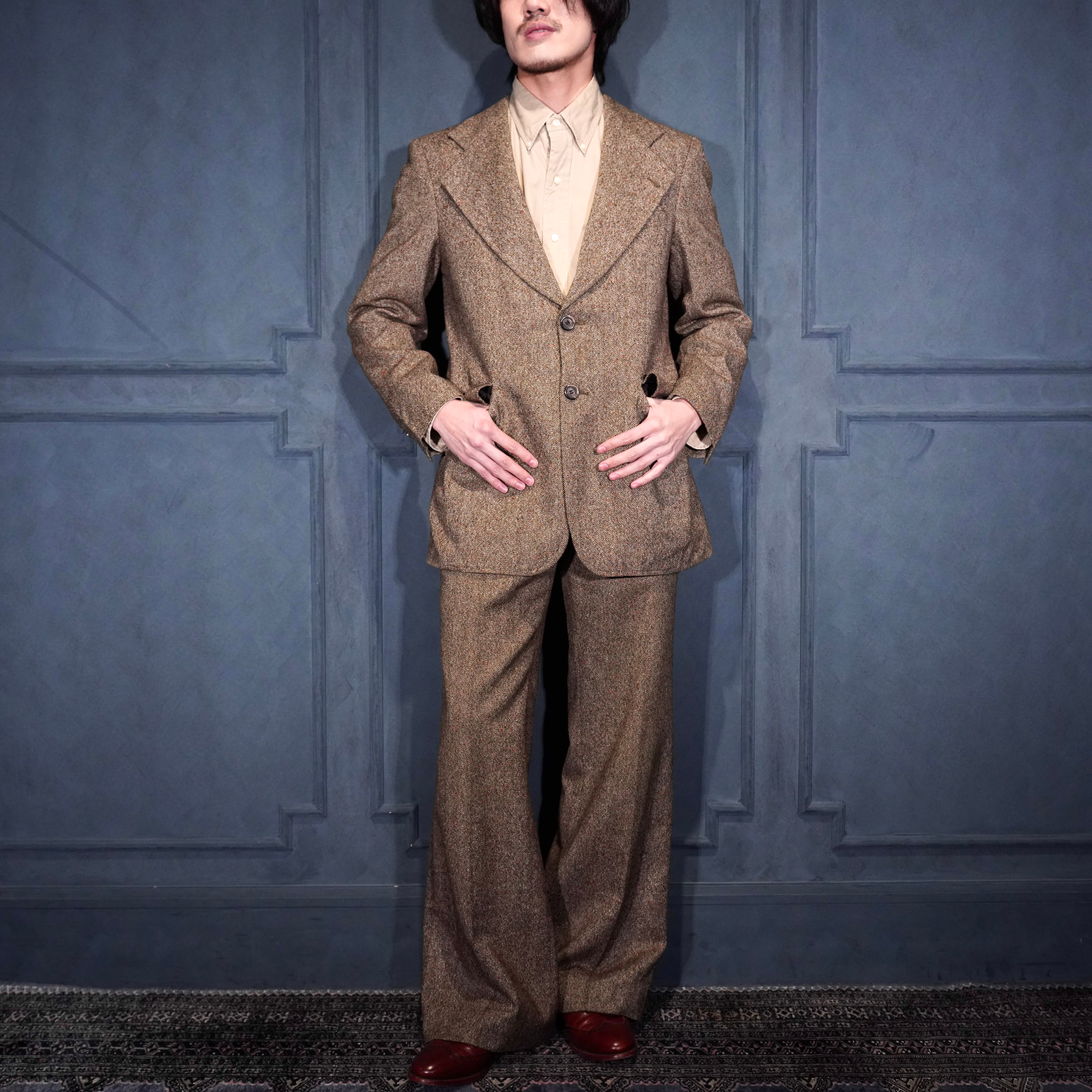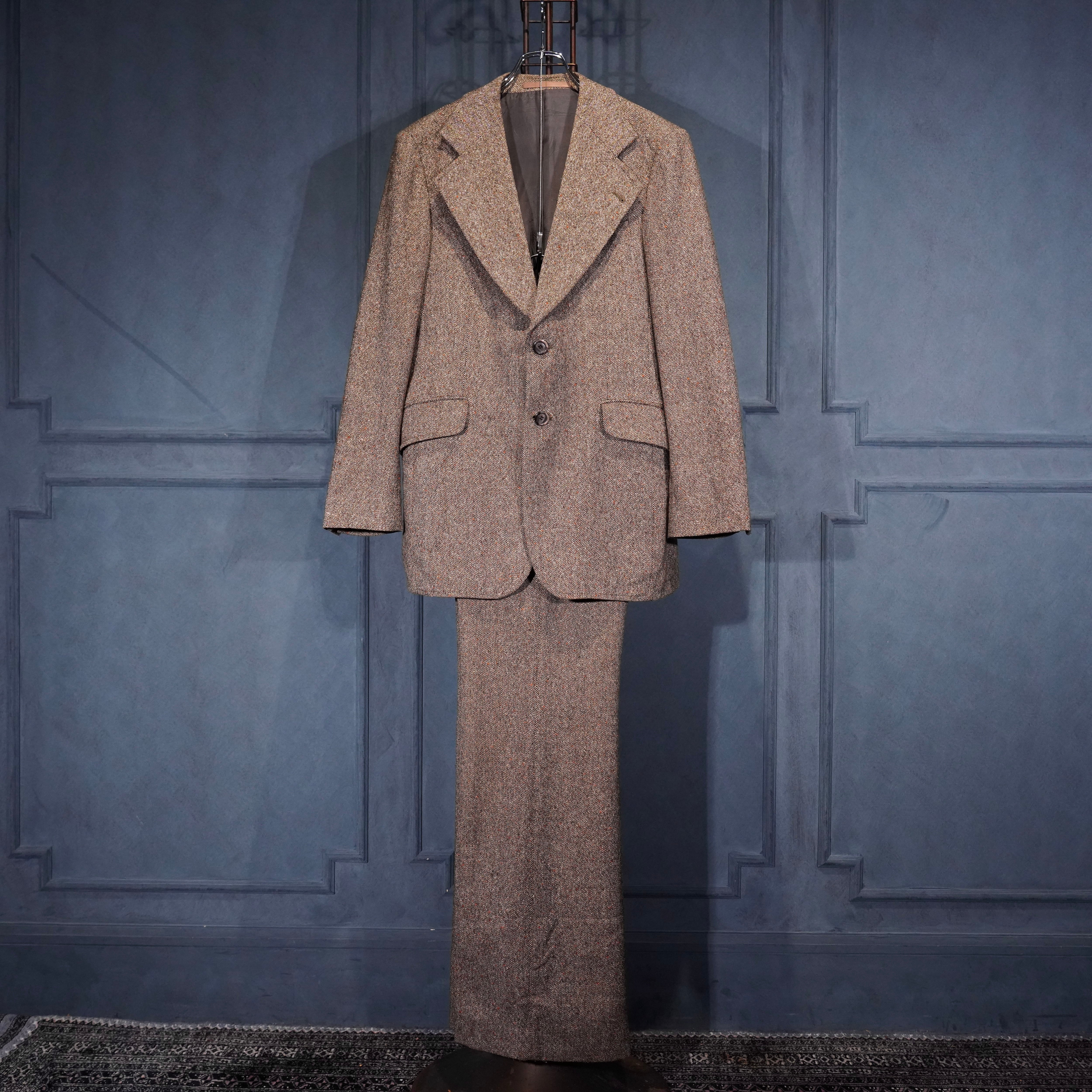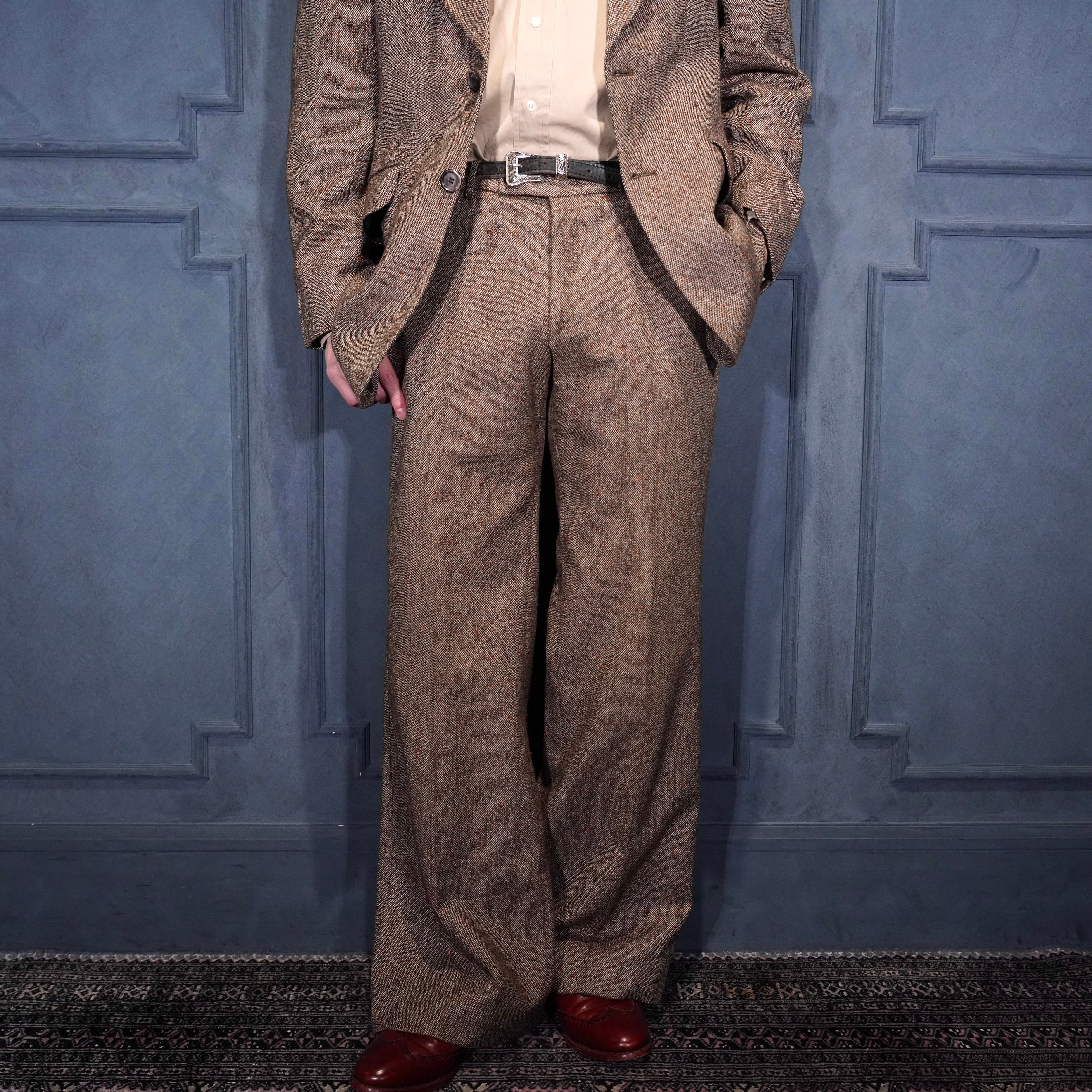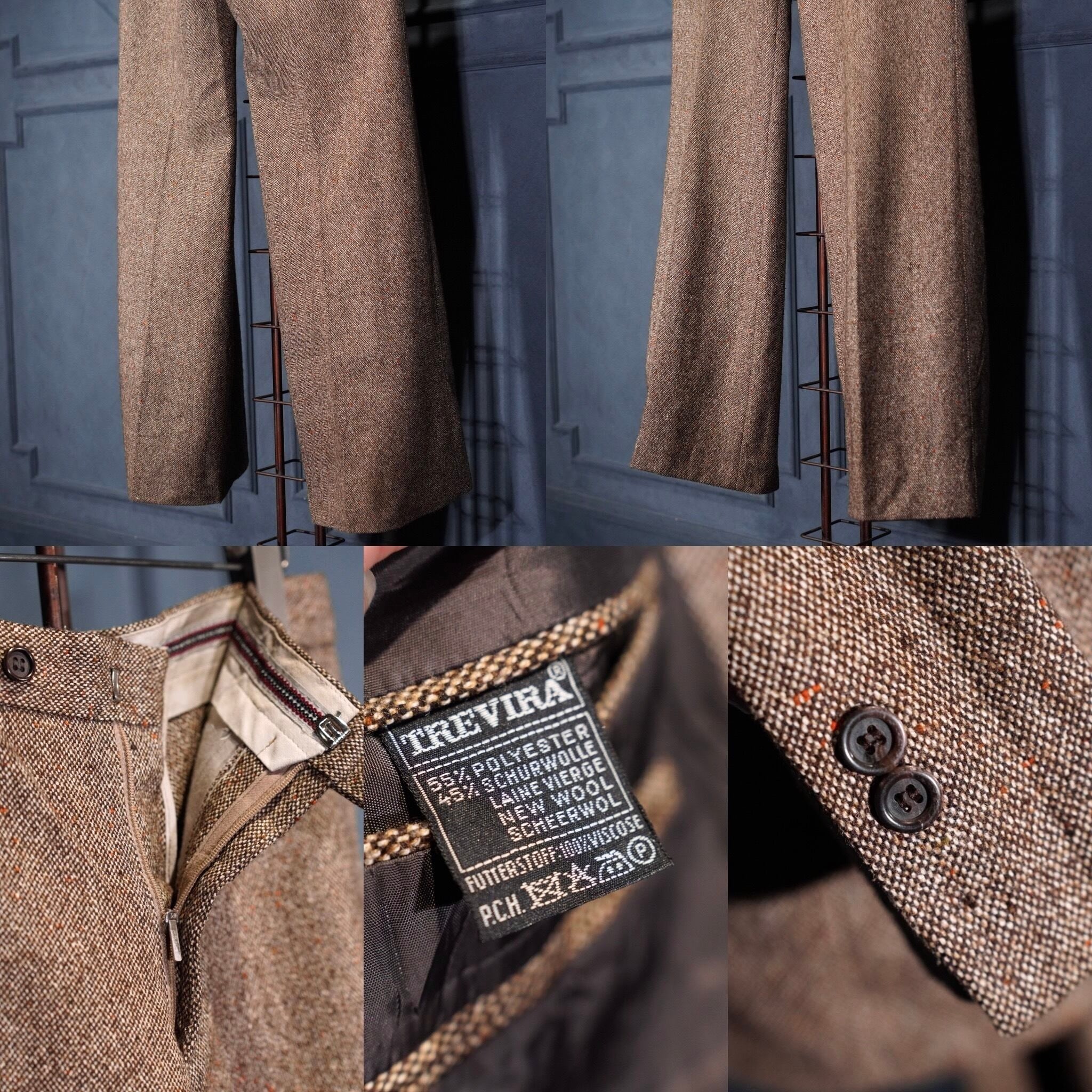 EU VINTAGE TREVIRA NEP TWEED FLARE PANTS SET UP SUIT/ヨーロッパ古着ネップツイードセットアップスーツ