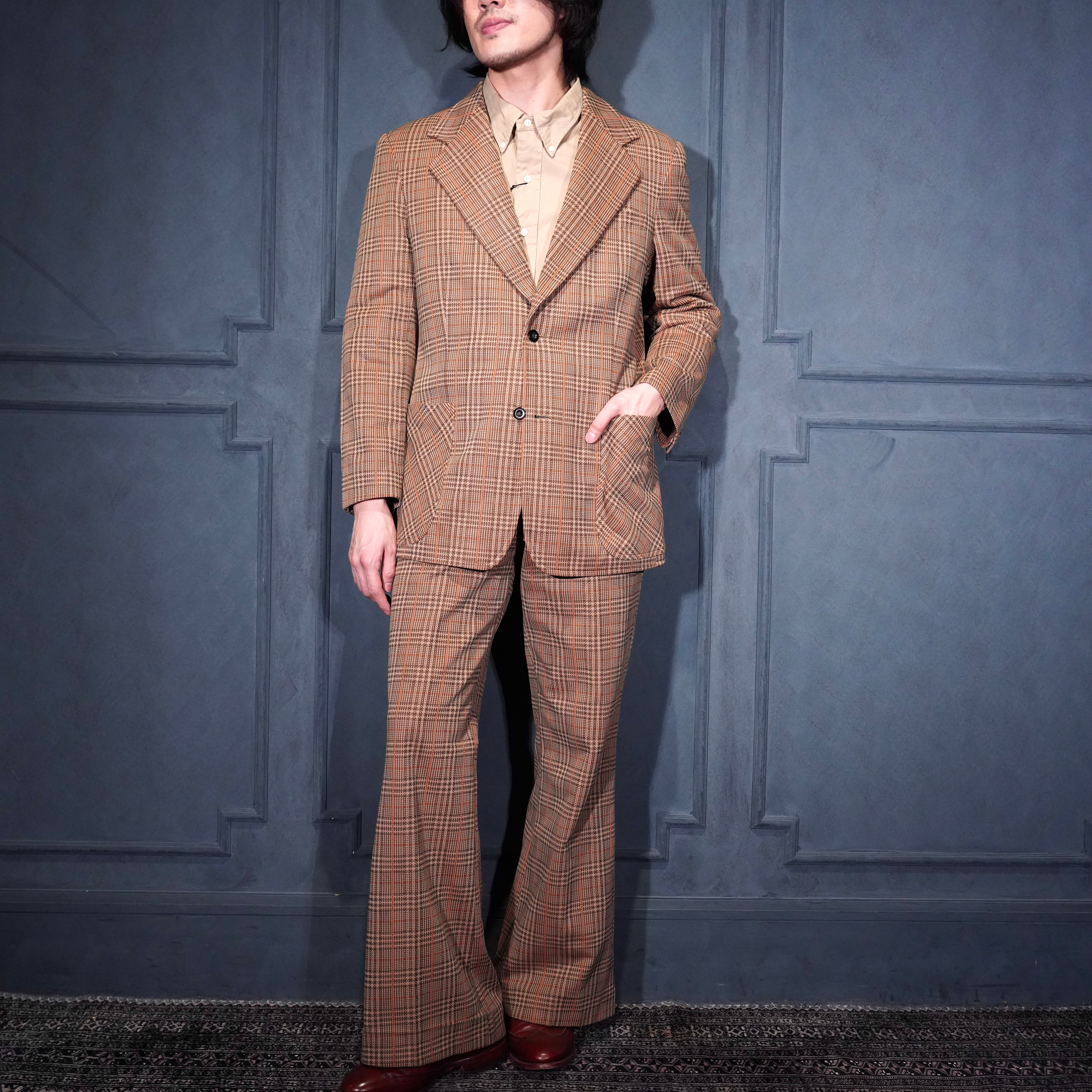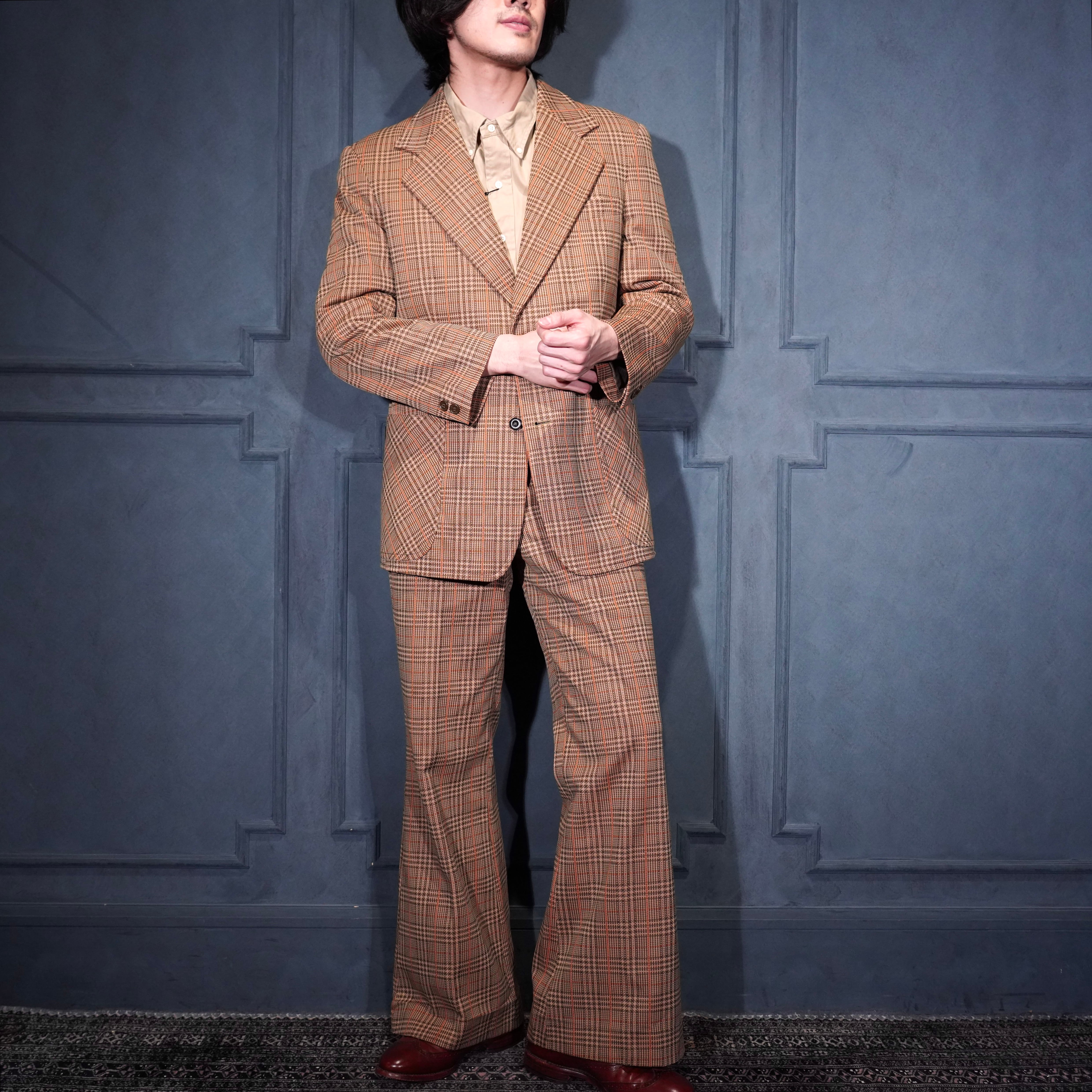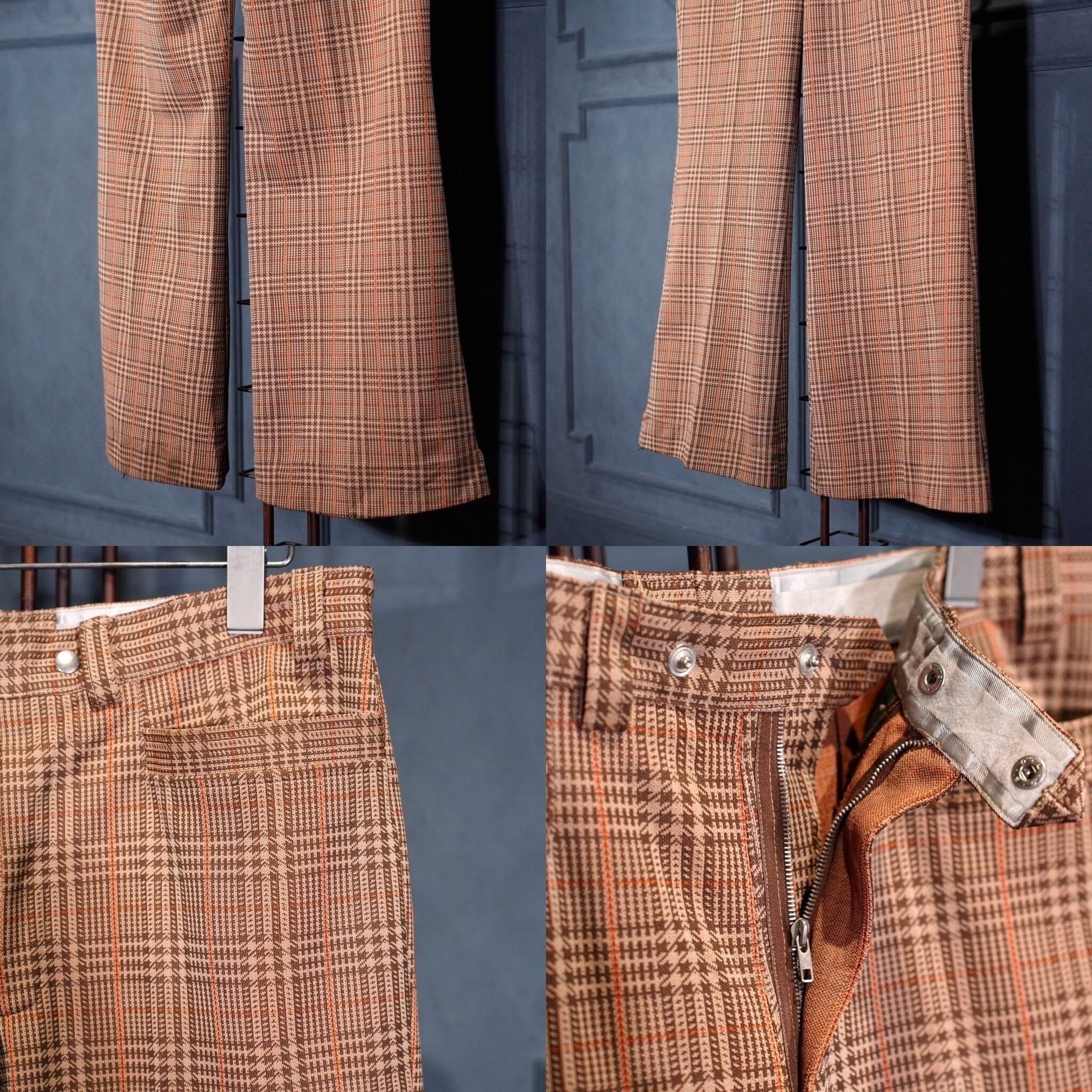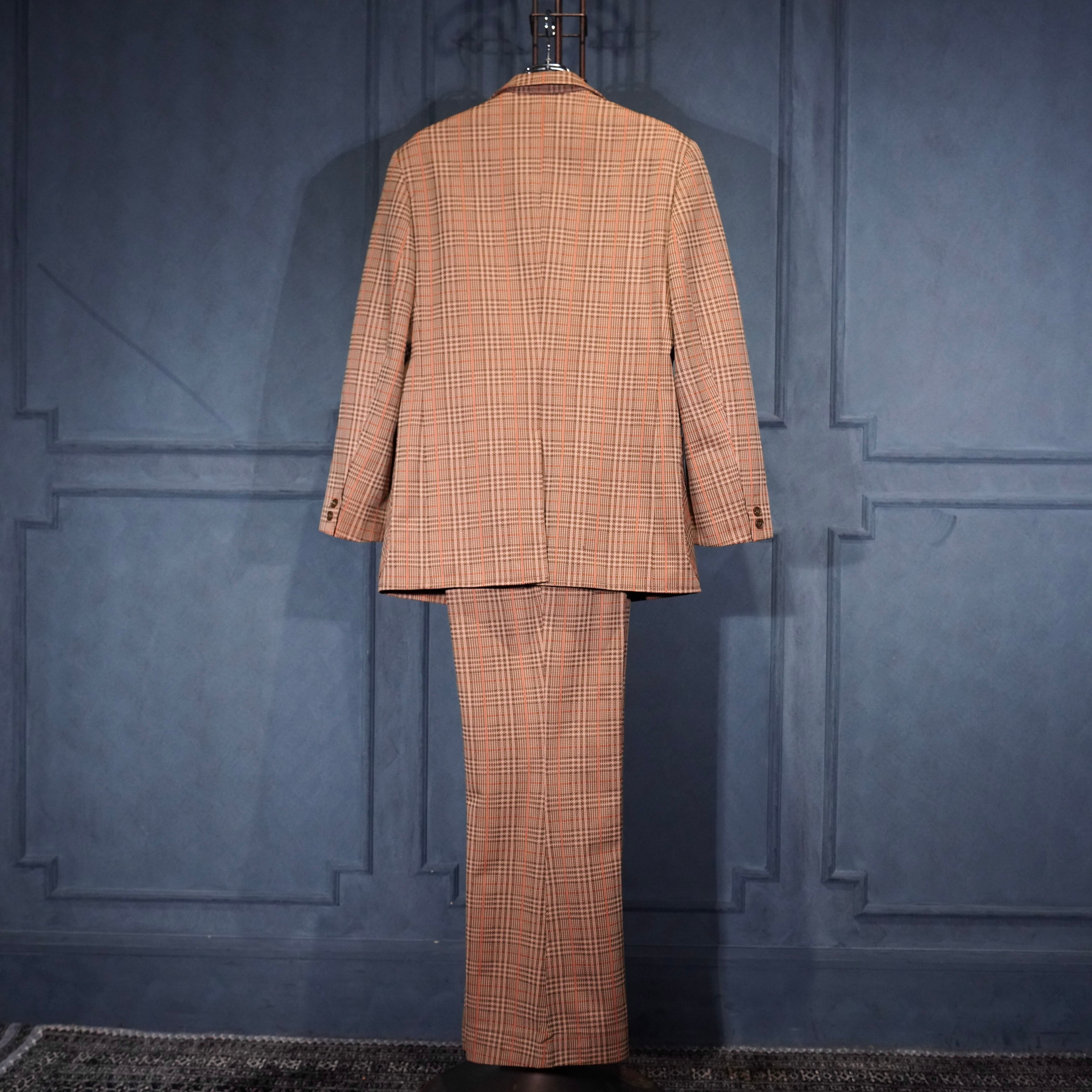 EU VINTAGE CHECK PATTERNED FLARE PANTS SET UP SUIT/ヨーロッパ古着チェック柄フレアパンツセットアップスーツ